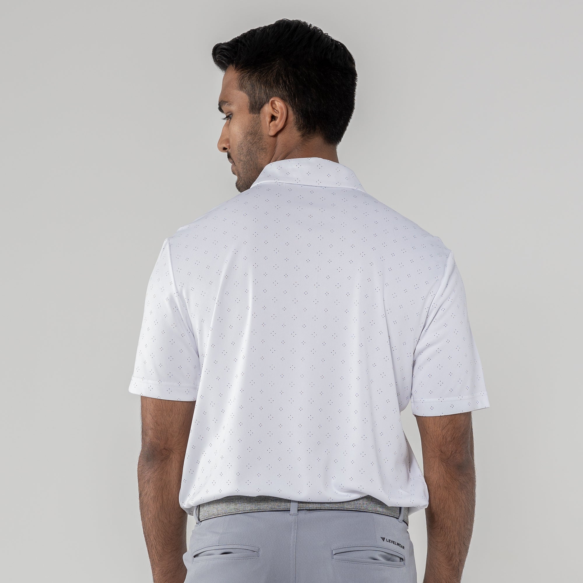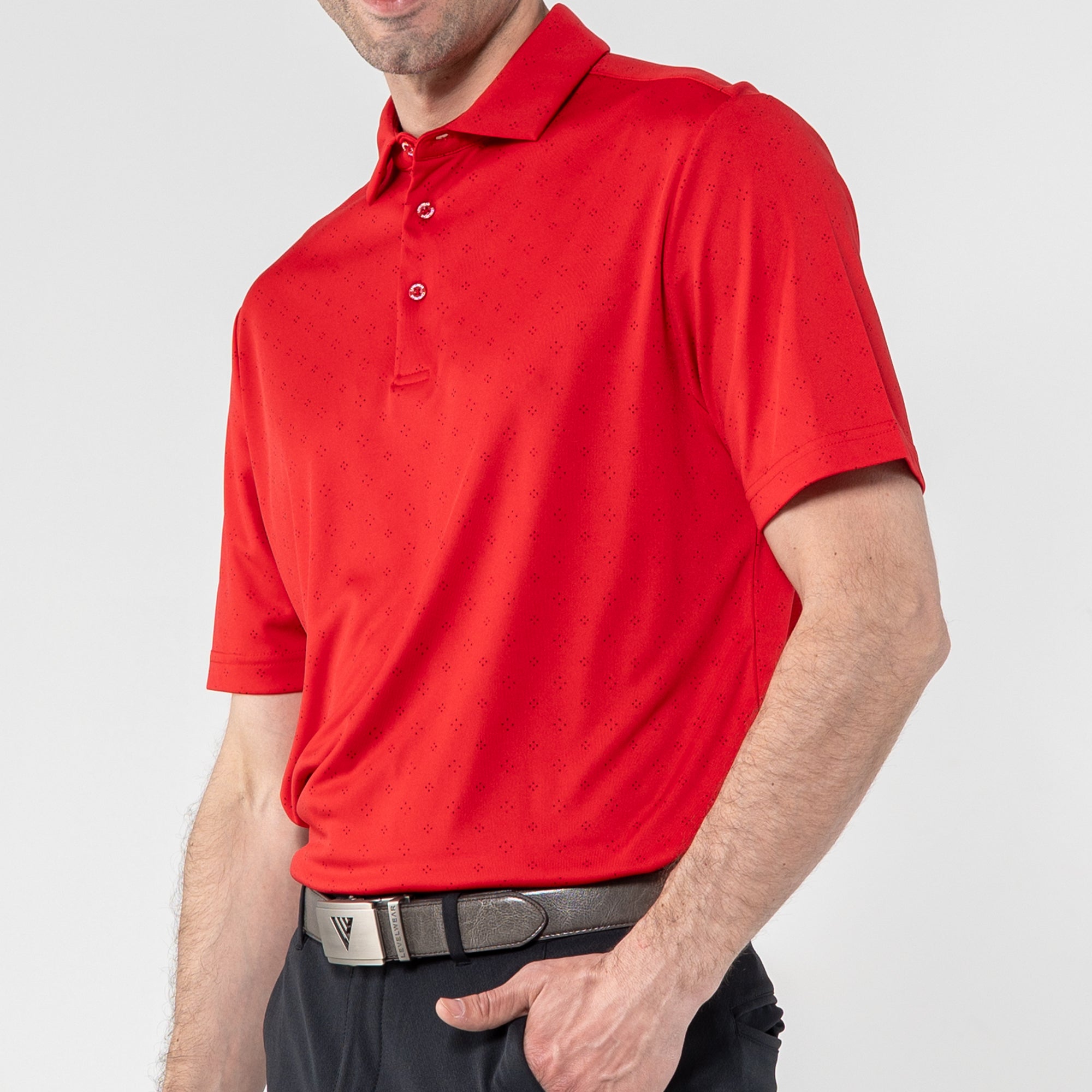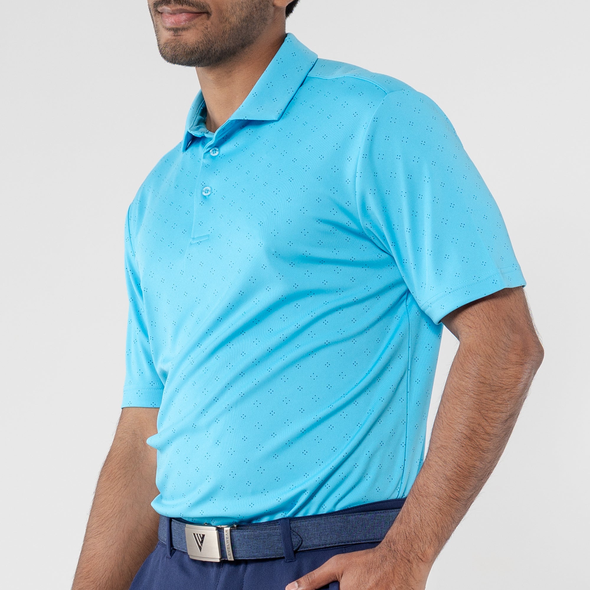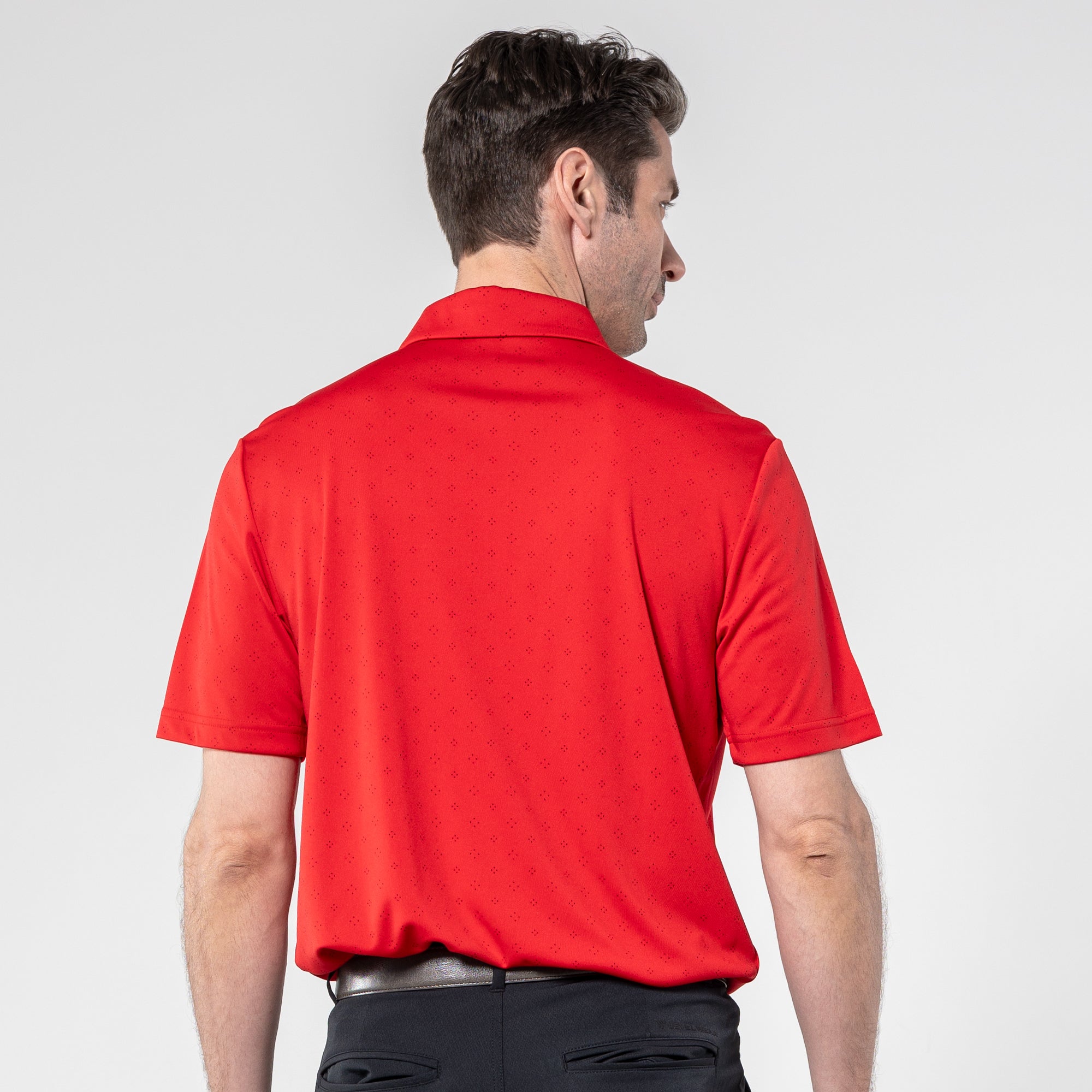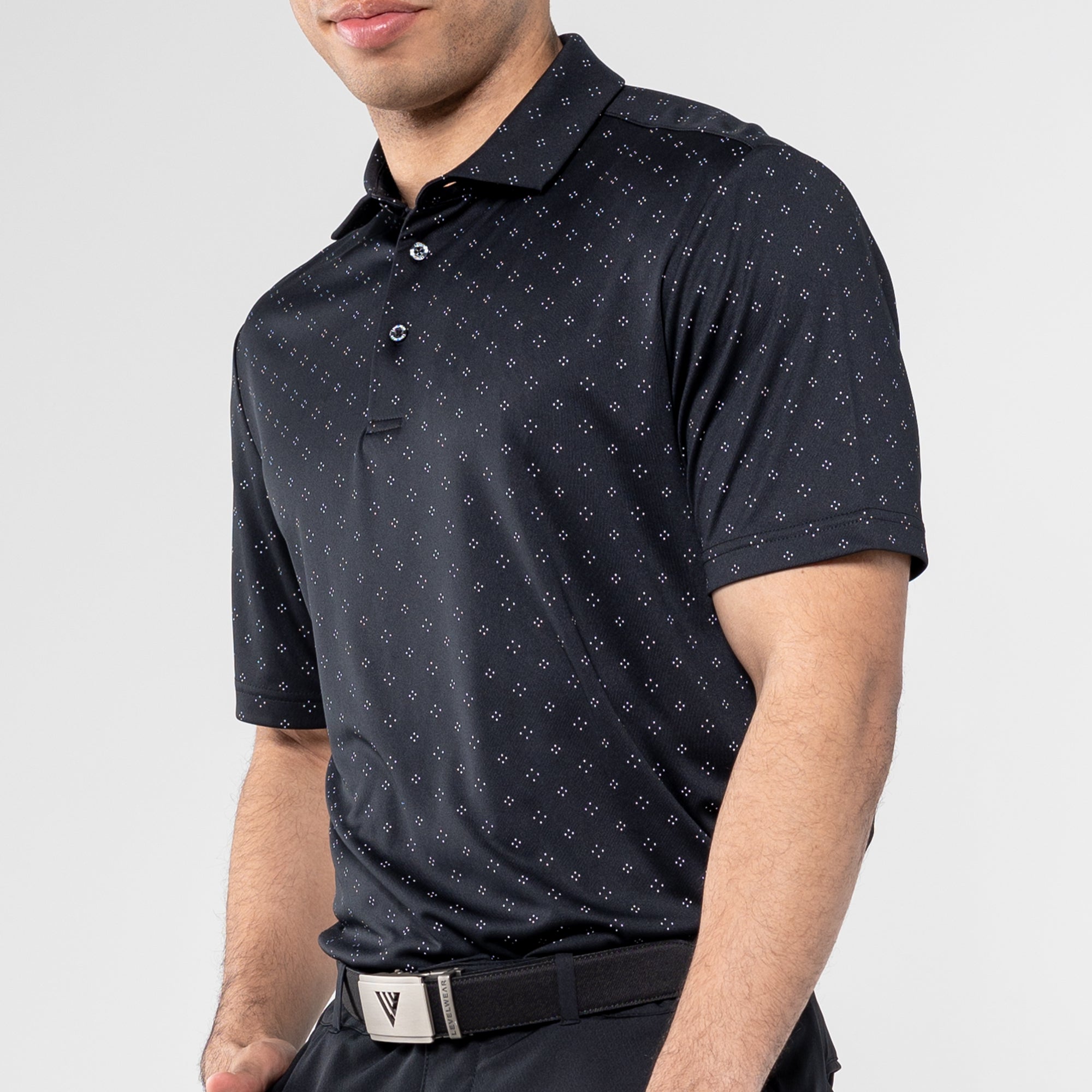 Unleash your athletic potential with the Detect Polo, crafted from 100% polyester for optimal performance. Stay cool and dry with its moisture-wicking technology, perfect for intense workouts or casual activities. The self-fabric collar, enhanced with built-in collar stays, adds a polished touch. The high-low hem detail with side slits not only provides a stylish edge but also offers flexibility in movement. Stand out effortlessly with the all-over stylish dot pattern, making the Detect Polo a versatile and essential addition to your activewear collection.