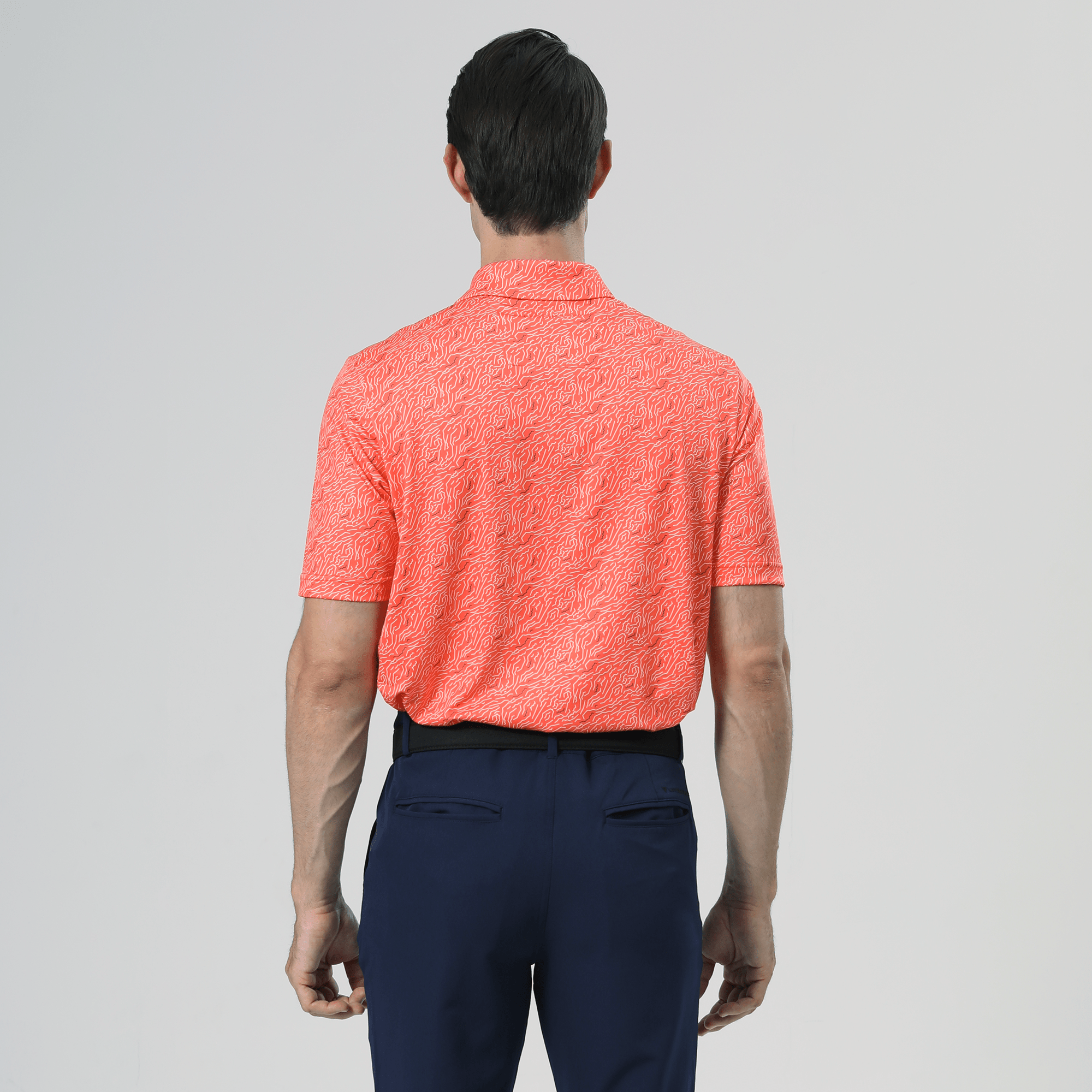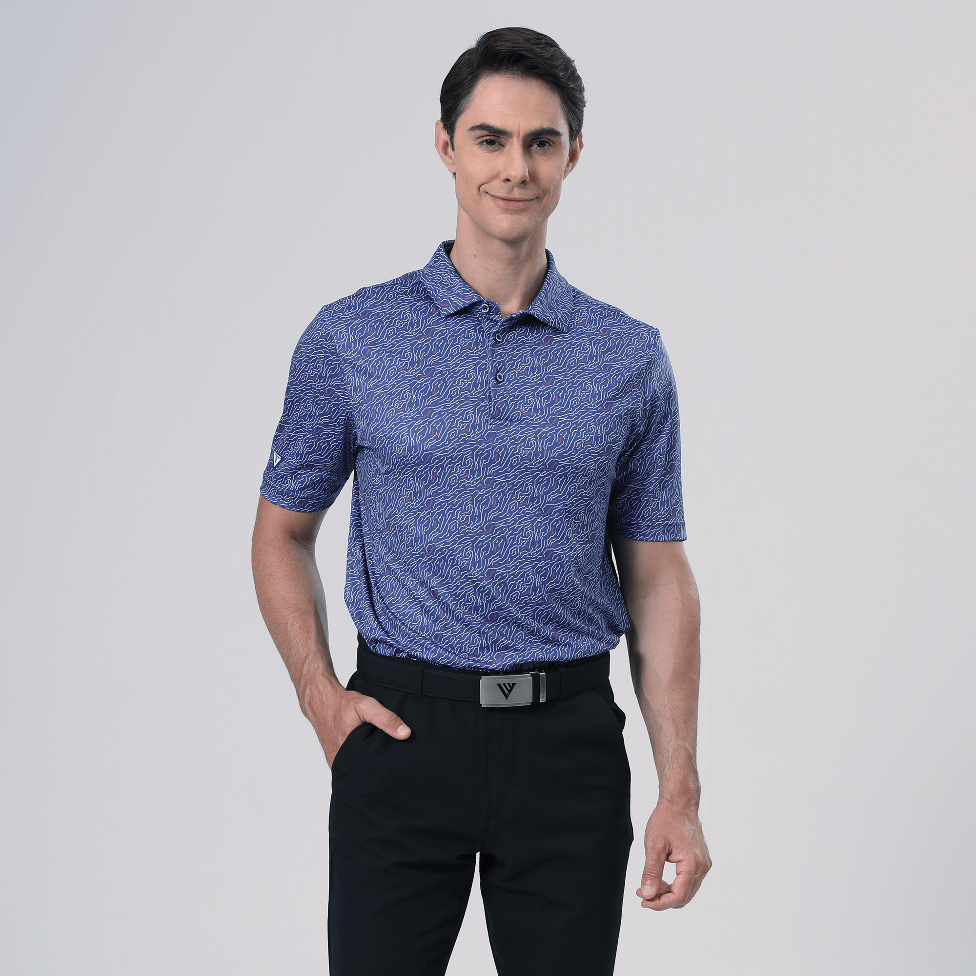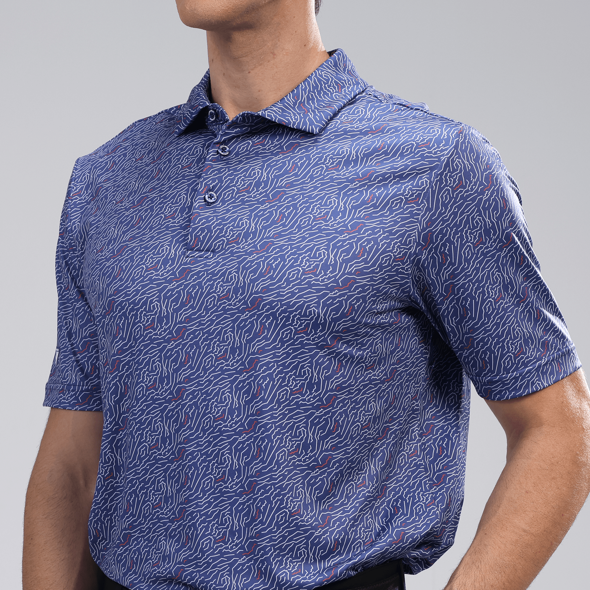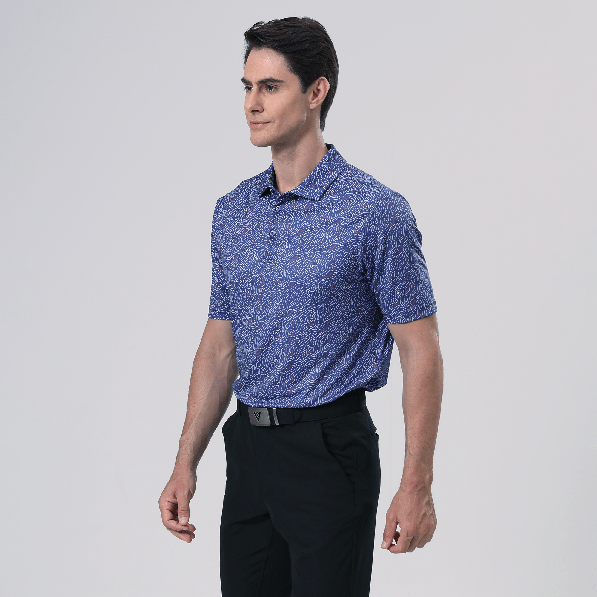 The men's Discovery polo is crafted from a blend of 91% polyester and 9% spandex, this polo features exceptional moisture-wicking properties that keep you dry and comfortable during even the most intense rounds. The anti-bacterial finish ensures freshness, while UPF 50+ protection shields you from harmful UV rays, making it ideal for sunny days on the links. With a self-fabric collar that includes a built-in collar stay, you can maintain a polished look throughout your game. The forward shoulder seams enhance your range of motion, allowing for unrestricted swings, and the high-low hem detail with side slits adds a modern touch. Finished with an all-over print, the Discovery polo combines innovative features with stylish design, making it a must-have for any golfer looking to elevate their game.