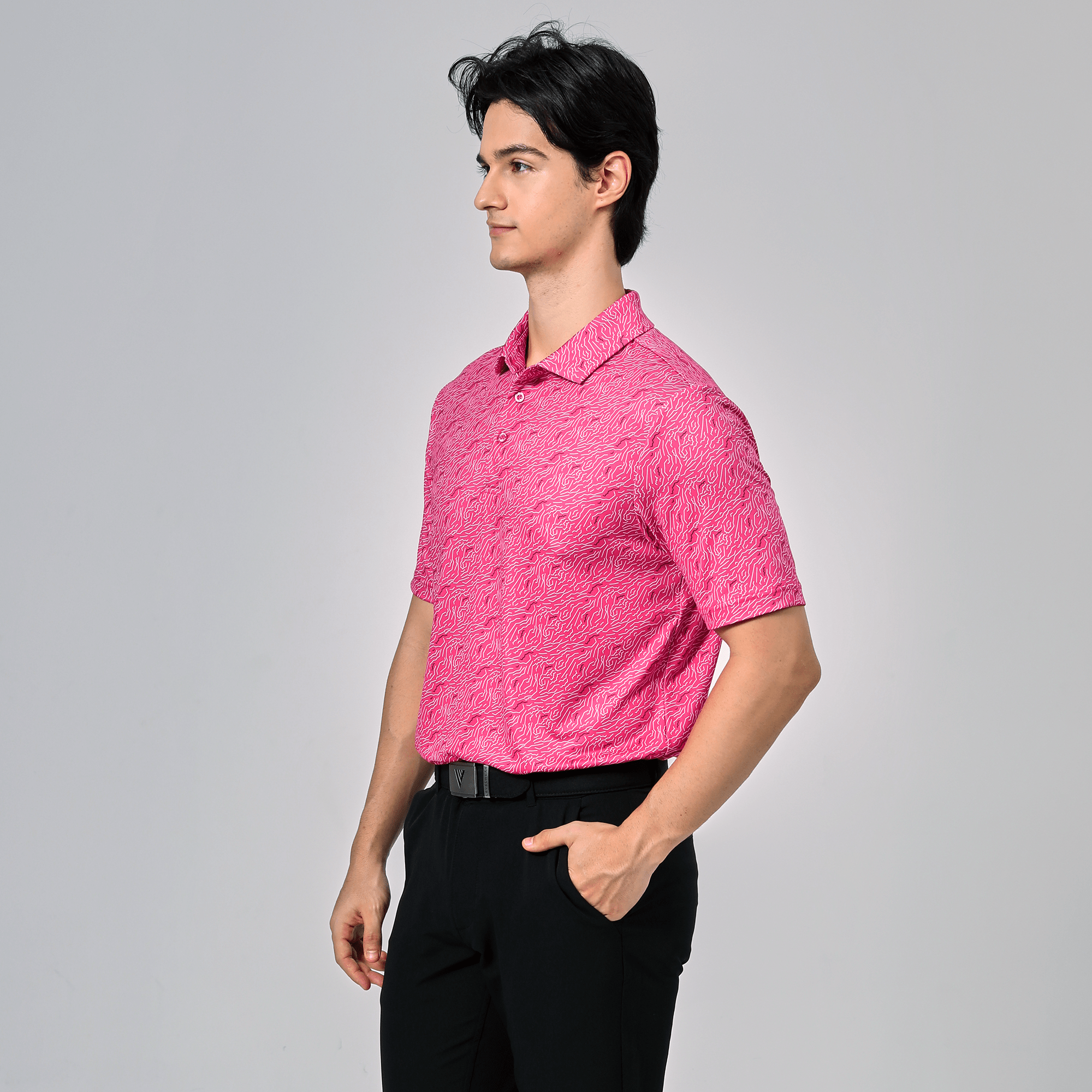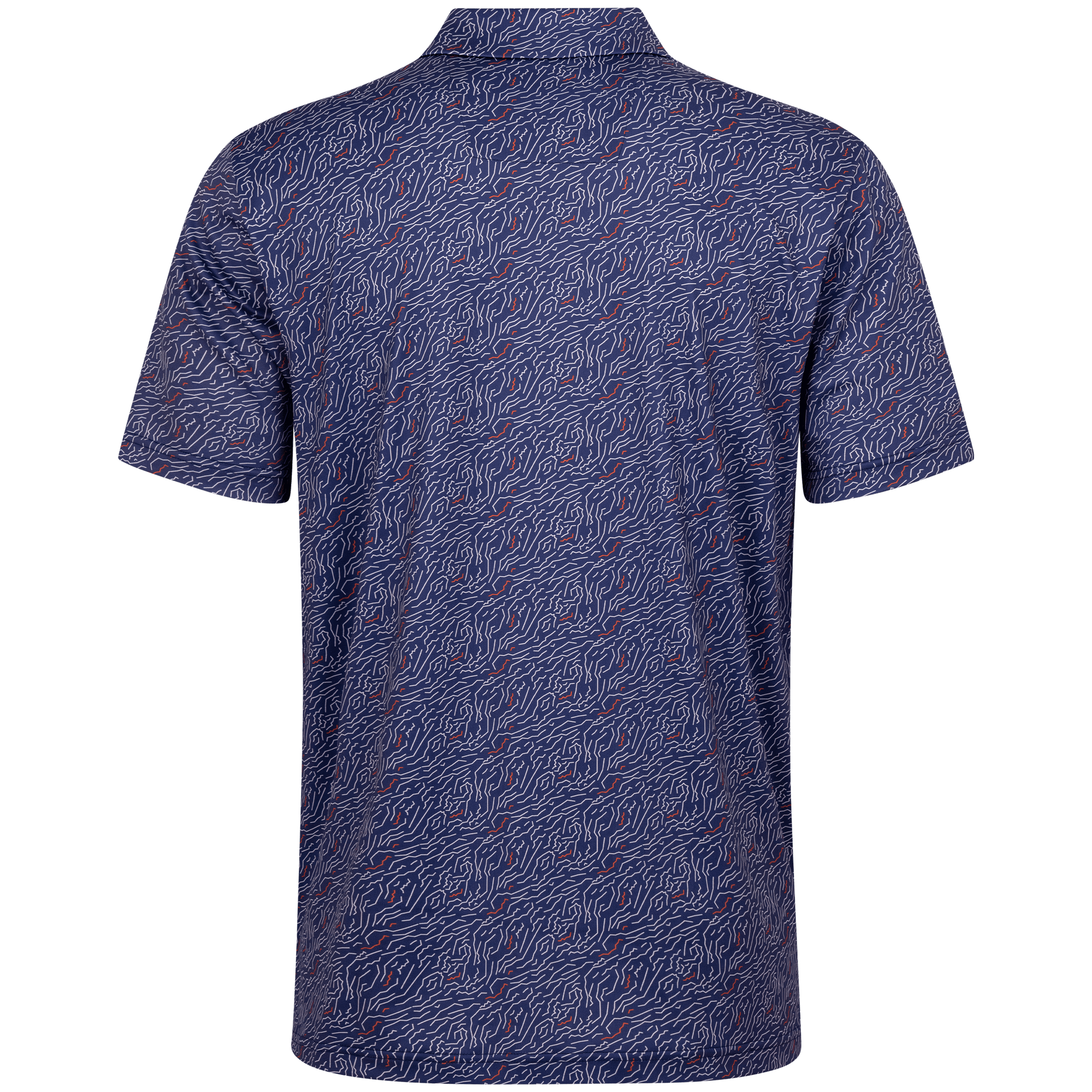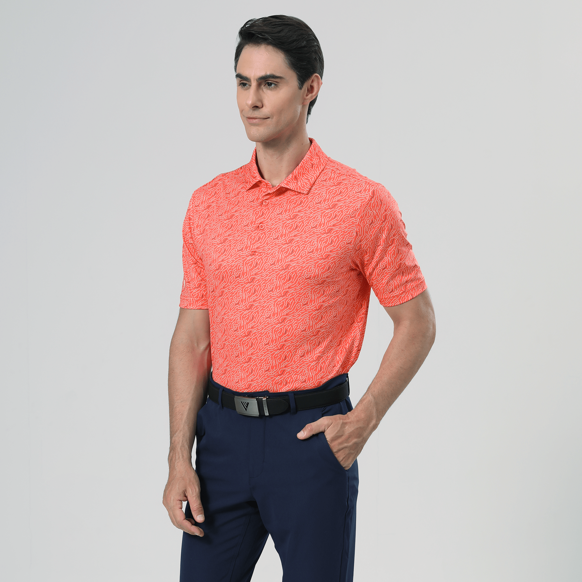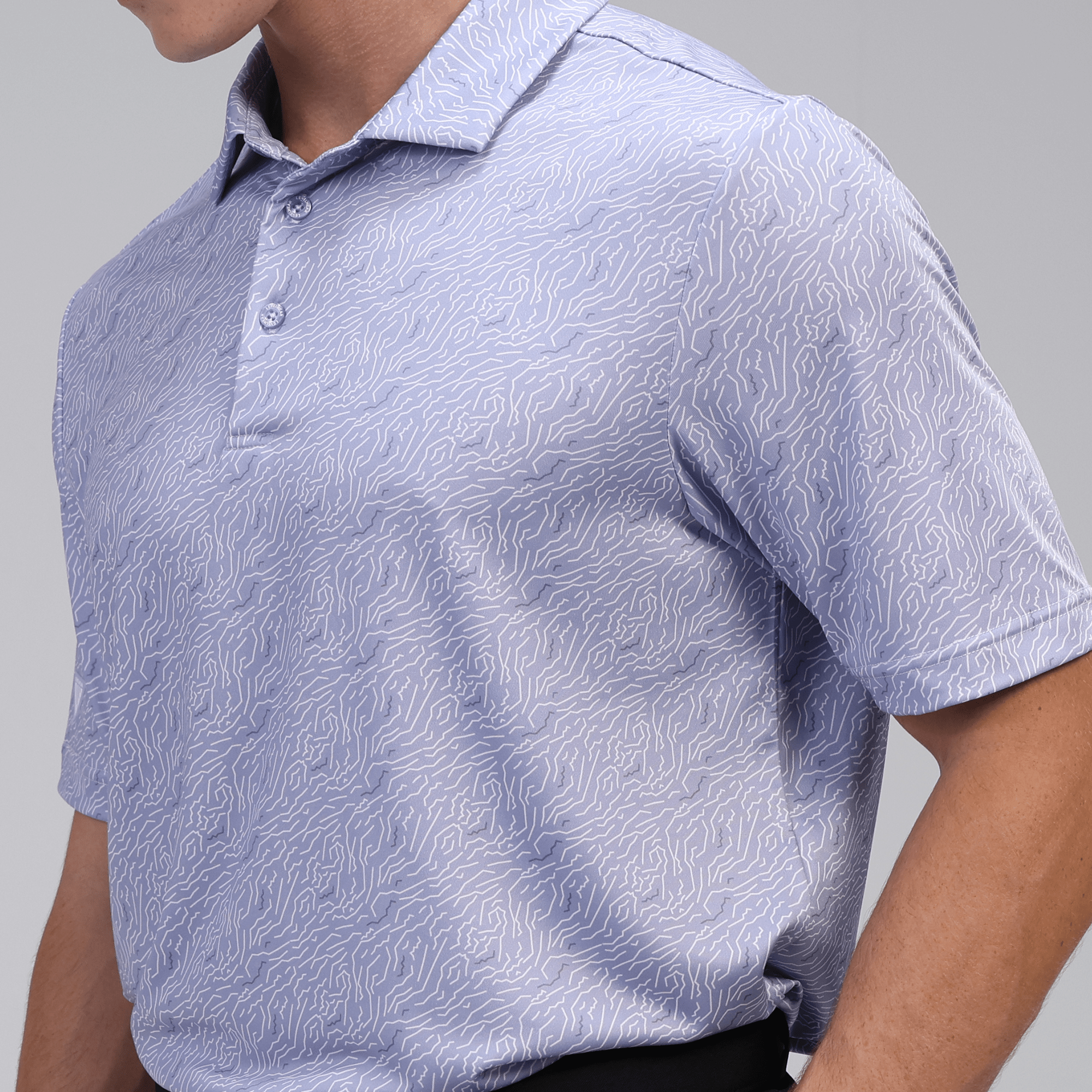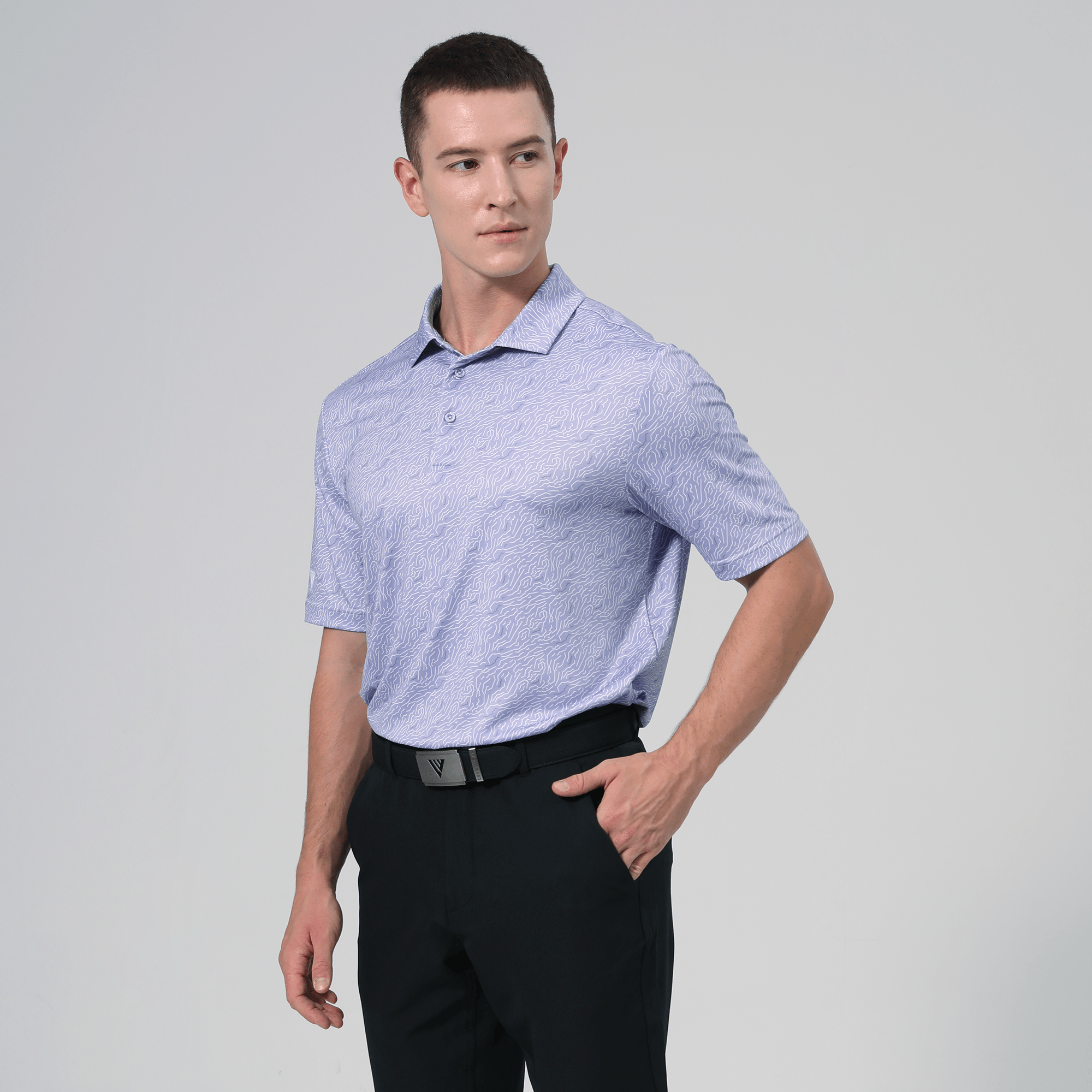 The men's Discovery polo is crafted from a blend of 91% polyester and 9% spandex, this polo features exceptional moisture-wicking properties that keep you dry and comfortable during even the most intense rounds. The anti-bacterial finish ensures freshness, while UPF 50+ protection shields you from harmful UV rays, making it ideal for sunny days on the links. With a self-fabric collar that includes a built-in collar stay, you can maintain a polished look throughout your game. The forward shoulder seams enhance your range of motion, allowing for unrestricted swings, and the high-low hem detail with side slits adds a modern touch. Finished with an all-over print, the Discovery polo combines innovative features with stylish design, making it a must-have for any golfer looking to elevate their game.