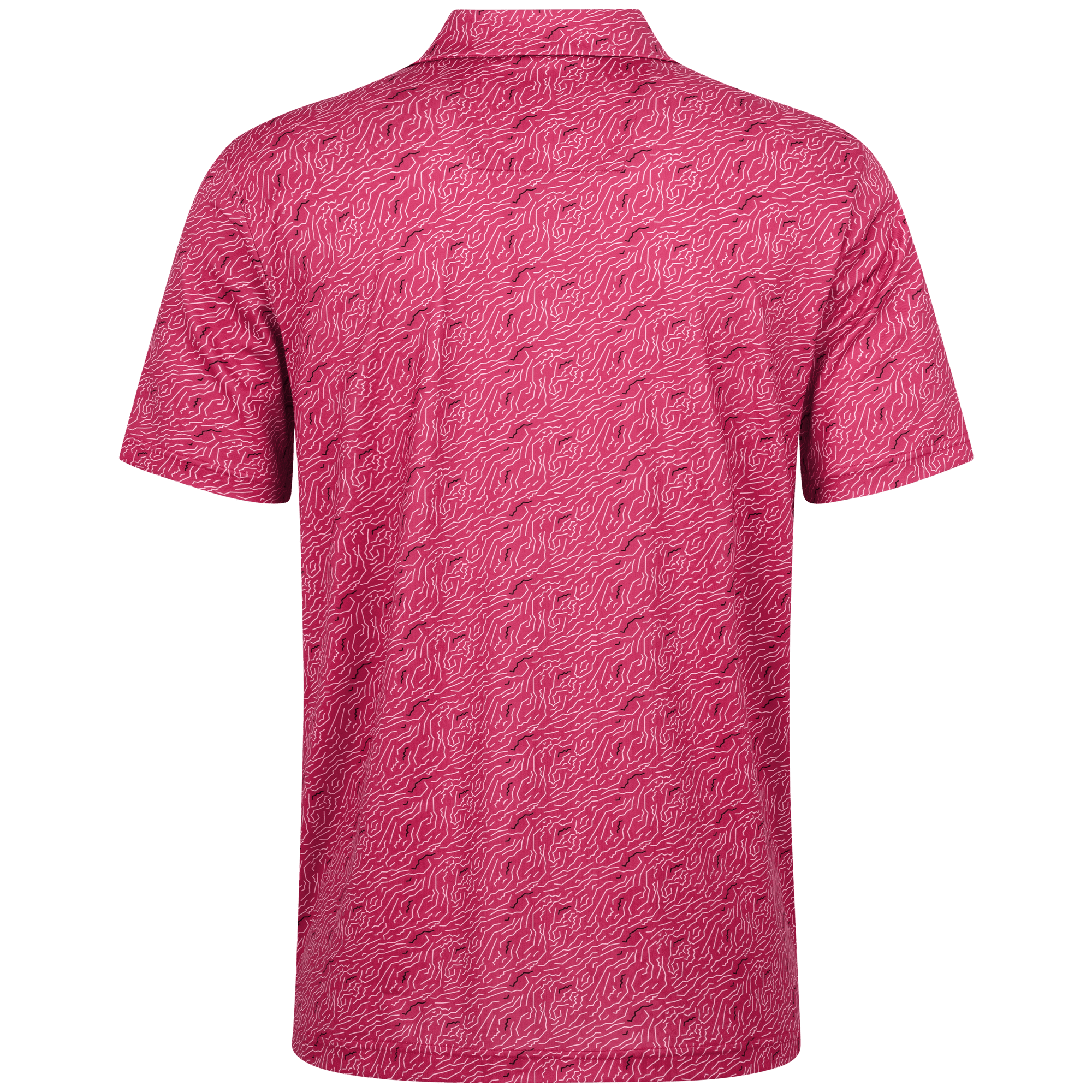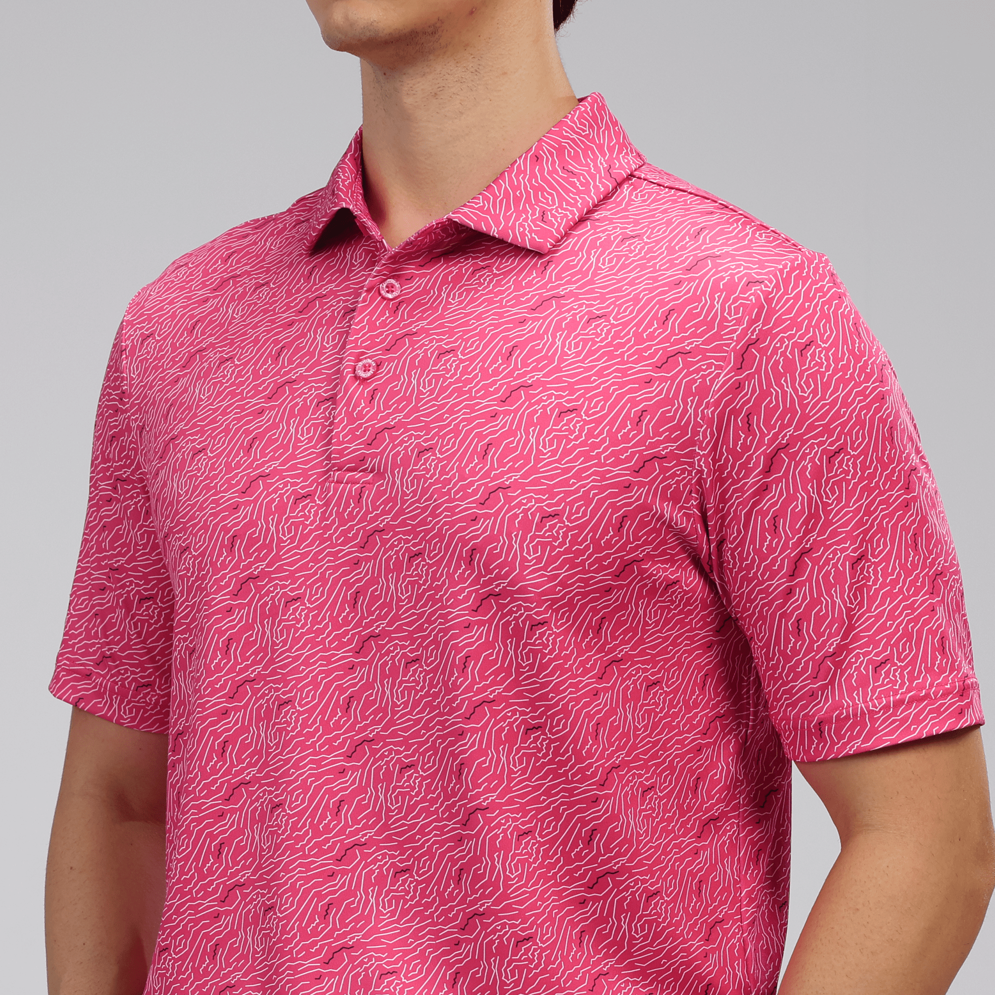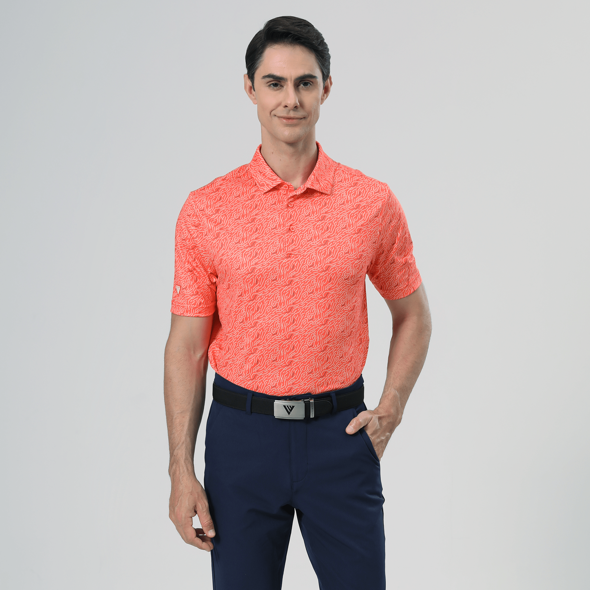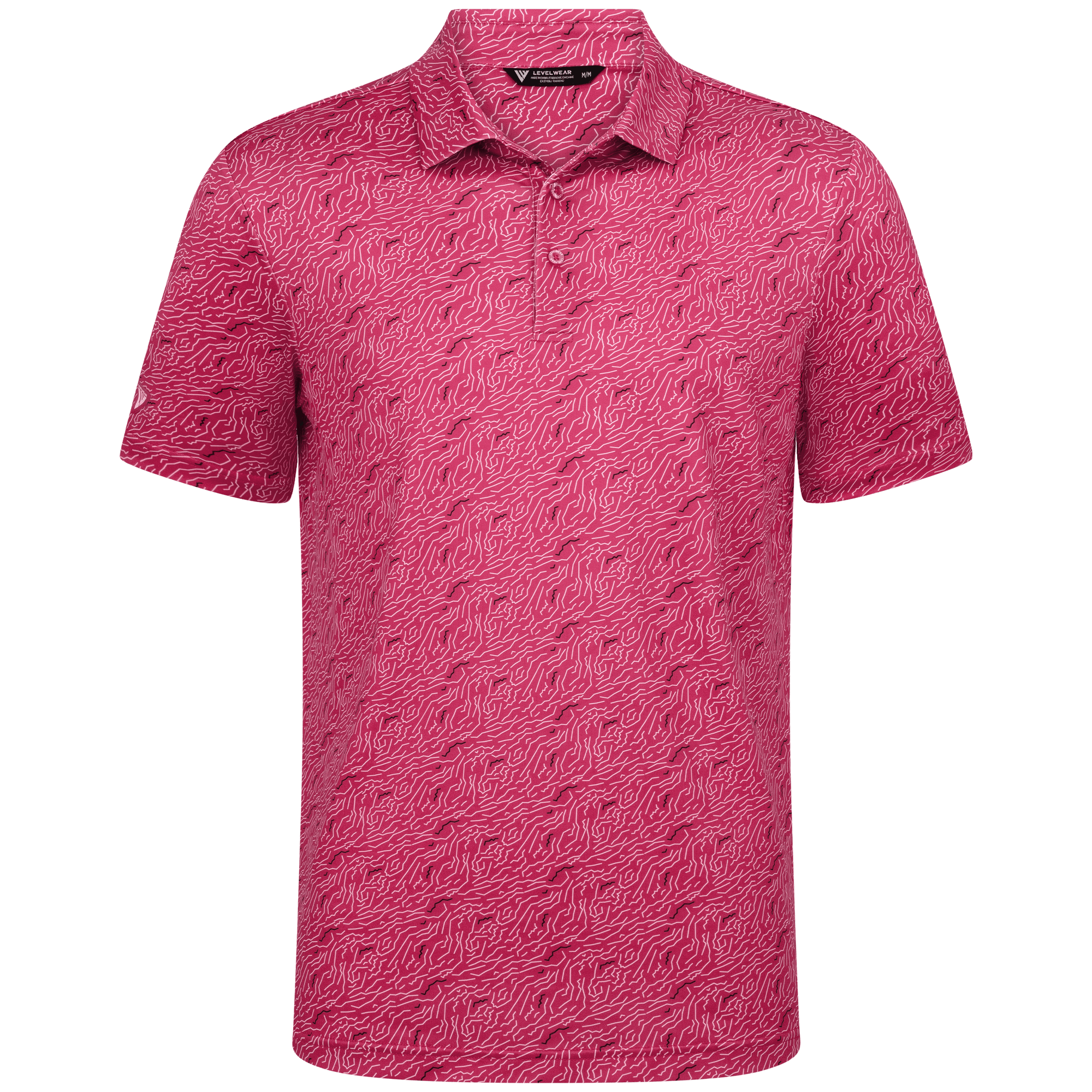 The men's Discovery polo is crafted from a blend of 91% polyester and 9% spandex, this polo features exceptional moisture-wicking properties that keep you dry and comfortable during even the most intense rounds. The anti-bacterial finish ensures freshness, while UPF 50+ protection shields you from harmful UV rays, making it ideal for sunny days on the links. With a self-fabric collar that includes a built-in collar stay, you can maintain a polished look throughout your game. The forward shoulder seams enhance your range of motion, allowing for unrestricted swings, and the high-low hem detail with side slits adds a modern touch. Finished with an all-over print, the Discovery polo combines innovative features with stylish design, making it a must-have for any golfer looking to elevate their game.