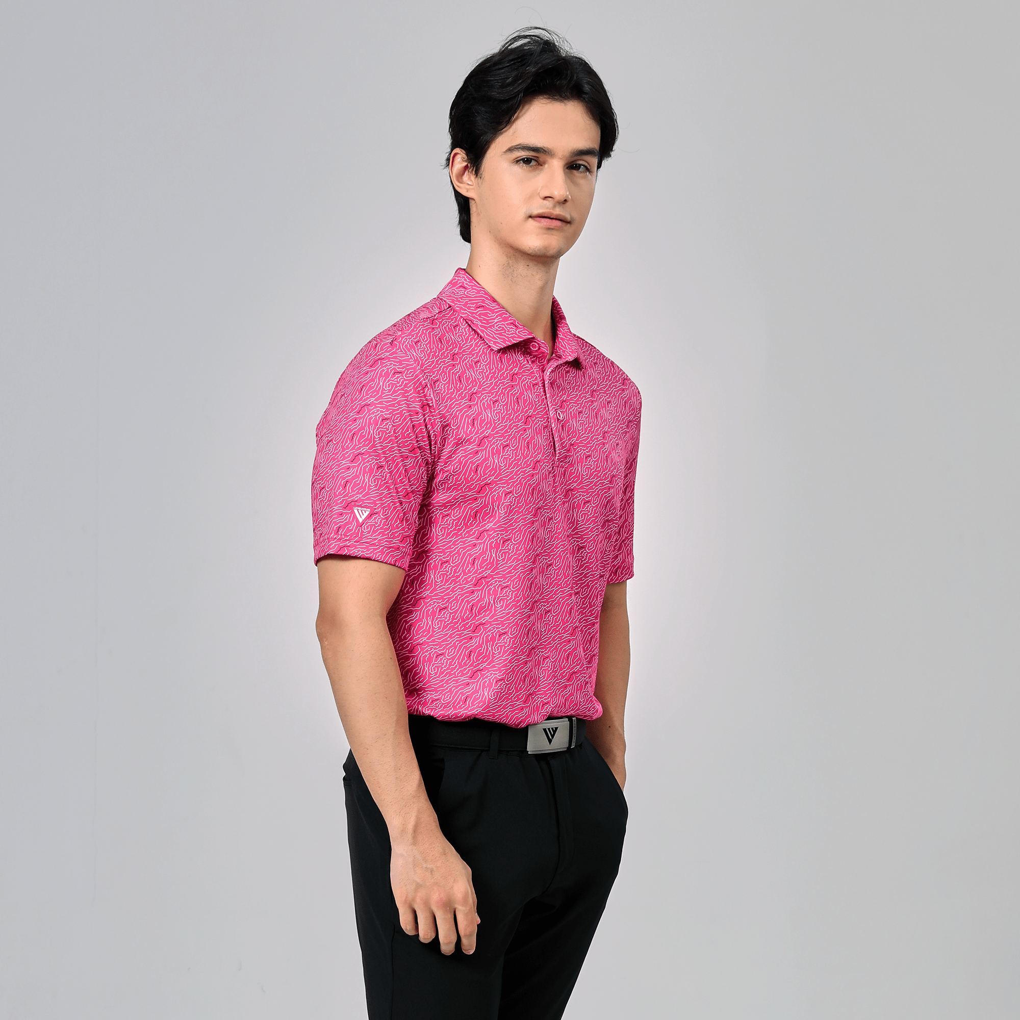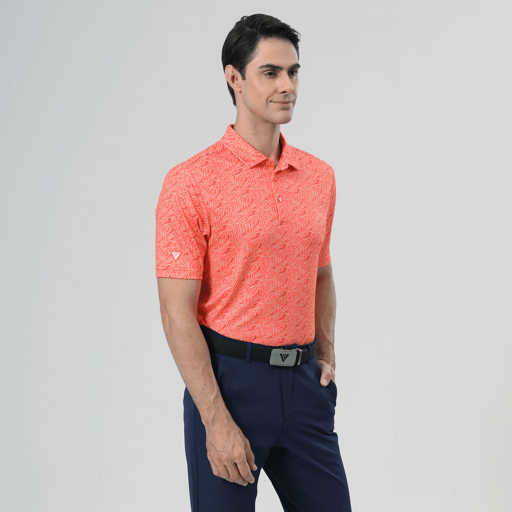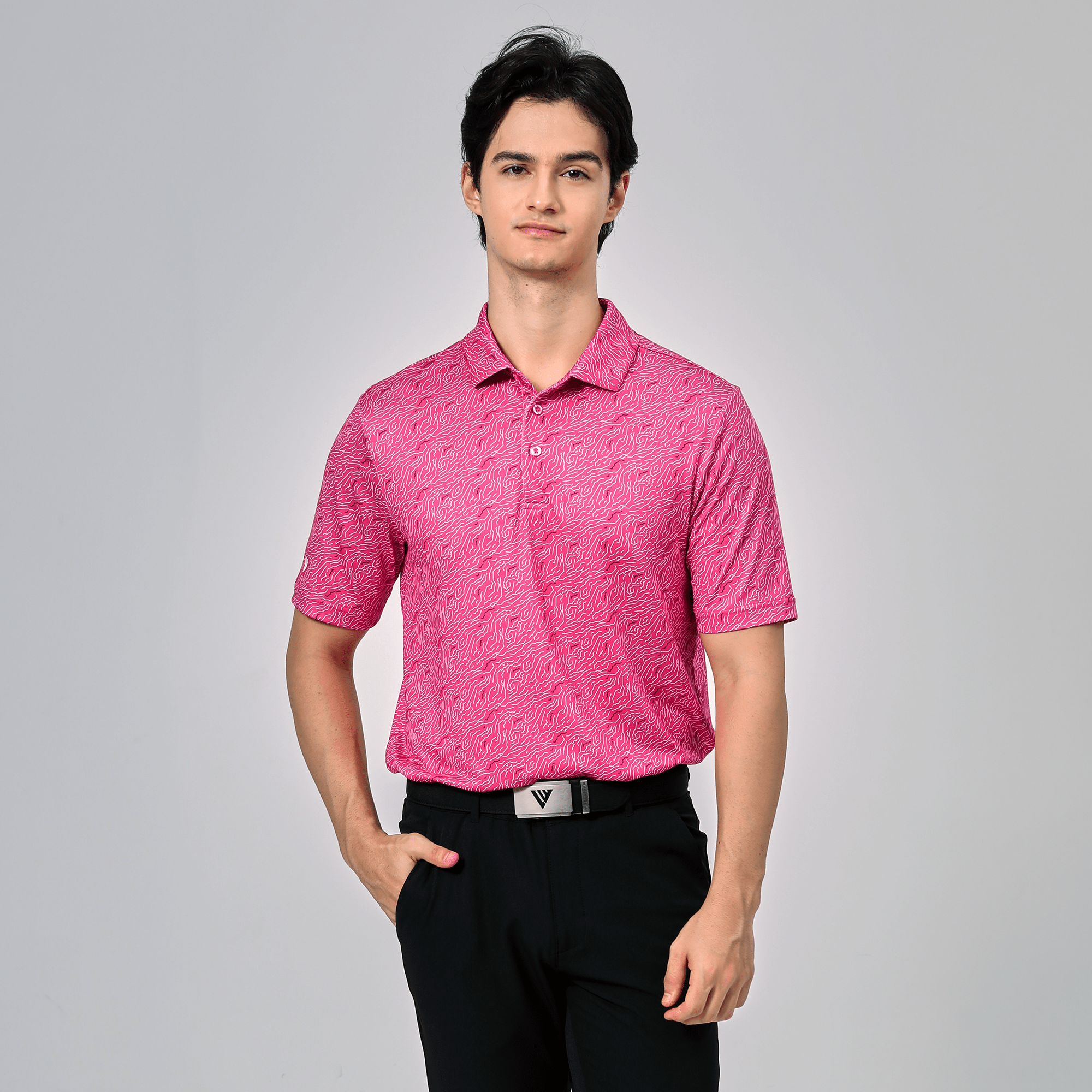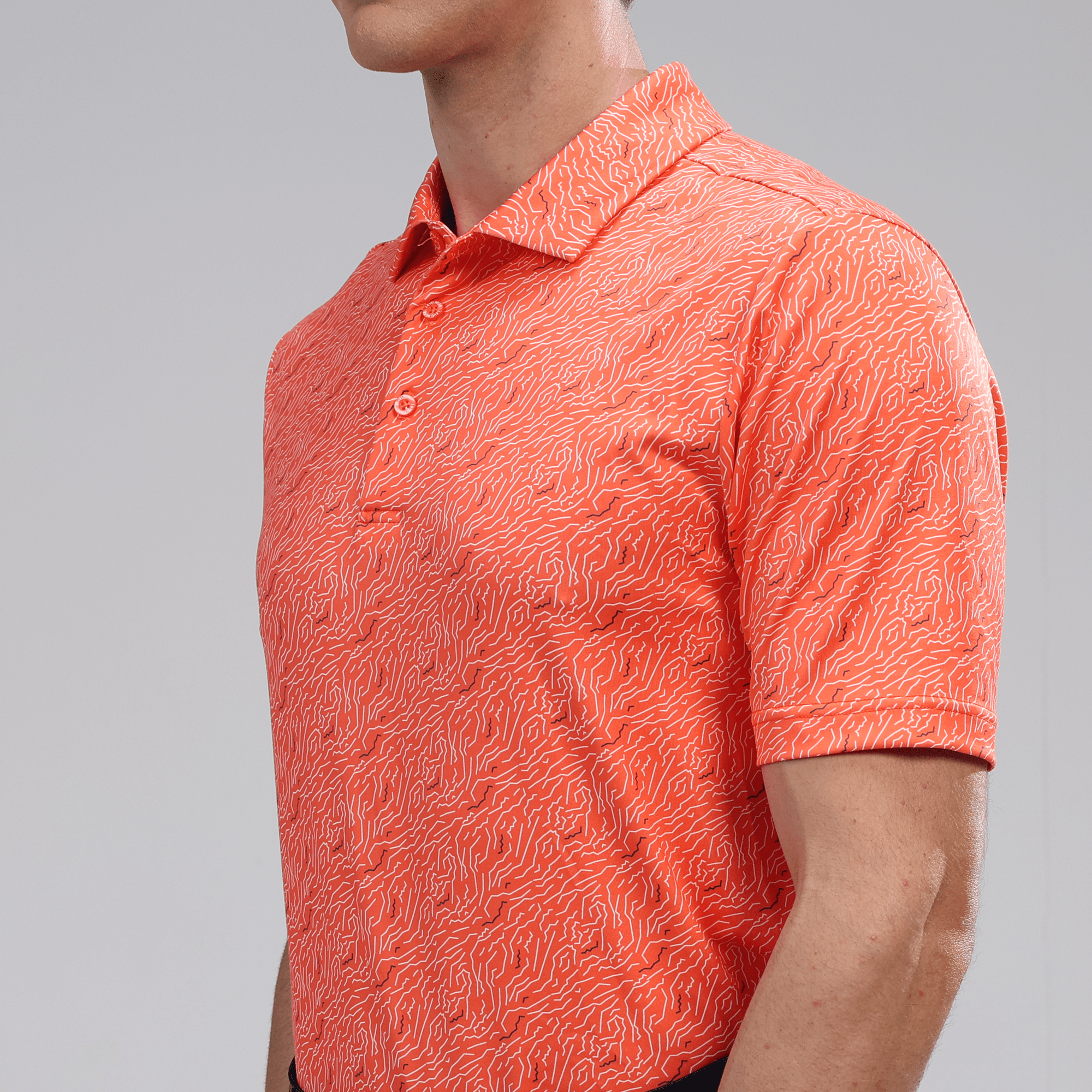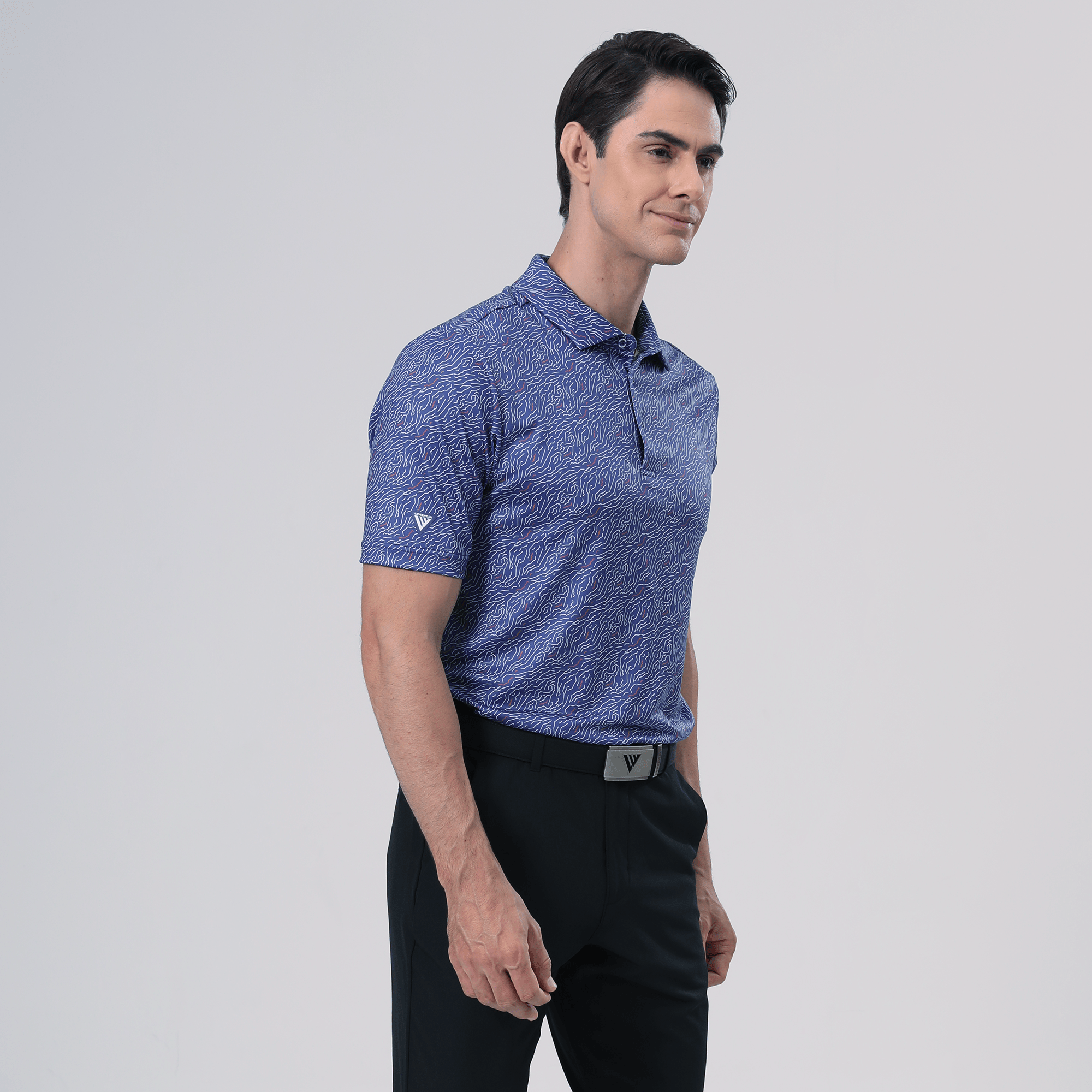 The men's Discovery polo is crafted from a blend of 91% polyester and 9% spandex, this polo features exceptional moisture-wicking properties that keep you dry and comfortable during even the most intense rounds. The anti-bacterial finish ensures freshness, while UPF 50+ protection shields you from harmful UV rays, making it ideal for sunny days on the links. With a self-fabric collar that includes a built-in collar stay, you can maintain a polished look throughout your game. The forward shoulder seams enhance your range of motion, allowing for unrestricted swings, and the high-low hem detail with side slits adds a modern touch. Finished with an all-over print, the Discovery polo combines innovative features with stylish design, making it a must-have for any golfer looking to elevate their game.