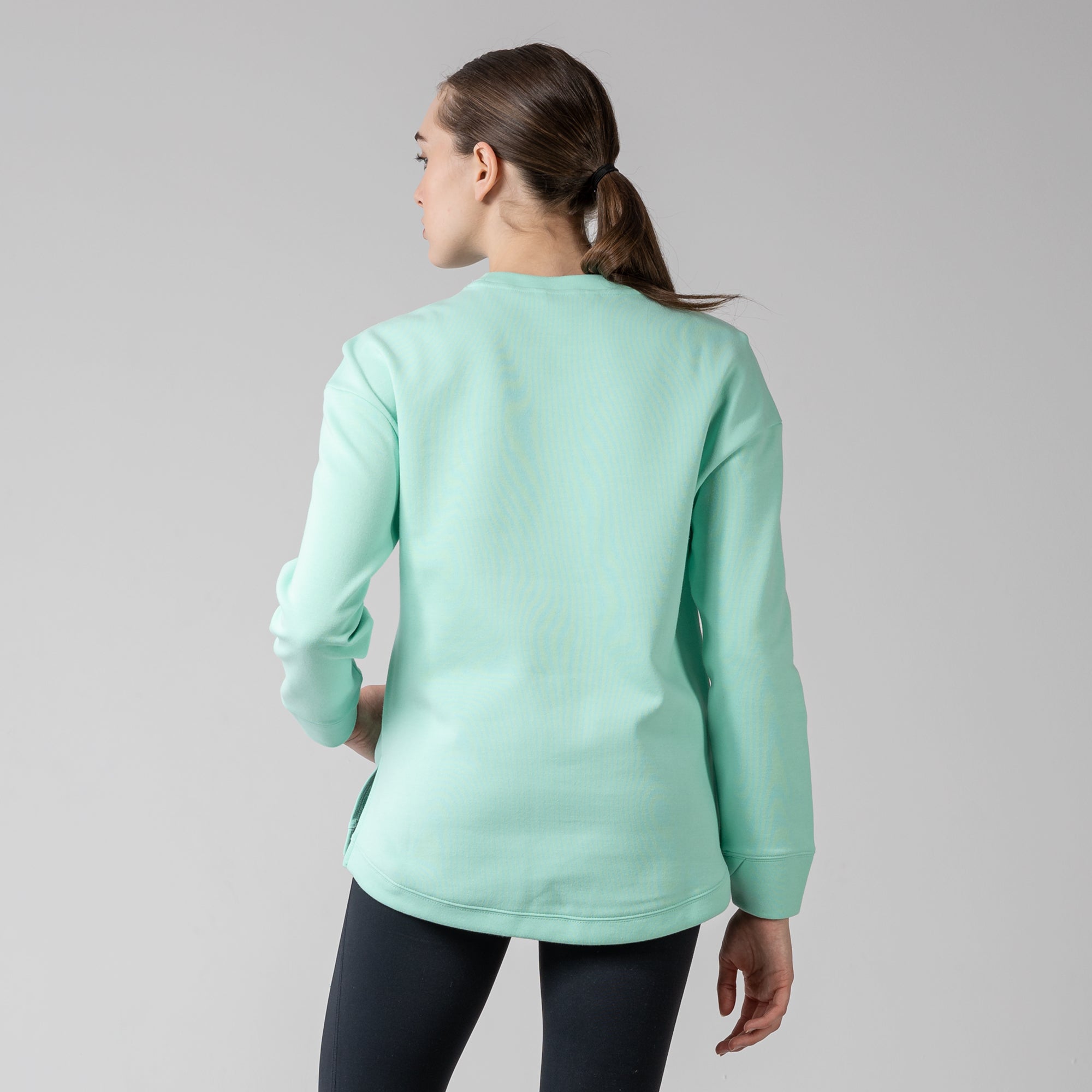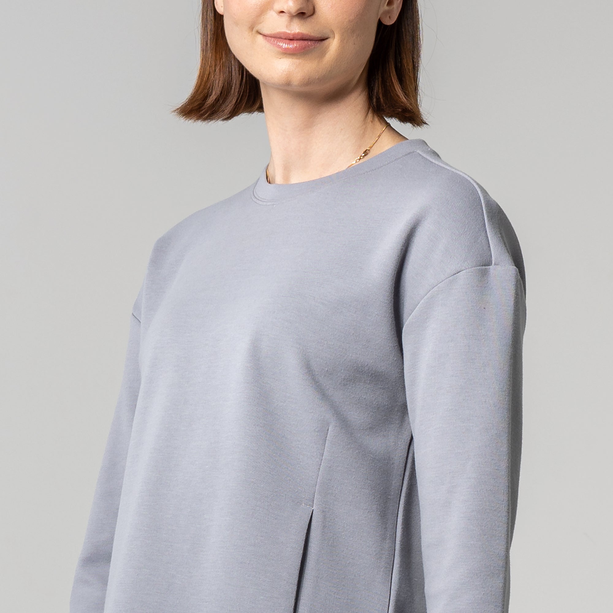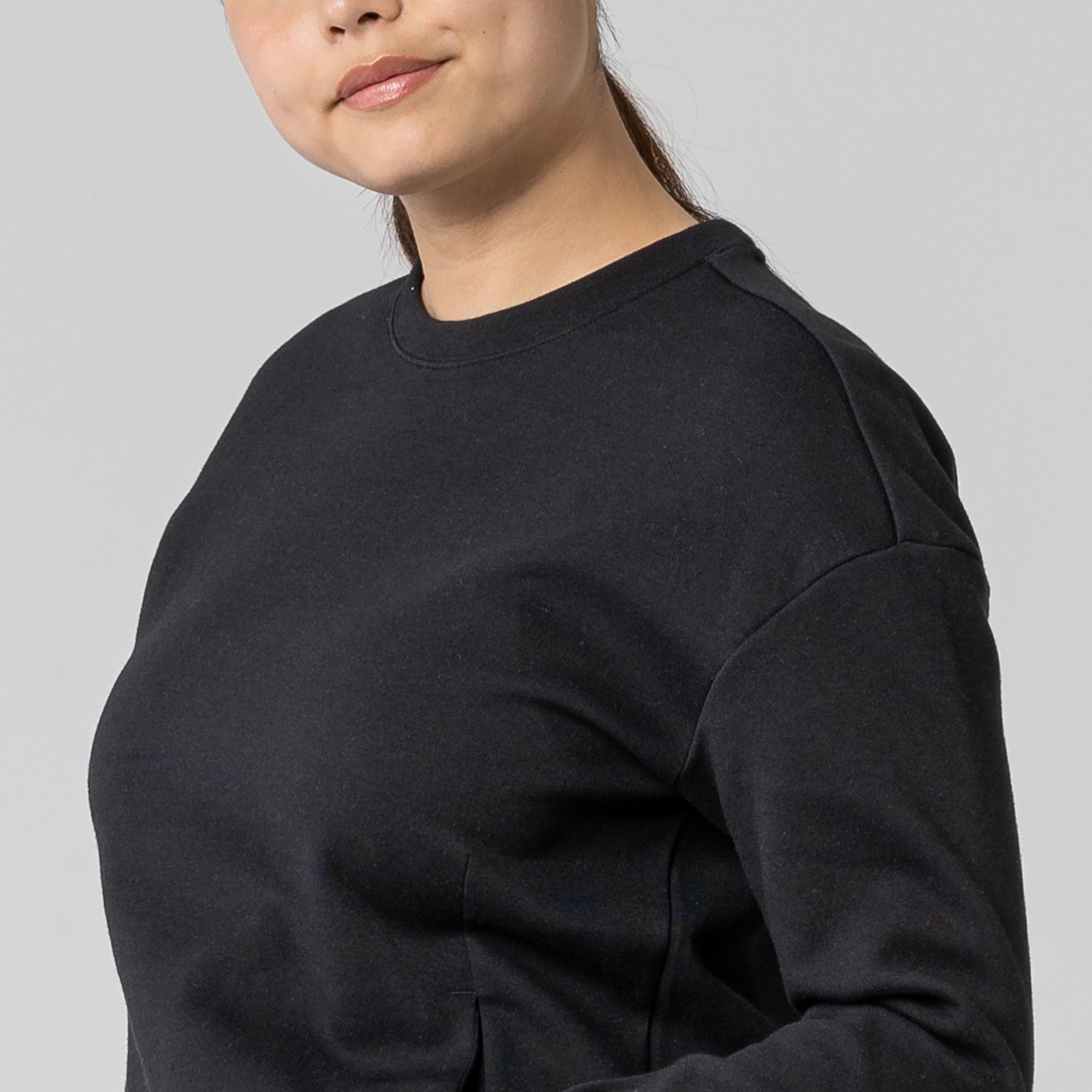The Fiona Long Sleeve is an oversized sweater that is crafted from soft interlock fabric, featuring a composition of 66% cotton and 34% polyester, providing both warmth and breathability. Its drop shoulder design enhances the relaxed fit, making it perfect for a laid-back look. Practical side pockets offer convenient storage, while side seam slits add a touch of sophistication and improve mobility. The banded cuffs with crossing openings not only keep the sleeves secure but also add a unique, stylish detail. Whether you're cozying up at home or stepping out for casual engagements, the Fiona combines effortless style with functional design.