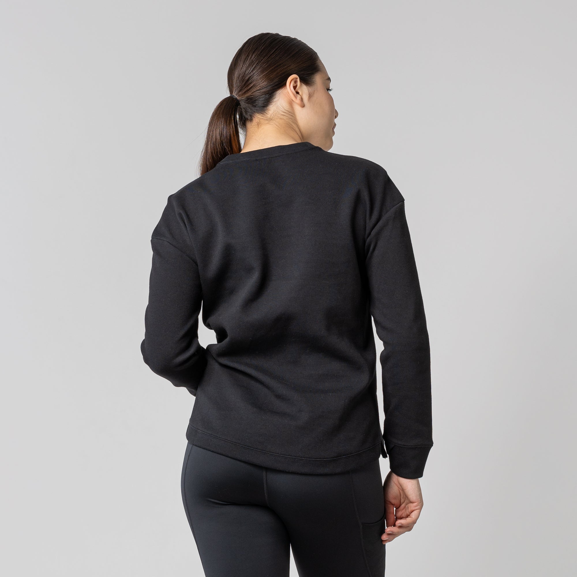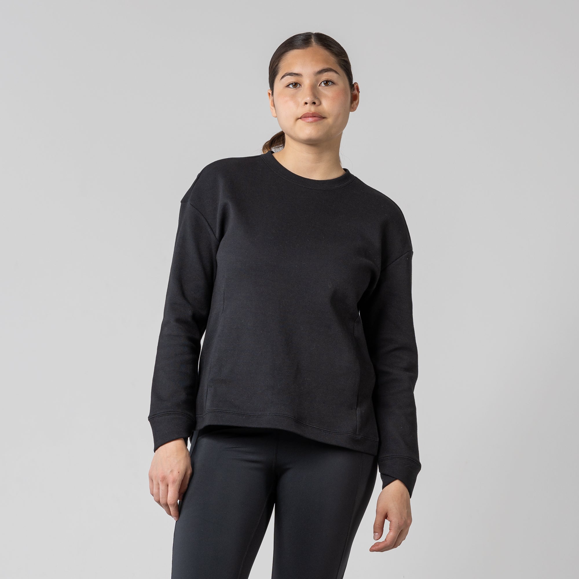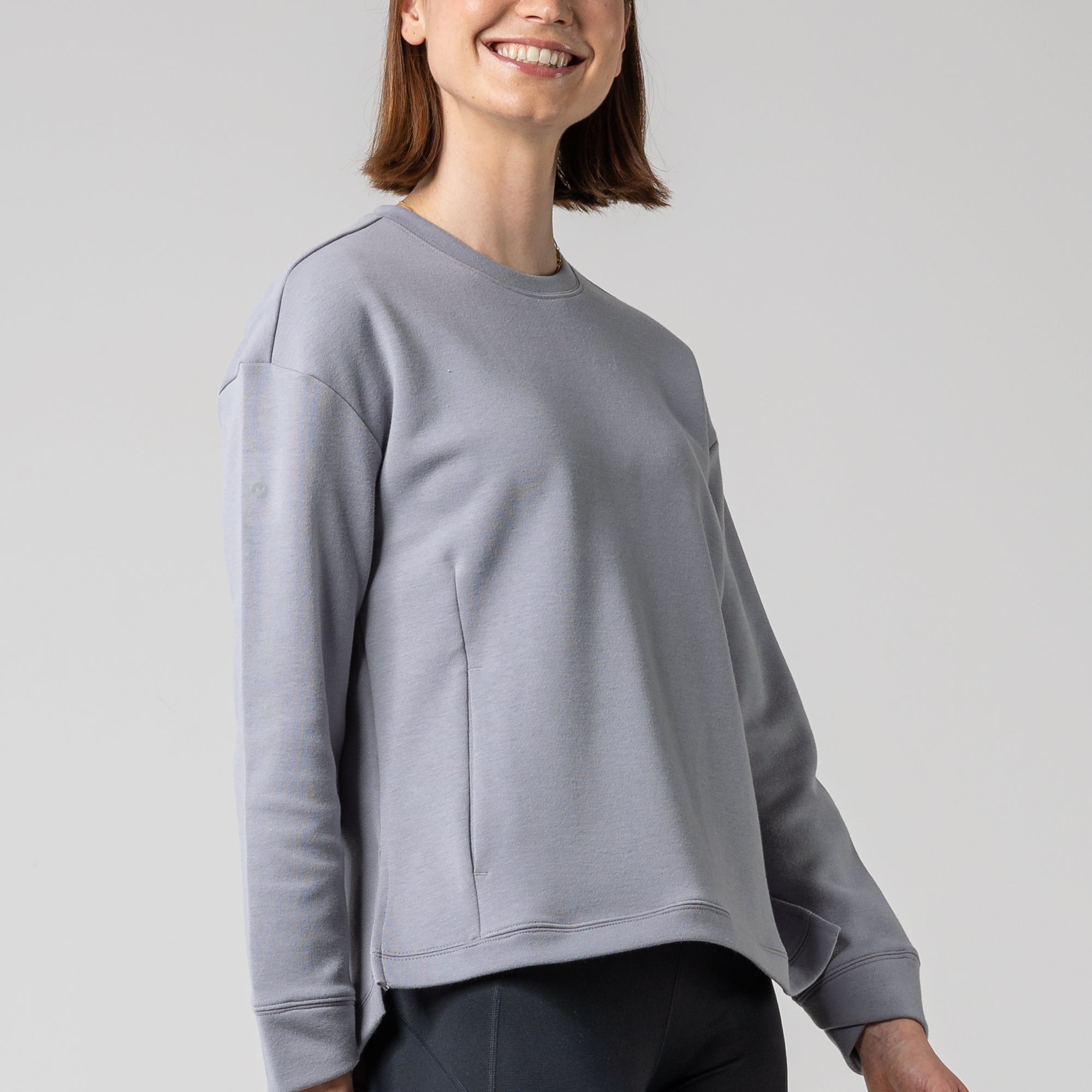 The Fiona Long Sleeve is an oversized sweater that is crafted from soft interlock fabric, featuring a composition of 66% cotton and 34% polyester, providing both warmth and breathability. Its drop shoulder design enhances the relaxed fit, making it perfect for a laid-back look. Practical side pockets offer convenient storage, while side seam slits add a touch of sophistication and improve mobility. The banded cuffs with crossing openings not only keep the sleeves secure but also add a unique, stylish detail. Whether you're cozying up at home or stepping out for casual engagements, the Fiona combines effortless style with functional design.