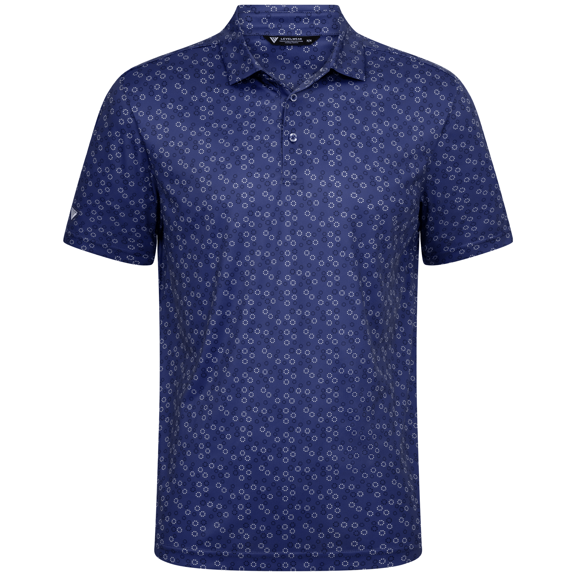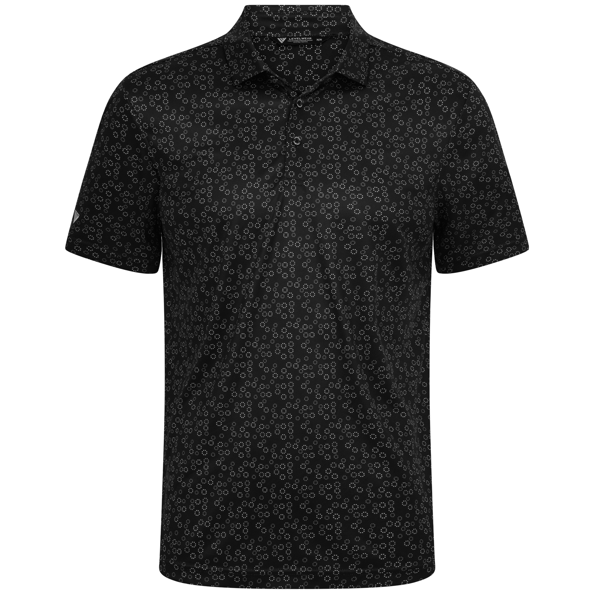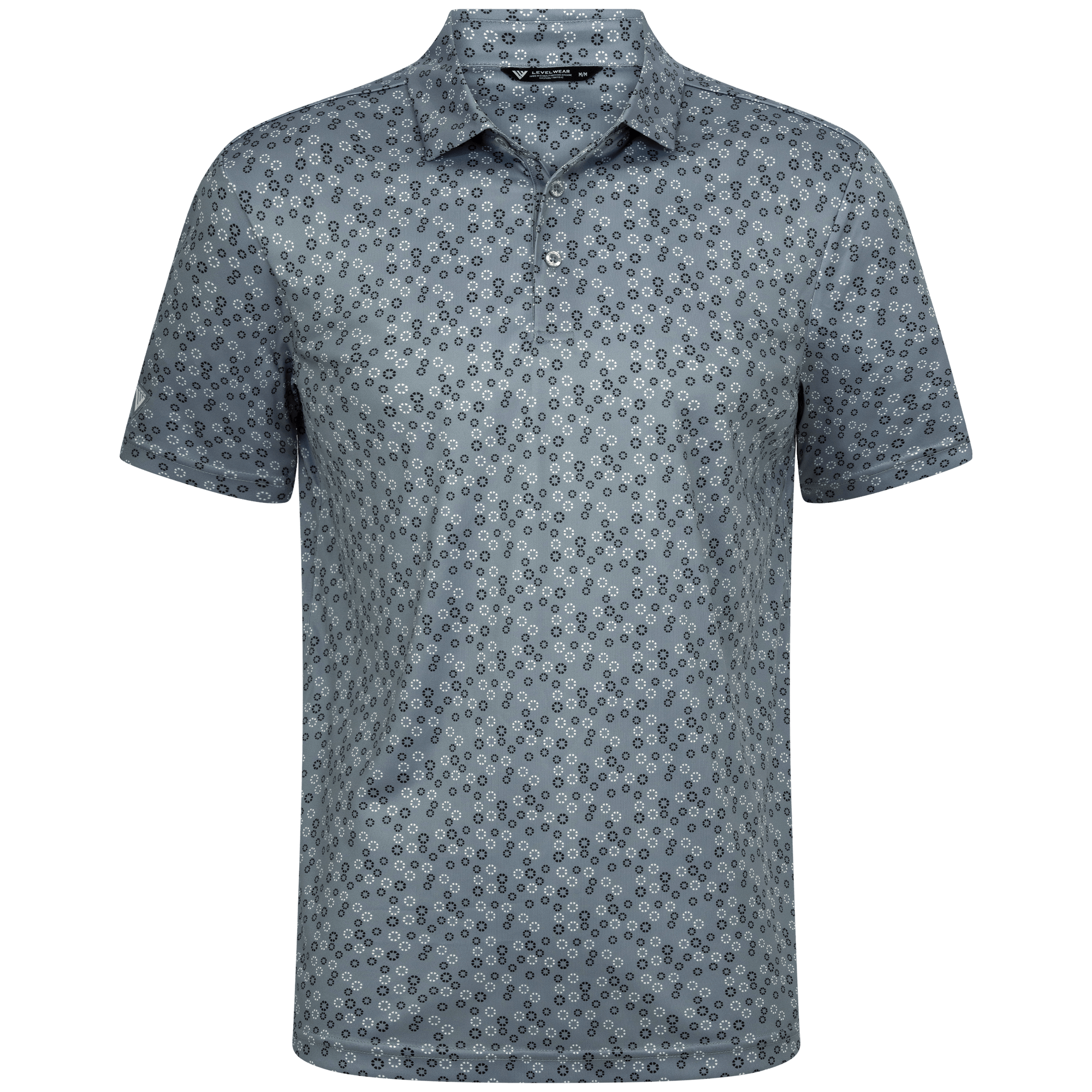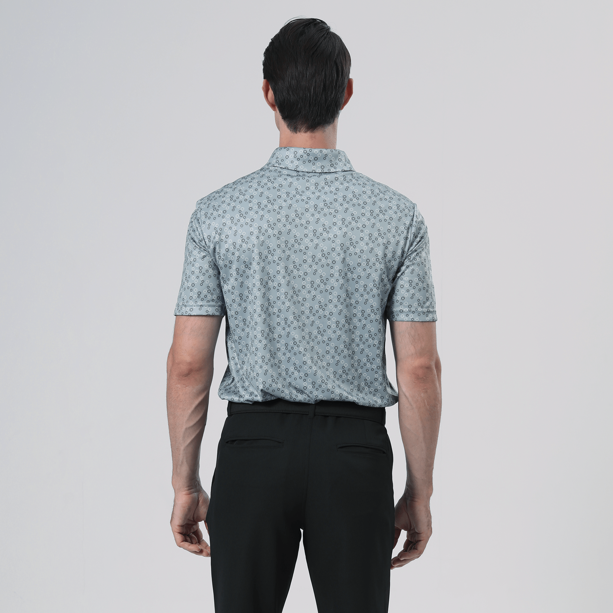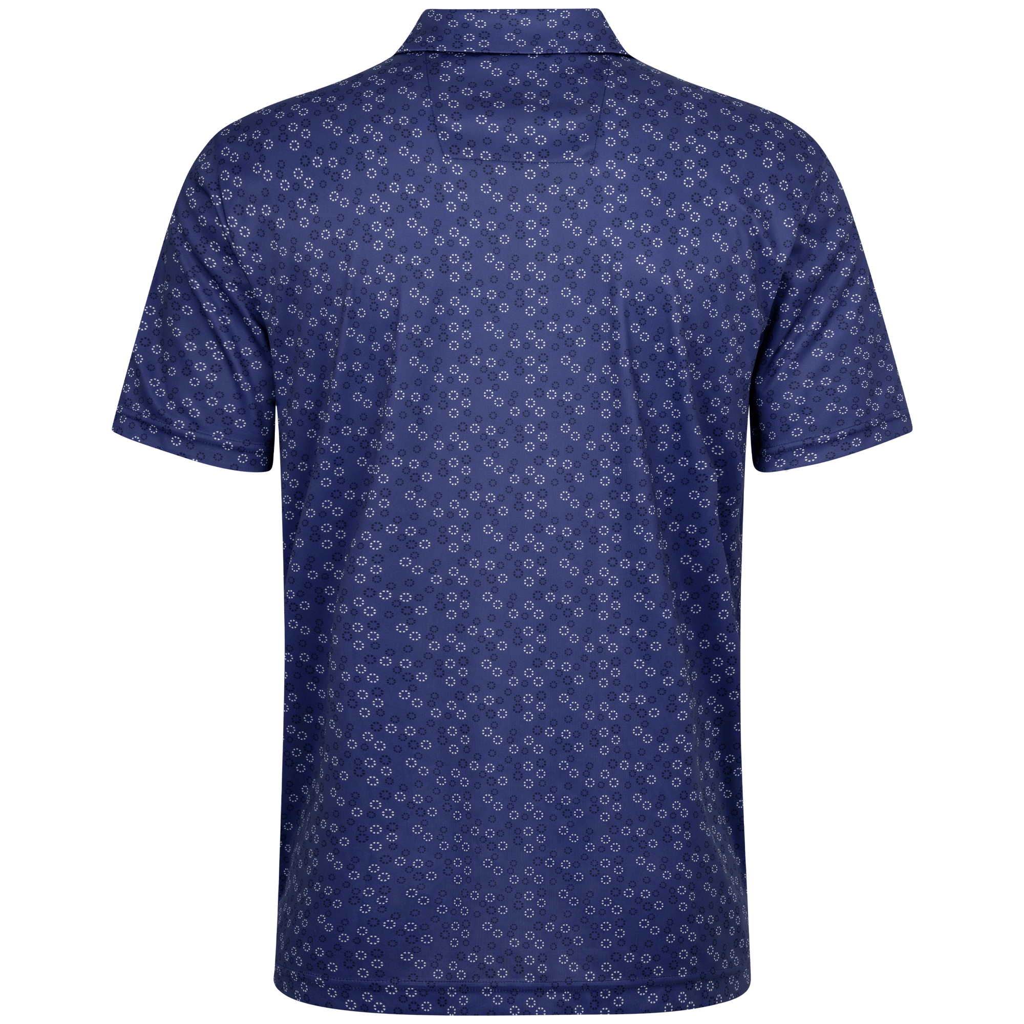 The men's Frost polo is expertly crafted for golfers who demand performance and style on the course. Made from 100% recycled polyester, this polo features advanced moisture-wicking technology that efficiently pulls sweat away from the skin, keeping you cool and dry during your game. The self-fabric collar, equipped with a built-in collar stay, ensures a polished look throughout your swing. Forward shoulder seams provide an enhanced range of motion, allowing for unrestricted movement, while the high-low hem detail with side slits adds a modern touch and extra flexibility. The all-over print lends a unique and stylish flair, making the Frost polo not just functional but also a standout piece in your golf wardrobe. Whether you're teeing off or enjoying a casual day out, this polo combines eco-friendly materials with thoughtful design to keep you looking sharp and feeling great.