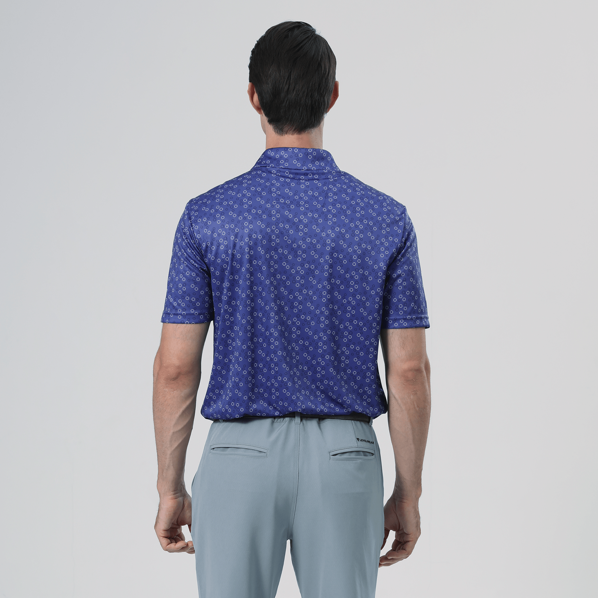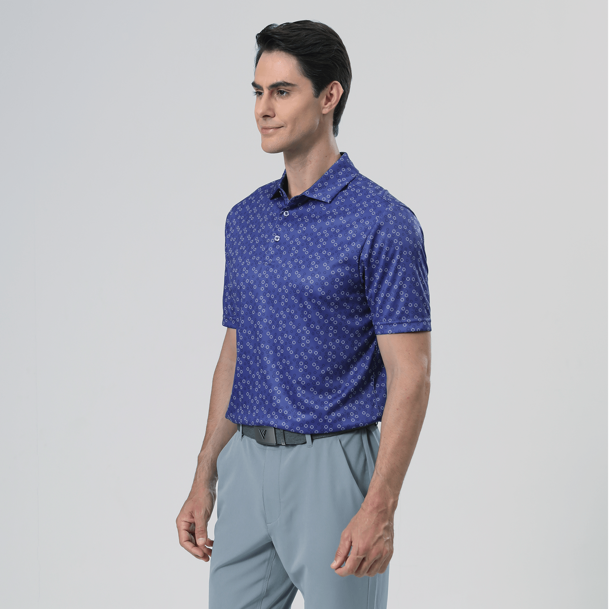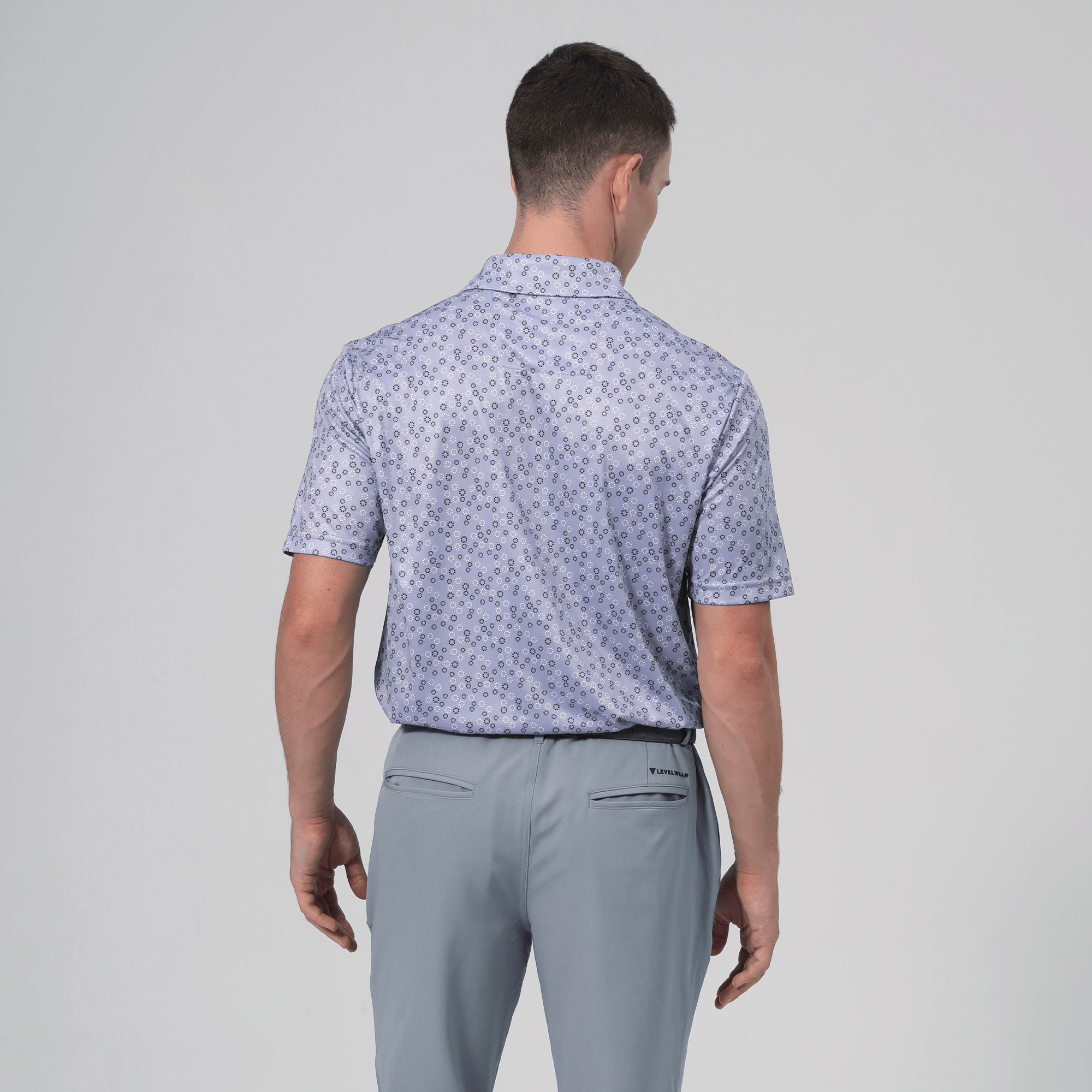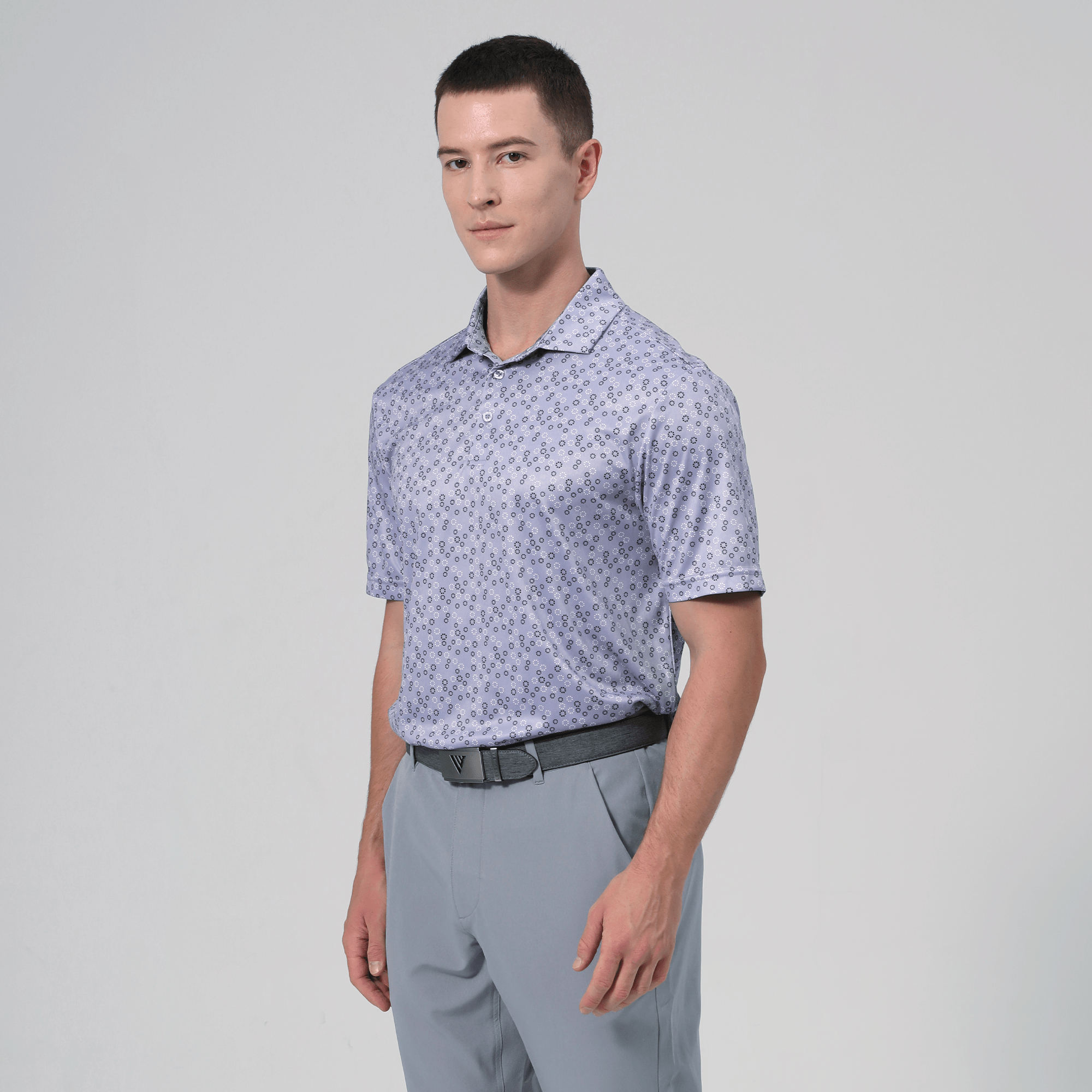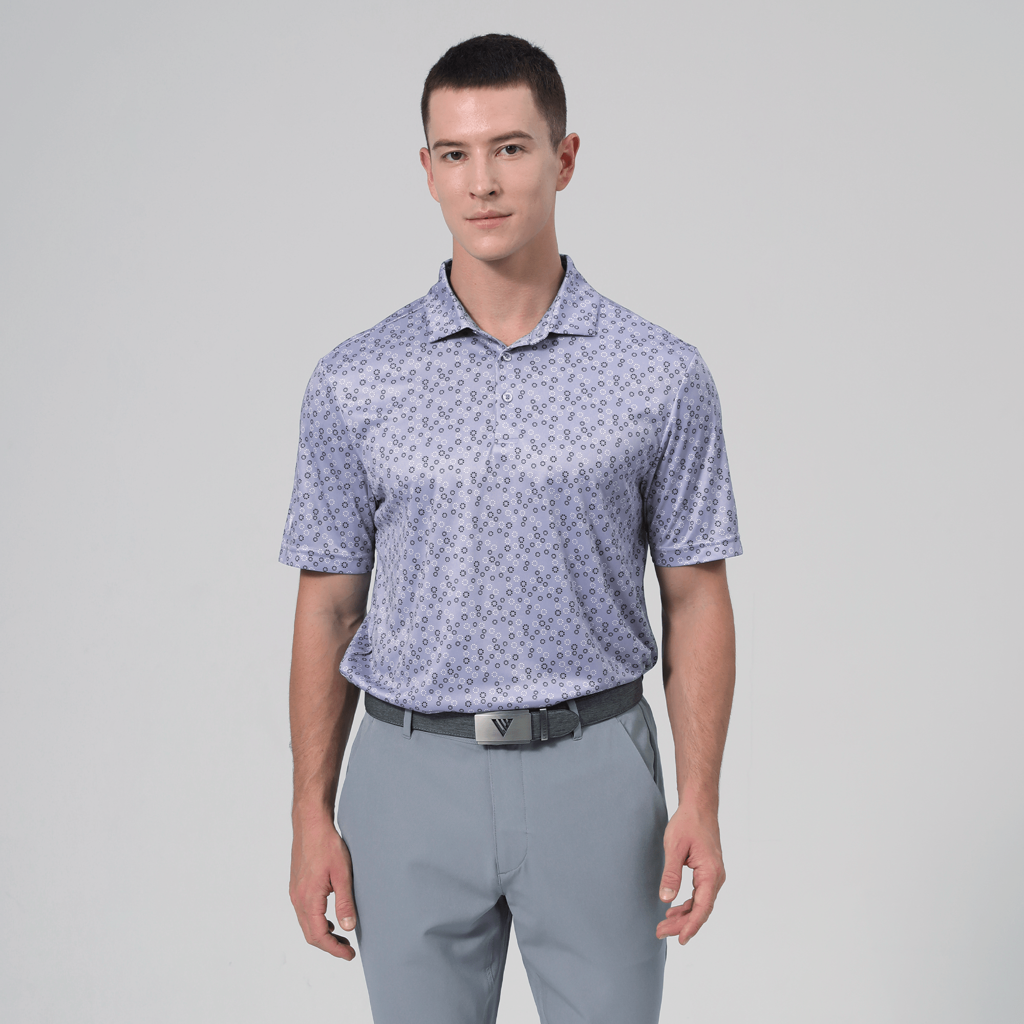 The men's Frost polo is expertly crafted for golfers who demand performance and style on the course. Made from 100% recycled polyester, this polo features advanced moisture-wicking technology that efficiently pulls sweat away from the skin, keeping you cool and dry during your game. The self-fabric collar, equipped with a built-in collar stay, ensures a polished look throughout your swing. Forward shoulder seams provide an enhanced range of motion, allowing for unrestricted movement, while the high-low hem detail with side slits adds a modern touch and extra flexibility. The all-over print lends a unique and stylish flair, making the Frost polo not just functional but also a standout piece in your golf wardrobe. Whether you're teeing off or enjoying a casual day out, this polo combines eco-friendly materials with thoughtful design to keep you looking sharp and feeling great.