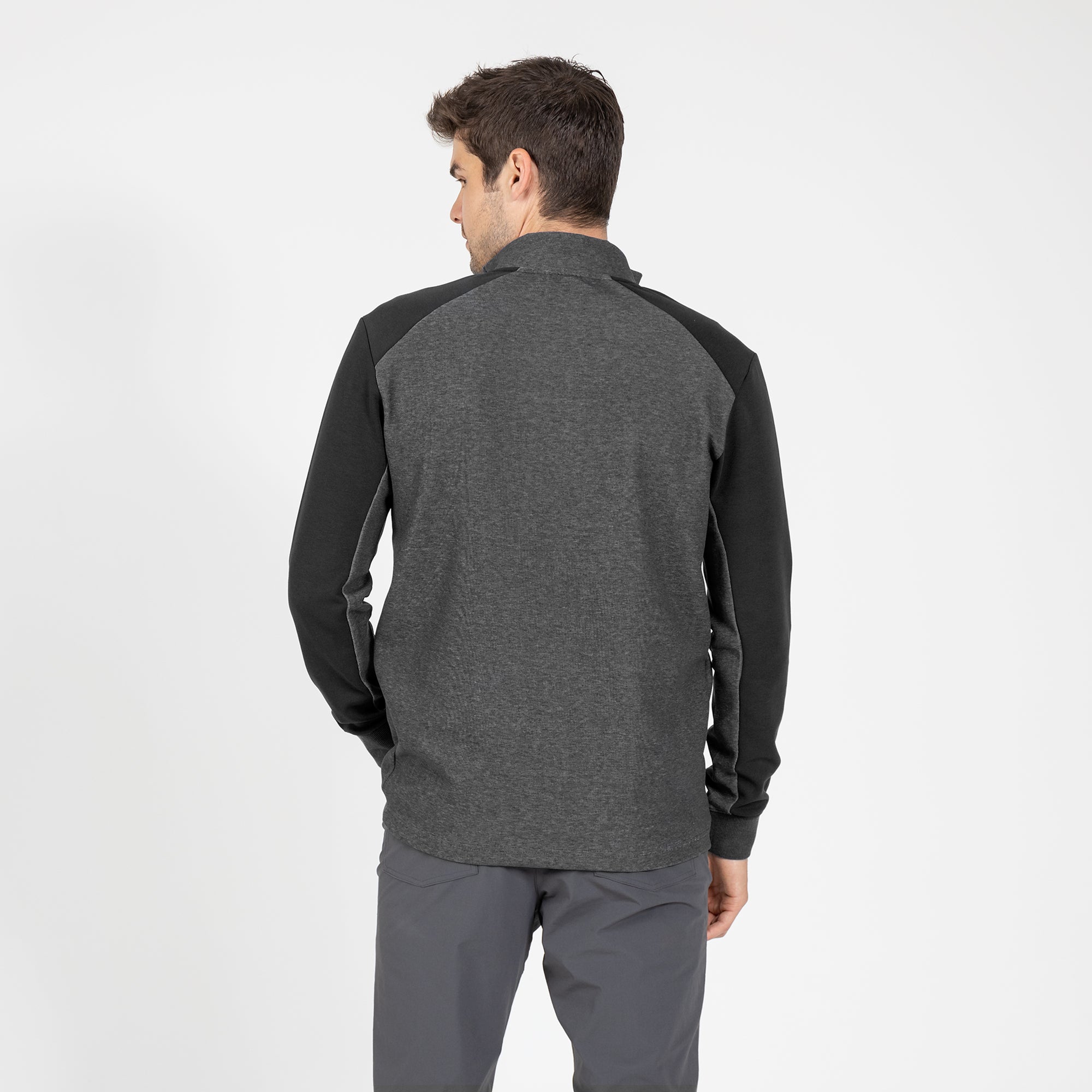 The men's Galaxy is a thoughtfully designed garment that merges comfort with resilience, ideal for variable weather conditions. Crafted from a blend of 57% cotton, 38% polyester, and 5% spandex, this piece offers a comfortable stretch, enhanced by the softness of cotton and the durability of polyester. It features contrast interlock fabric that adds a subtle texture and visual interest. A water-repellent zipper ensures functionality in damp weather, keeping moisture out and warmth in. The ribbed cuffs and forwarded shoulder seams contribute to a better fit and increased comfort, allowing for greater freedom of movement. Whether you're facing a brisk wind or a light drizzle, the Men's Galaxy is designed to keep you comfortable and stylish in the great outdoors.