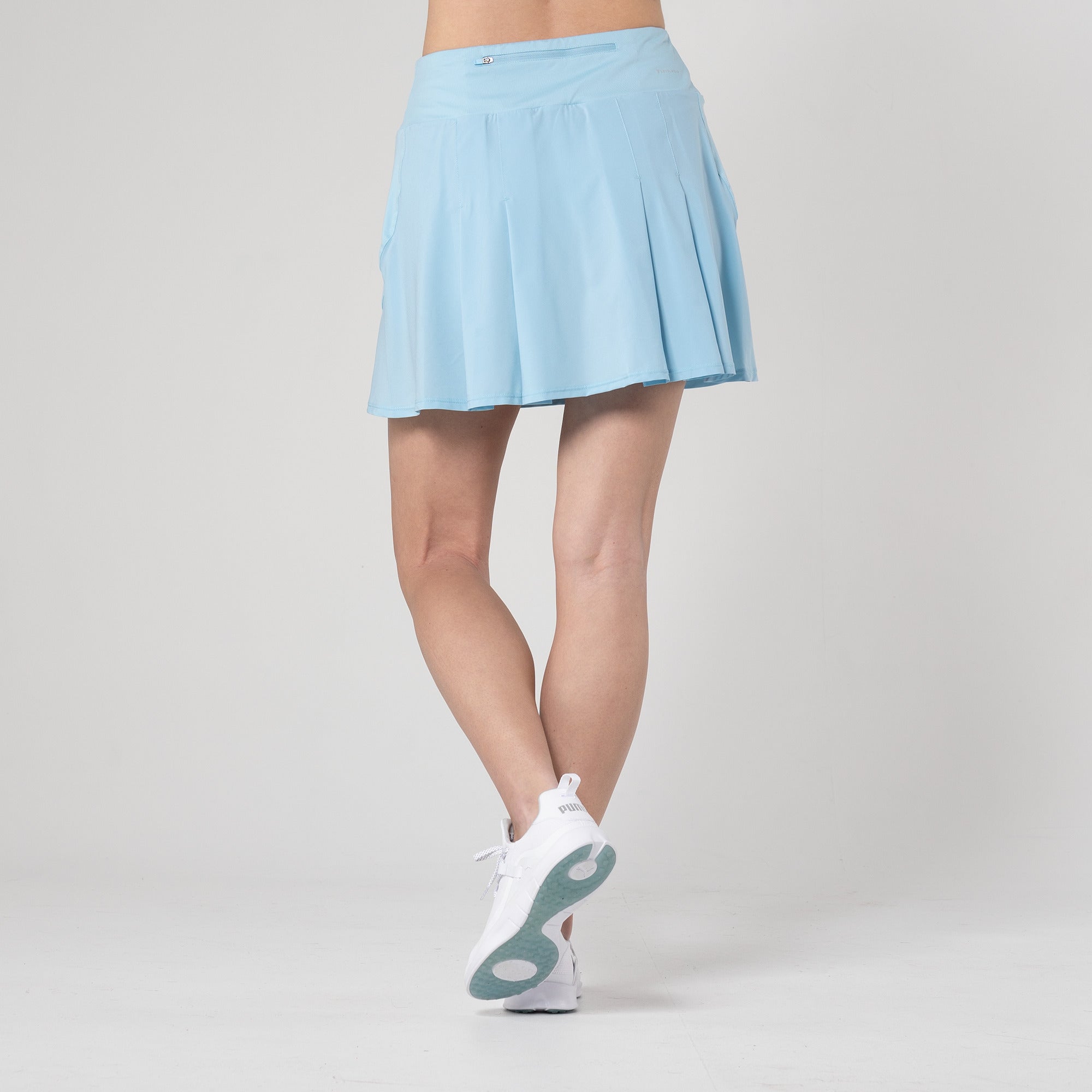 Elevate your style with the Glee Women's Skort. Crafted from a blend of 86% Polyester and 14% Spandex, it offers a comfortable and flexible fit. The skort features an extra-wide contrast waistband for both style and a secure fit, and a convenient back pocket with a zipper. Back knife pleats in lightweight fabric complete this skort, making it a fashionable and functional choice for your active lifestyle.