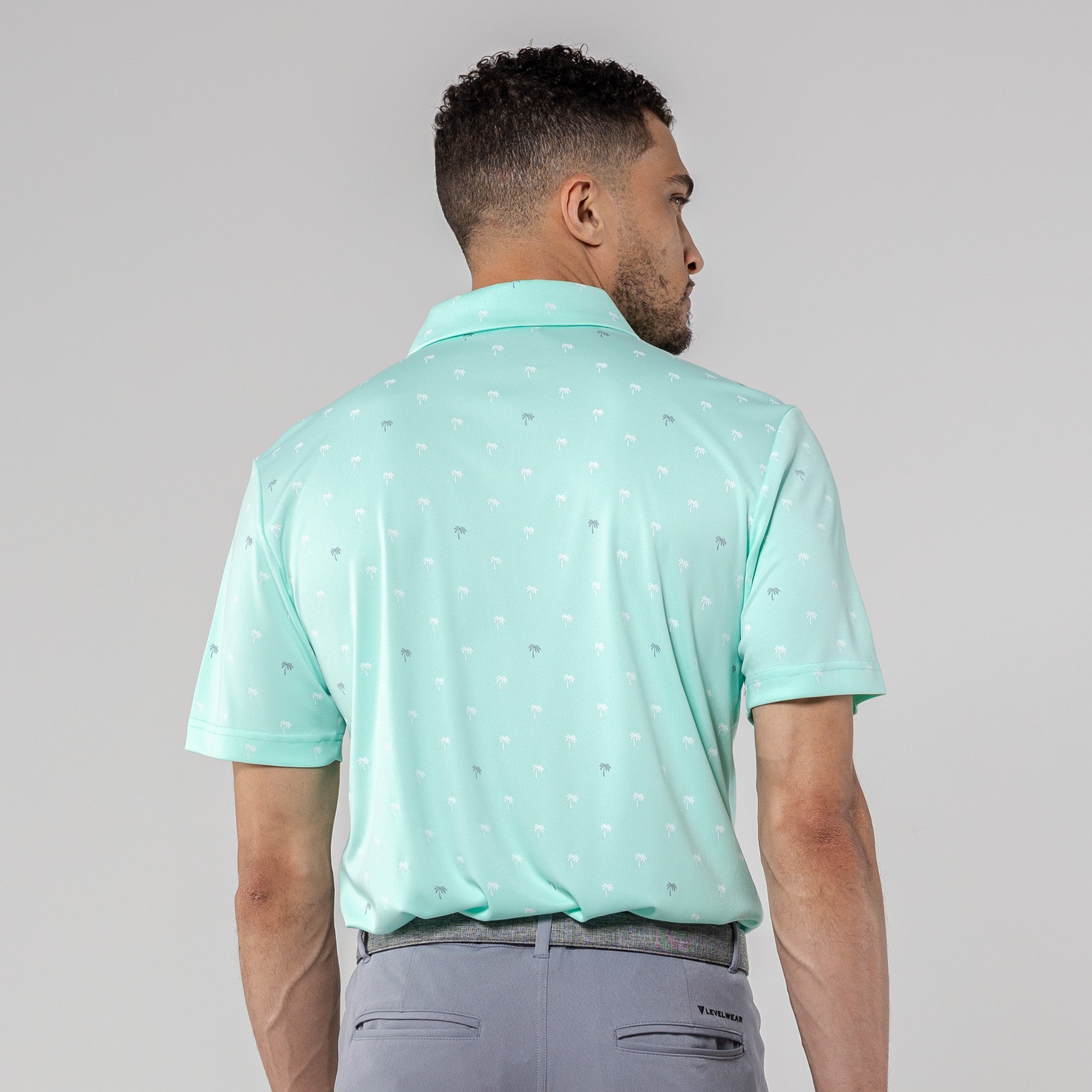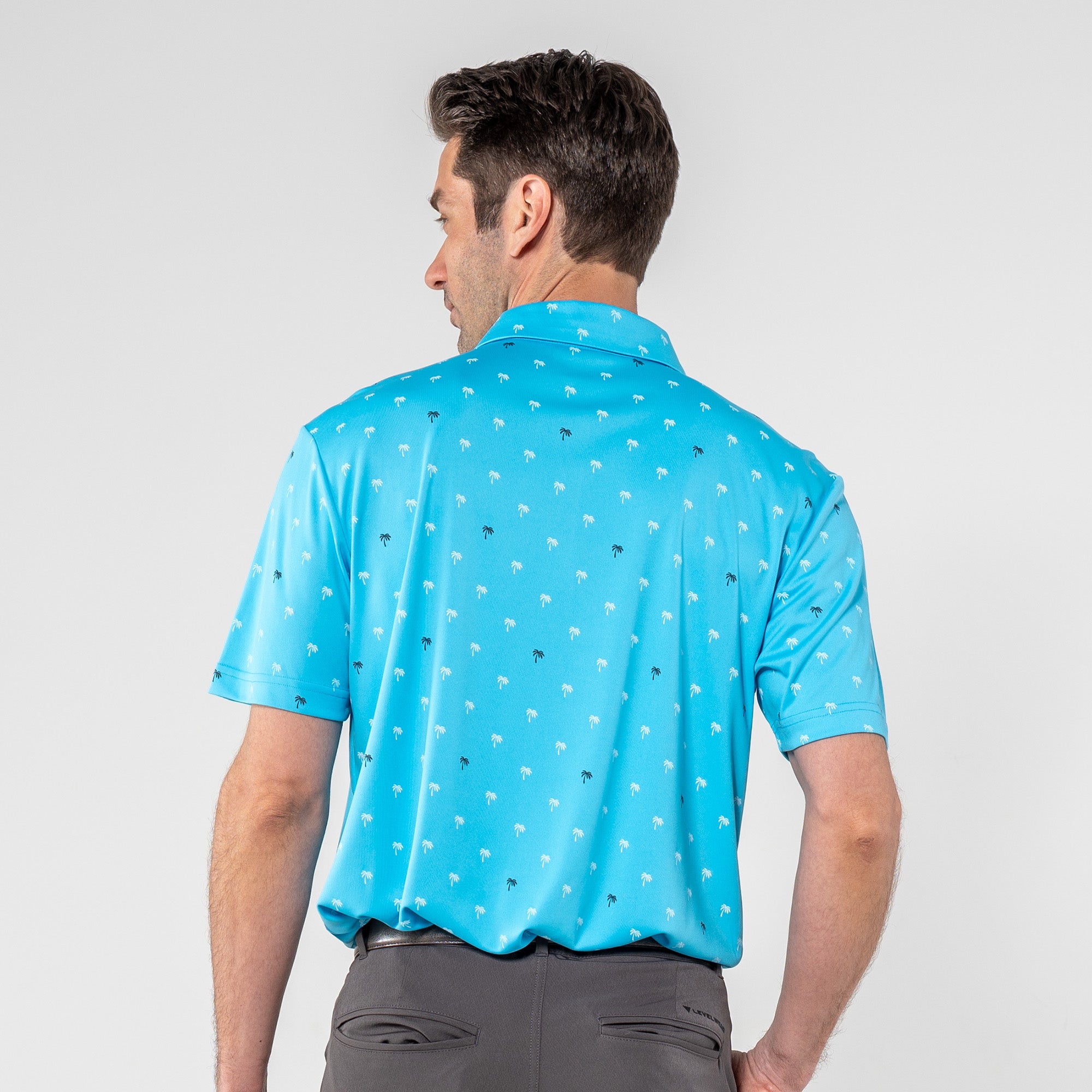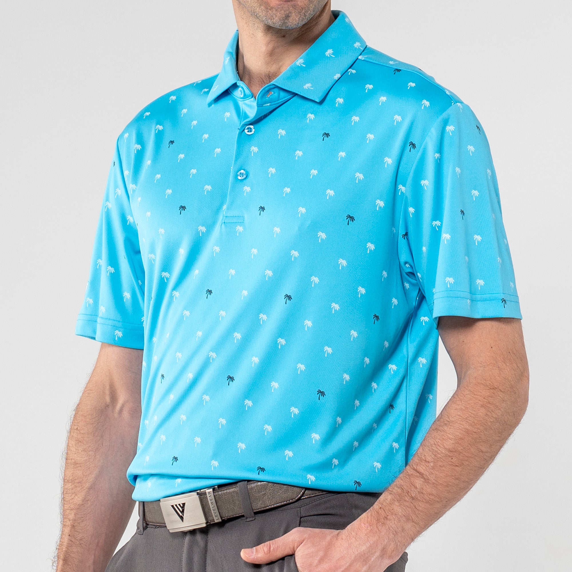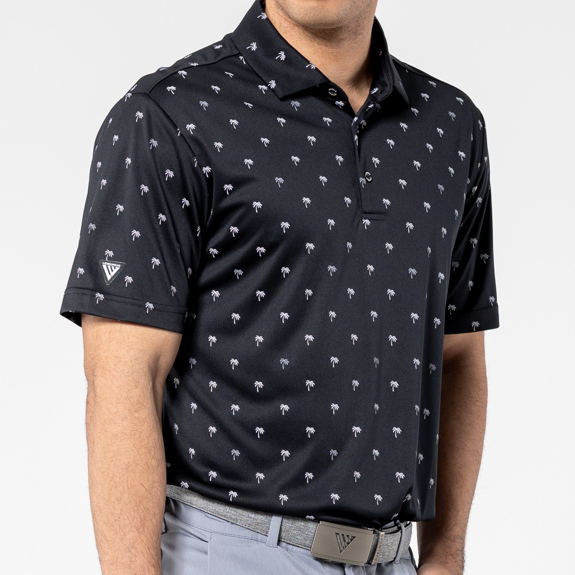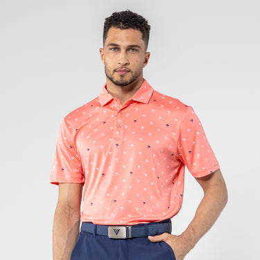 Step into the sunshine with the Groove Polo. Its fun, all-over palm tree print brings a touch of paradise to your day, while the moisture-wicking and anti-static properties keep you feeling fresh. The self-fabric collar with a built-in collar stay adds a polished touch to your casual look, making the Groove Polo your go-to choice for a blend of style and comfort.