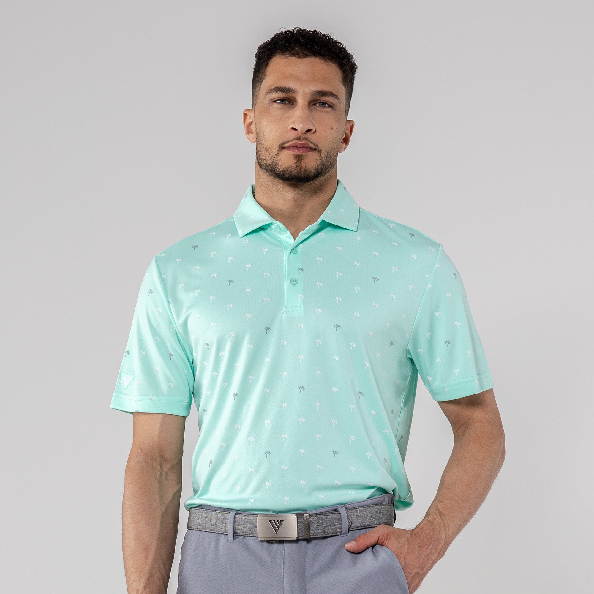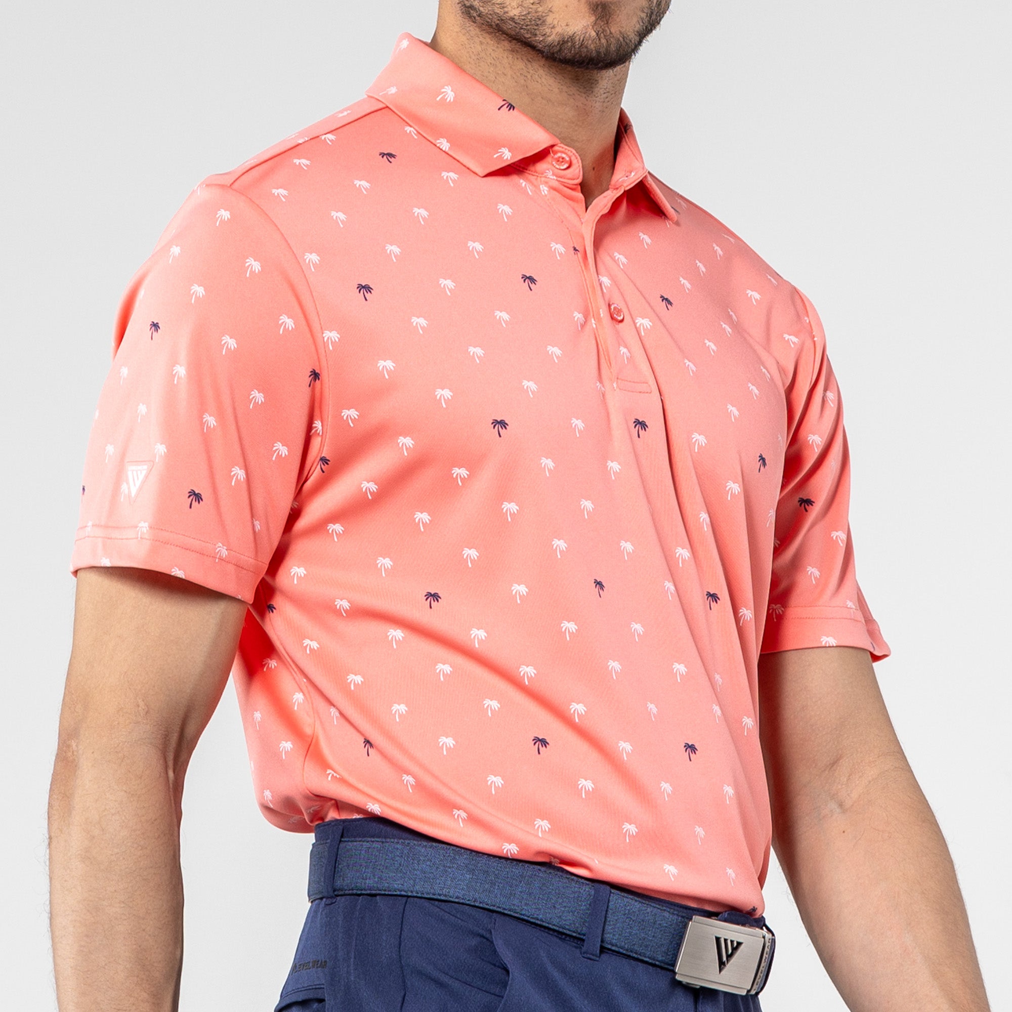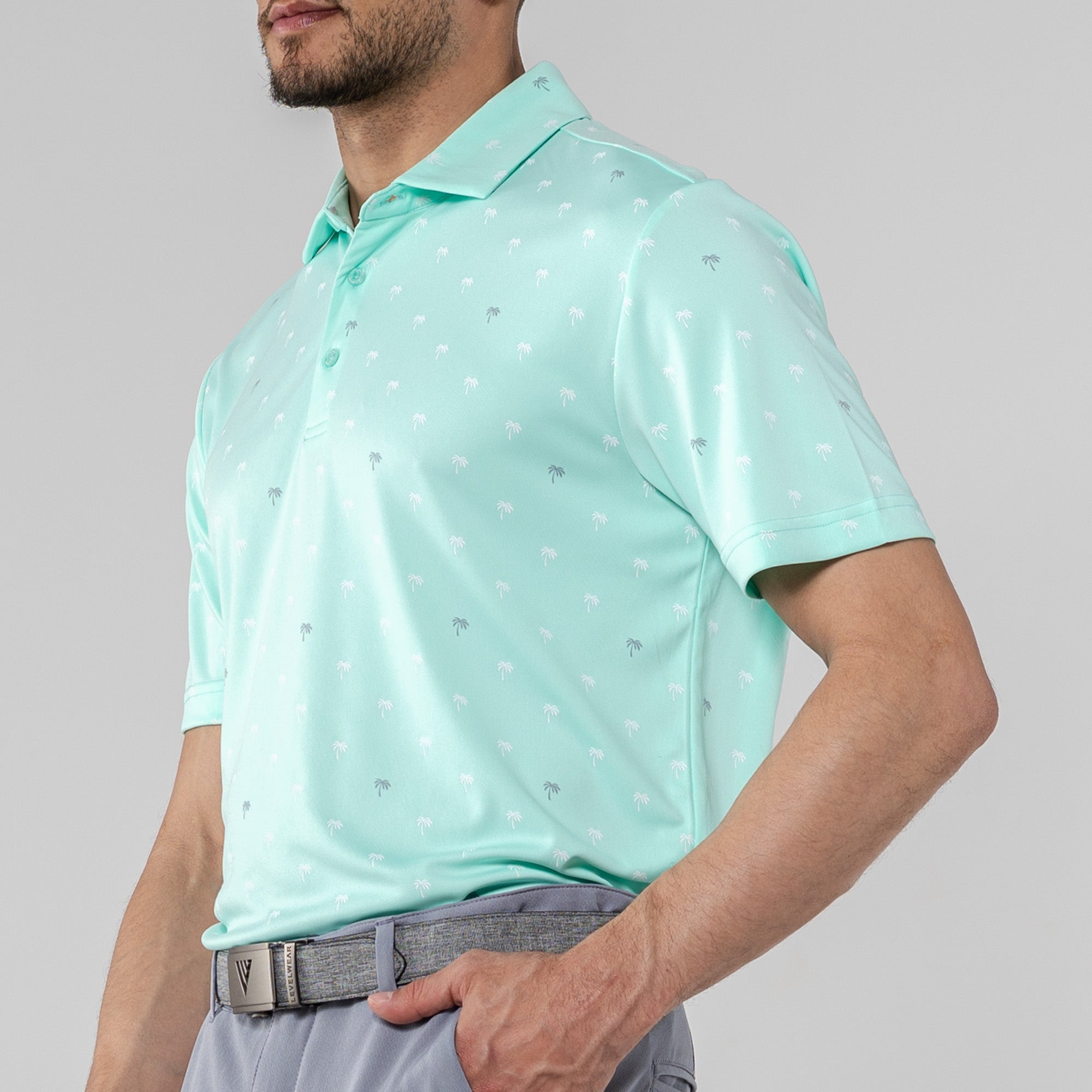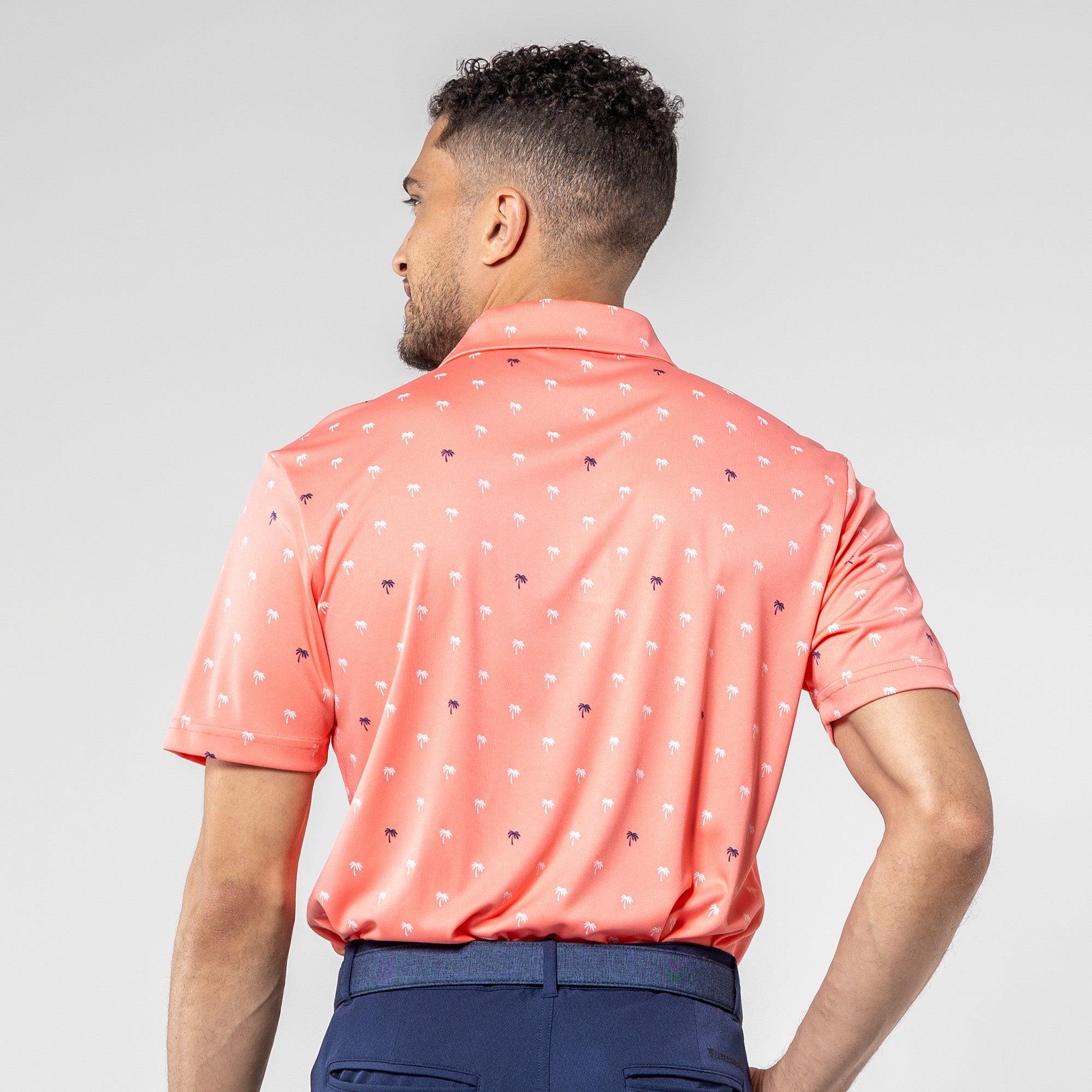Step into the sunshine with the Groove Polo. Its fun, all-over palm tree print brings a touch of paradise to your day, while the moisture-wicking and anti-static properties keep you feeling fresh. The self-fabric collar with a built-in collar stay adds a polished touch to your casual look, making the Groove Polo your go-to choice for a blend of style and comfort.