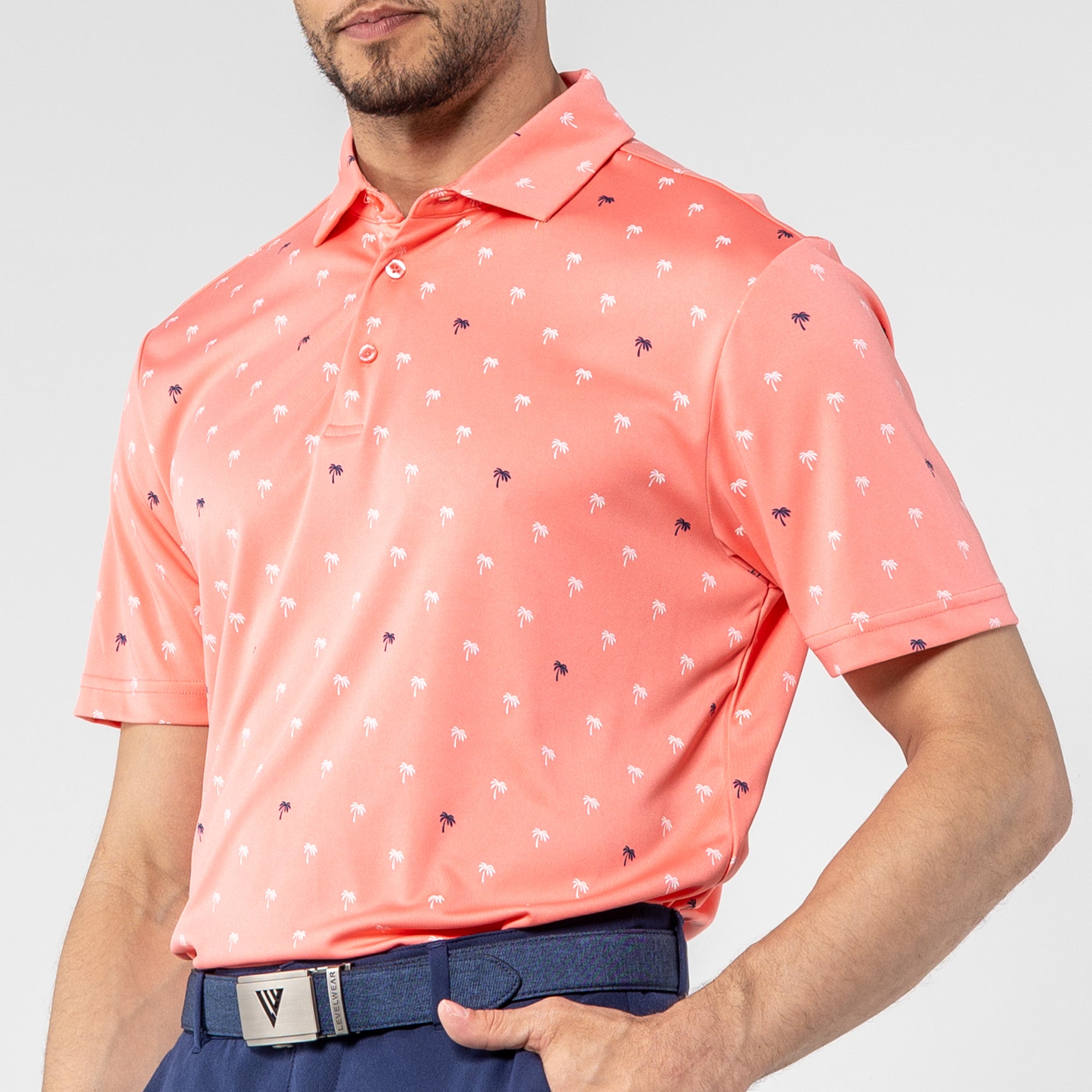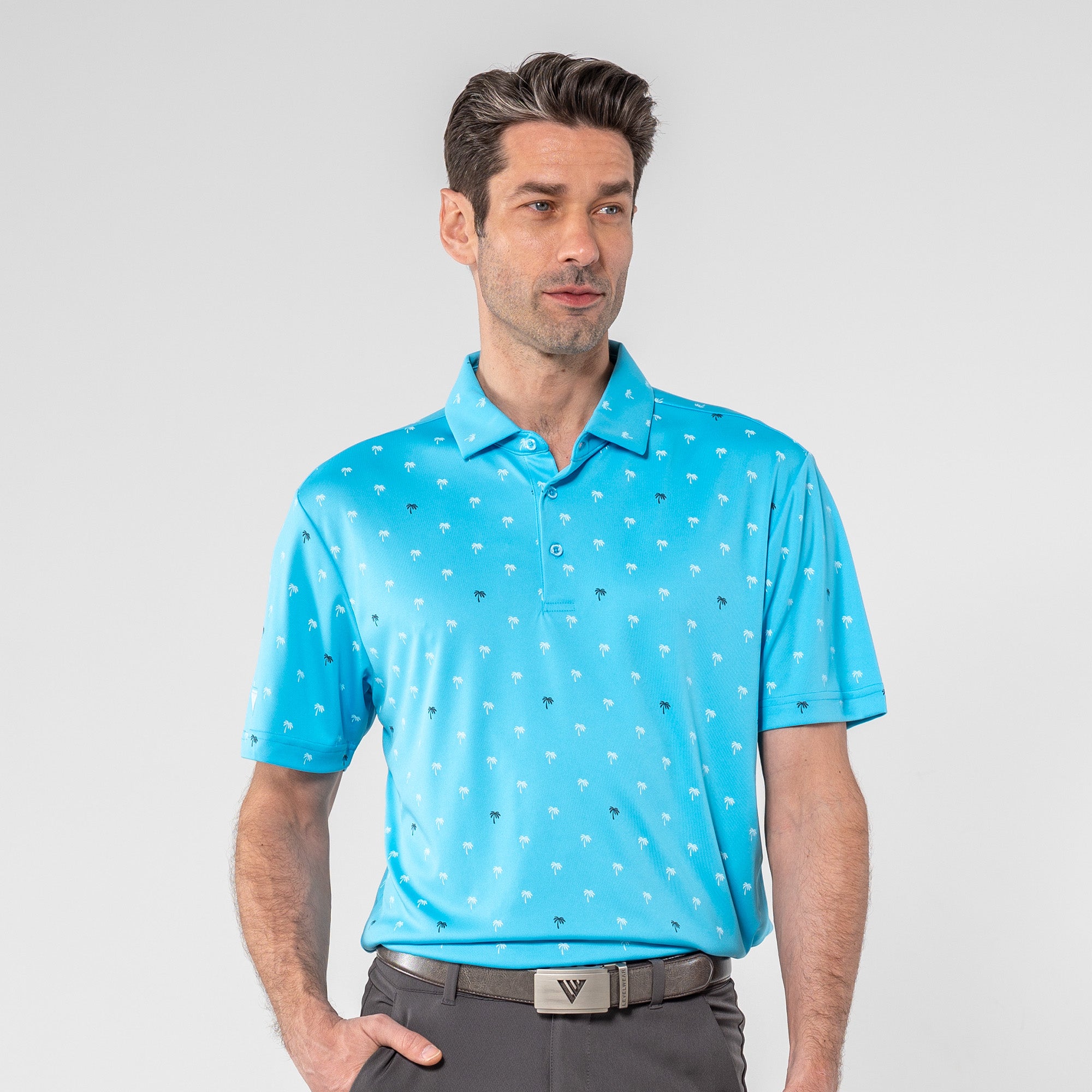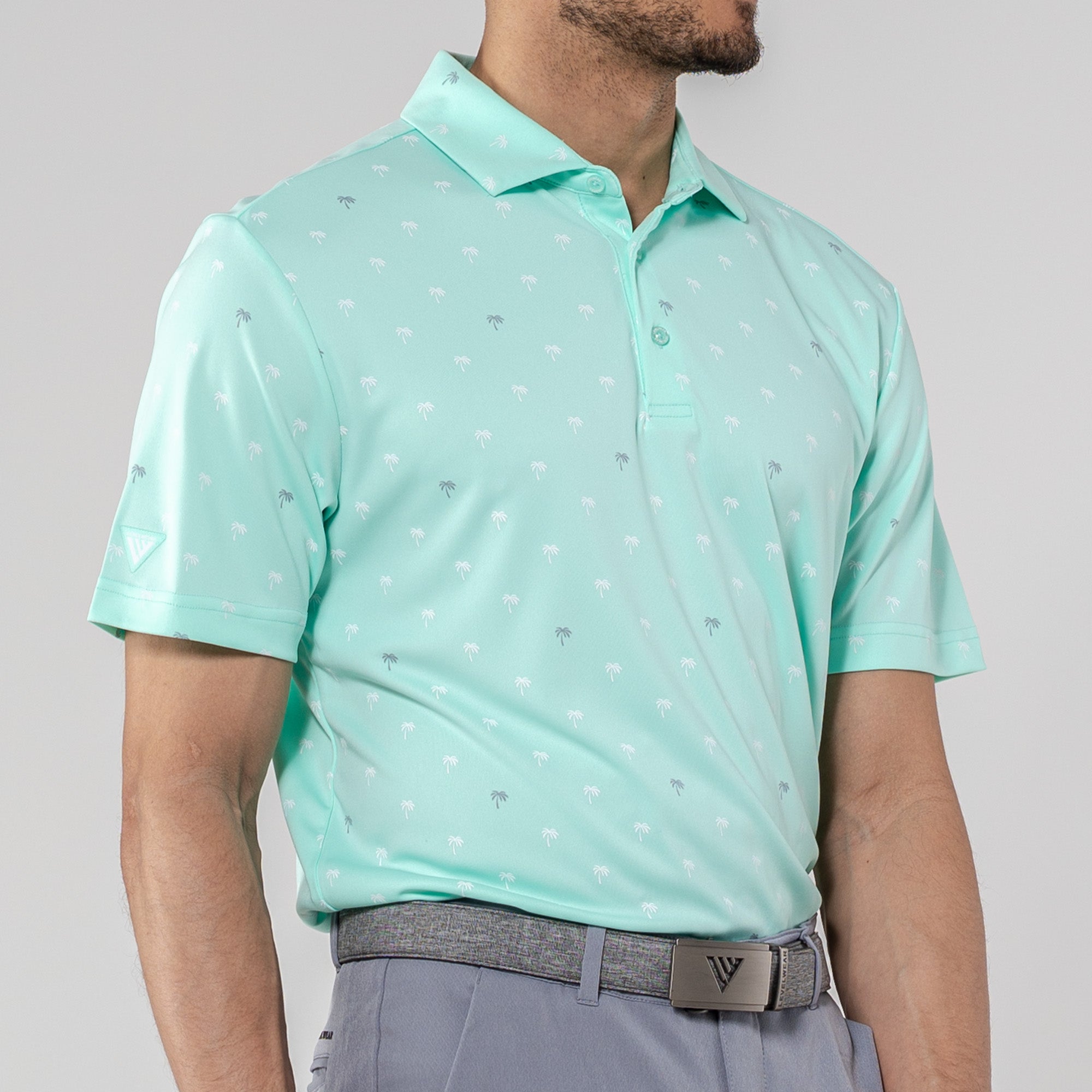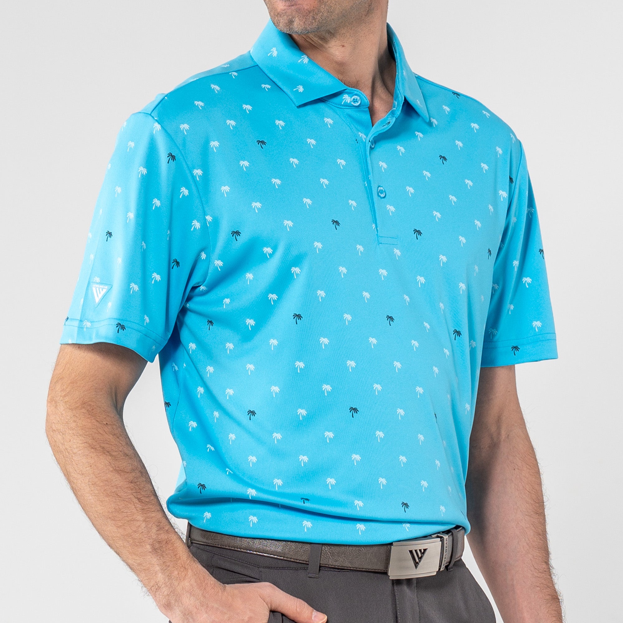 Step into the sunshine with the Groove Polo. Its fun, all-over palm tree print brings a touch of paradise to your day, while the moisture-wicking and anti-static properties keep you feeling fresh. The self-fabric collar with a built-in collar stay adds a polished touch to your casual look, making the Groove Polo your go-to choice for a blend of style and comfort.