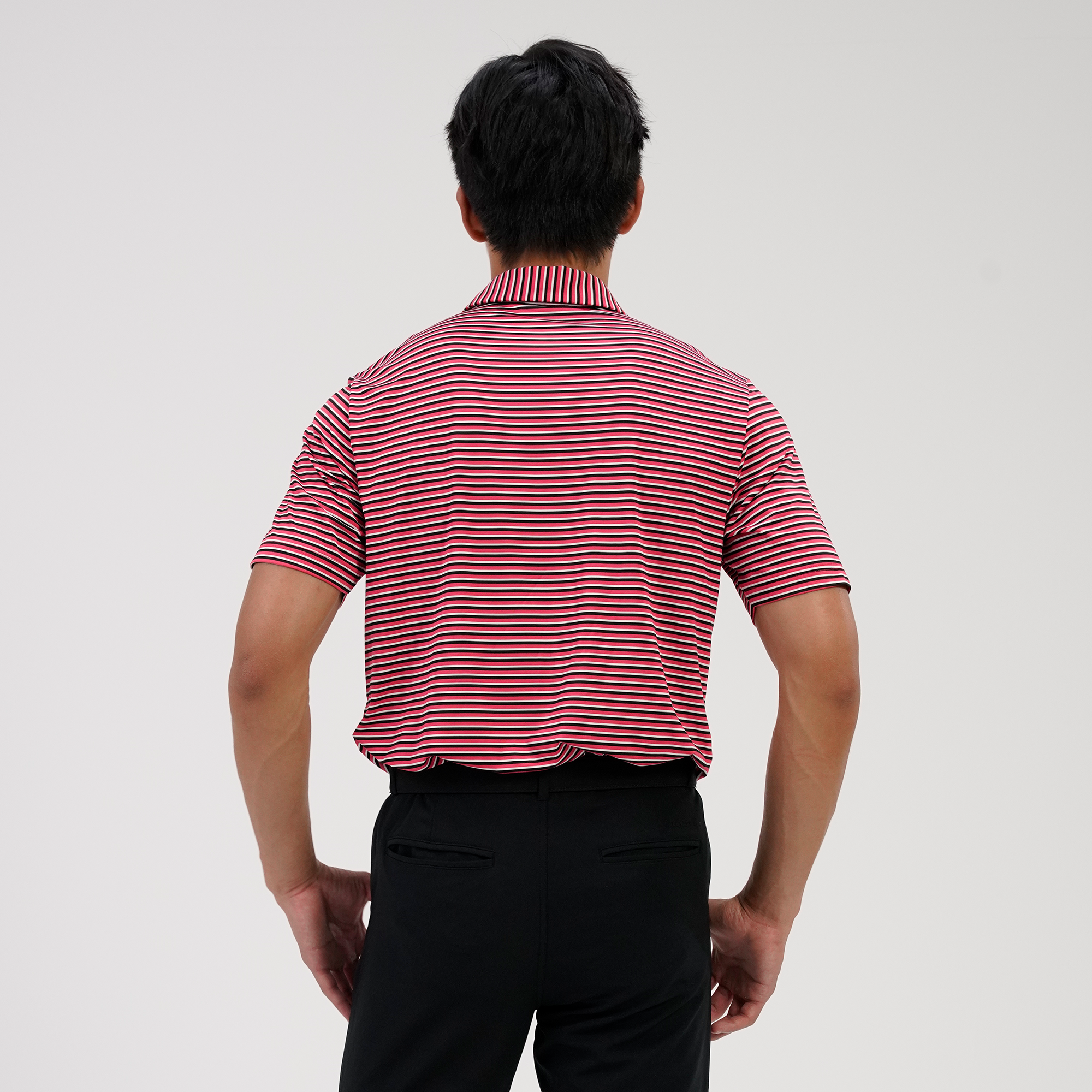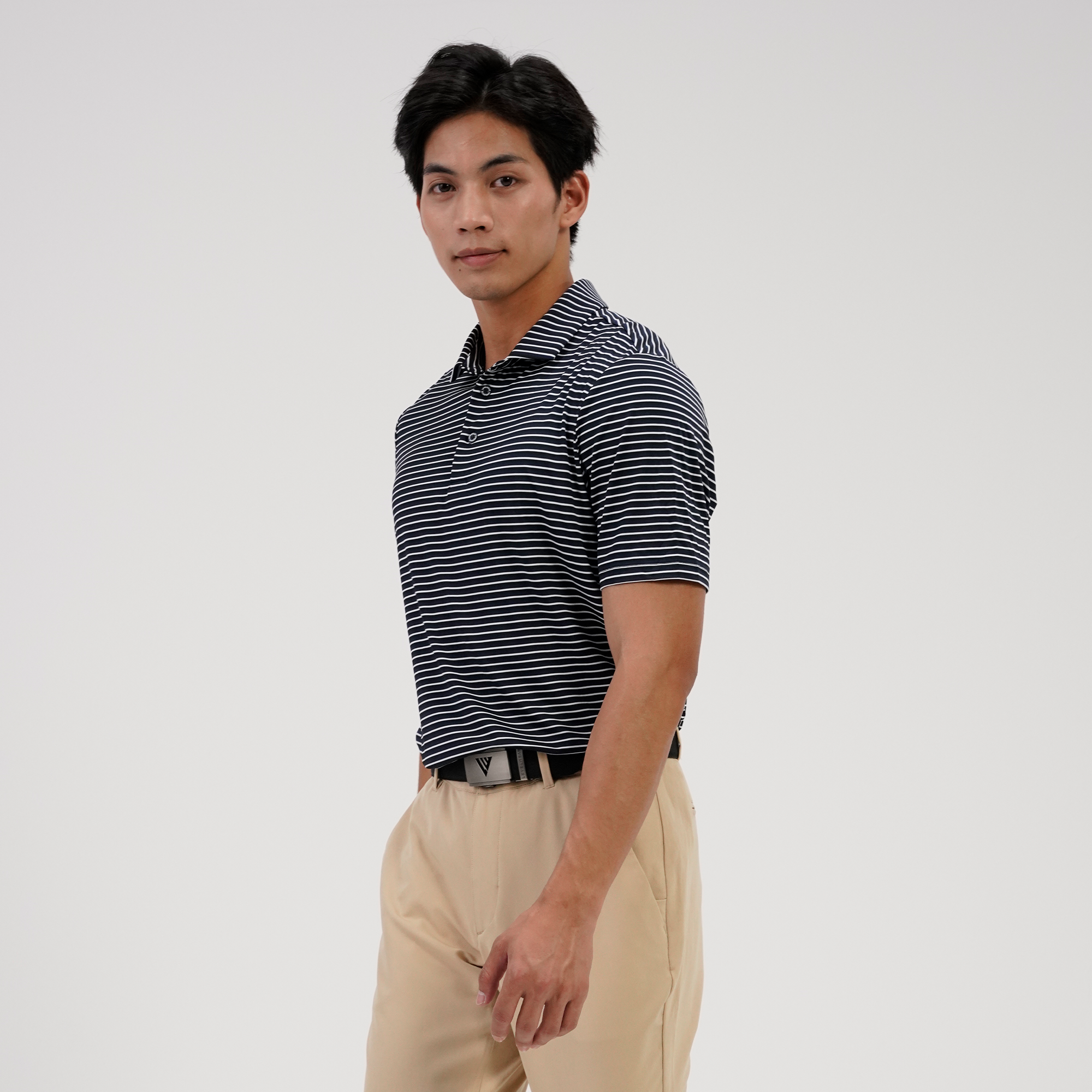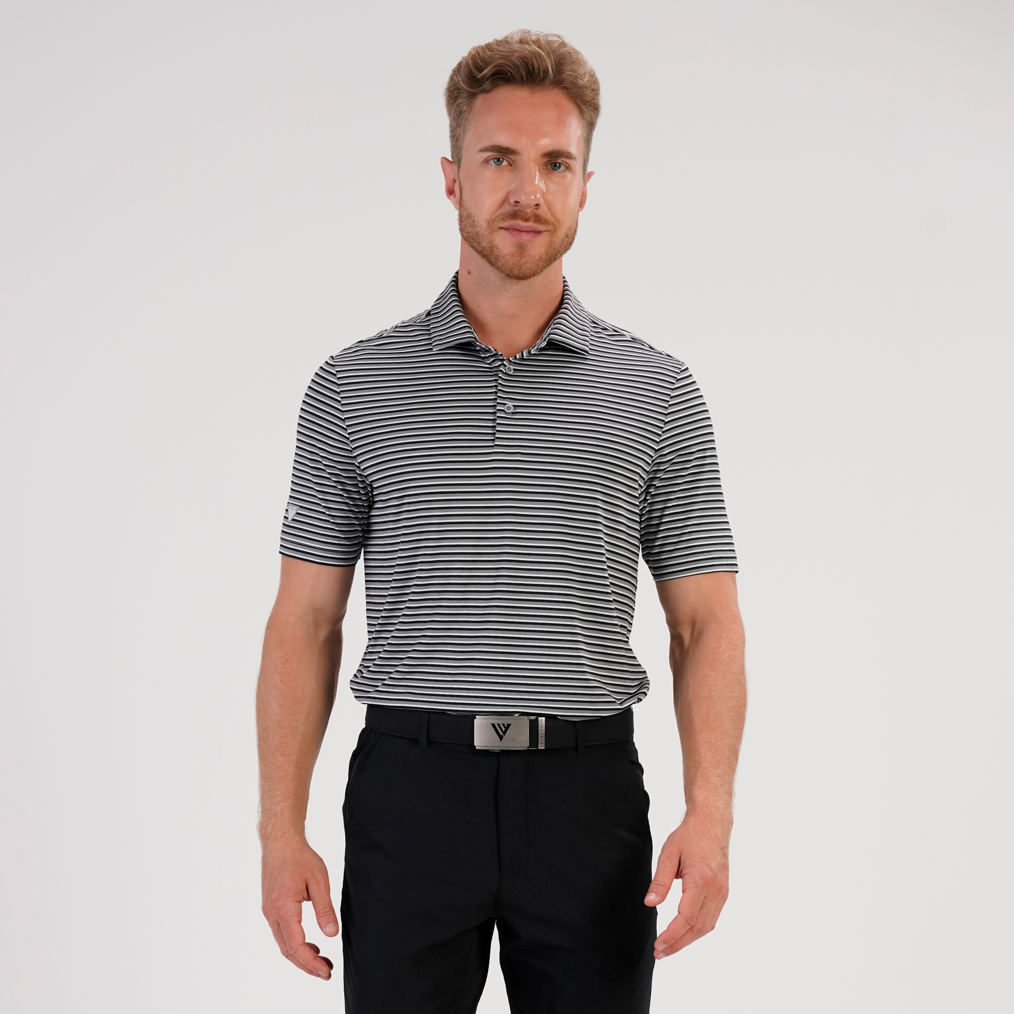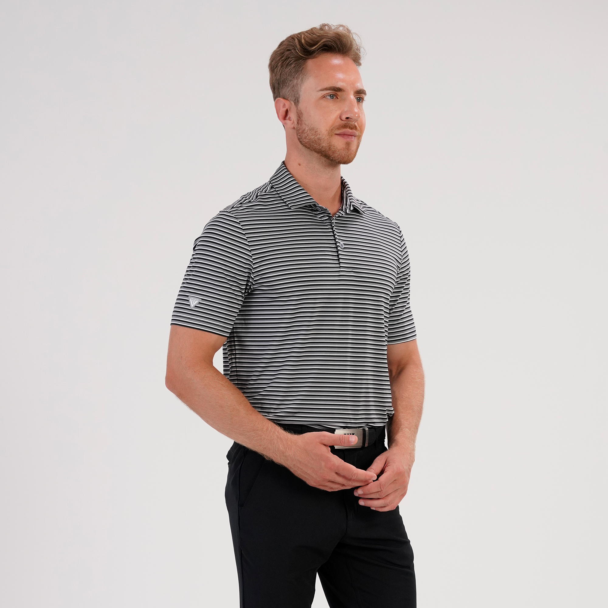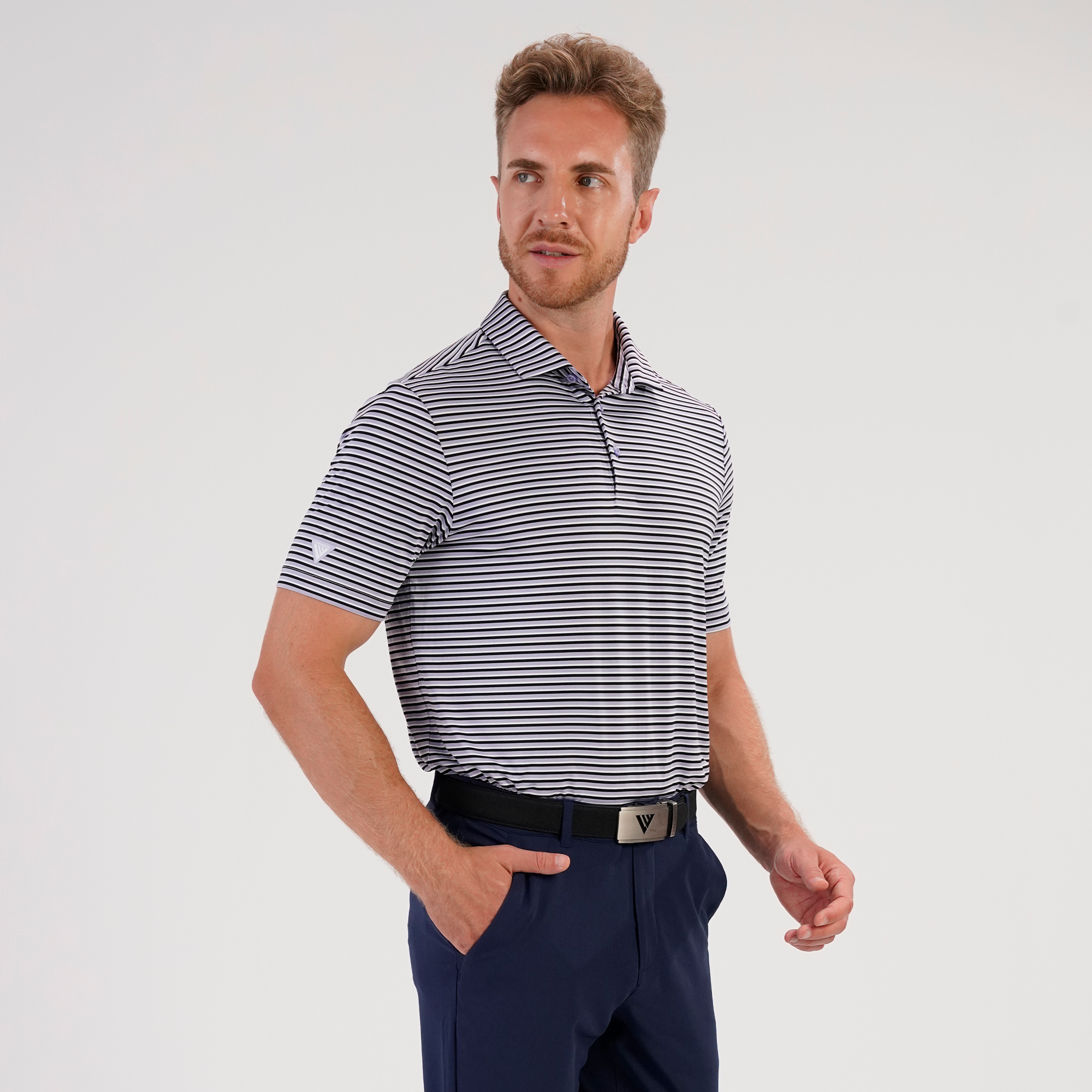 Engineered for comfort and performance, the Horize Polo features a breathable, moisture-wicking fabric blend with anti-bacterial properties. Designed with a self-fabric collar and built-in collar stay, forward shoulder seams, and a high-low hem with side slits for mobility. The yarn-dyed stripe pattern adds a clean, modern edge.