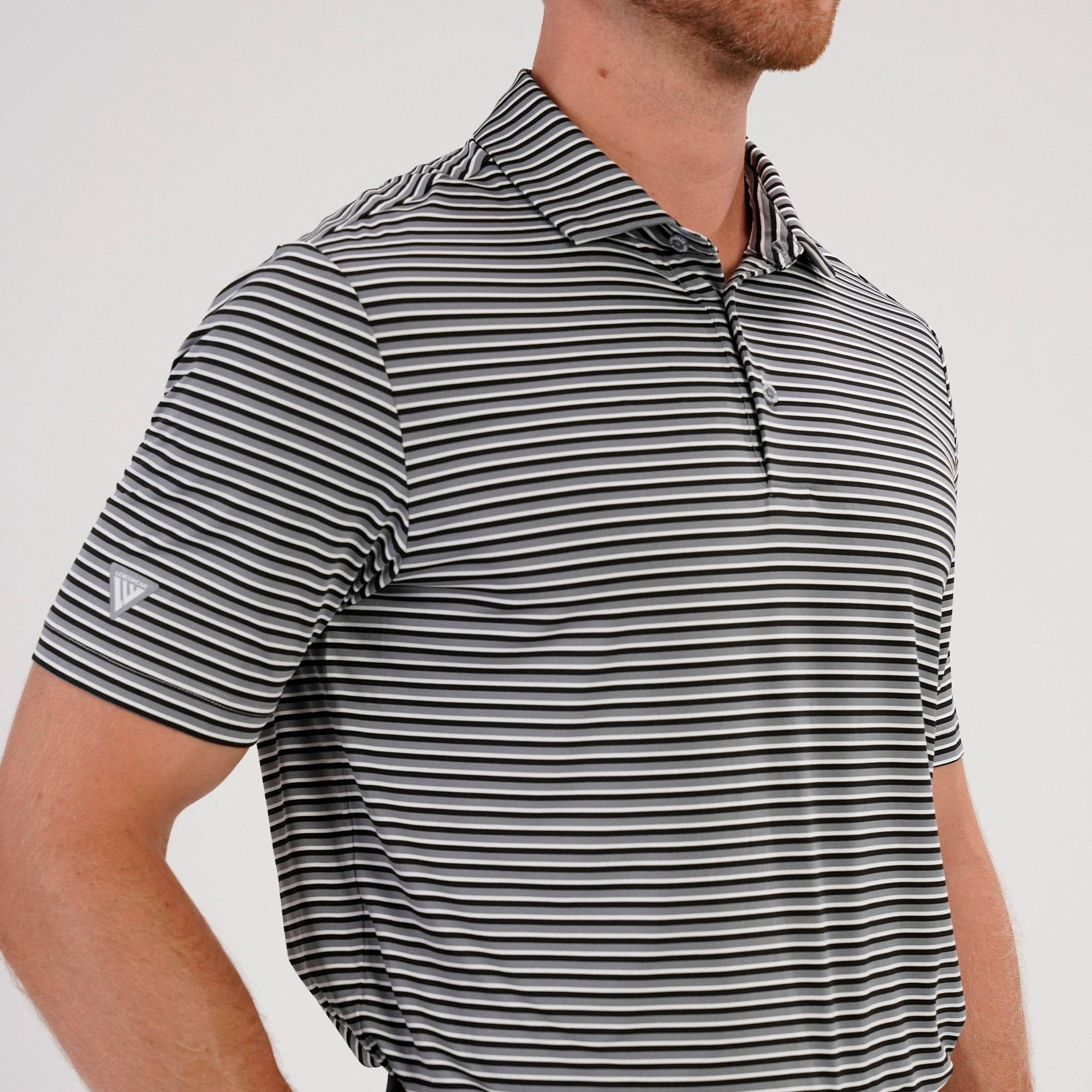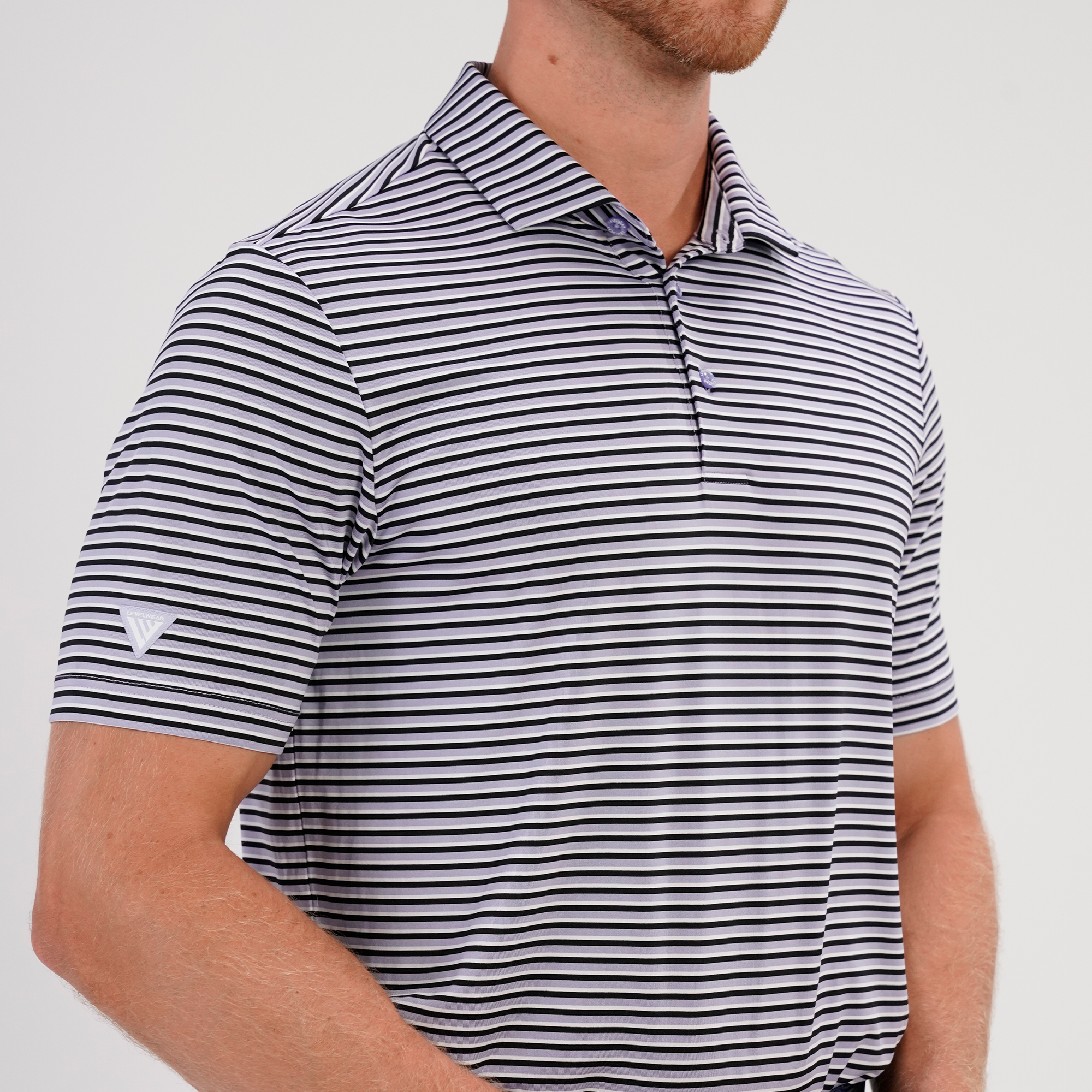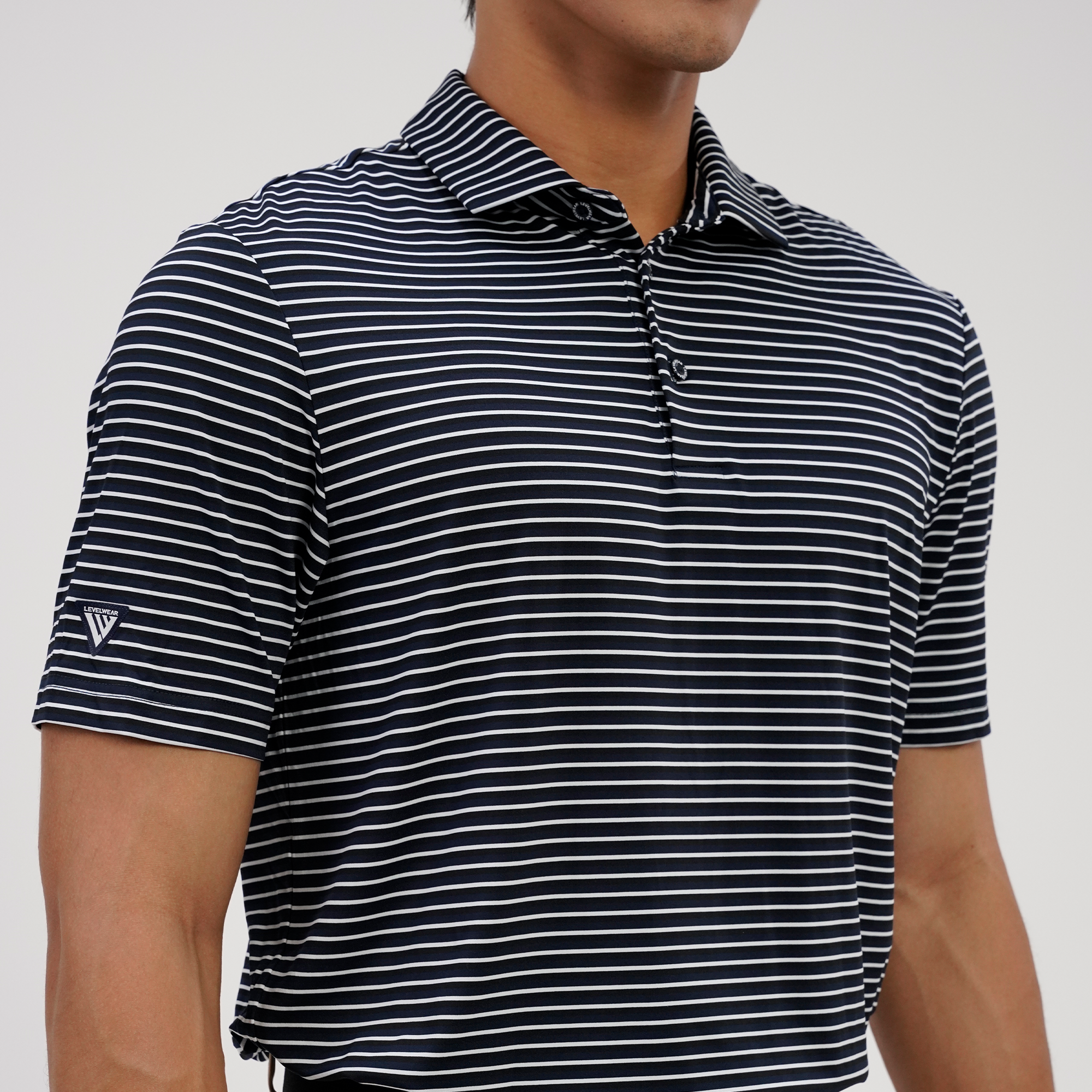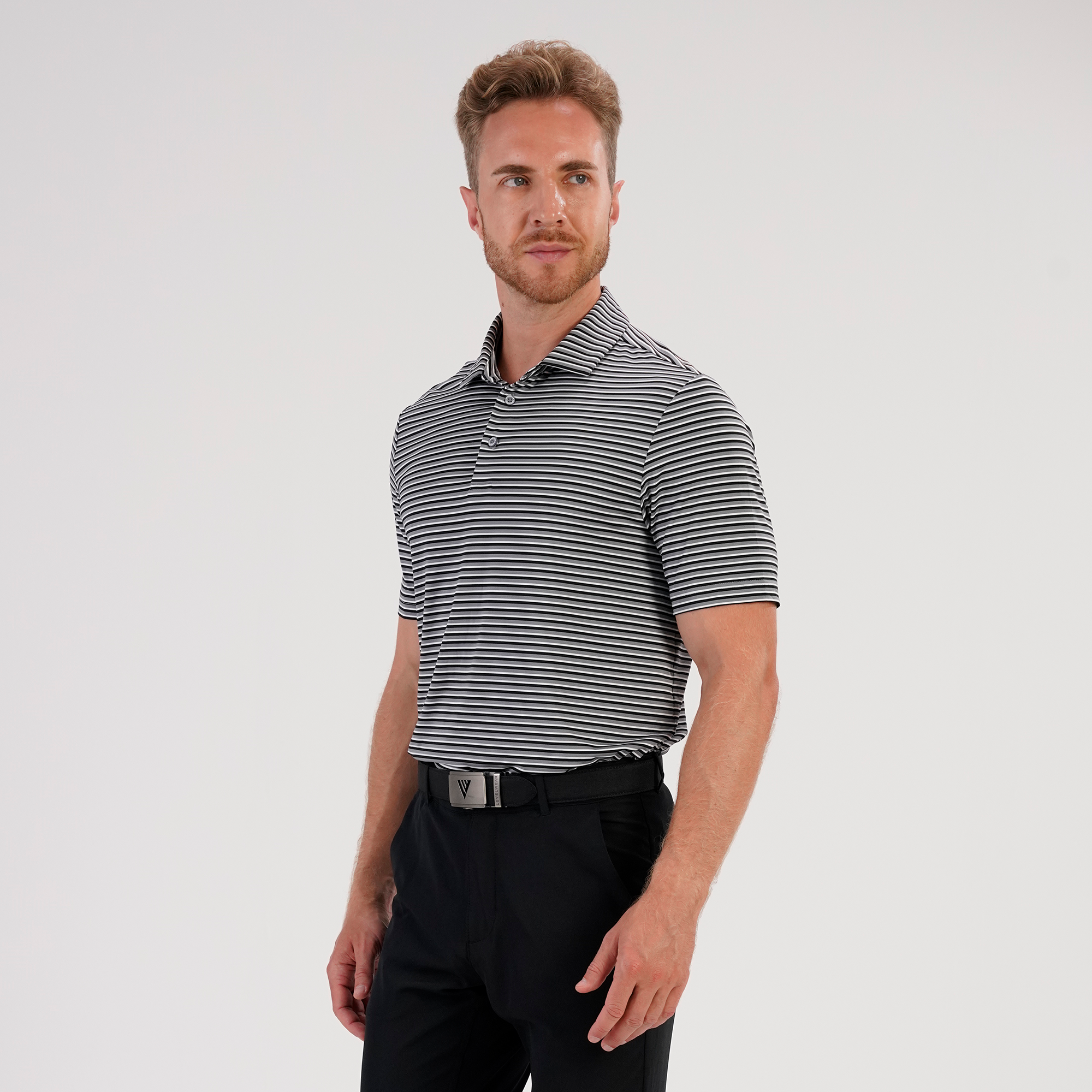 Engineered for comfort and performance, the Horize Polo features a breathable, moisture-wicking fabric blend with anti-bacterial properties. Designed with a self-fabric collar and built-in collar stay, forward shoulder seams, and a high-low hem with side slits for mobility. The yarn-dyed stripe pattern adds a clean, modern edge.