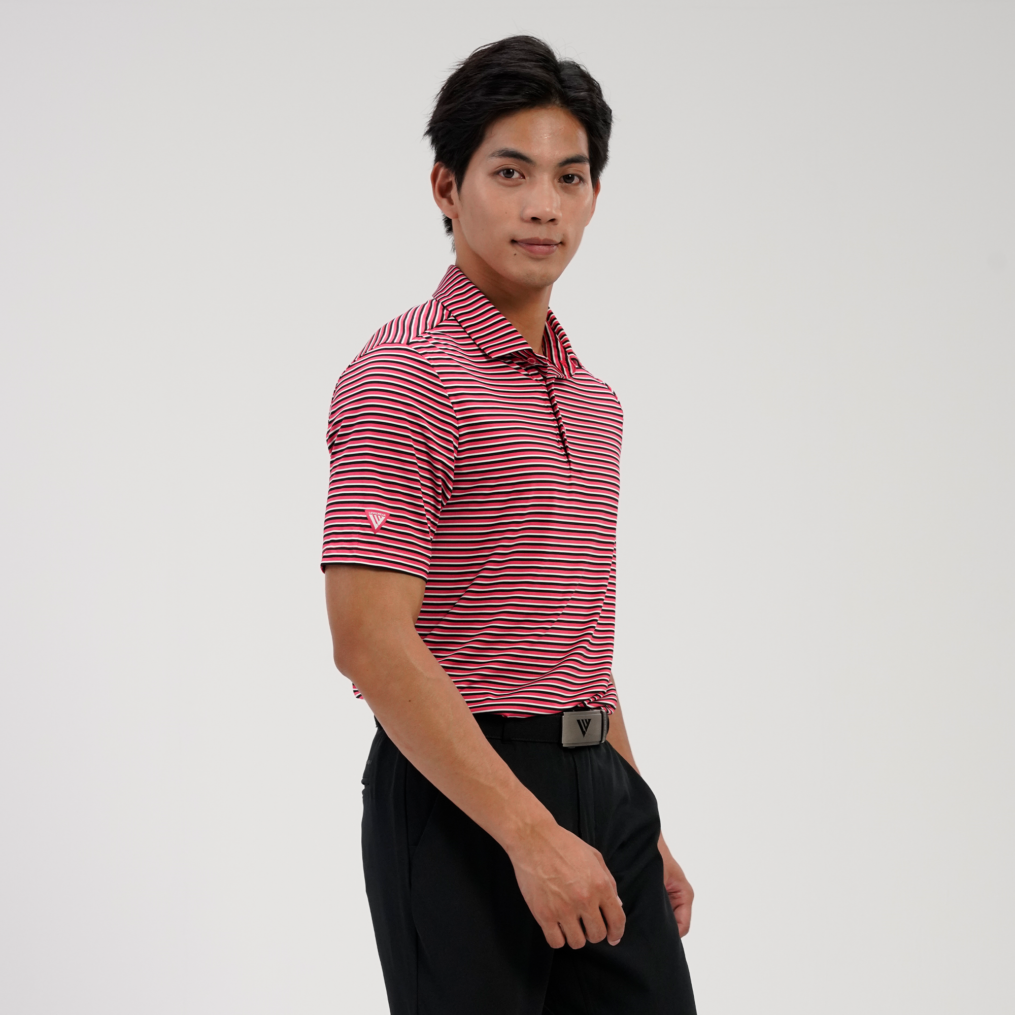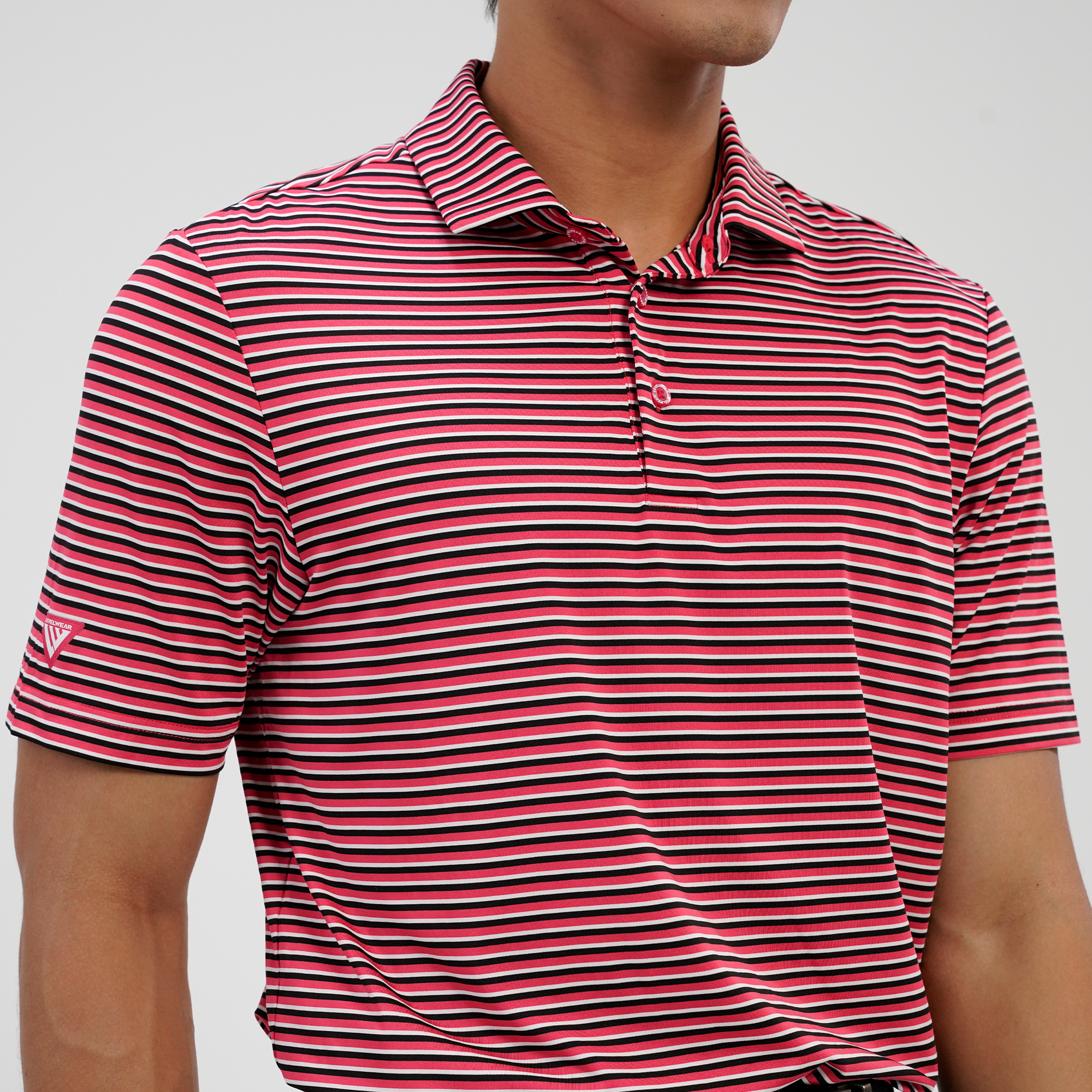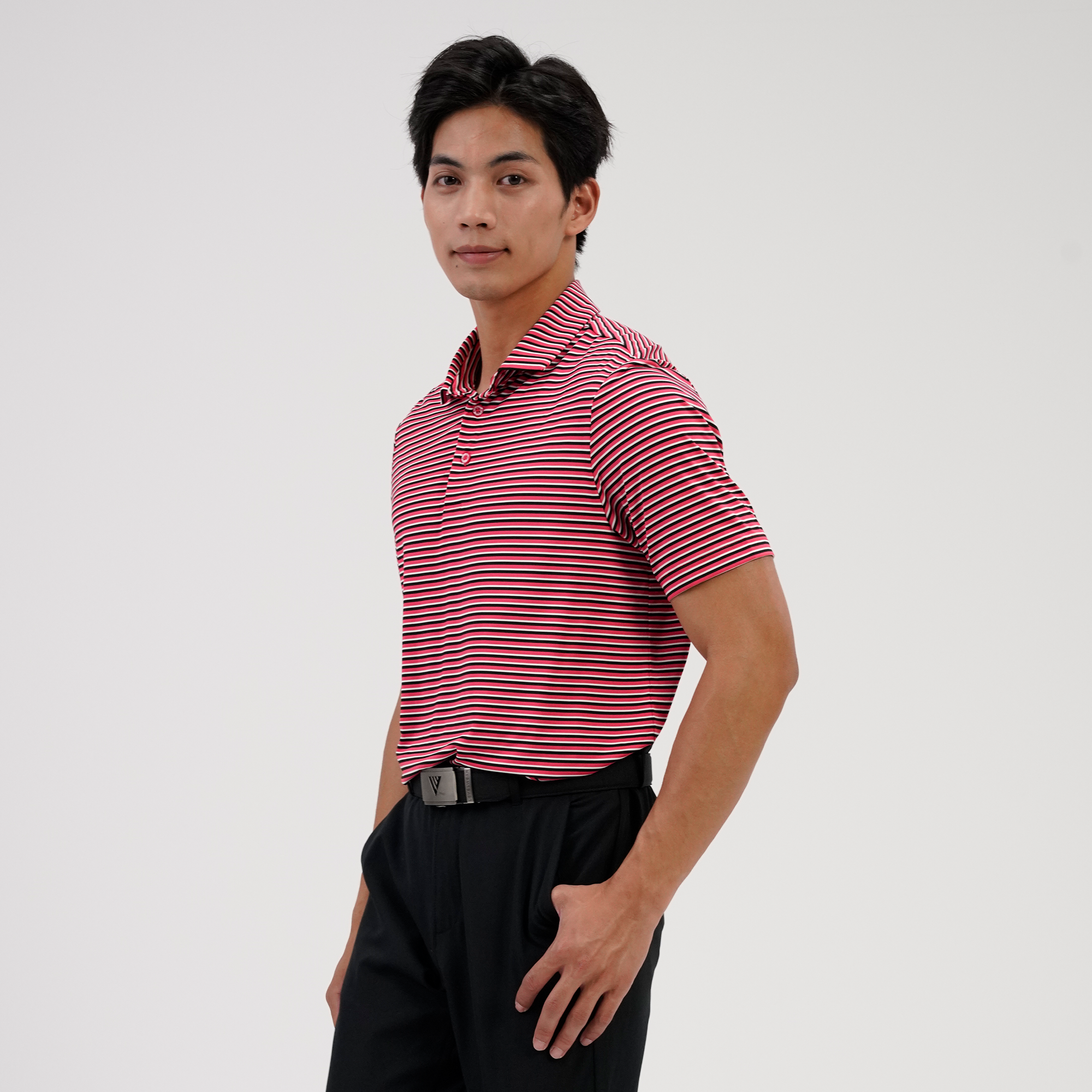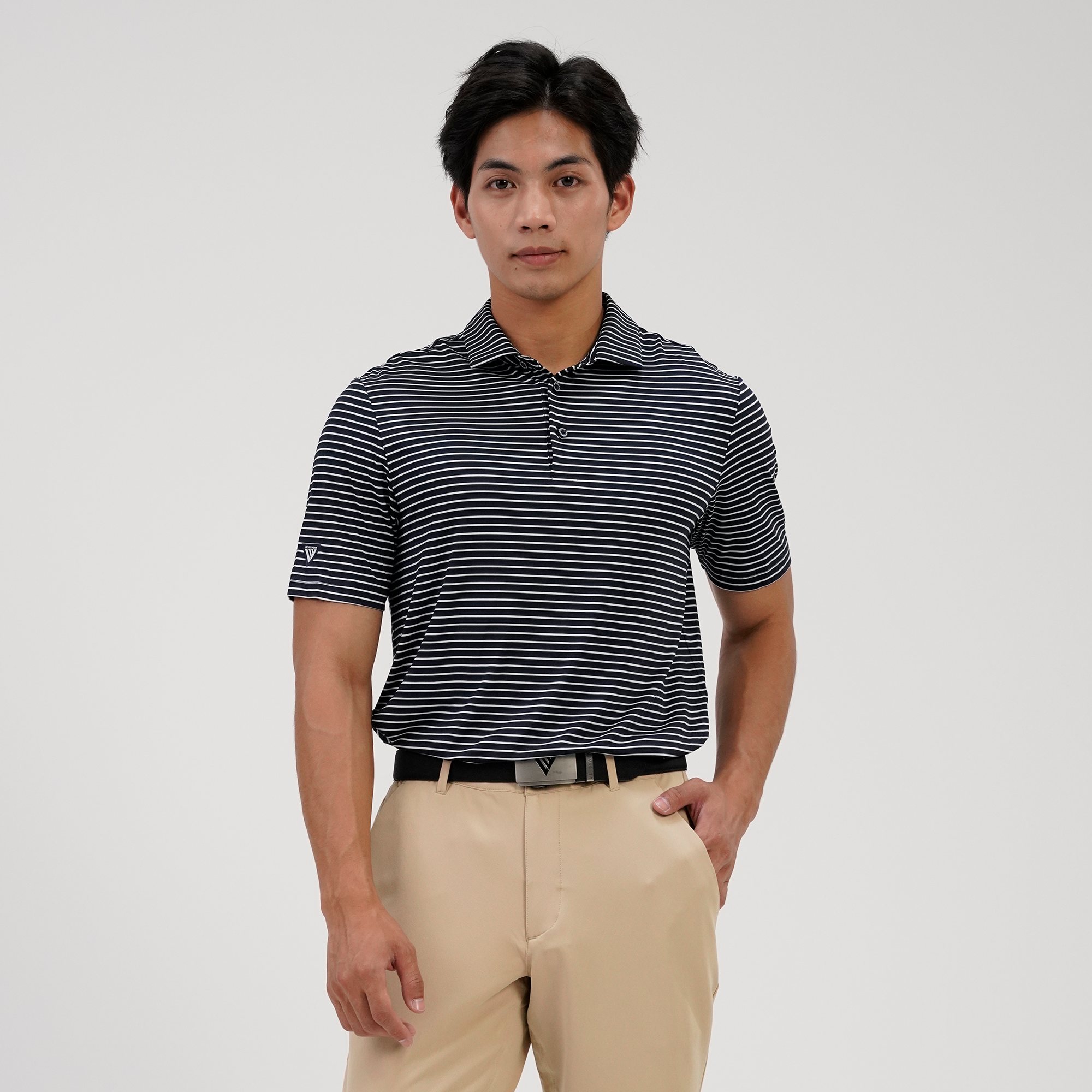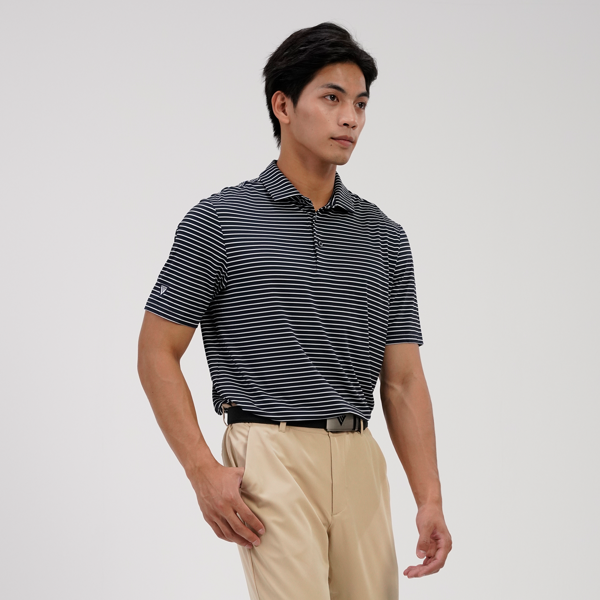 Engineered for comfort and performance, the Horize Polo features a breathable, moisture-wicking fabric blend with anti-bacterial properties. Designed with a self-fabric collar and built-in collar stay, forward shoulder seams, and a high-low hem with side slits for mobility. The yarn-dyed stripe pattern adds a clean, modern edge.
