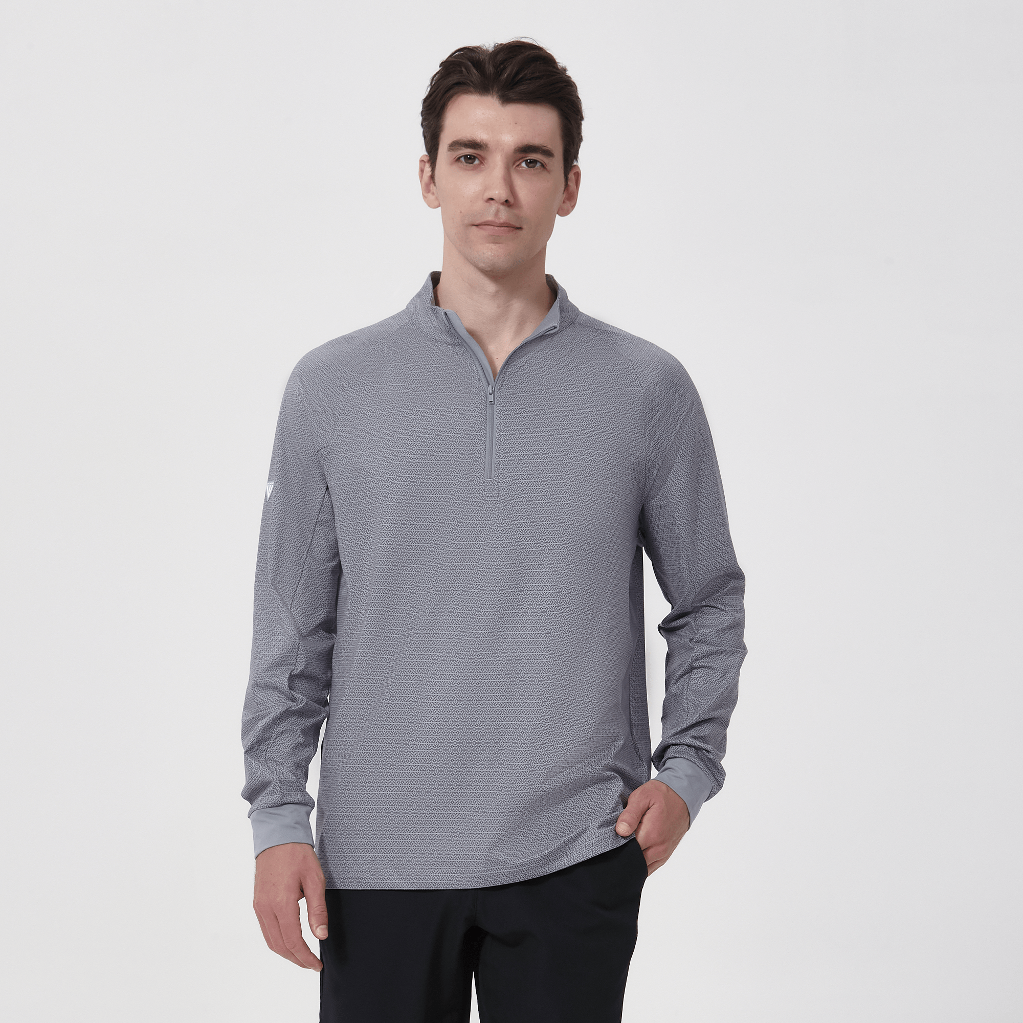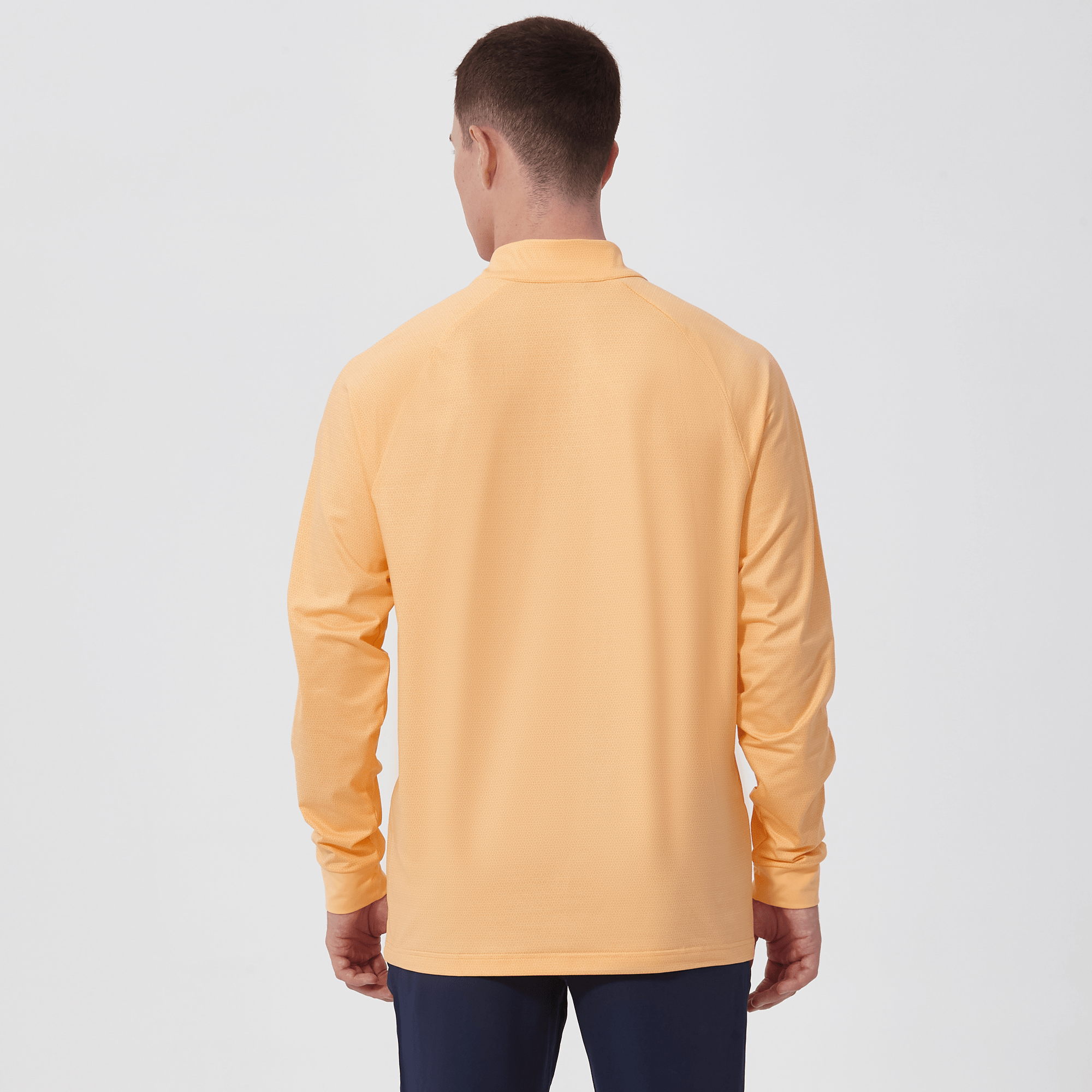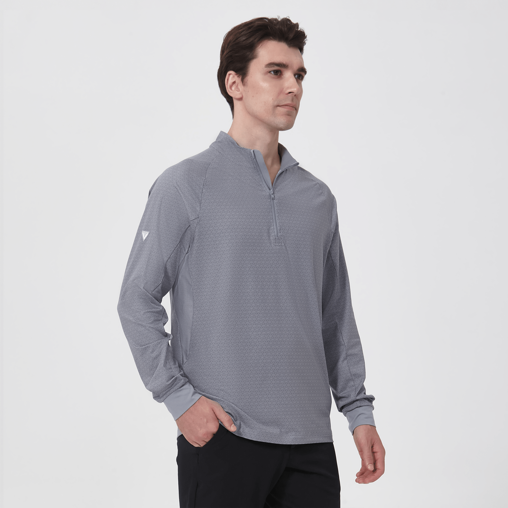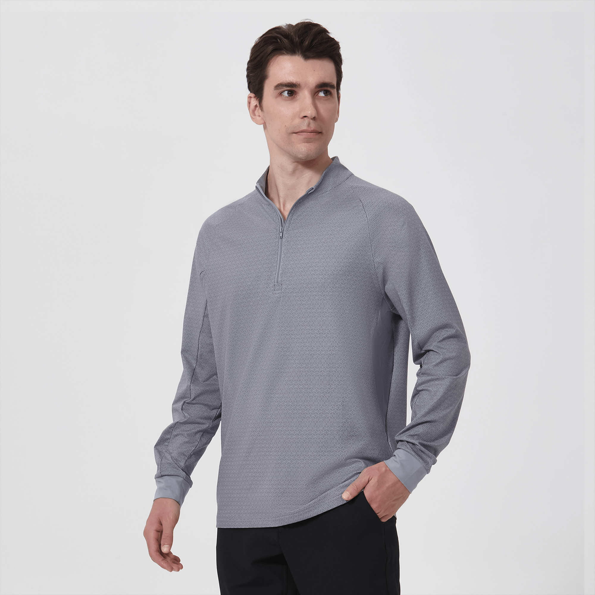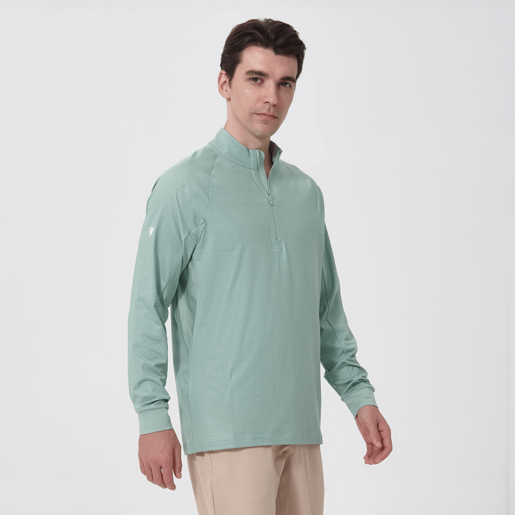Experience the ultimate in layering versatility with the men's Iceberg hand feel, designed for both golf and active wear. This essential piece is crafted from a blend of 88% polyester and 12% spandex, ensuring flexibility and comfort during any activity. The fabric features a peached hand feel for an exceptionally soft touch, while also incorporating moisture-wicking technology to keep you dry, anti-pilling properties to maintain a smooth appearance, and anti-static treatment to reduce cling. The quarter-zip with a stand-up collar allows for easy temperature regulation, and the contrast mesh side panels offer enhanced breathability. Raglan sleeves ensure a greater range of motion, perfect for swinging a golf club or any dynamic movement. Finished with a subtle all-over triangular print, the Iceberg midlayer is a stylish and functional choice for layering on the course or while engaging in any outdoor activities.