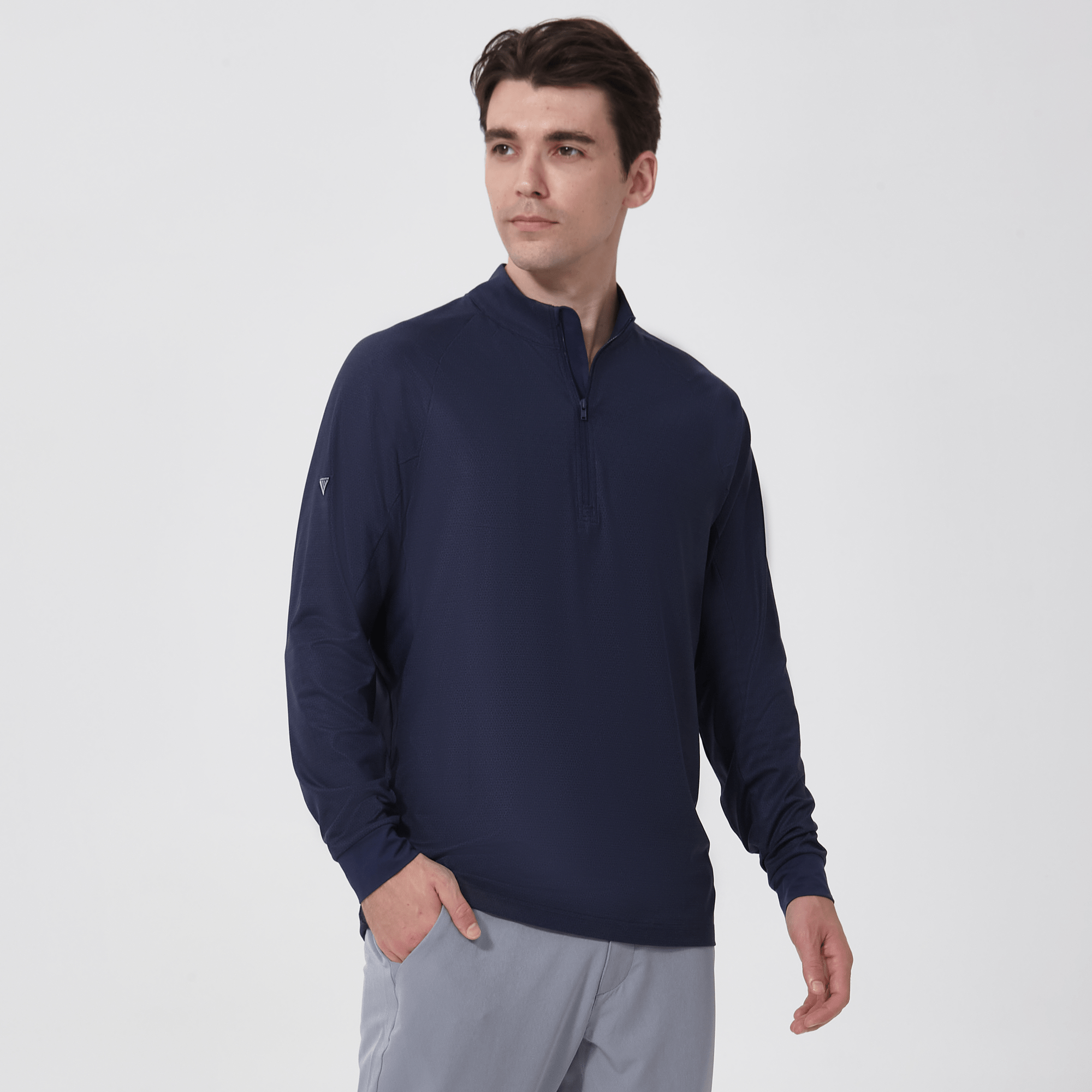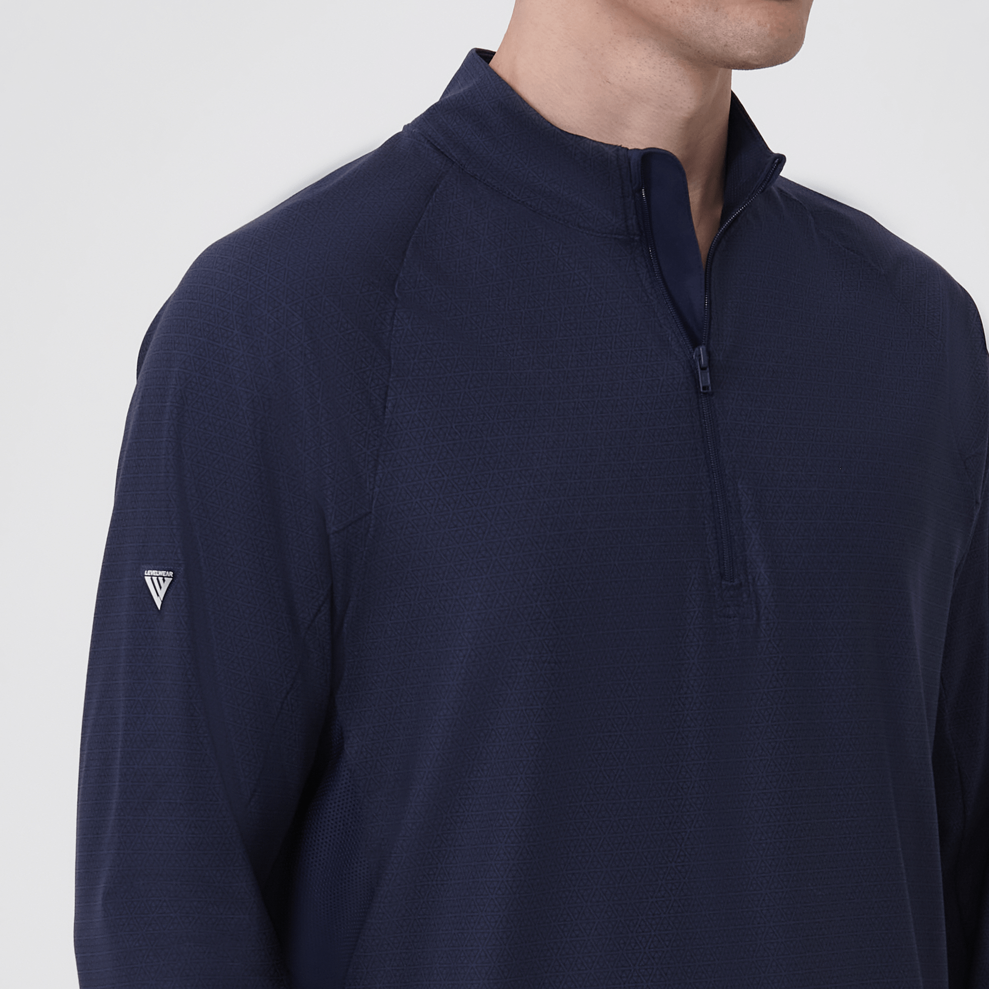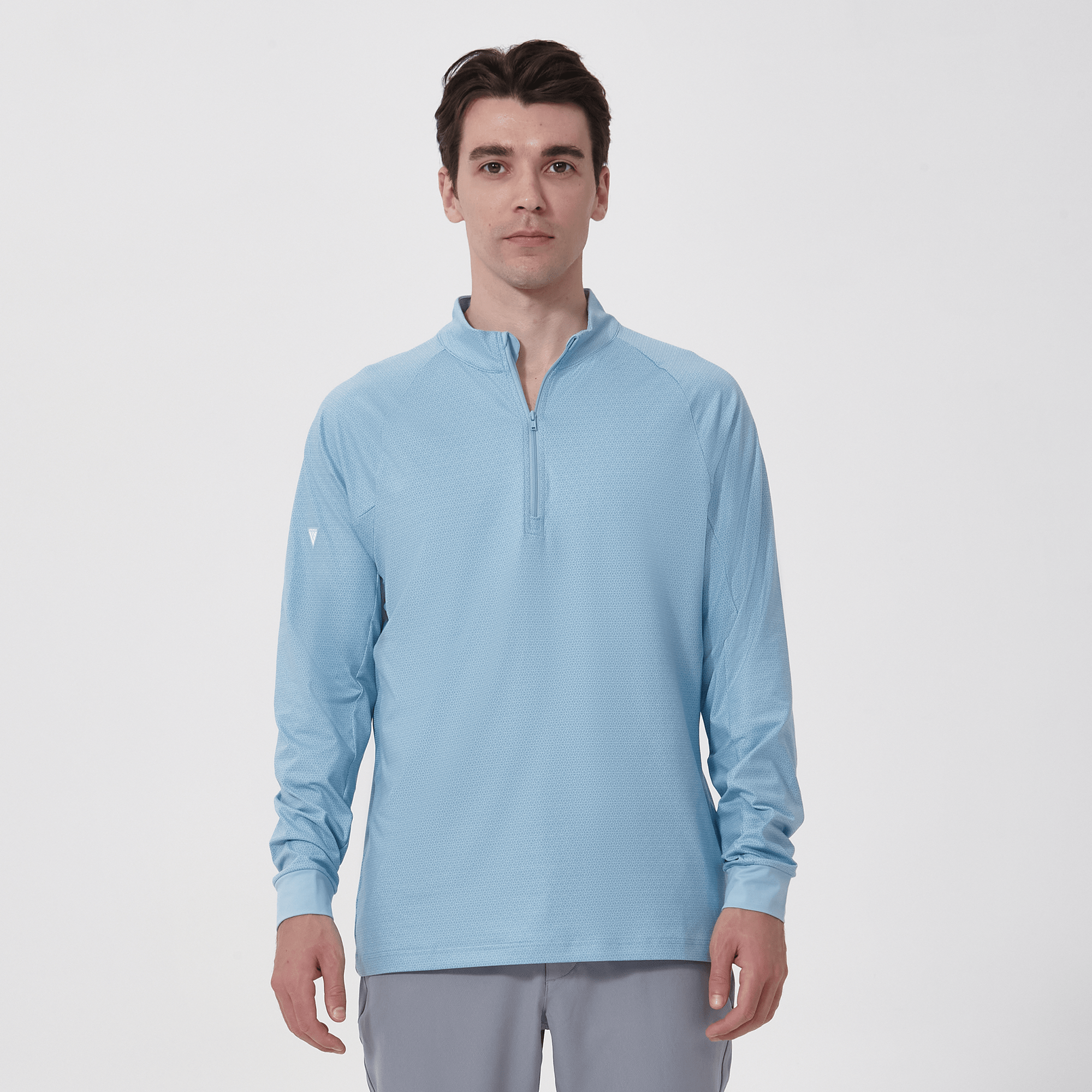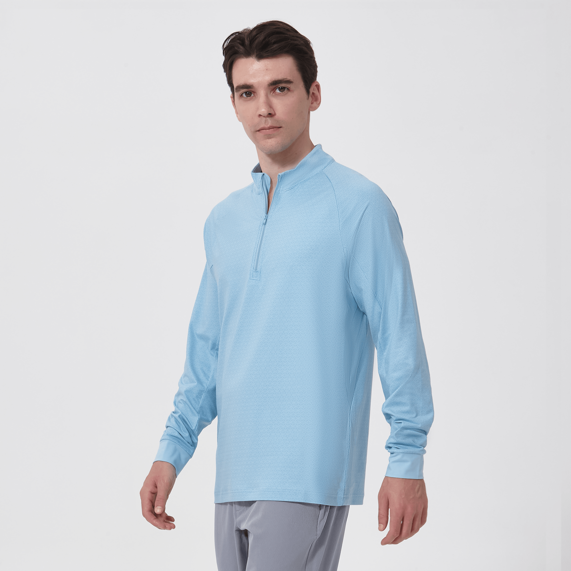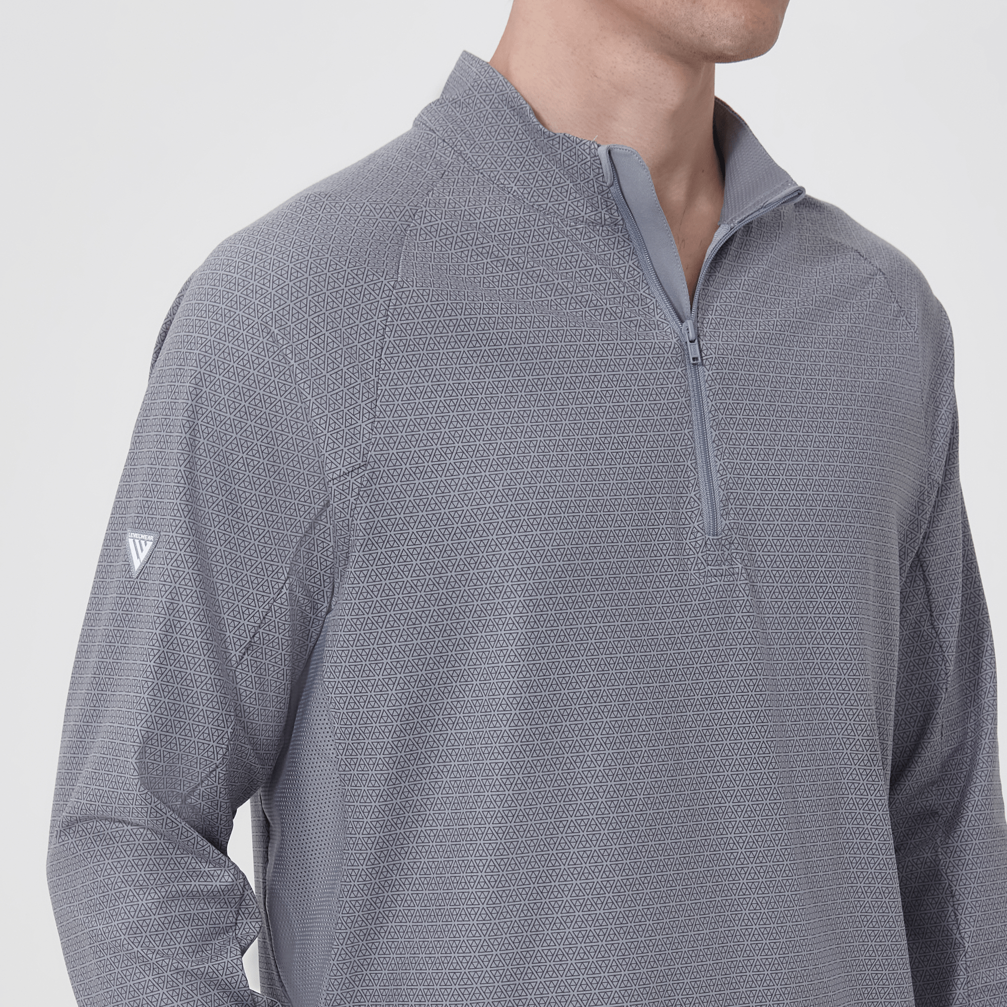 Experience the ultimate in layering versatility with the men's Iceberg hand feel, designed for both golf and active wear. This essential piece is crafted from a blend of 88% polyester and 12% spandex, ensuring flexibility and comfort during any activity. The fabric features a peached hand feel for an exceptionally soft touch, while also incorporating moisture-wicking technology to keep you dry, anti-pilling properties to maintain a smooth appearance, and anti-static treatment to reduce cling. The quarter-zip with a stand-up collar allows for easy temperature regulation, and the contrast mesh side panels offer enhanced breathability. Raglan sleeves ensure a greater range of motion, perfect for swinging a golf club or any dynamic movement. Finished with a subtle all-over triangular print, the Iceberg midlayer is a stylish and functional choice for layering on the course or while engaging in any outdoor activities.