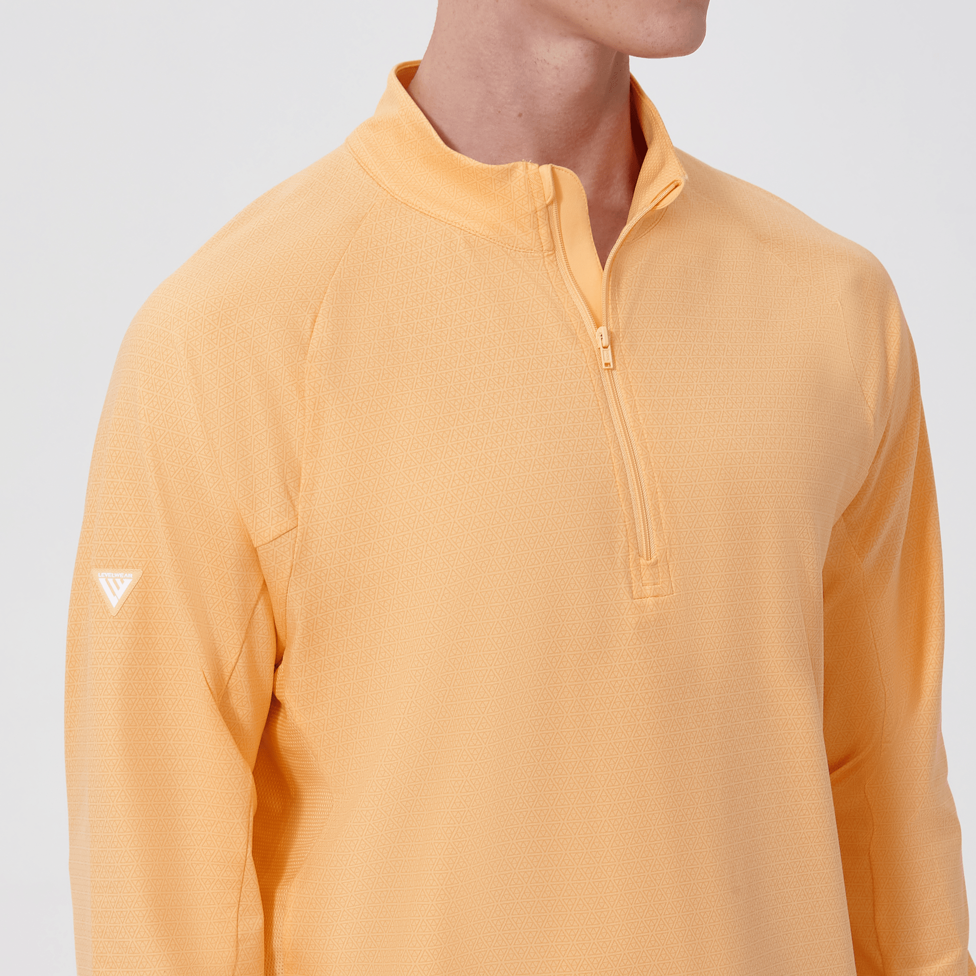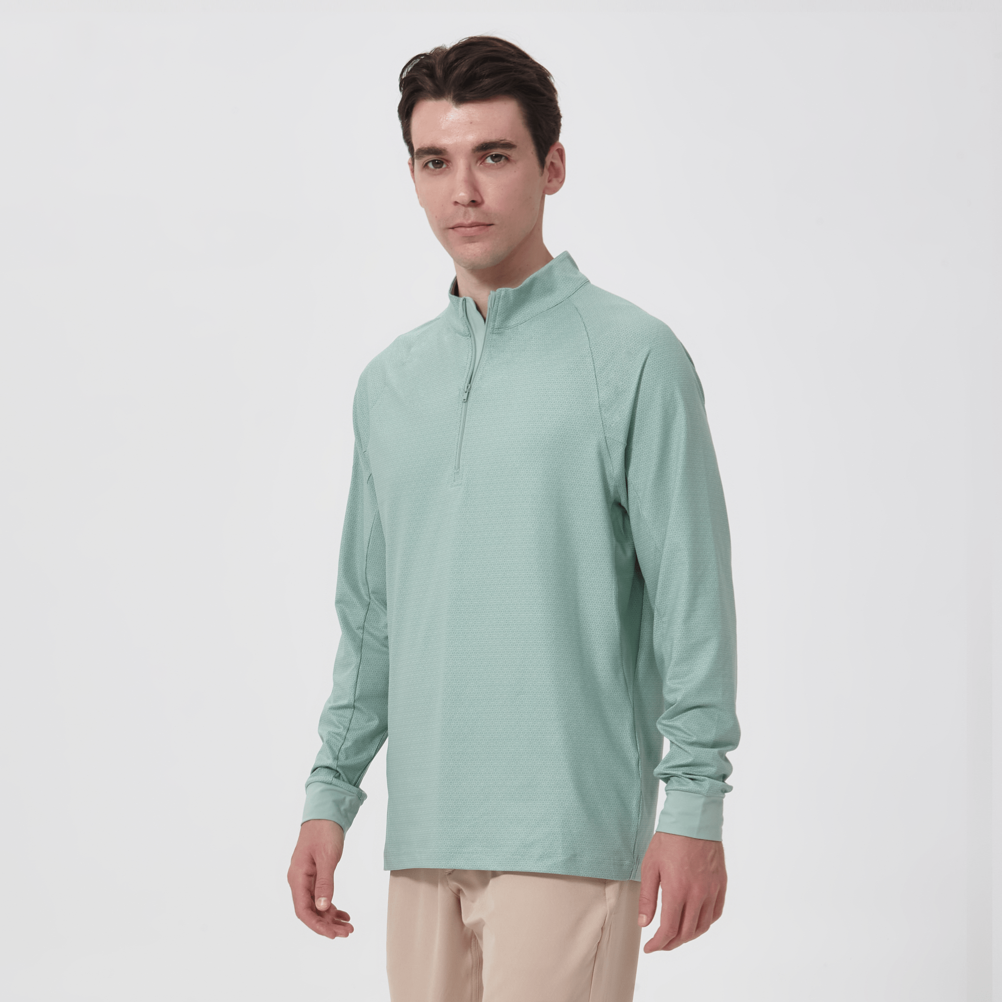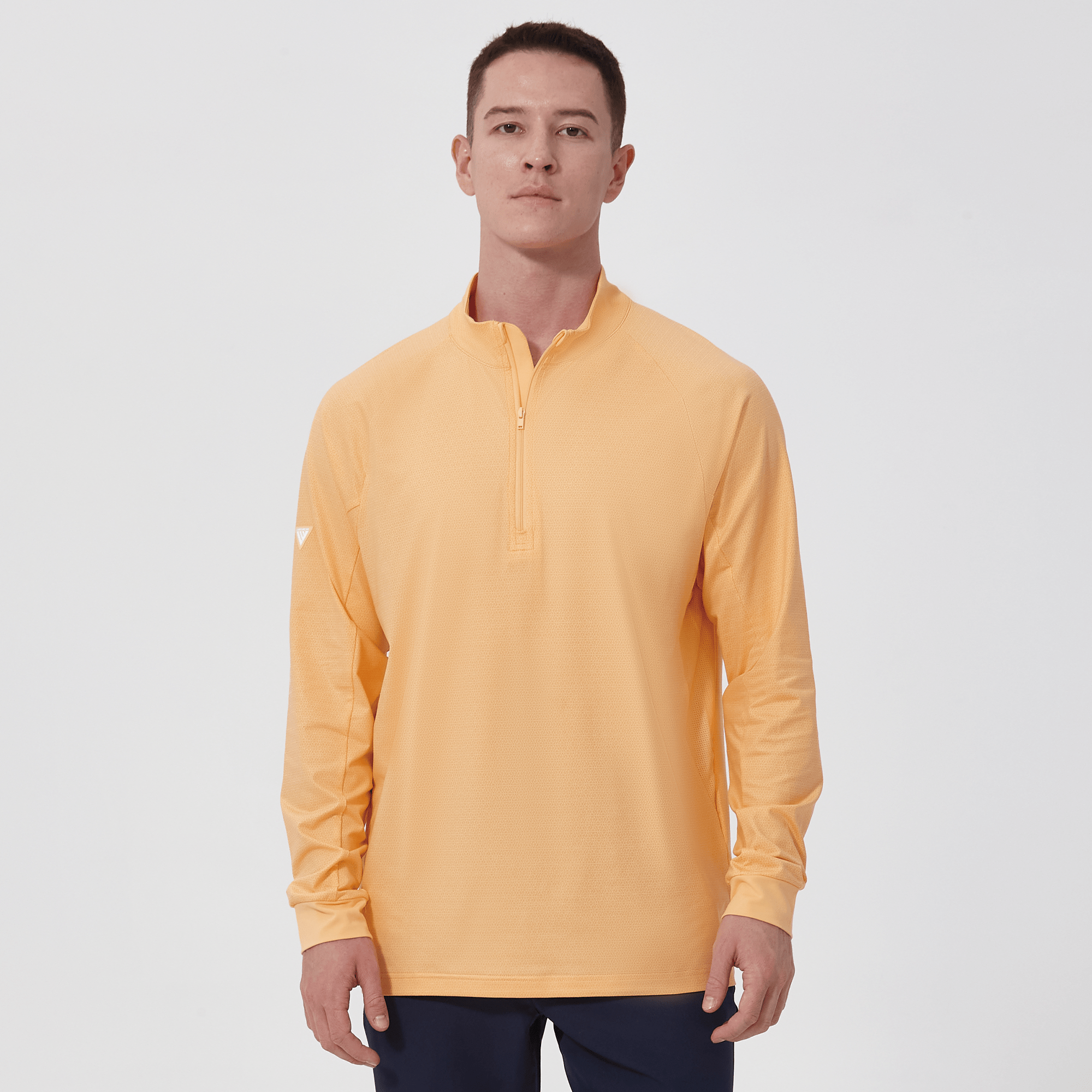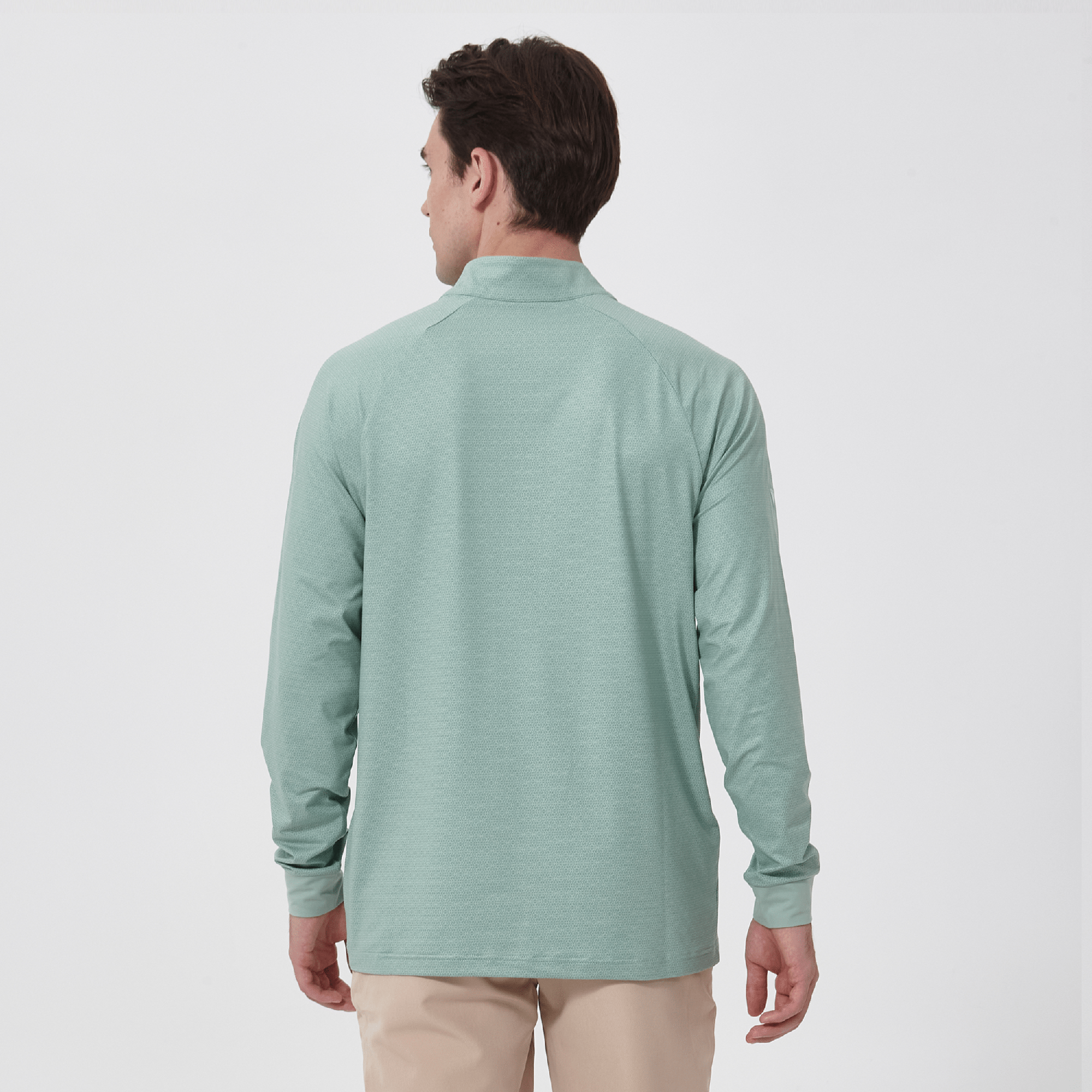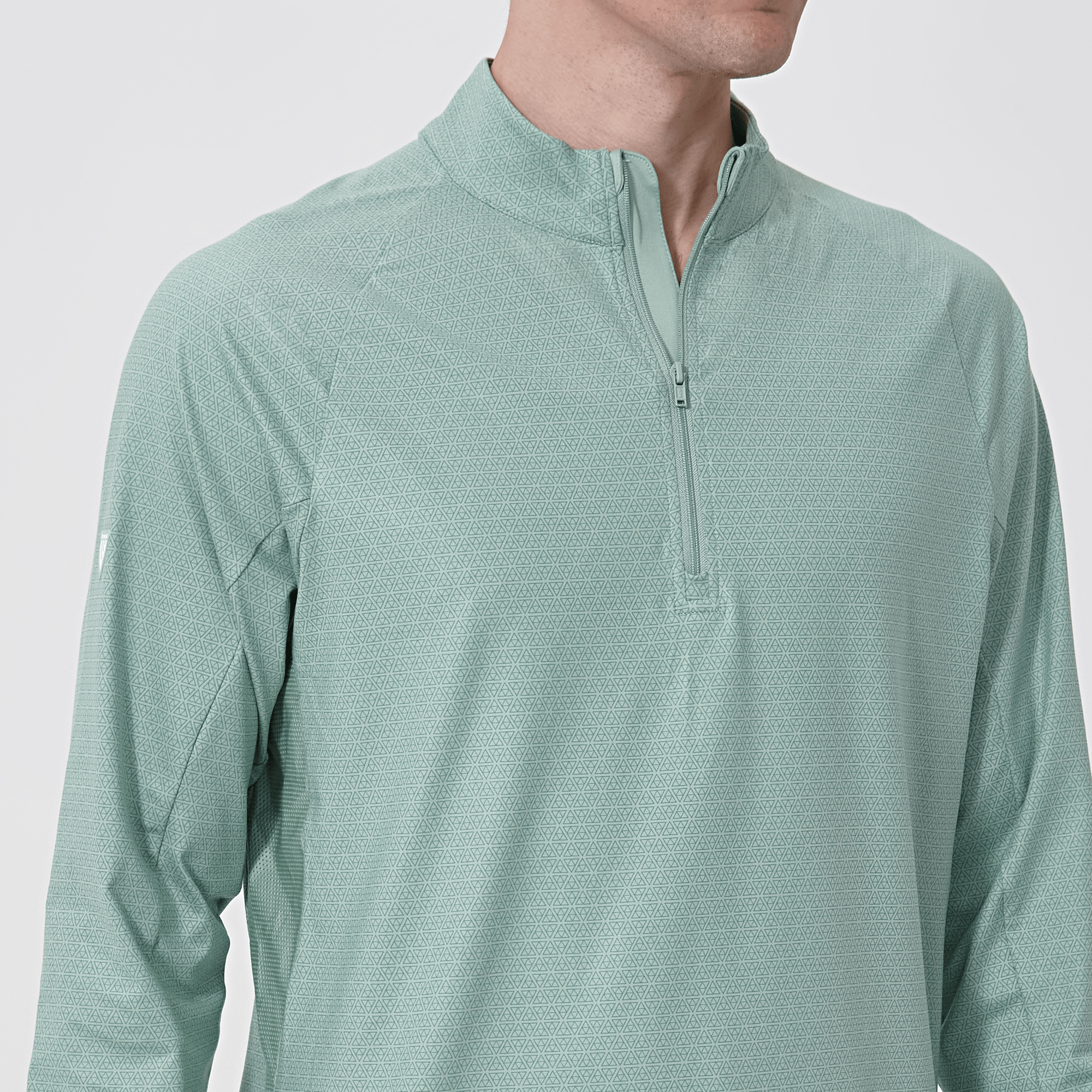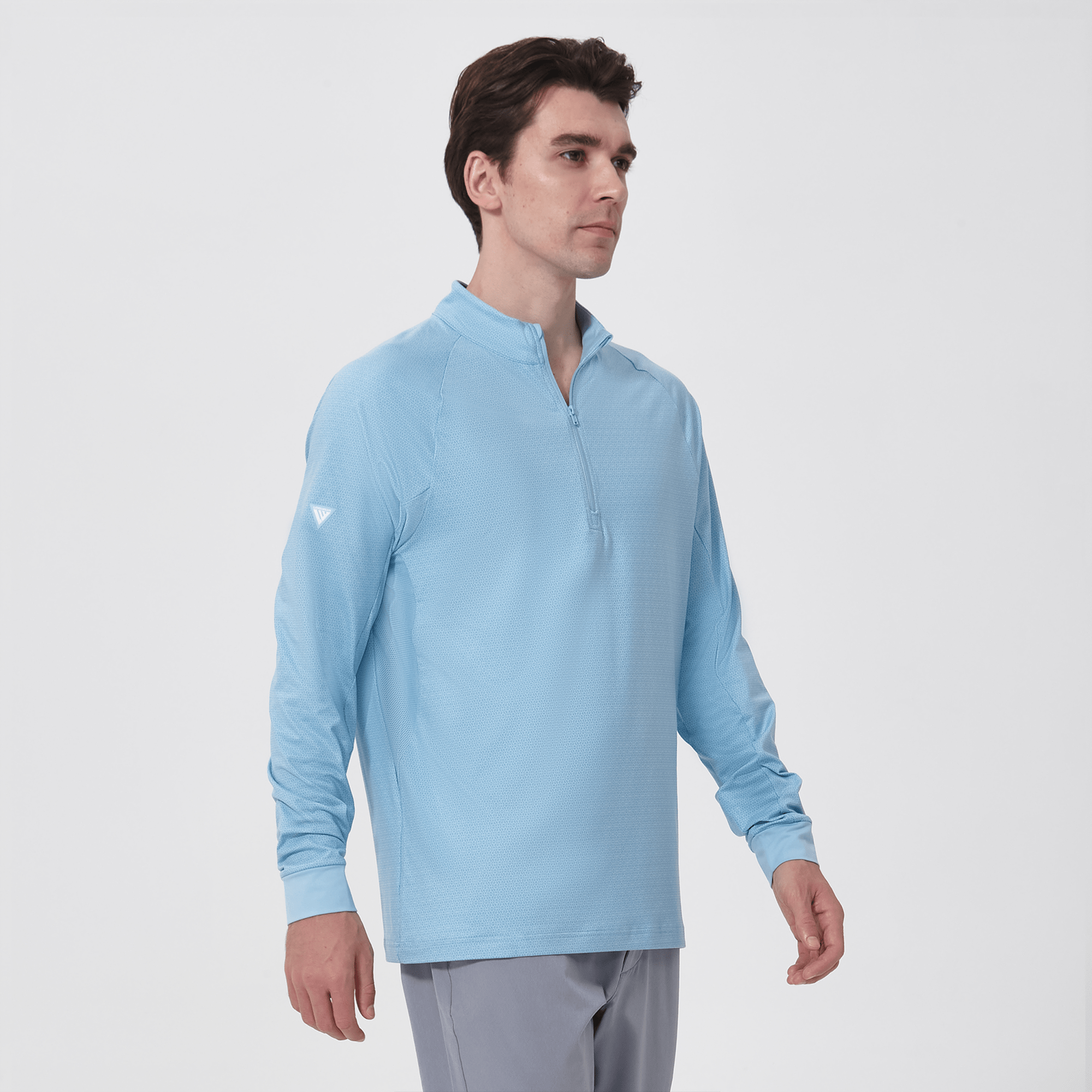 Experience the ultimate in layering versatility with the men's Iceberg hand feel, designed for both golf and active wear. This essential piece is crafted from a blend of 88% polyester and 12% spandex, ensuring flexibility and comfort during any activity. The fabric features a peached hand feel for an exceptionally soft touch, while also incorporating moisture-wicking technology to keep you dry, anti-pilling properties to maintain a smooth appearance, and anti-static treatment to reduce cling. The quarter-zip with a stand-up collar allows for easy temperature regulation, and the contrast mesh side panels offer enhanced breathability. Raglan sleeves ensure a greater range of motion, perfect for swinging a golf club or any dynamic movement. Finished with a subtle all-over triangular print, the Iceberg midlayer is a stylish and functional choice for layering on the course or while engaging in any outdoor activities.