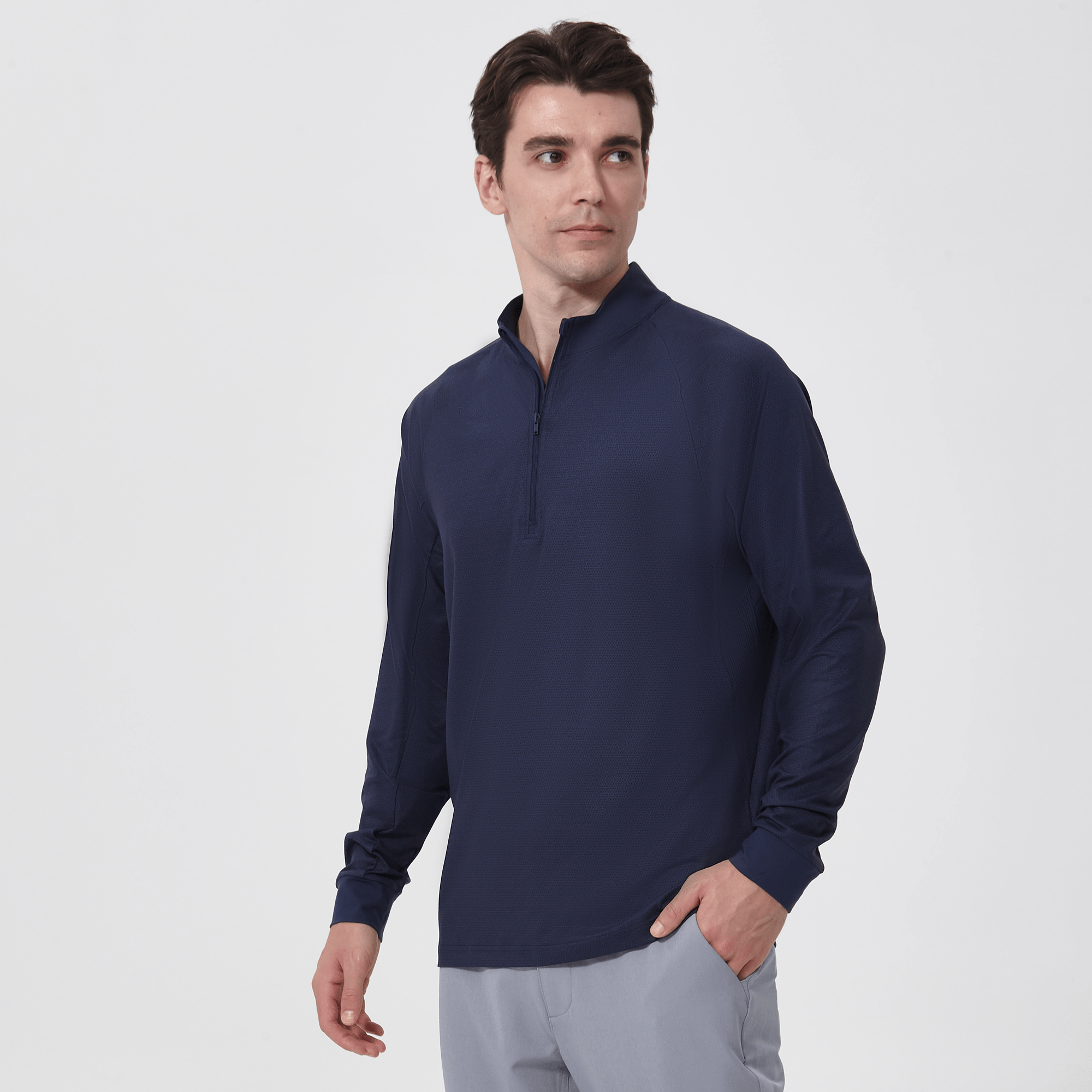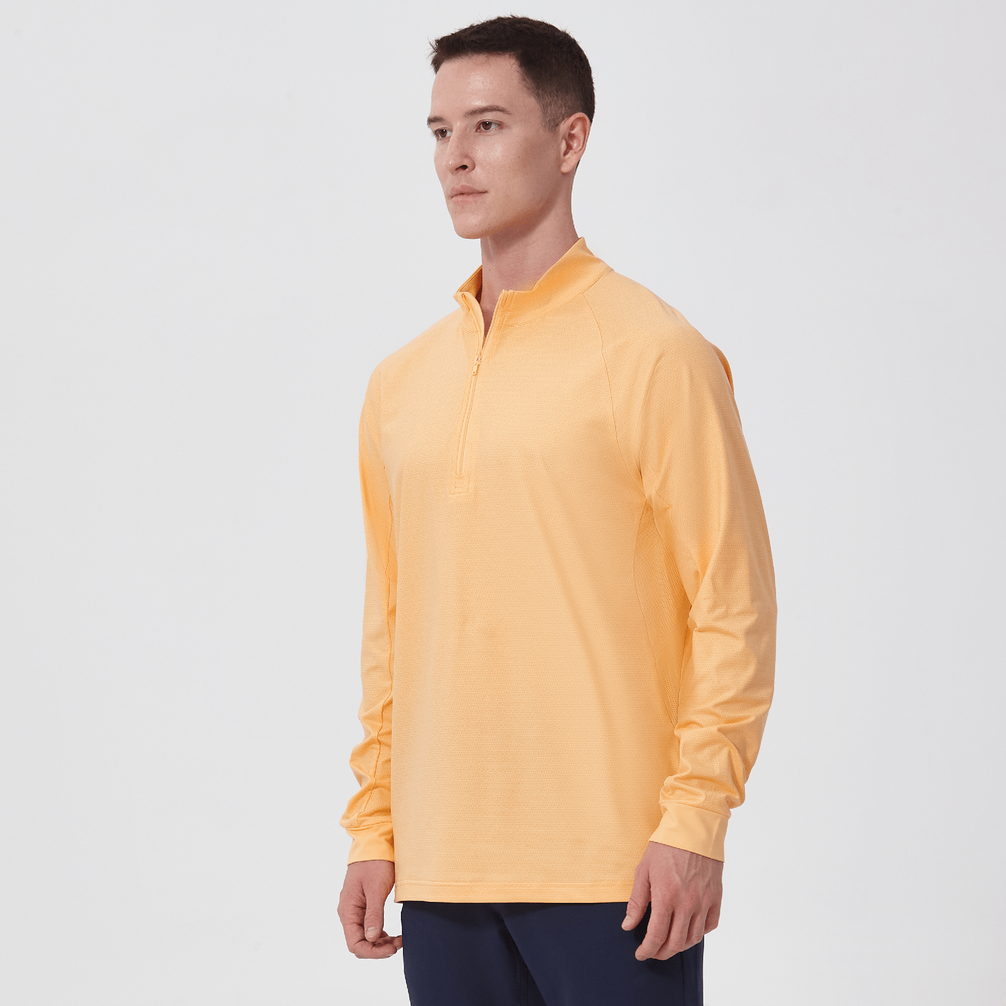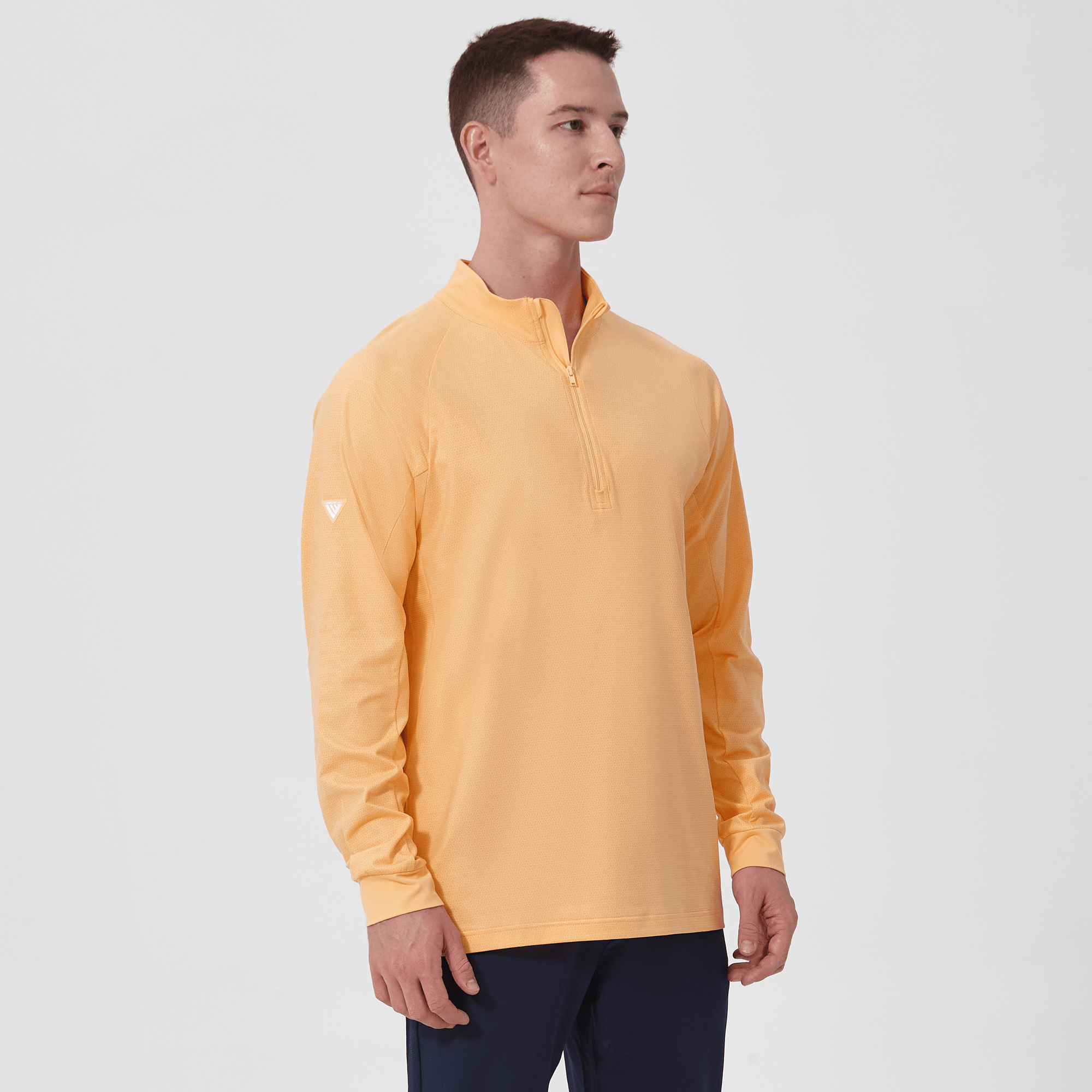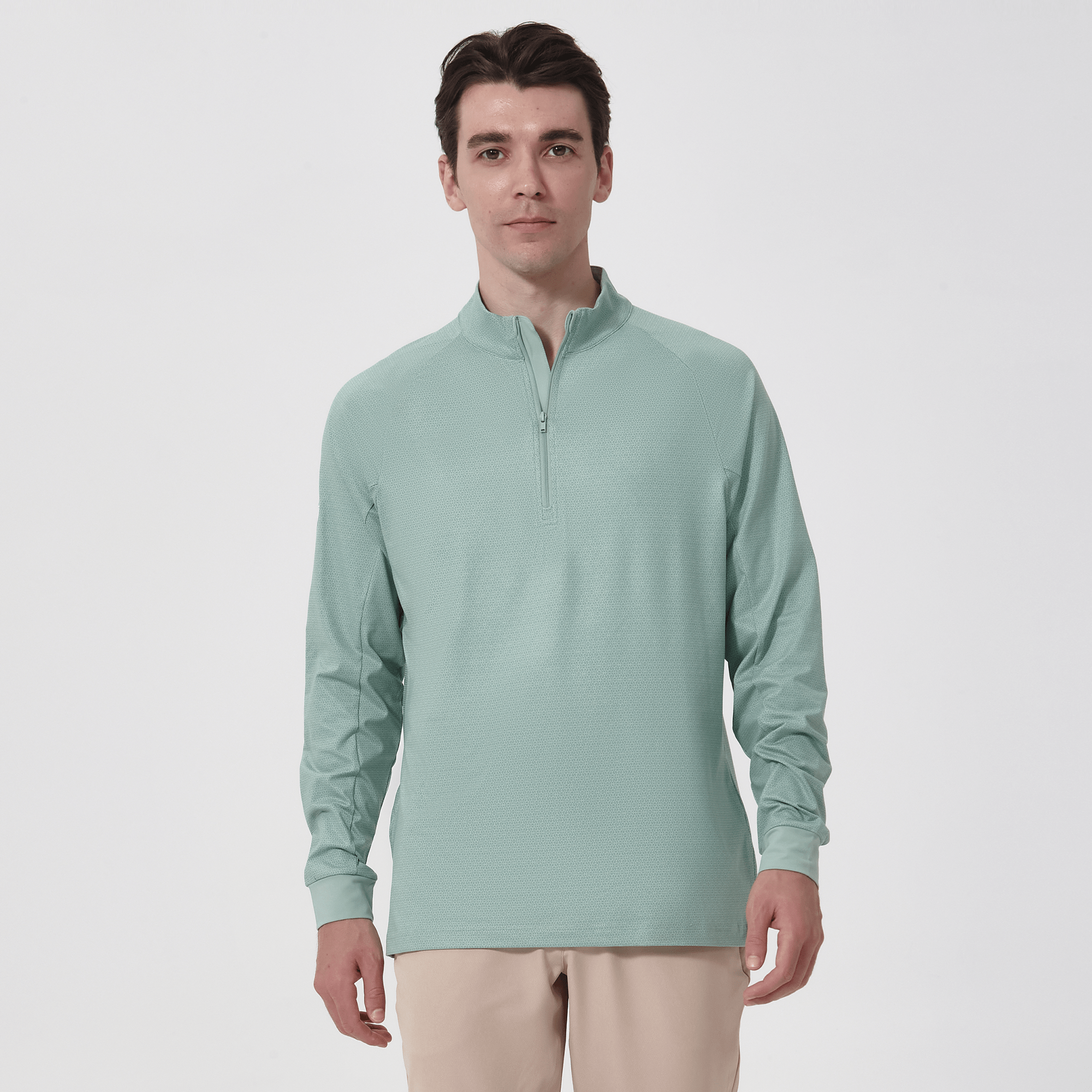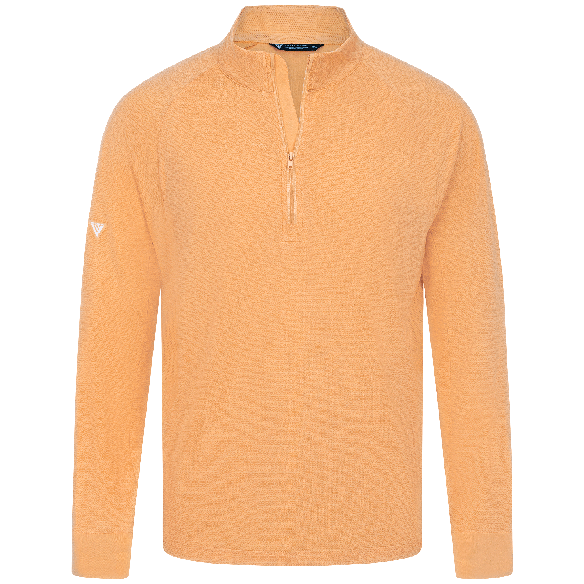 Experience the ultimate in layering versatility with the men's Iceberg hand feel, designed for both golf and active wear. This essential piece is crafted from a blend of 88% polyester and 12% spandex, ensuring flexibility and comfort during any activity. The fabric features a peached hand feel for an exceptionally soft touch, while also incorporating moisture-wicking technology to keep you dry, anti-pilling properties to maintain a smooth appearance, and anti-static treatment to reduce cling. The quarter-zip with a stand-up collar allows for easy temperature regulation, and the contrast mesh side panels offer enhanced breathability. Raglan sleeves ensure a greater range of motion, perfect for swinging a golf club or any dynamic movement. Finished with a subtle all-over triangular print, the Iceberg midlayer is a stylish and functional choice for layering on the course or while engaging in any outdoor activities.