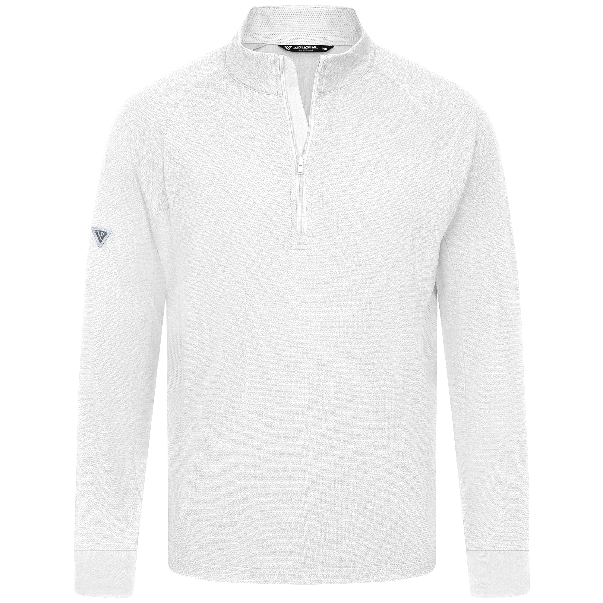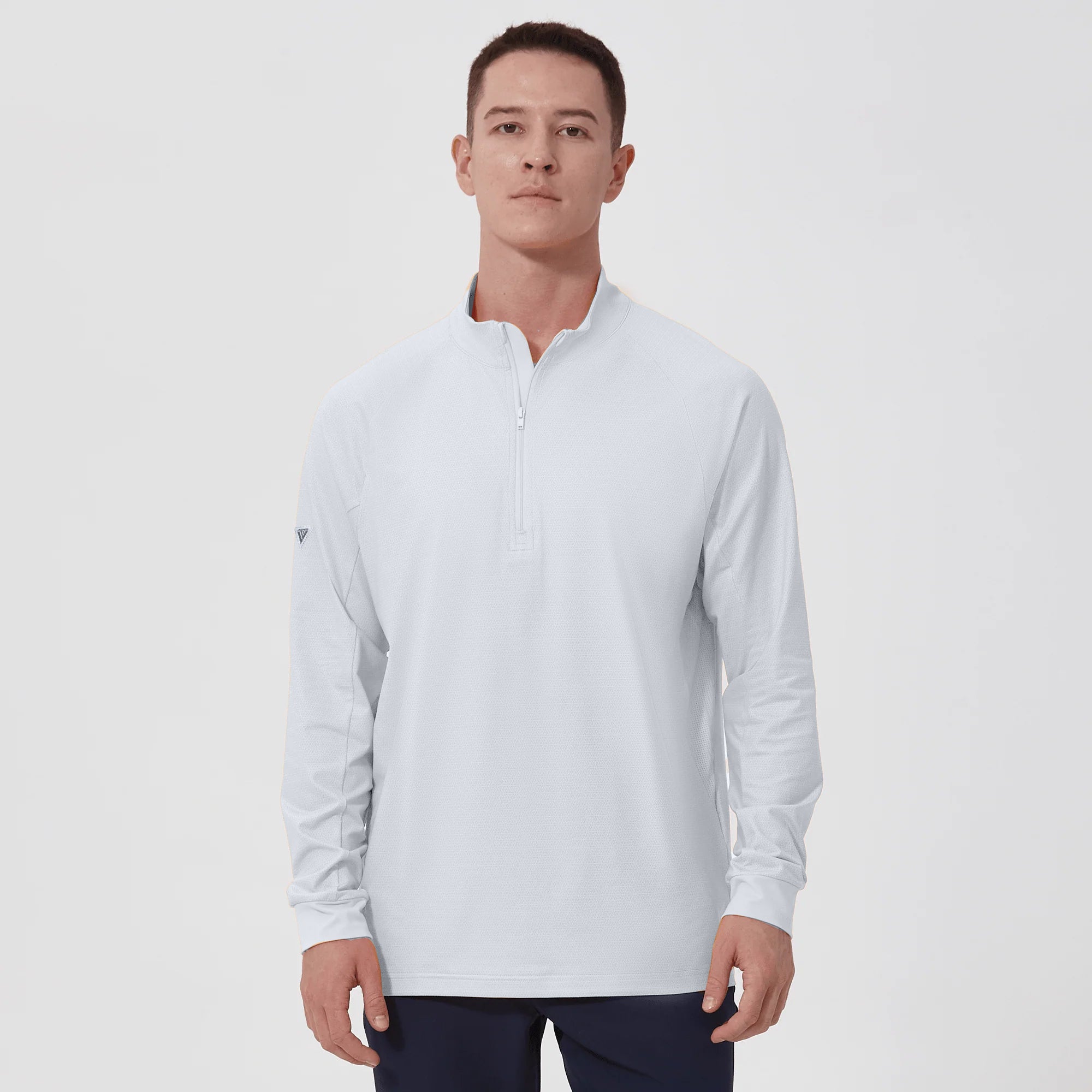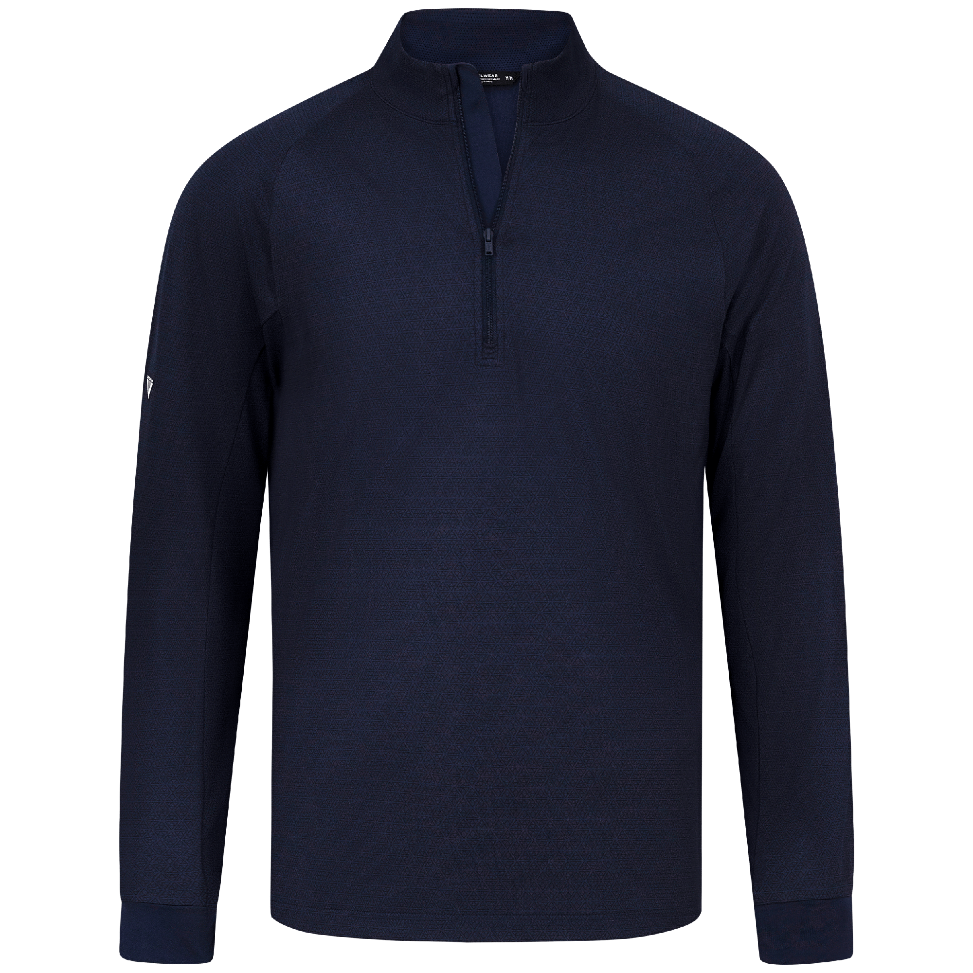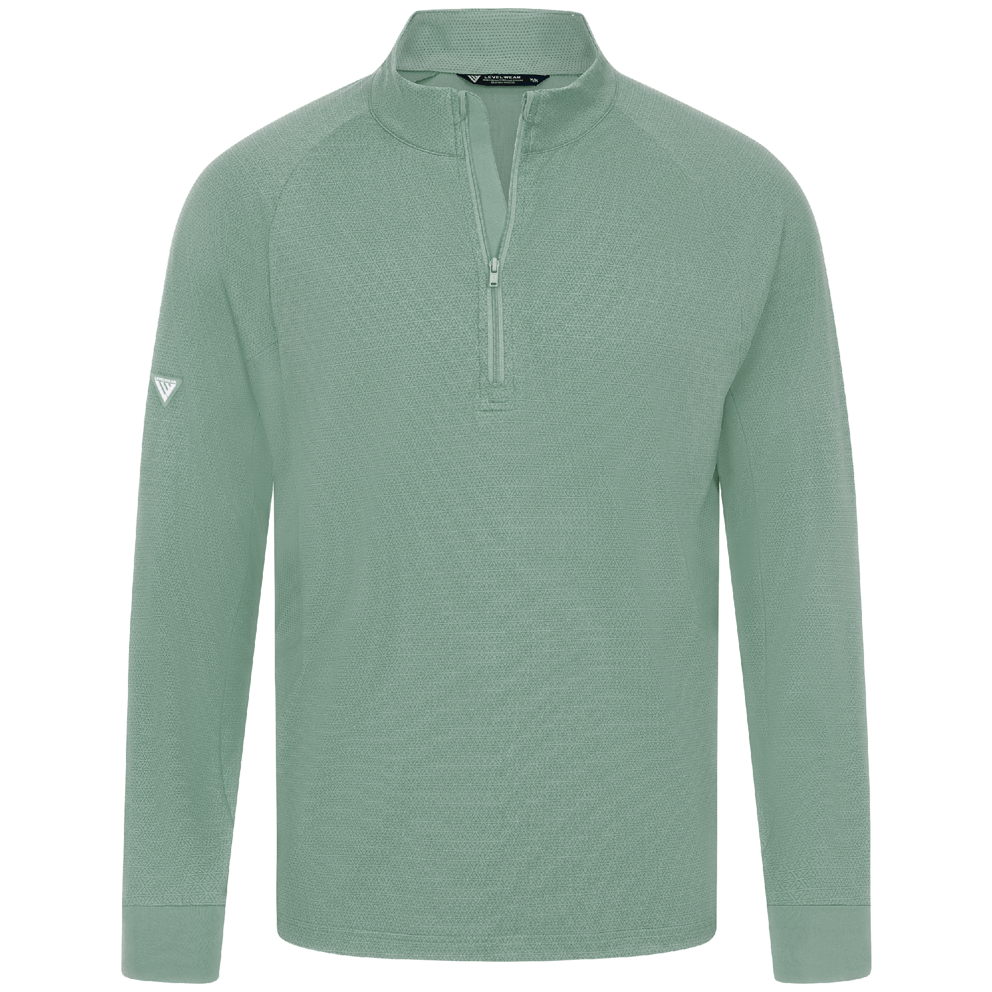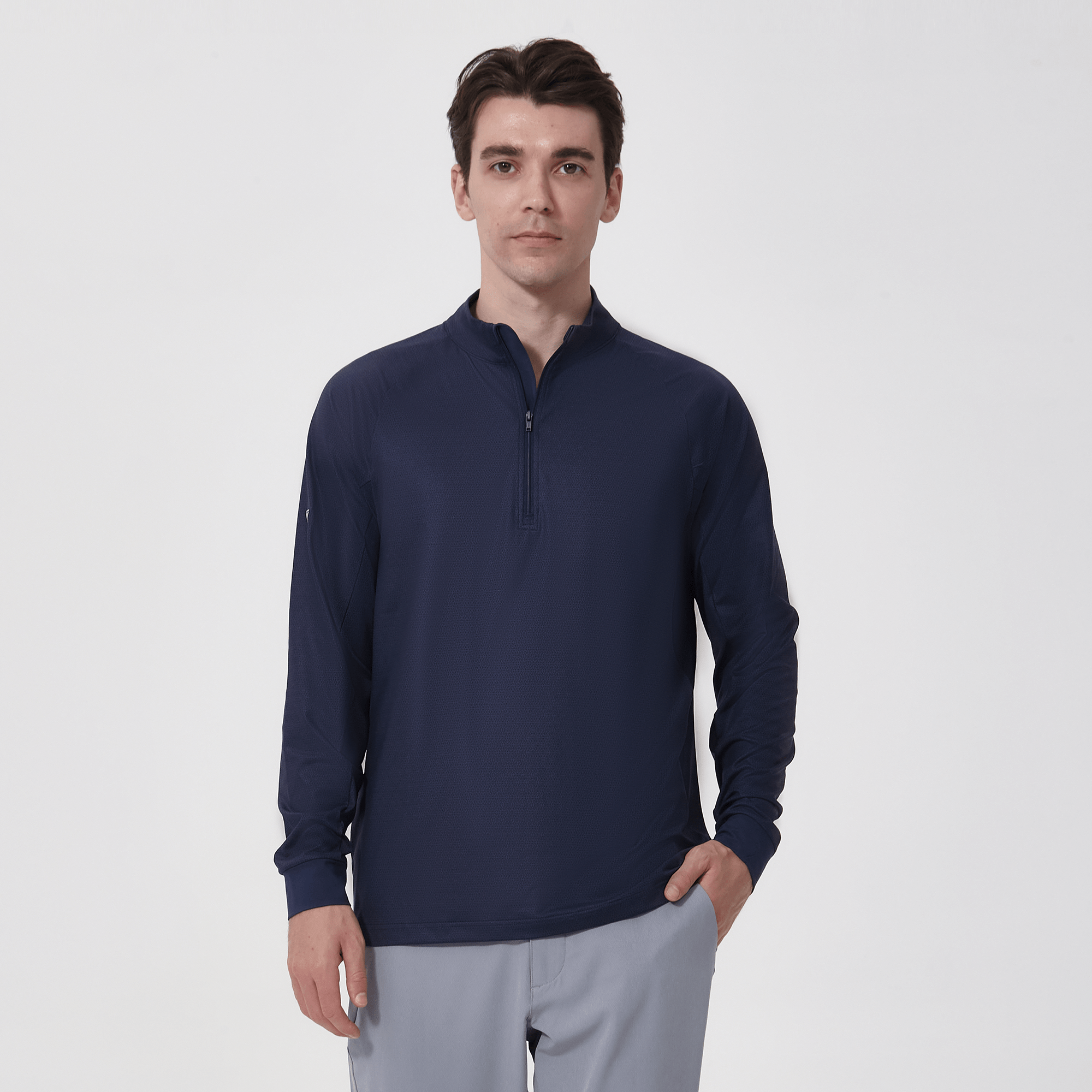 Experience the ultimate in layering versatility with the men's Iceberg hand feel, designed for both golf and active wear. This essential piece is crafted from a blend of 88% polyester and 12% spandex, ensuring flexibility and comfort during any activity. The fabric features a peached hand feel for an exceptionally soft touch, while also incorporating moisture-wicking technology to keep you dry, anti-pilling properties to maintain a smooth appearance, and anti-static treatment to reduce cling. The quarter-zip with a stand-up collar allows for easy temperature regulation, and the contrast mesh side panels offer enhanced breathability. Raglan sleeves ensure a greater range of motion, perfect for swinging a golf club or any dynamic movement. Finished with a subtle all-over triangular print, the Iceberg midlayer is a stylish and functional choice for layering on the course or while engaging in any outdoor activities.