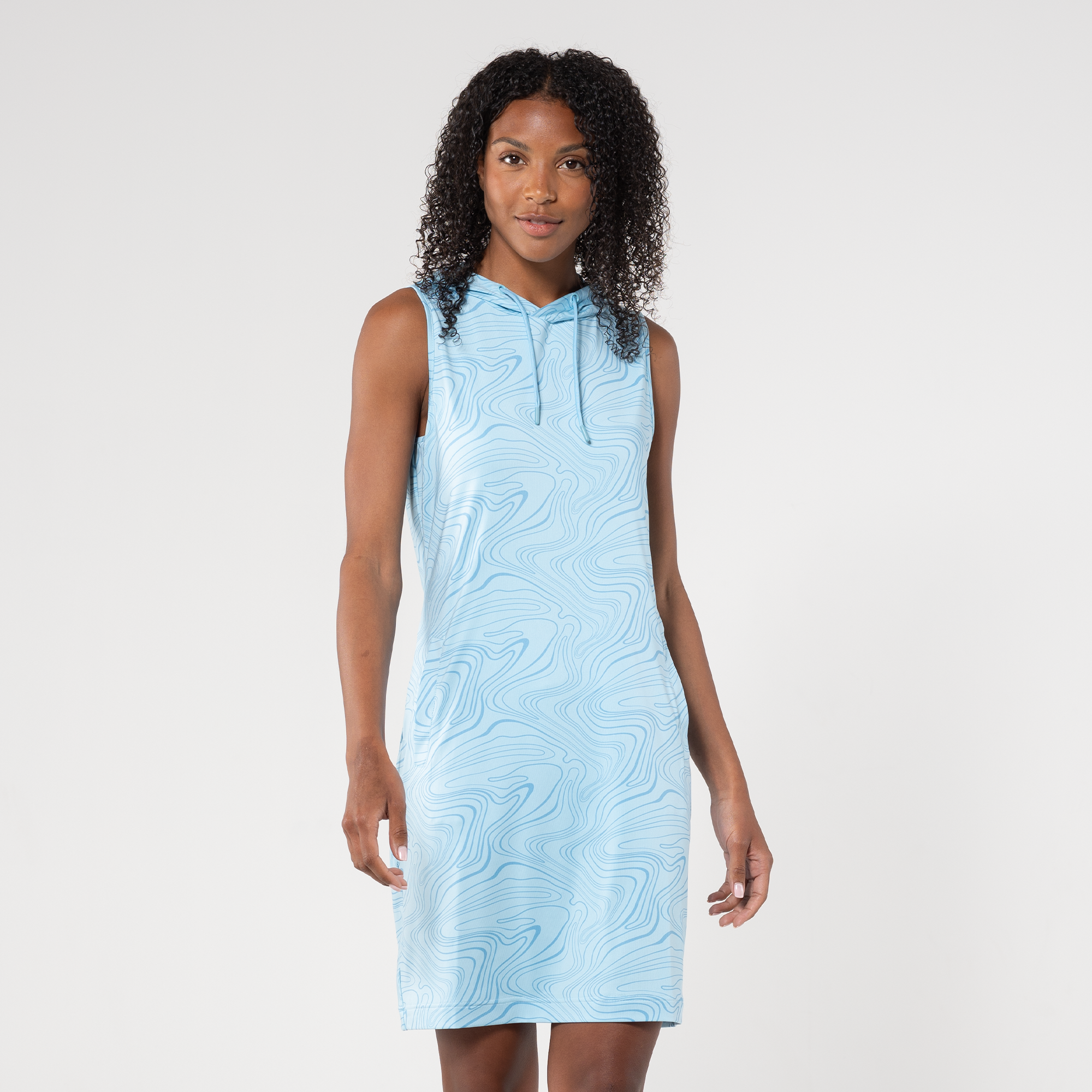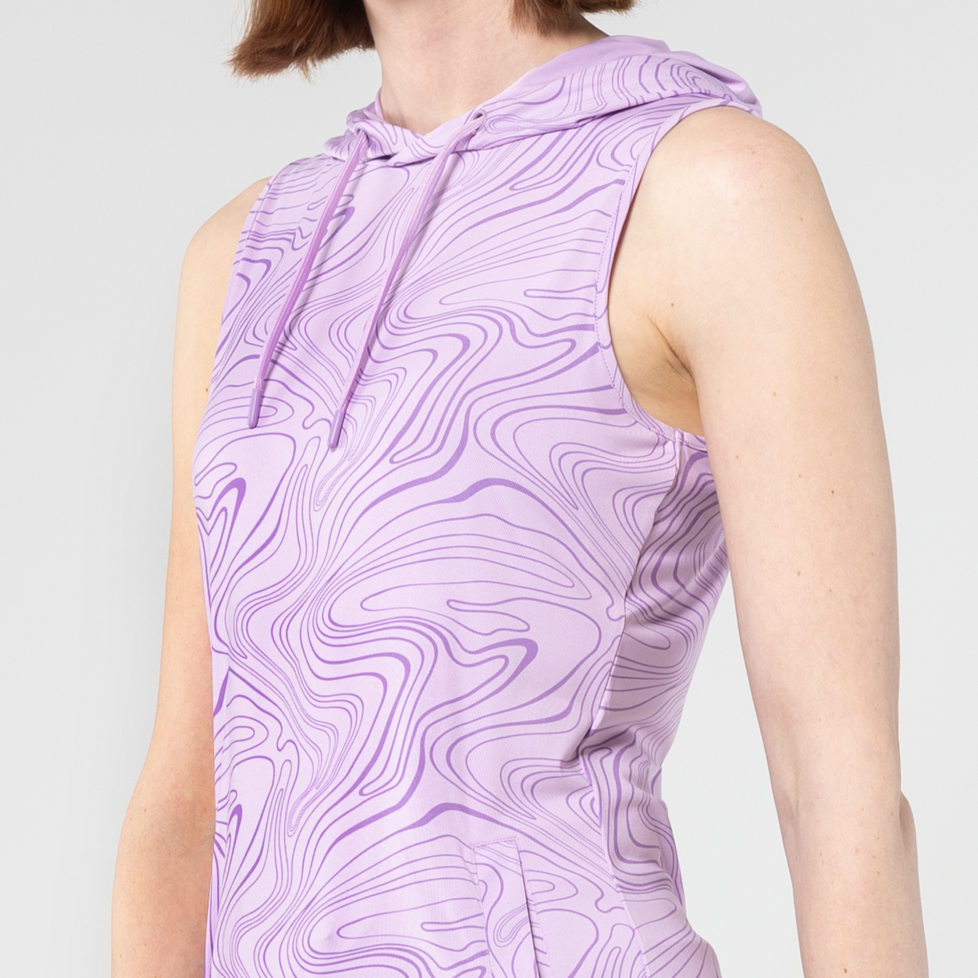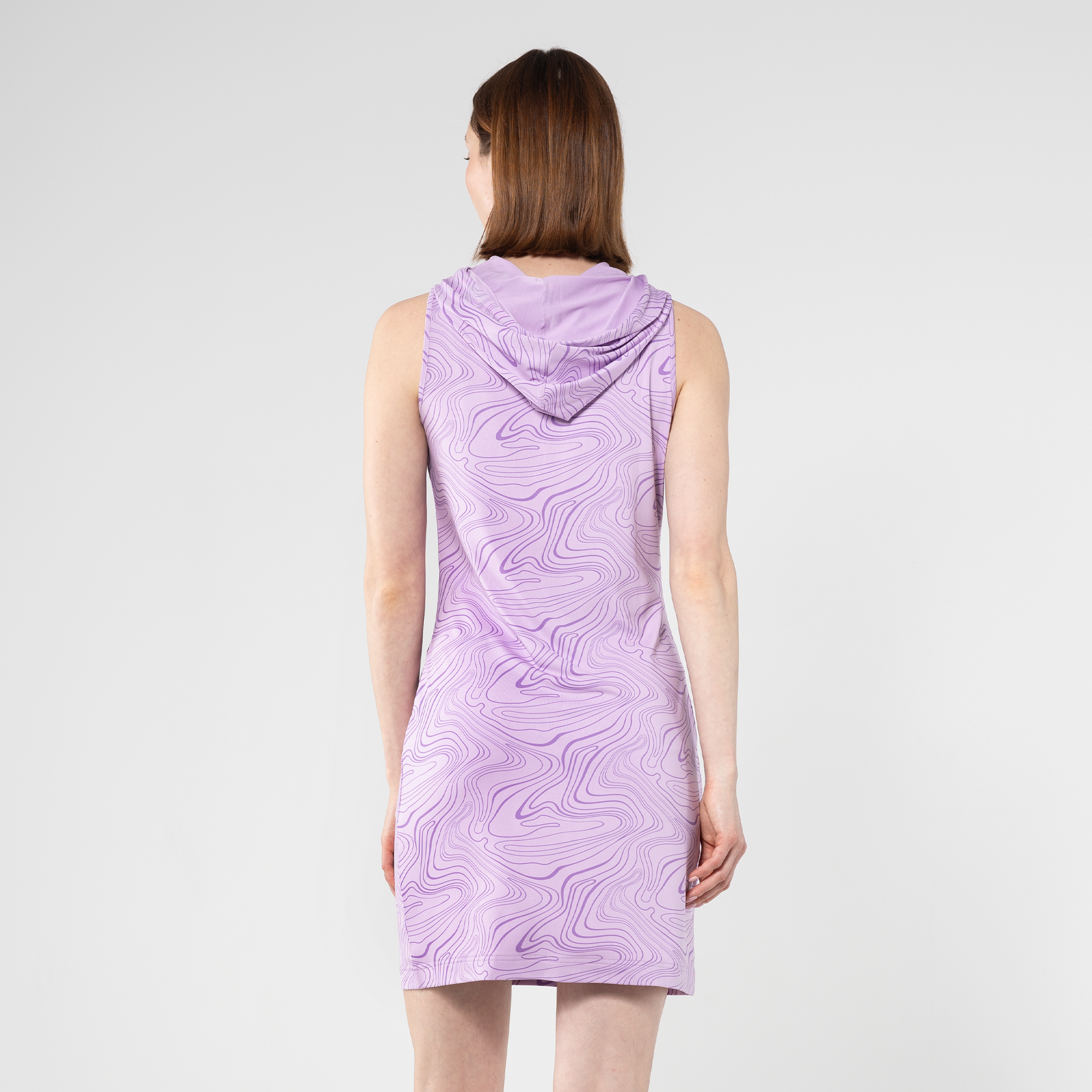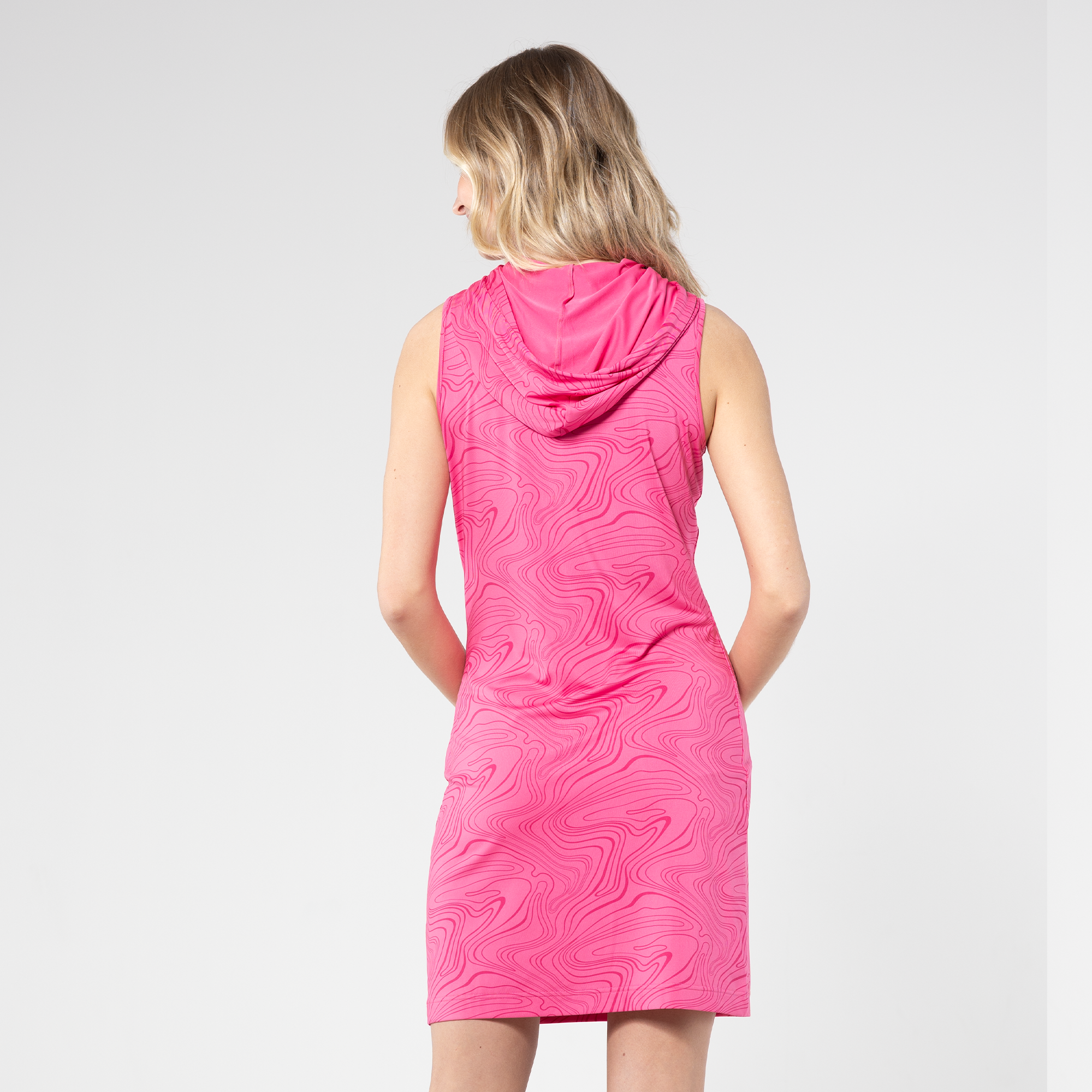 Introducing our Jazz Dress, where style meets comfort. It features a self-fabric hood with mesh lining, drawcords for a personalized fit, and a convenient kangaroo pocket. The dress also includes hidden shorts, all in a captivating psychedelic pattern. Perfect for a unique, versatile look.
