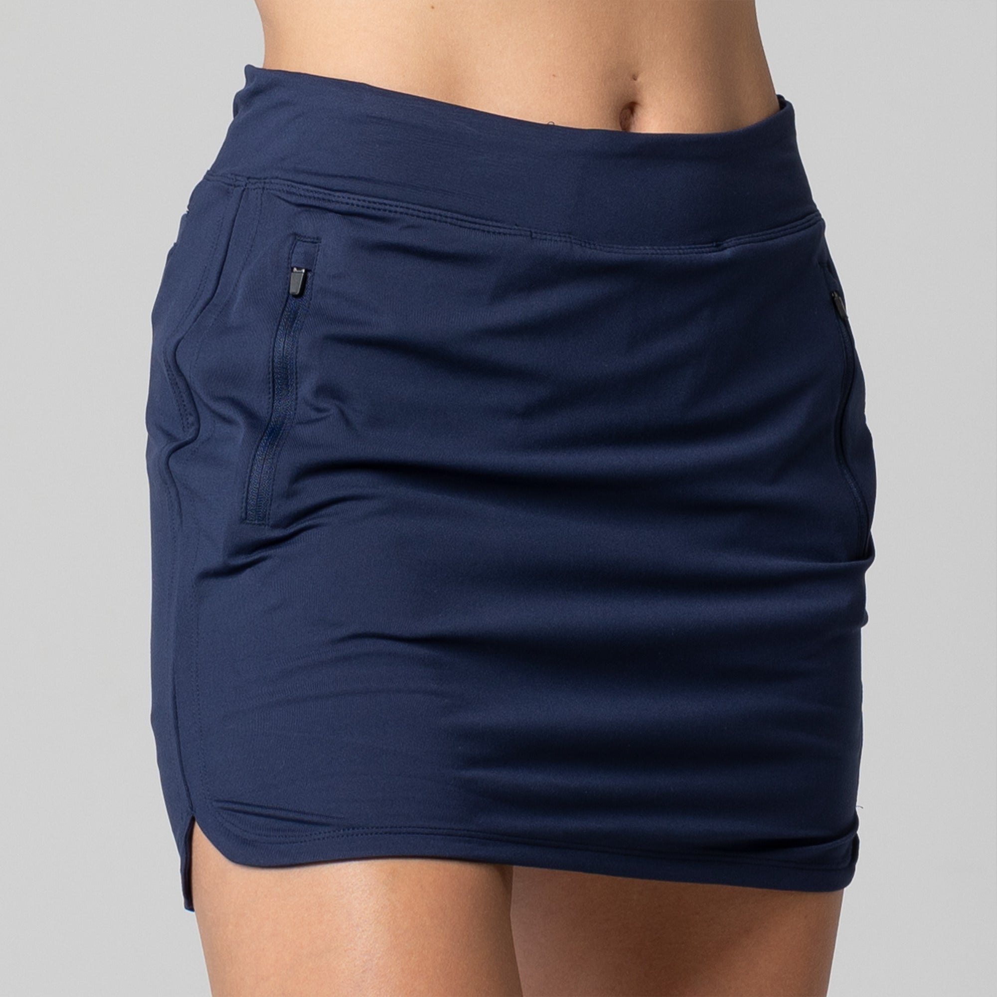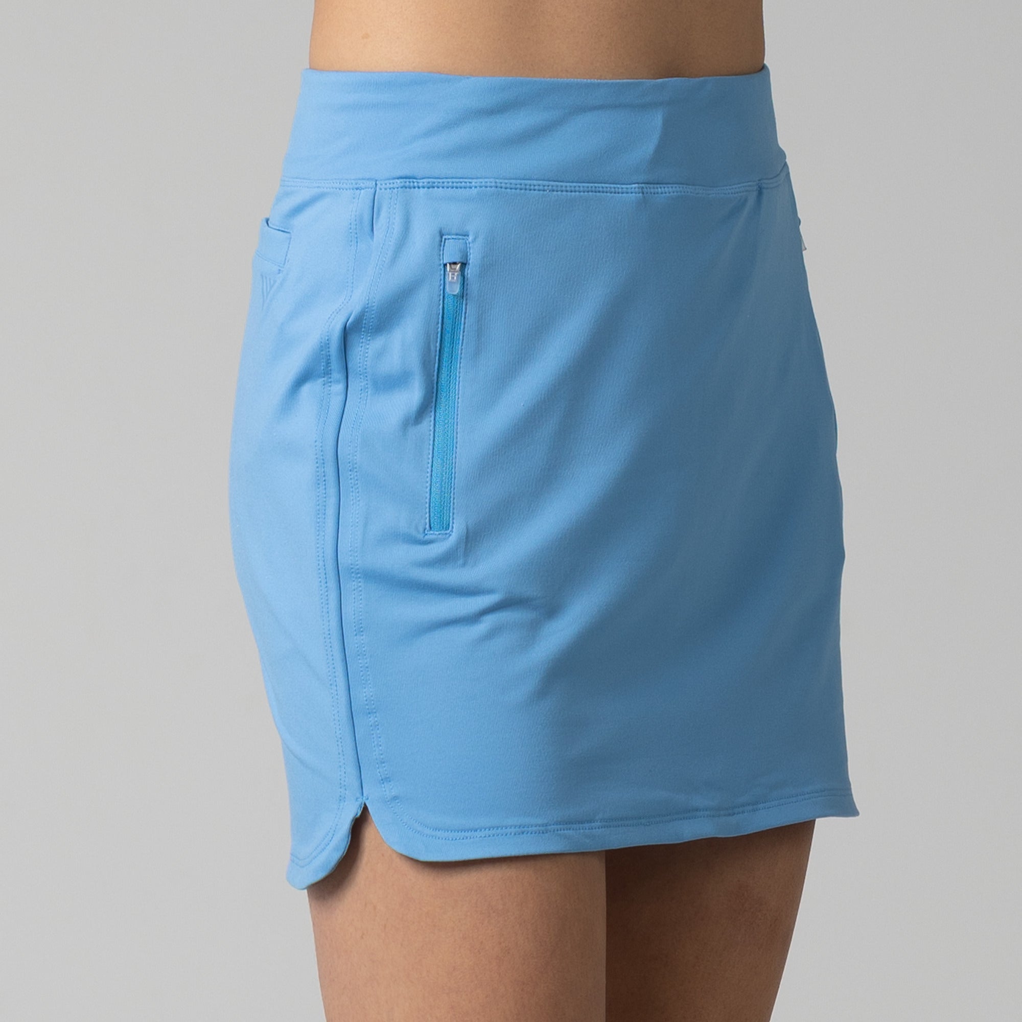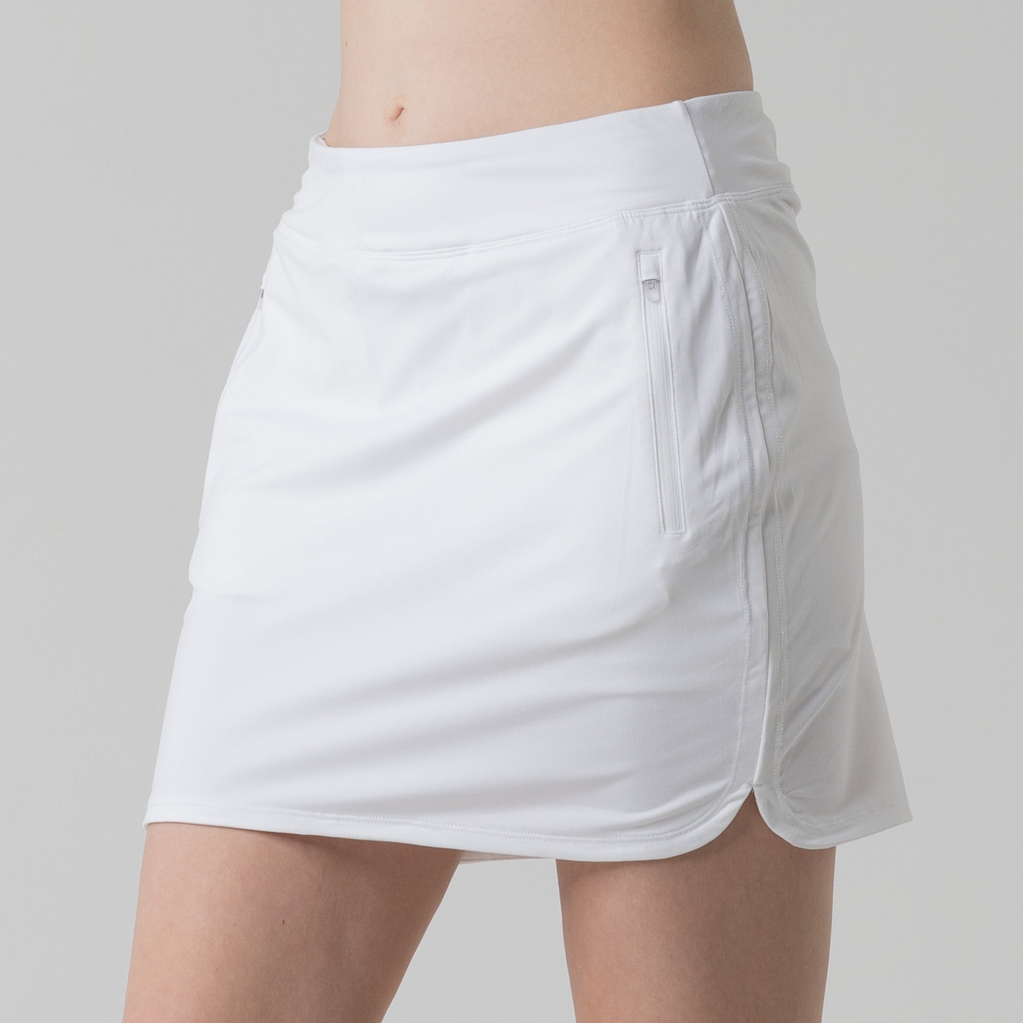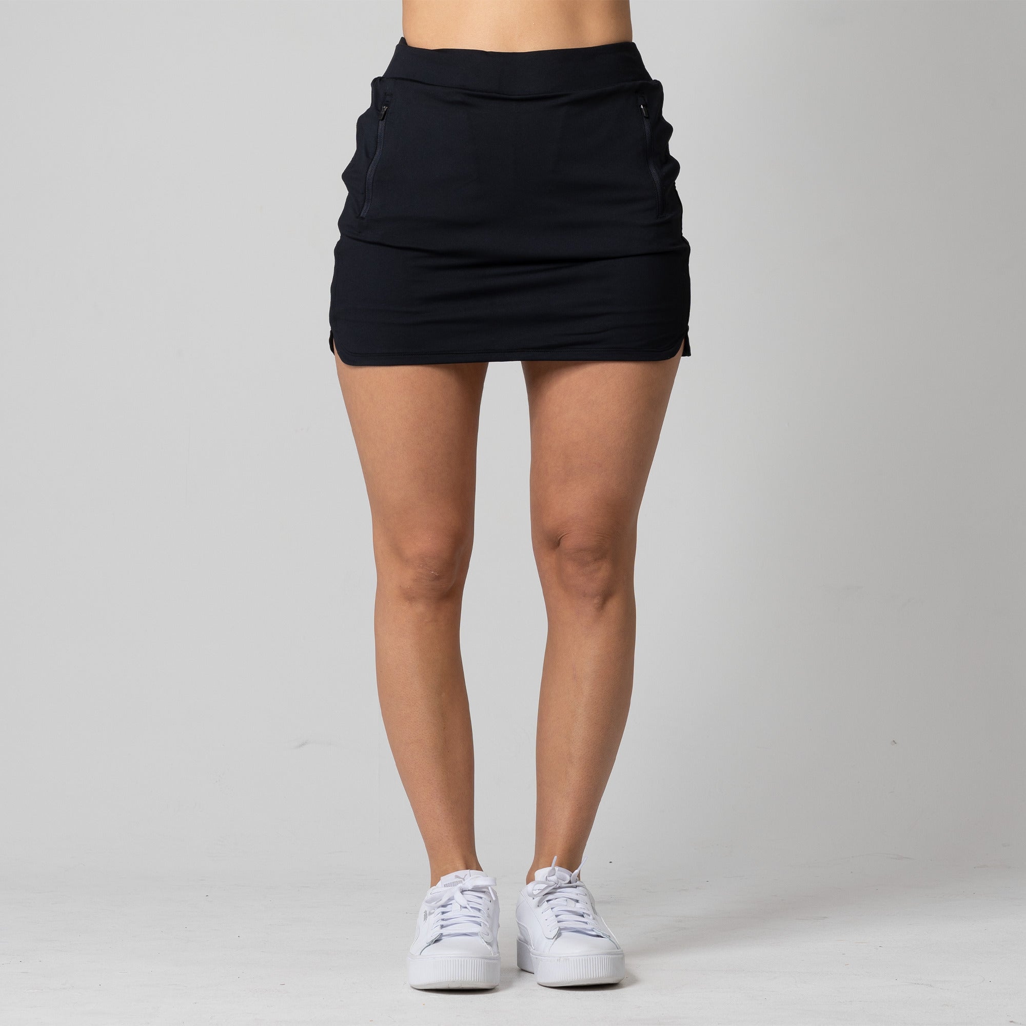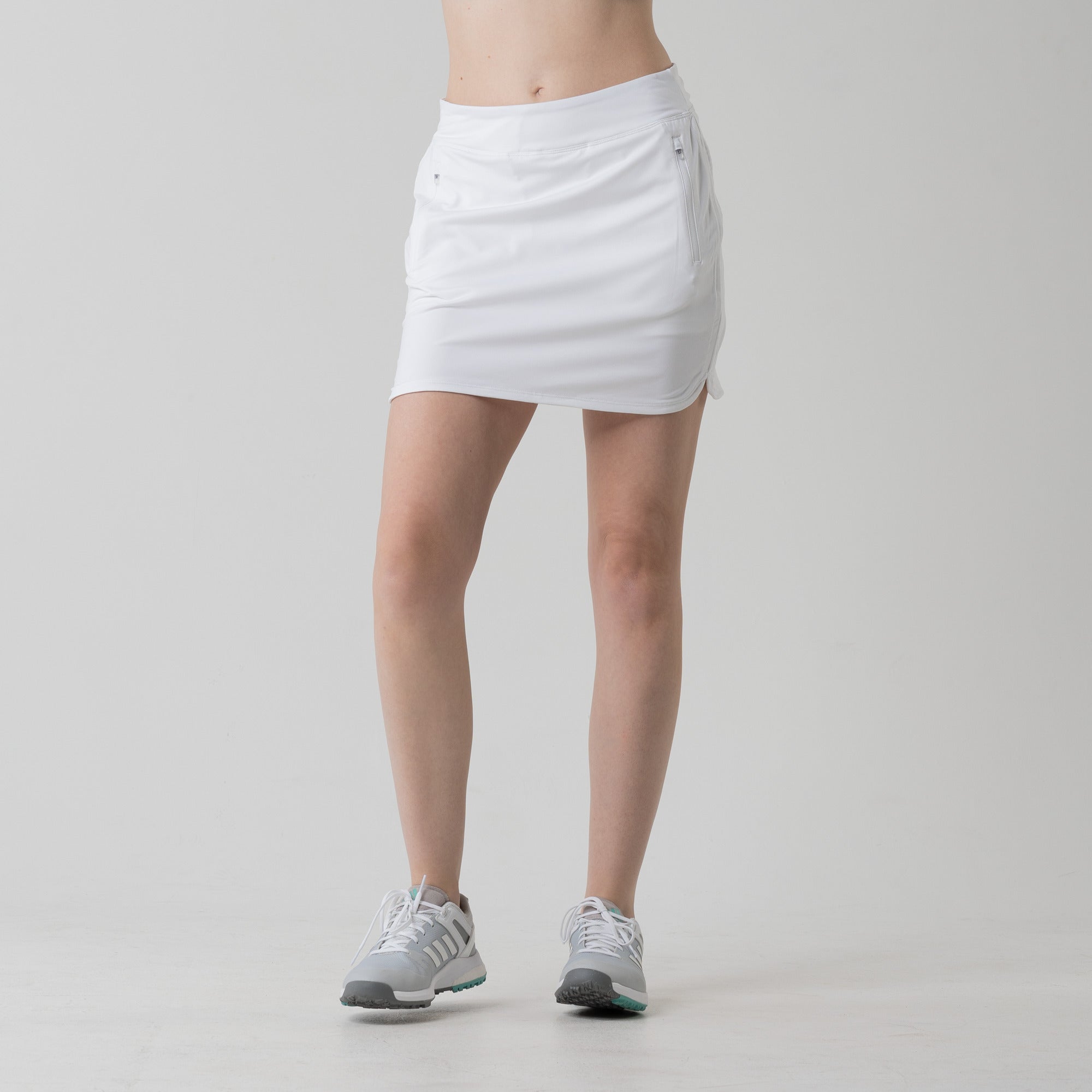Hit the golf course in style with the Cindy, a beautifully designed knit skort that combines fashion and functionality. This piece is made from a blend of 88% polyester and 12% spandex, providing a comfortable stretch that moves with you. The skirt features zippered pockets for securely storing small essentials, a figure-flattering silhouette, and side slits for added mobility. With a length of 16 inches at the front on a size medium, and grading by 1/2 inch per size, it offers just the right coverage while maintaining a sophisticated and sleek look. Perfect for a sunny day on the greens, the Cindy is a must-have for any golfer.