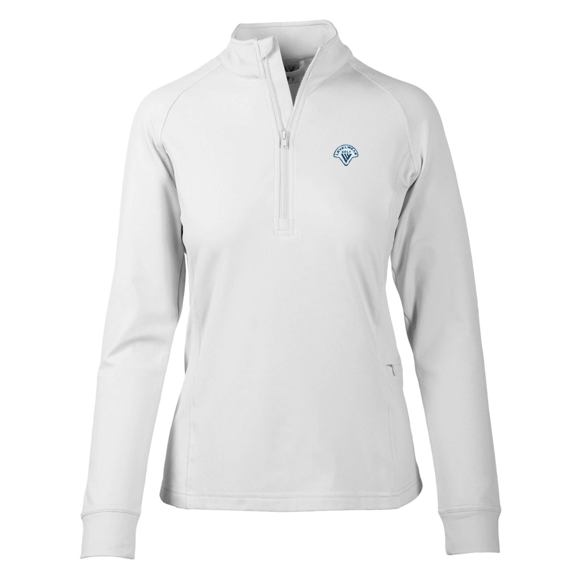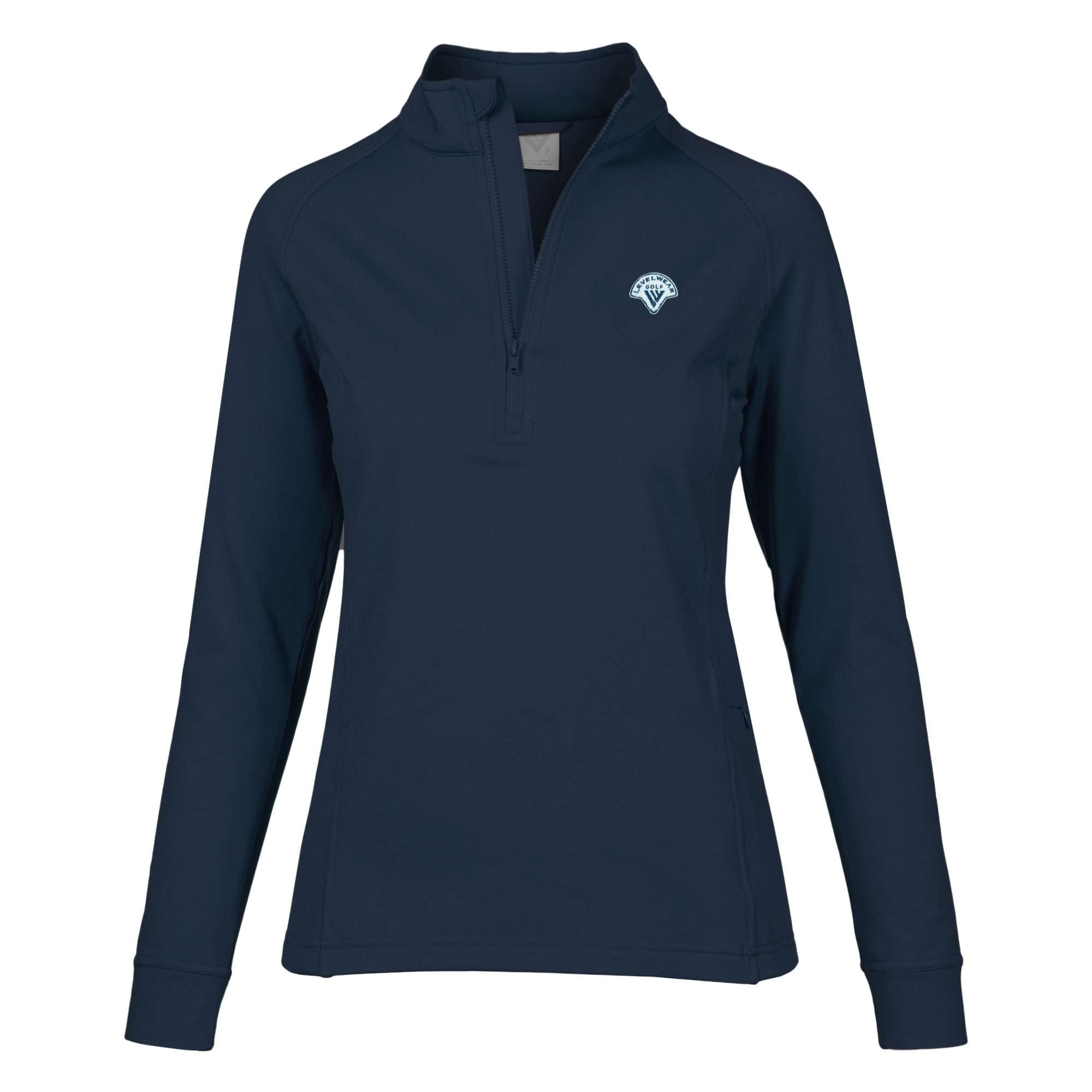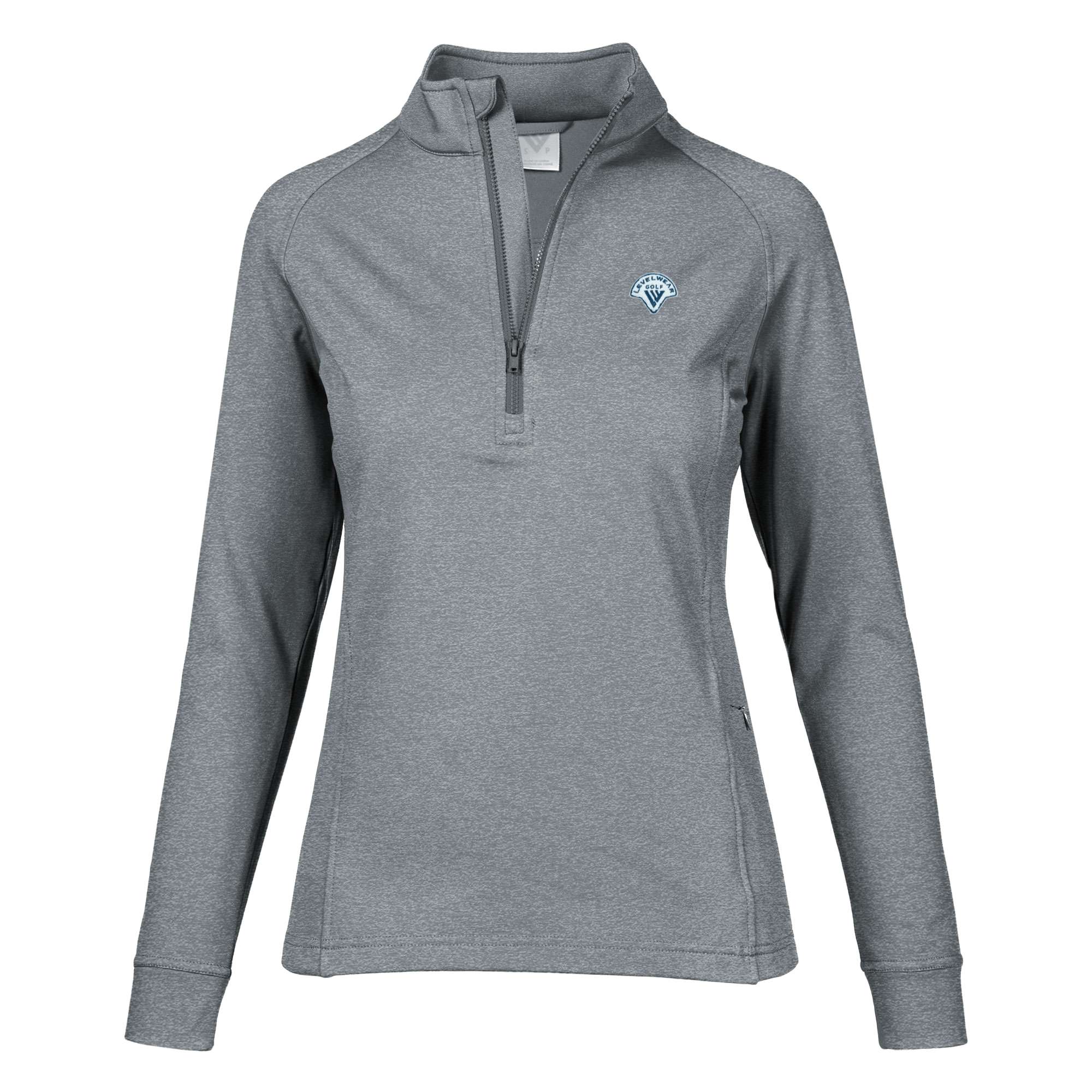 Enhance your active wardrobe with the women's Essence midlayer, a lightweight quarter-zip pullover designed for efficiency and ease. Made from a blend of 88% polyester and 12% spandex, this midlayer offers a moisture-wicking finish to keep you dry, coupled with an anti-static treatment for uninterrupted ease of movement. It features perforations under the arms for increased breathability and a drop tail hem for extra coverage while moving. Safety is also a priority with a reflective strip on the back to increase visibility during low-light conditions. Additionally, a hidden pocket provides a secure place to store essentials while on the go.