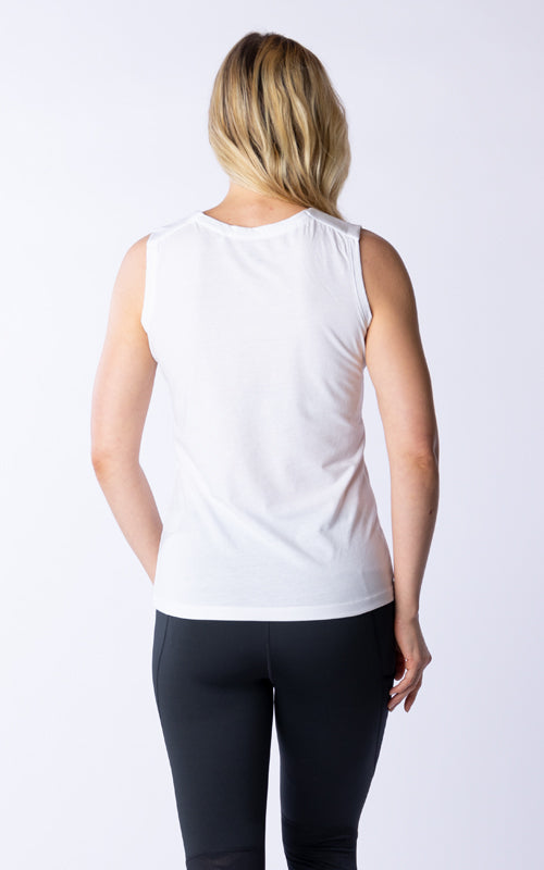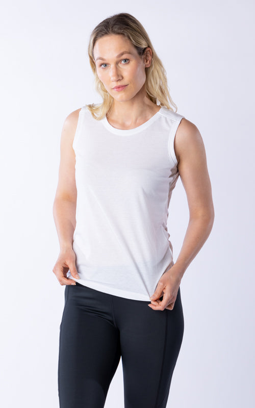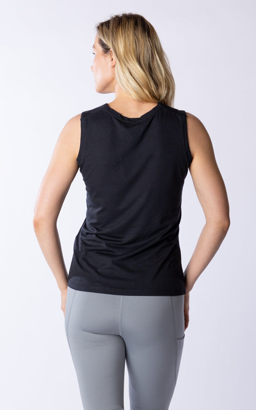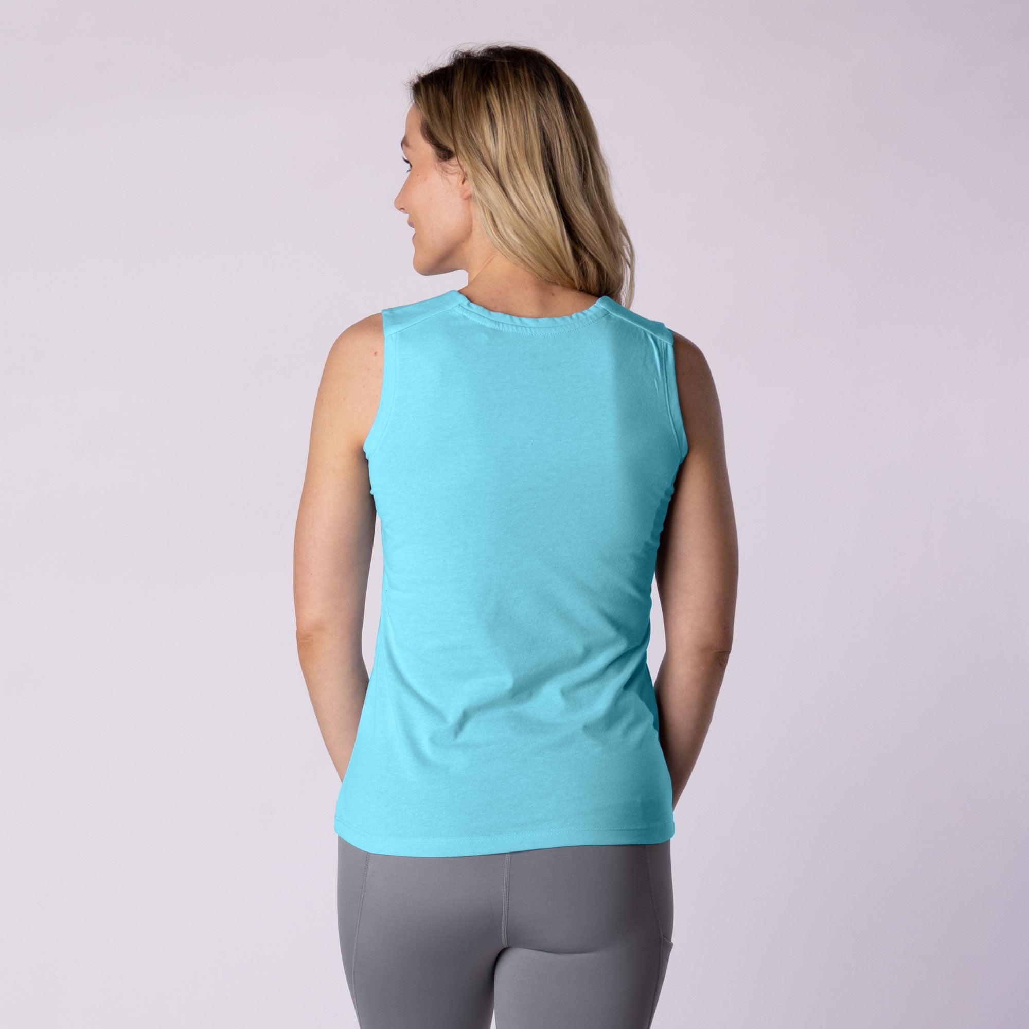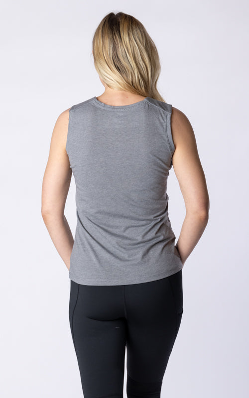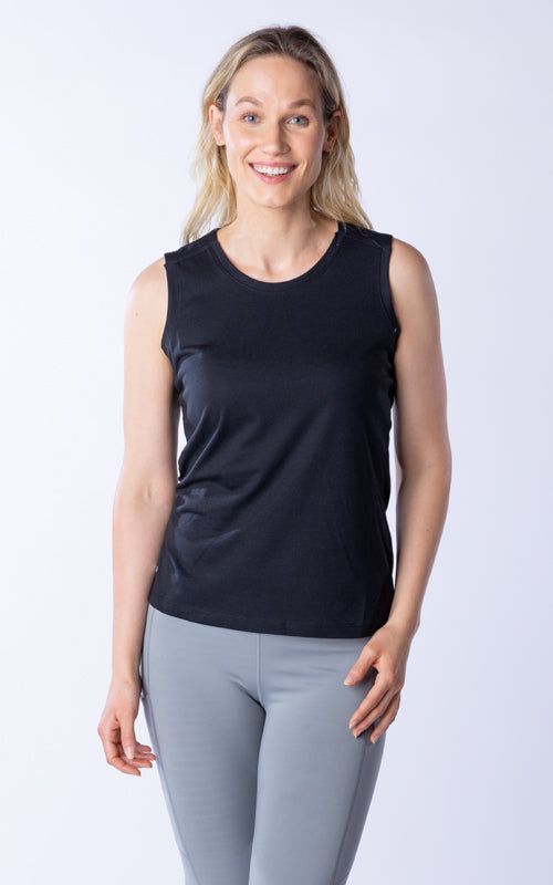 The Macy tank top is designed with the dynamic, on-the-go woman in mind. This tank features a clean finished shoulder yoke and a sleek self-collar band that merge sophistication with practicality. The crew neck design is ideal for layering or wearing on its own. Crafted from a breathable blend of 65% polyester and 35% cotton, the Macy offers all-day comfort without sacrificing style. Whether you're transitioning from a morning yoga session to a client meeting or just enjoying a casual day out, the Macy tank top ensures you look and feel your best.