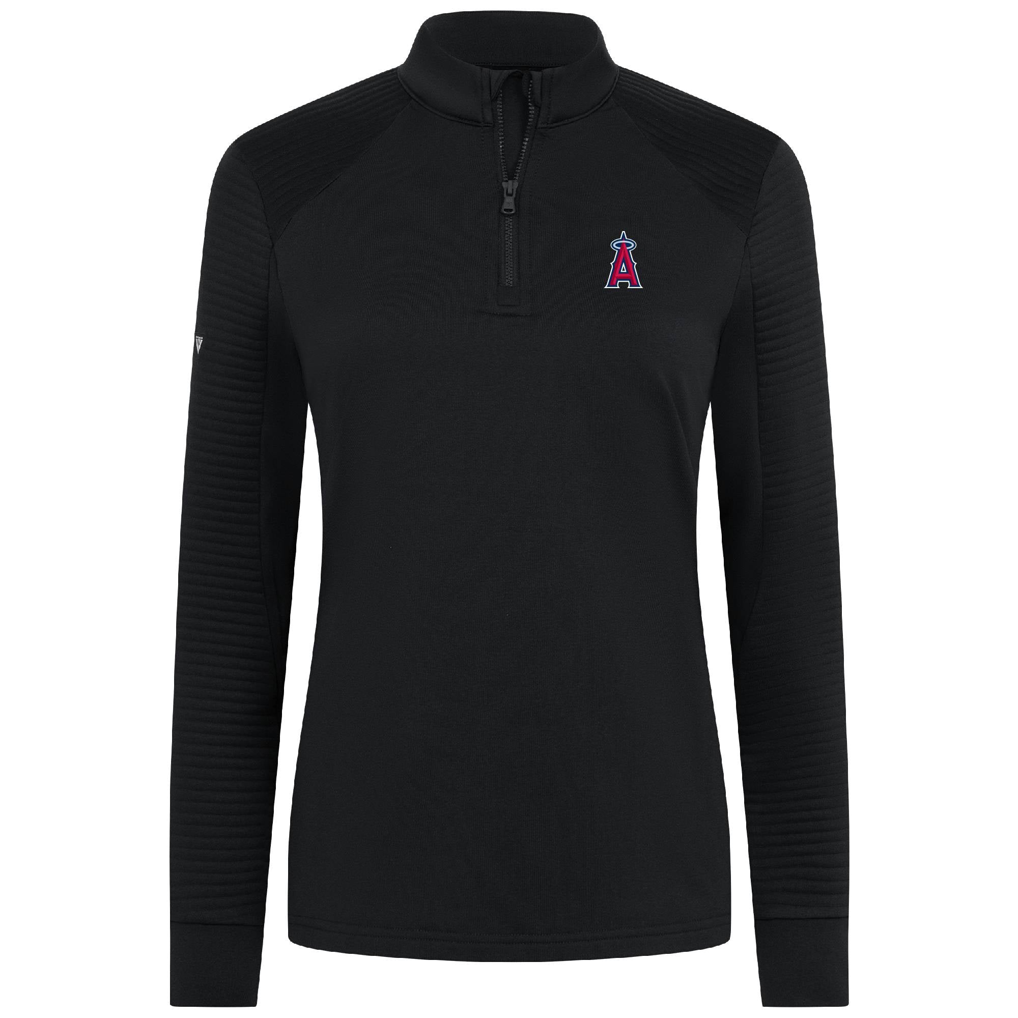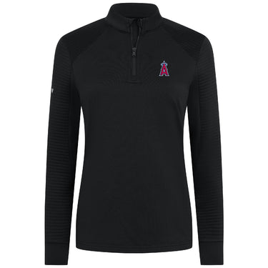 The women's Power midlayer is specifically designed to enhance your golf experience, ensuring you stay focused and unhindered throughout your game. This top is equipped with advanced moisture-wicking technology to efficiently remove sweat, keeping you dry as you play. Additionally, it features anti-static and anti-pilling properties to maintain its polished look over time. The quarter-zip with a stand-up collar allows for easy ventilation adjustment, while the contrast textured stripes on the shoulder panels and upper sleeve panels add a dynamic visual element. The high-low hem detail provides extra coverage in the back, perfect for maintaining discretion during your swings. Ideal for cooler days on the course, this midlayer merges subtle style upgrades with high-performance features to keep you at the top of your game.