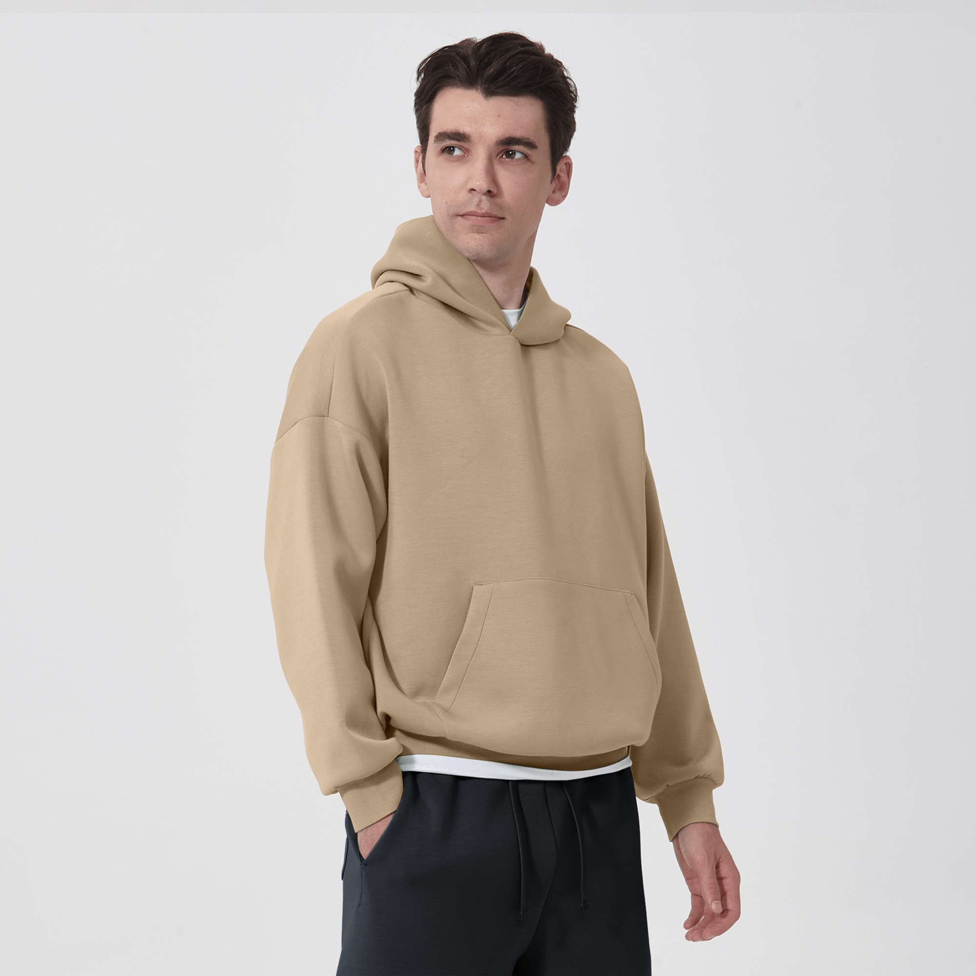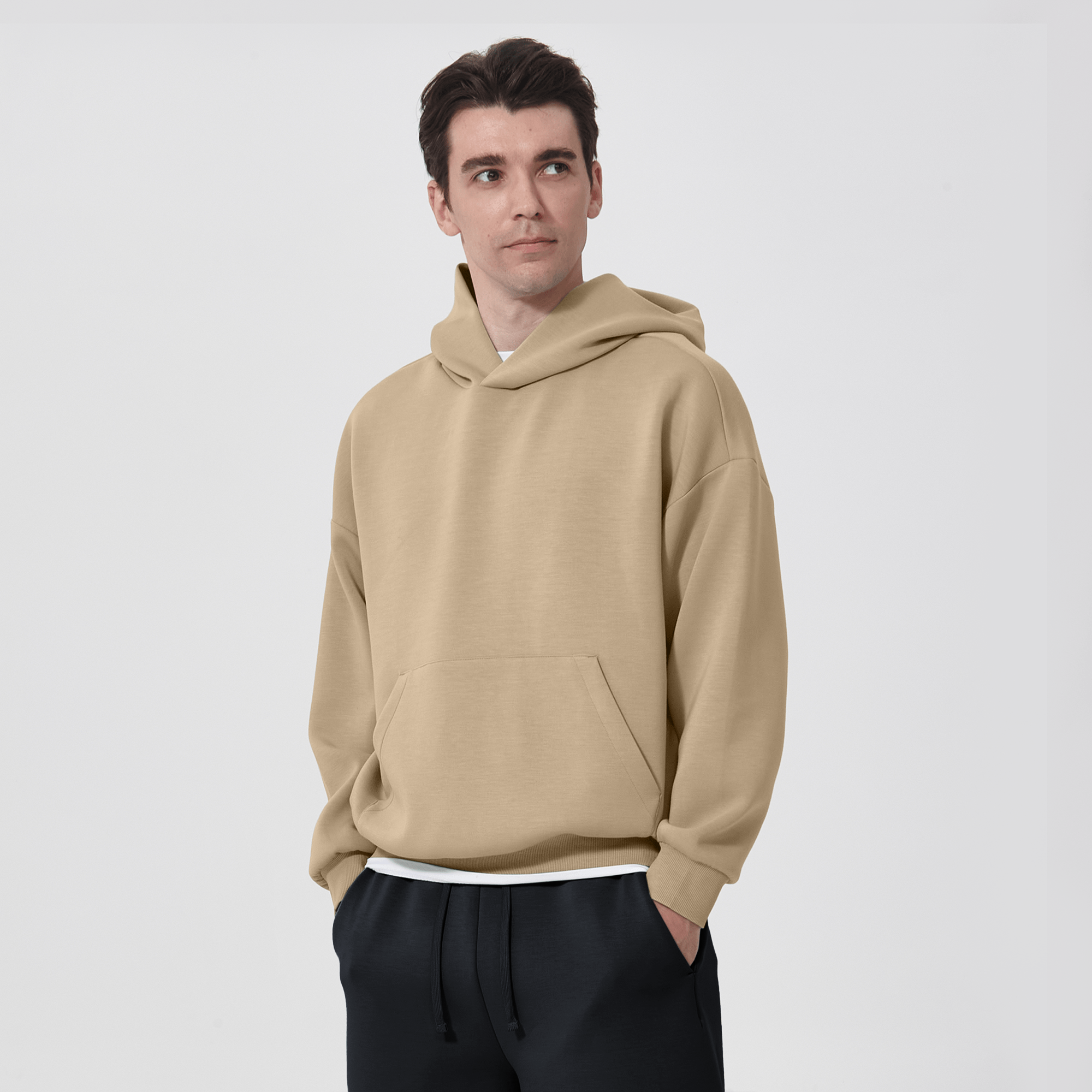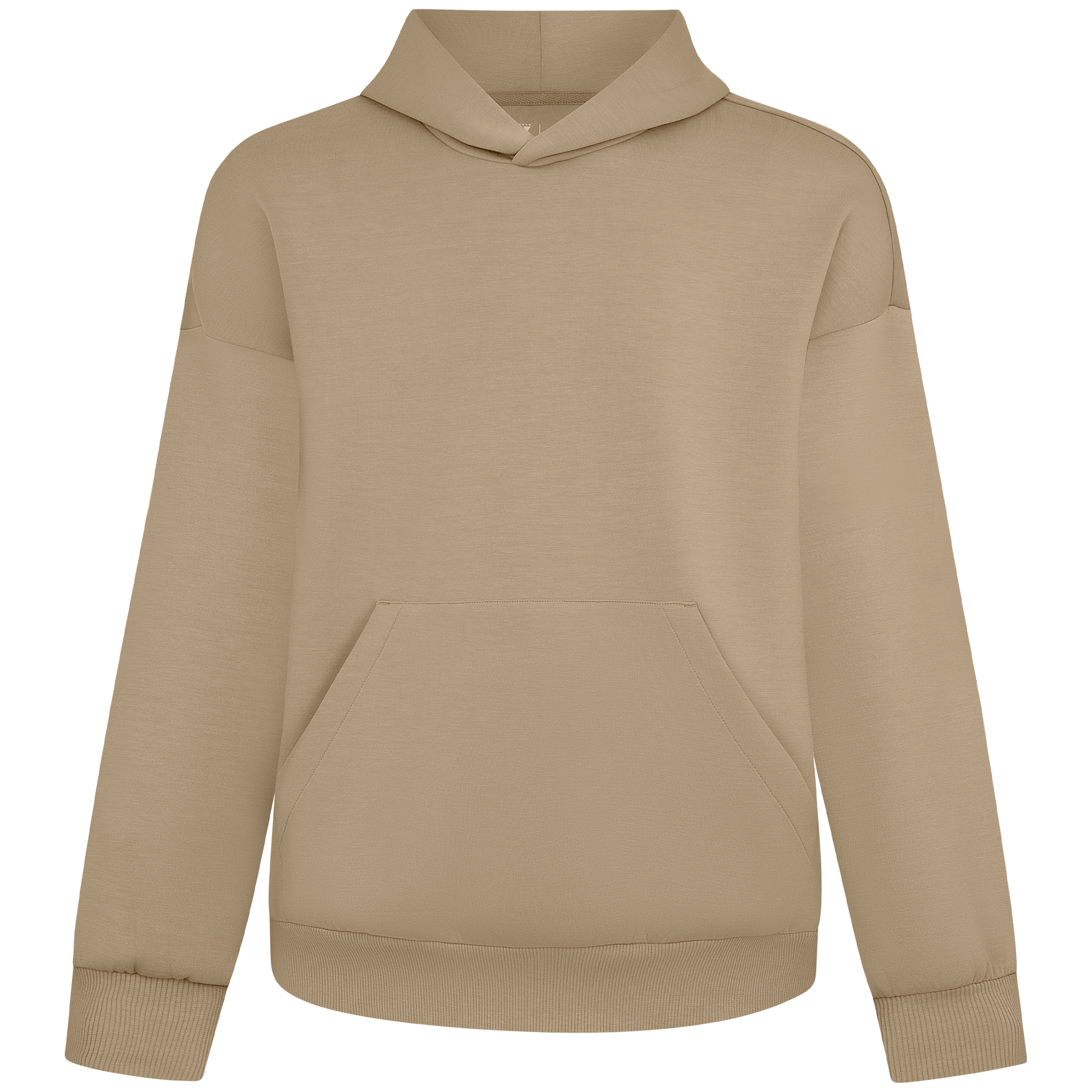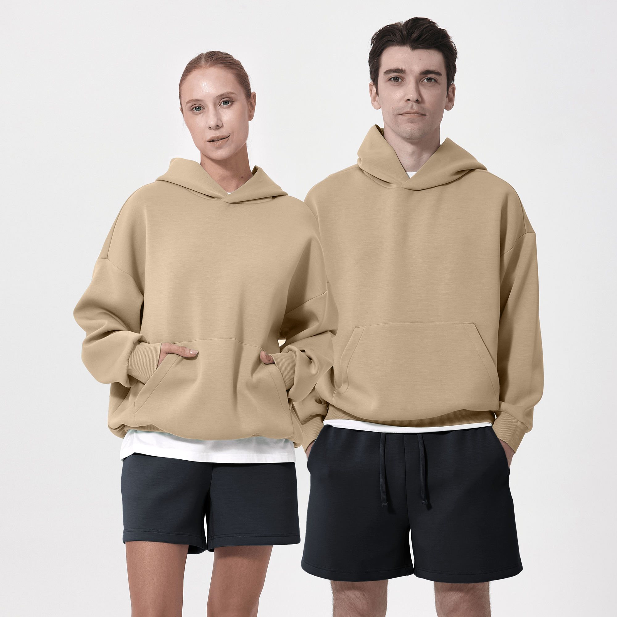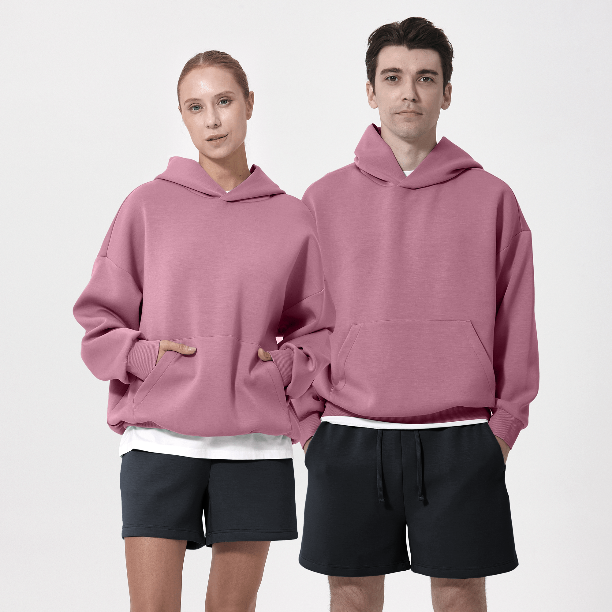 The Luxe Signature Hoodie redefines casual comfort with its unisex sizing and eco-friendly materials, making it a perfect choice for anyone looking to elevate their casual wear. Constructed from a sustainable blend of 50% recycled polyester, 43% viscose, and 7% spandex, this hoodie is designed for durability and comfort with a touch of stretch. It features an oversized drop shoulder silhouette that provides a relaxed, contemporary fit suitable for diverse body types. The classic kangaroo pocket adds practicality and warmth, while the ribbed body band and sleeve cuffs ensure a snug fit that retains its shape. Ideal for layering or wearing on its own, the Luxe Signature Hoodie combines effortless style with conscious manufacturing, offering a versatile and cozy addition to your wardrobe.