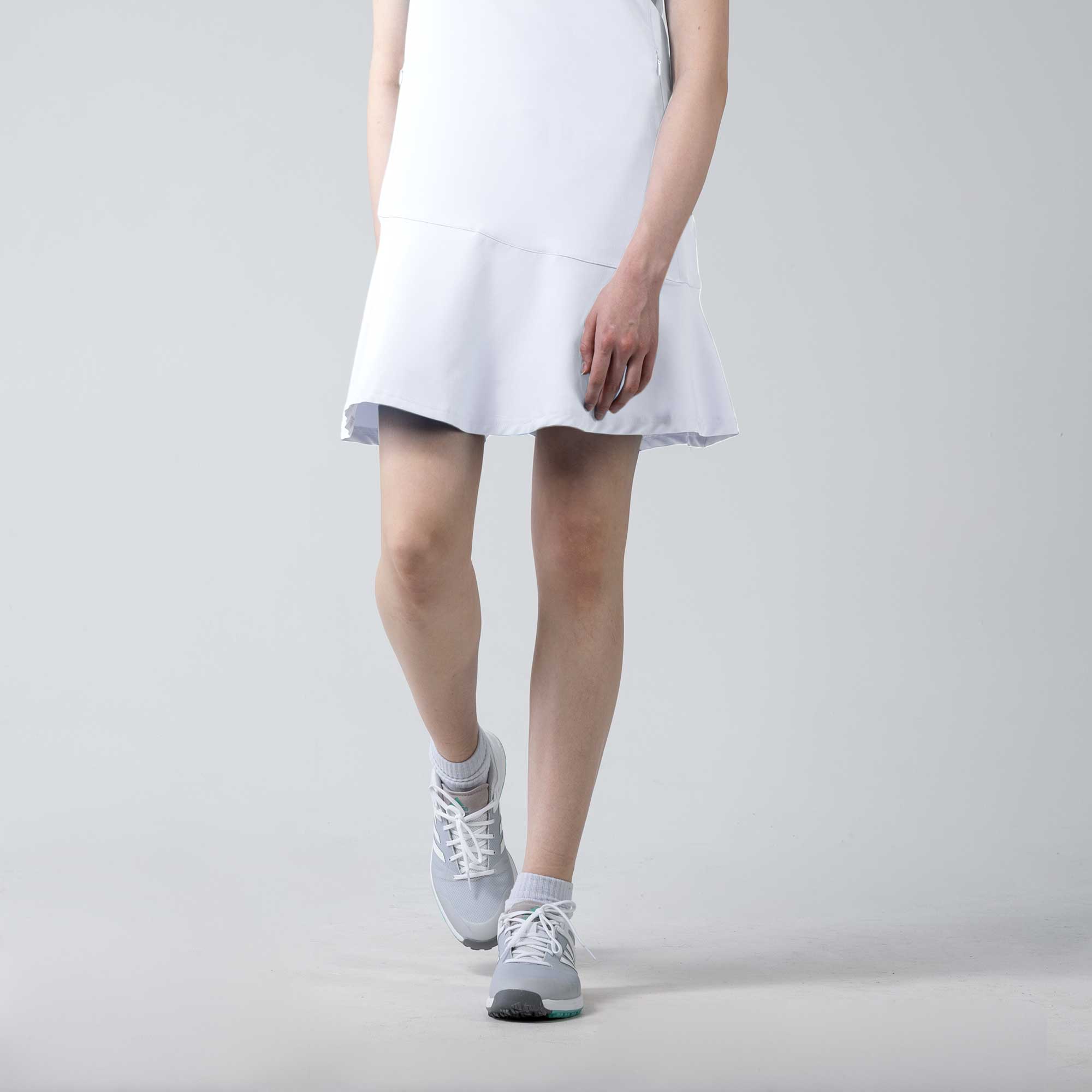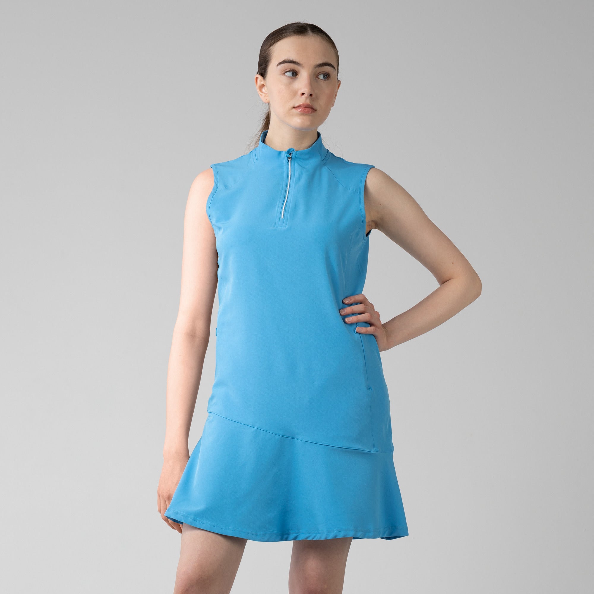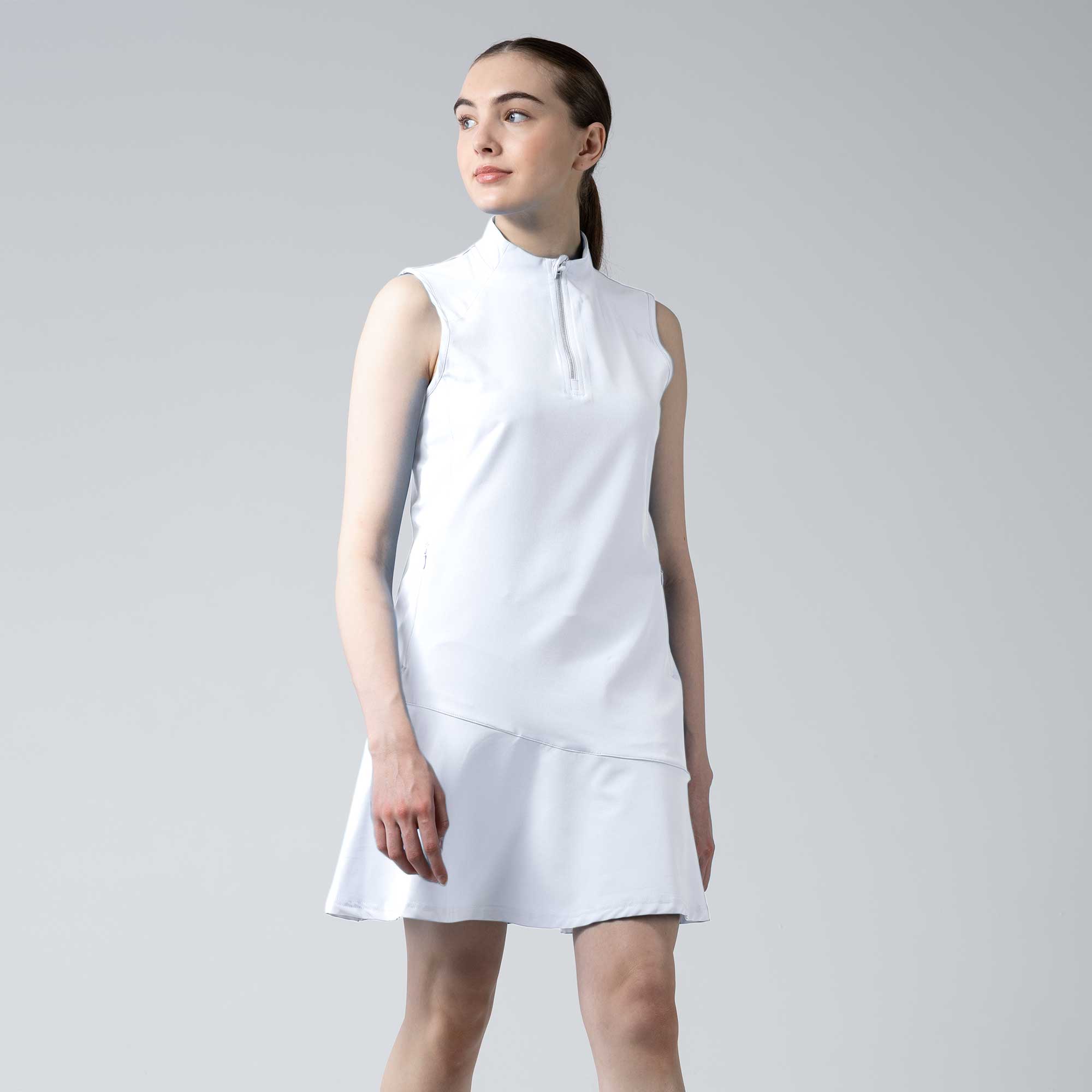 The Lyric Dress is designed to deliver both style and functionality on the golf course. Crafted from a blend of 92% polyester and 8% spandex, this dress features a stretch woven fabric that offers exceptional flexibility and comfort, allowing for unimpeded movement through each swing. This garment is tailored with an anti-static finish to keep you comfortable and distraction-free by reducing cling. It comes with separate shorts for added coverage and convenience, ensuring confidence with every step. The stand-up collar with a zippered placket adds a touch of sophistication, while the back invisible zipper provides a seamless look and easy access. Side invisible zipper pockets are perfect for securely storing essentials like scorecards and tees. Highlighted by an asymmetrical seam that leads to a flared bottom, this dress combines dynamic motion with elegant style, making it a perfect choice for any golfer looking to elevate their game and wardrobe.