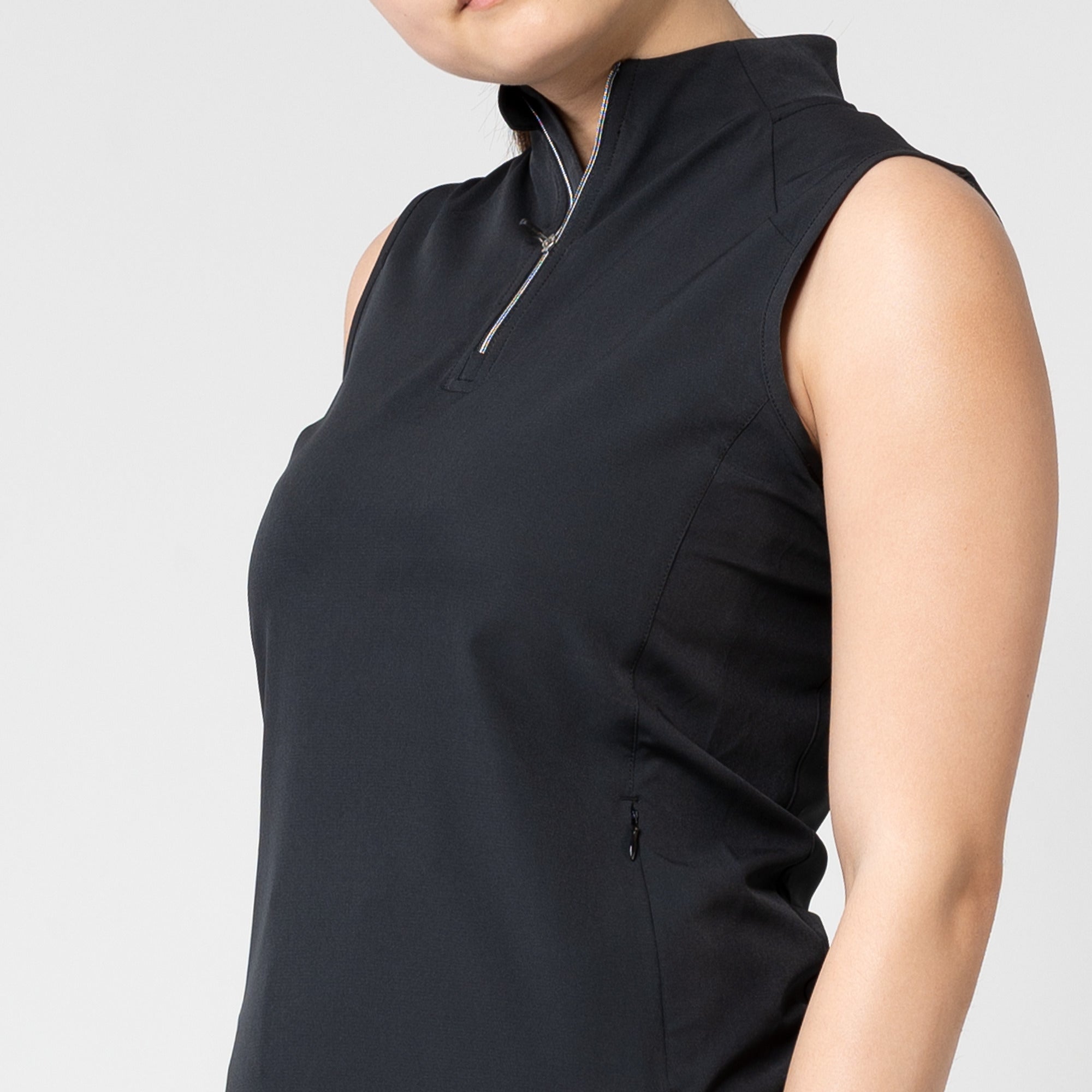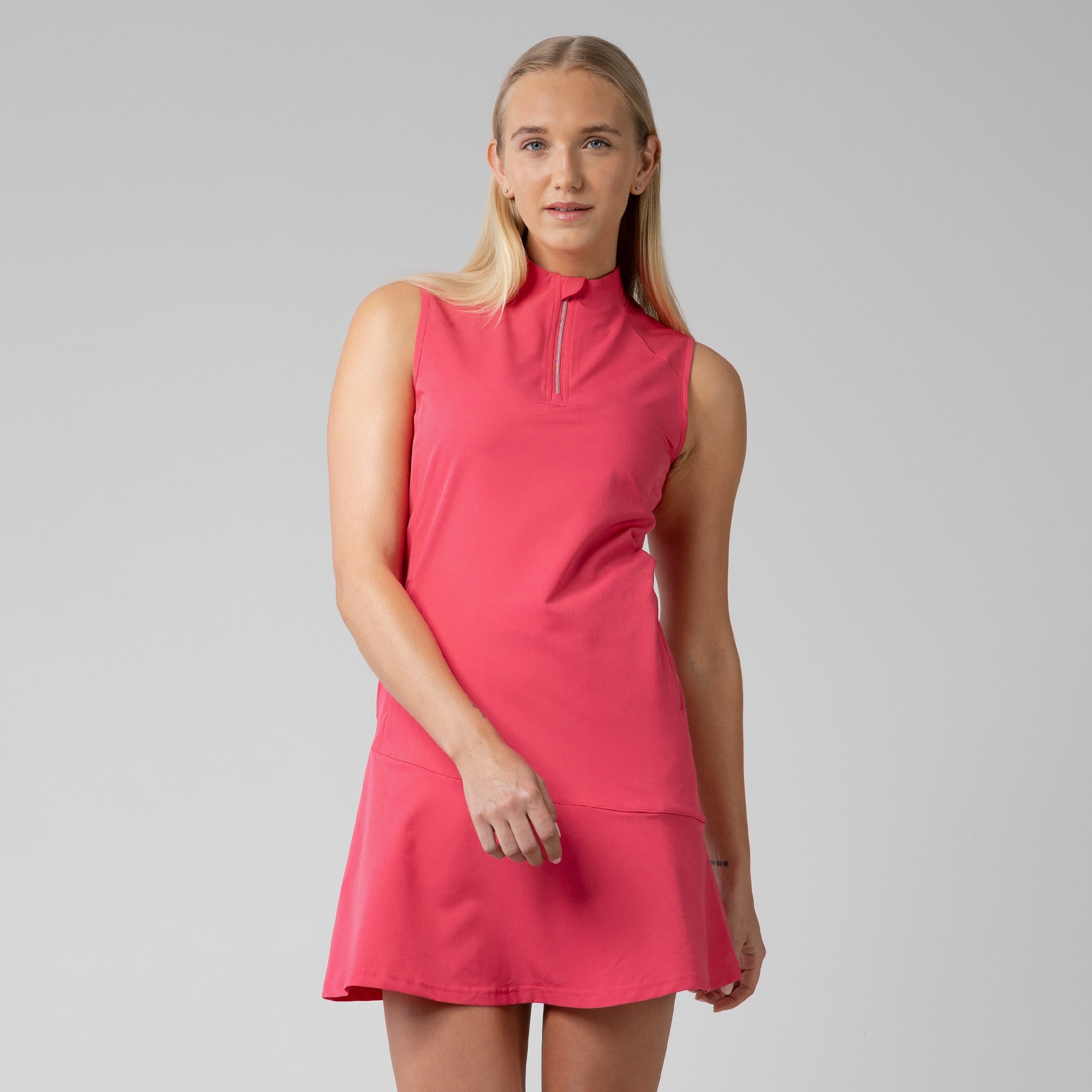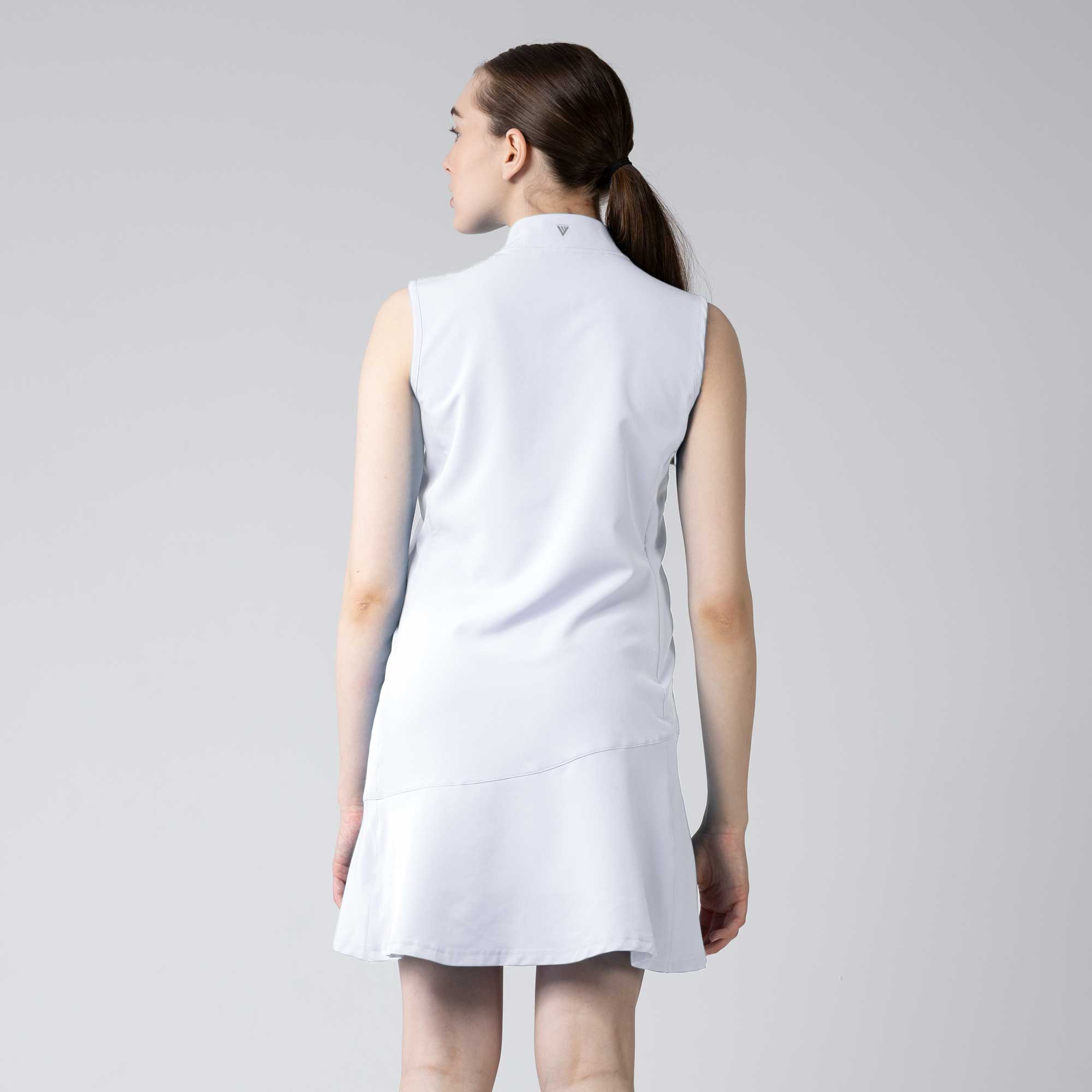 The Lyric Dress is designed to deliver both style and functionality on the golf course. Crafted from a blend of 92% polyester and 8% spandex, this dress features a stretch woven fabric that offers exceptional flexibility and comfort, allowing for unimpeded movement through each swing. This garment is tailored with an anti-static finish to keep you comfortable and distraction-free by reducing cling. It comes with separate shorts for added coverage and convenience, ensuring confidence with every step. The stand-up collar with a zippered placket adds a touch of sophistication, while the back invisible zipper provides a seamless look and easy access. Side invisible zipper pockets are perfect for securely storing essentials like scorecards and tees. Highlighted by an asymmetrical seam that leads to a flared bottom, this dress combines dynamic motion with elegant style, making it a perfect choice for any golfer looking to elevate their game and wardrobe.
