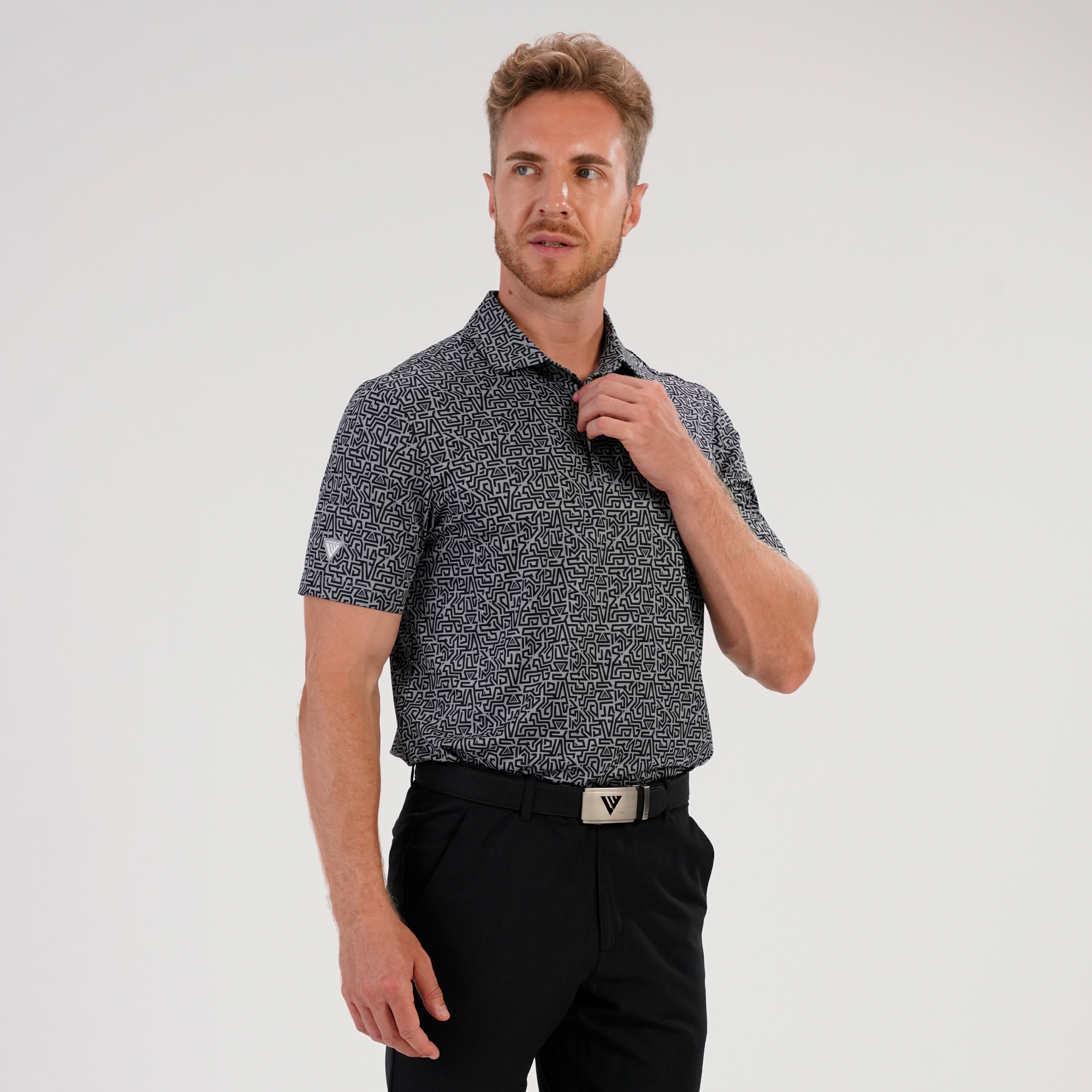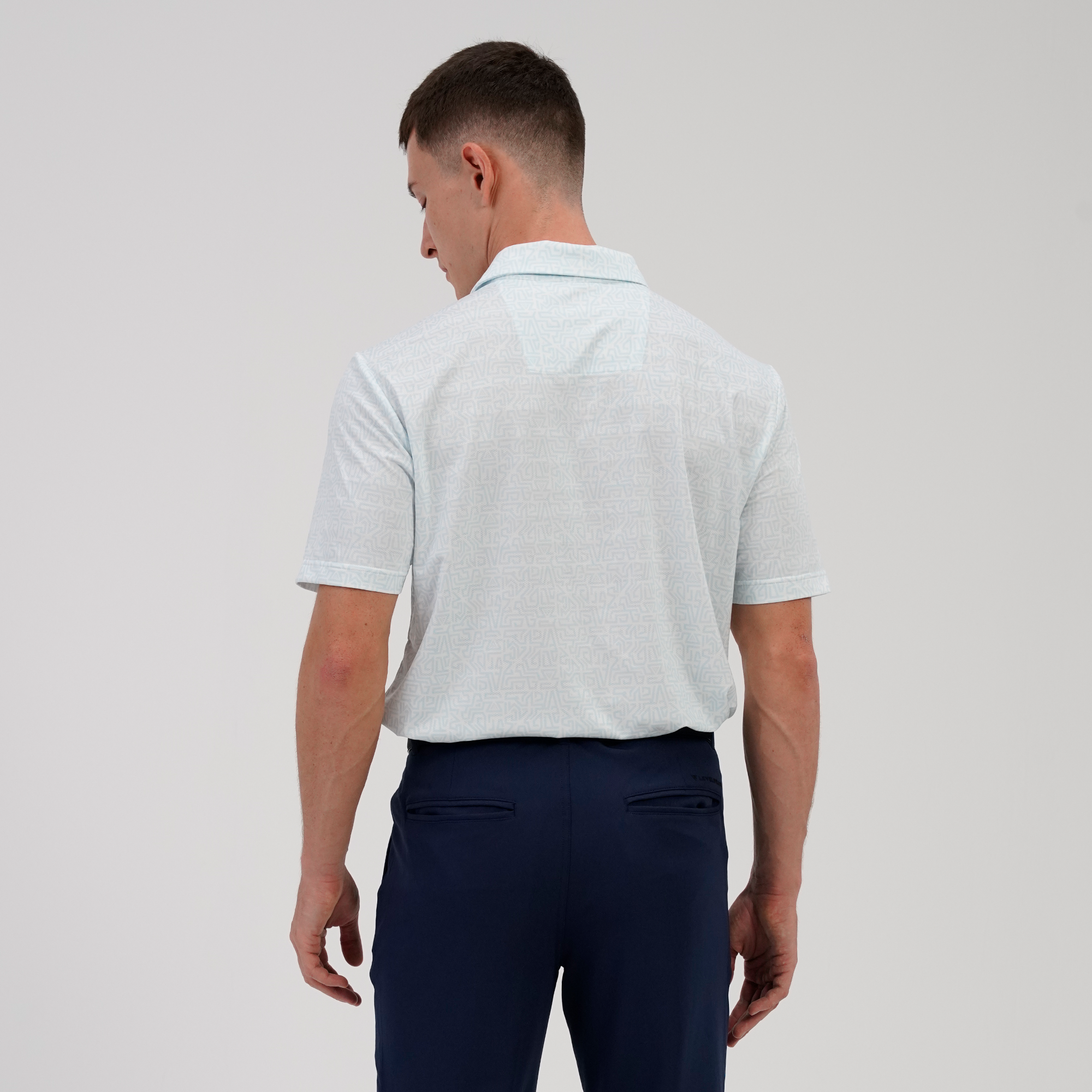 The Maze polo features moisture-wicking jacquard fabric and an all-over print for a fresh look on and off the course. Forward shoulder seams and a high-low hem with side slits offer ease of movement. Made with 86% Polyester and 14% Spandex.