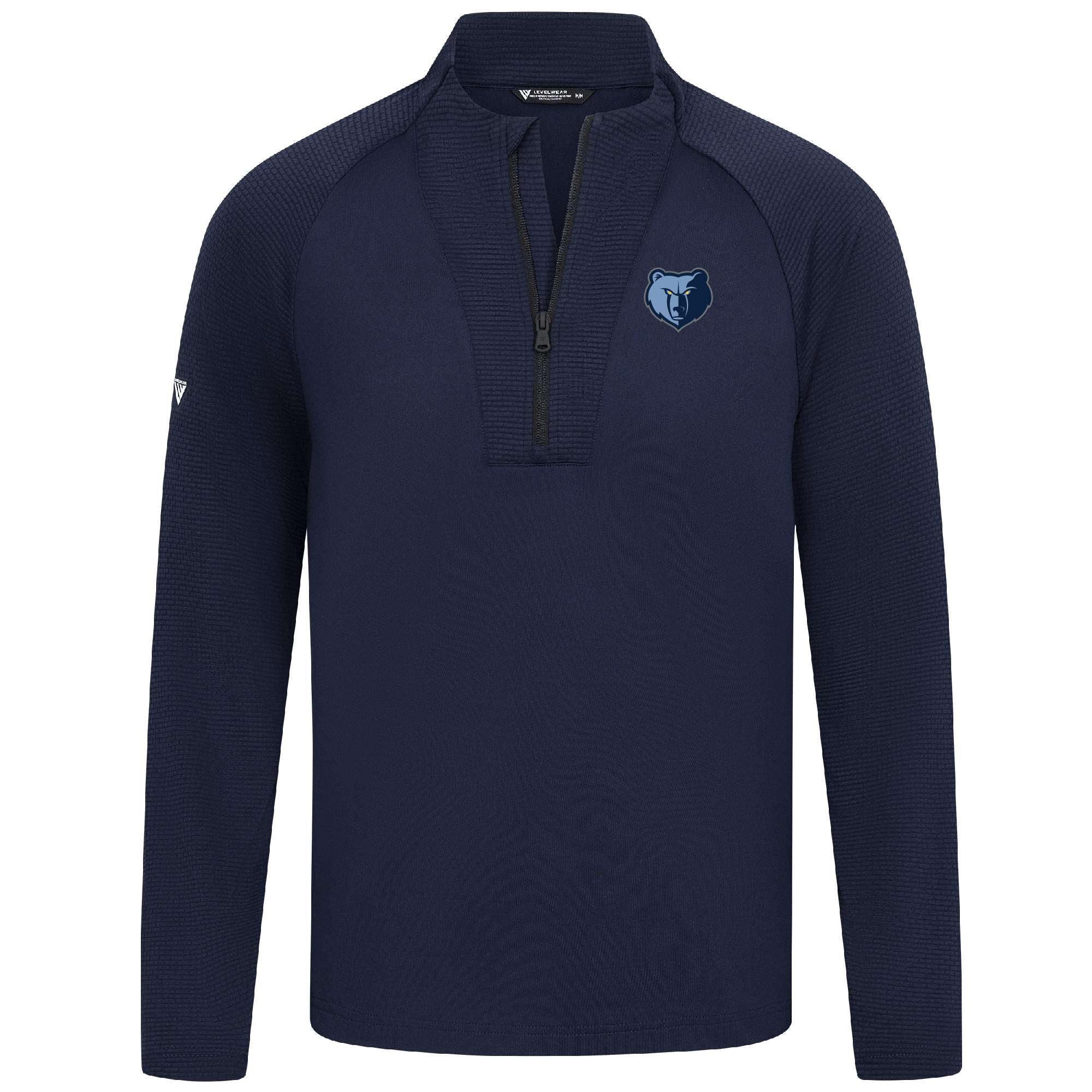 - Quarter-zip with stand-up collar