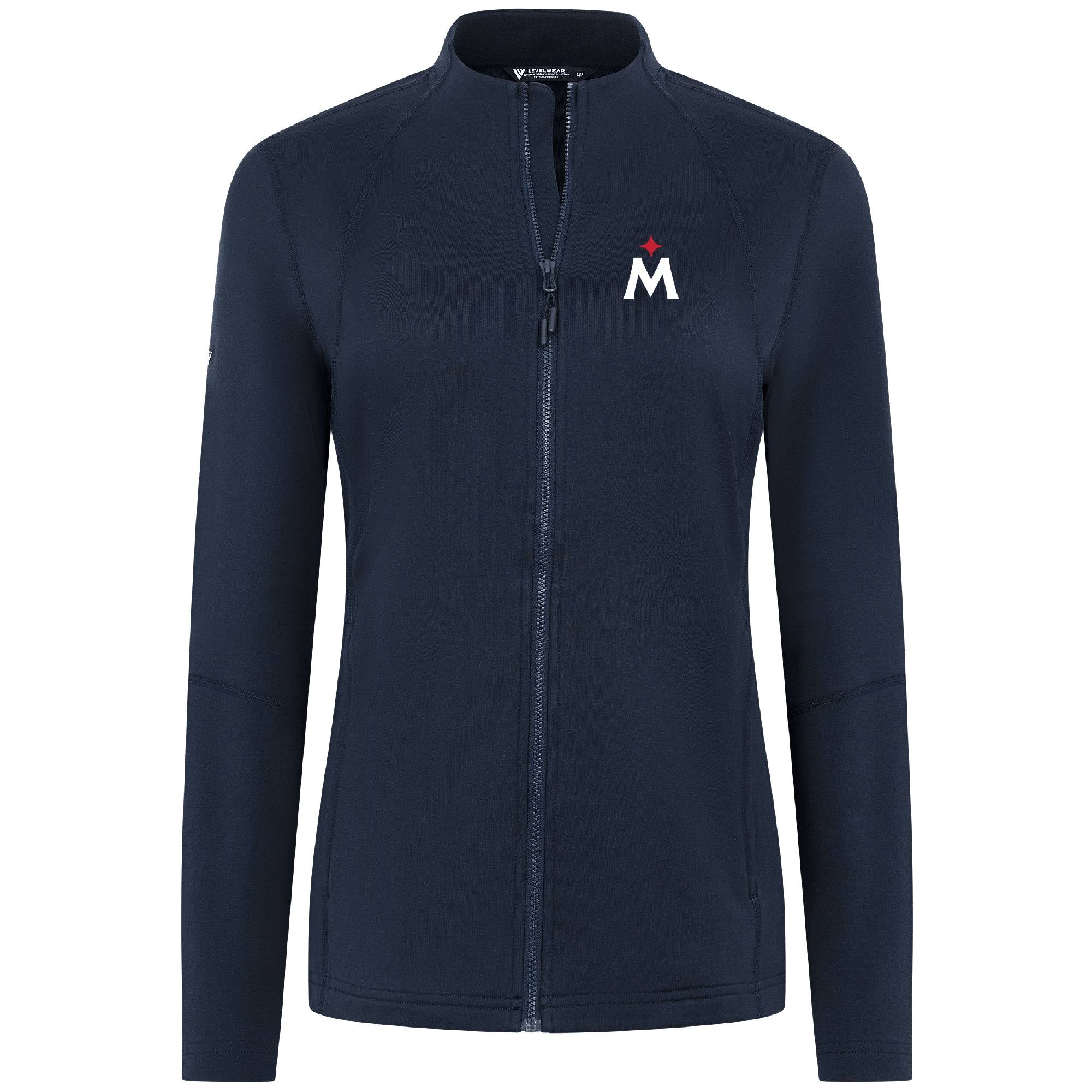 The women's Mesa midlayer is an excellent addition to any golfer's wardrobe, made to enhance performance on the course with thoughtful design and advanced fabric technology. This midlayer is made from 91% recycled polyester and 9% spandex, which not only offers a sustainable choice but also provides ample stretch for unrestricted movement. Featuring moisture-wicking properties, it efficiently manages sweat to keep you dry and comfortable throughout your game. The anti-static and anti-pilling treatments ensure the garment remains smooth and neat, even after multiple wears. Designed with a full front zip and stand-up collar for adjustable coverage, the Mesa also includes stylized wrap over side panels for a distinctive look. Zippered front pockets with mesh pocket bags add practical storage for small essentials, making this midlayer both functional and stylish for any golf enthusiast.