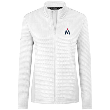 The women's Tailgate layering piece is made from a blend of 96% polyester and 4% spandex, it features textured self-fabric for a refined look and feel. The full front zip with a stand-up collar offers adjustable coverage, while forward shoulder seams enhance mobility. Contrast solid side panels add a modern touch, complementing the high-low hem detail for added comfort and coverage. Crafted from recycled materials, this jacket is both sustainable and practical, making it perfect for active or casual wear.