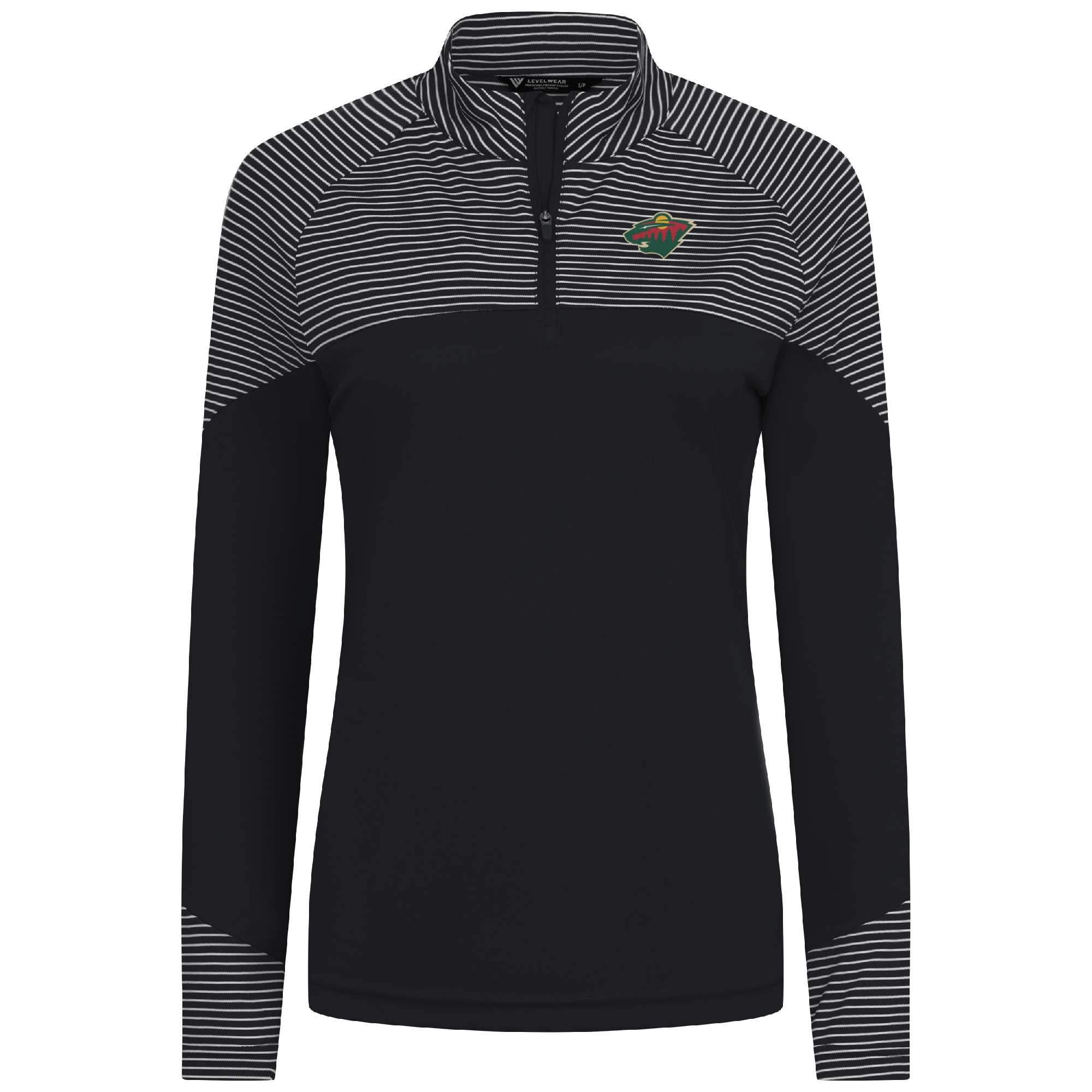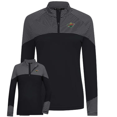 Perfect your swing and your style with the women's Classic Stripes midlayer, an ideal companion for any golf enthusiast. This midlayer is made entirely from 100% polyester, ensuring durability and breathability. It's designed with moisture-wicking properties to keep you dry and an anti-static finish for uninterrupted comfort on the golf course. The sleek quarter-zip with stand-up collar allows for versatile wear options, adjusting easily to changing temperatures. The striking contrast between the upper body and cuffs, accented with a stripe pattern, offers a modern twist to a classic look. Additionally, the high-low hem with side slits enhances your freedom of movement, and the raglan sleeves support dynamic motion, making this midlayer a must-have for both functionality and fashion on the greens or any active lifestyle.