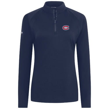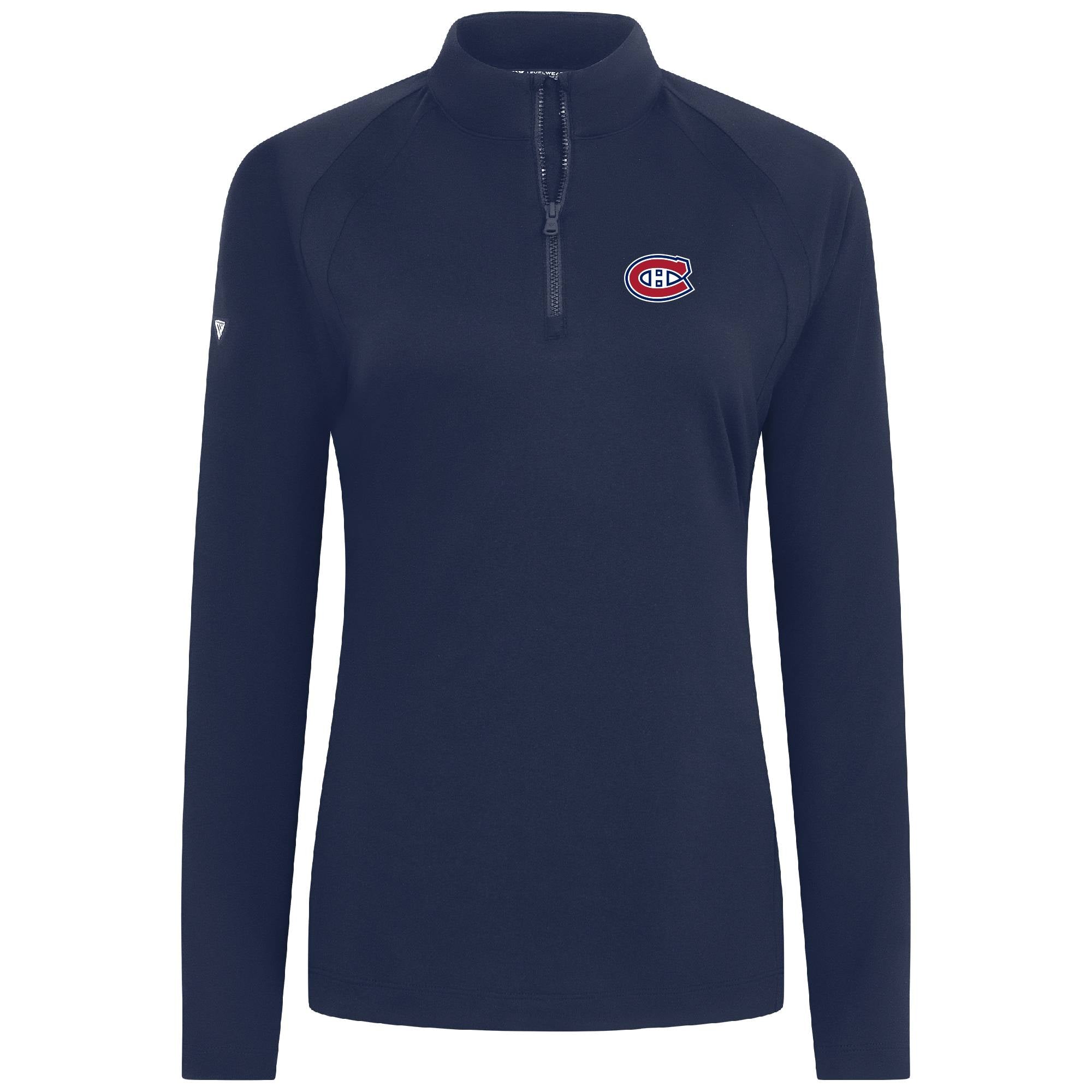 The women's Flex midlayer combines technical functionality with contemporary design, ideal for the active woman on the go. This midlayer is engineered with moisture-wicking technology to keep you dry and comfortable during vigorous activities, whether you're hitting the gym or exploring the outdoors. It features a quarter-zip closure with a contrast stand-up collar that allows for easy temperature regulation and adds a modern touch. The stylized front yoke and back yoke enhance the garment's structure, while mesh venting under the back yoke ensures optimal breathability and cooling. Finished with a high-low hem detail, this piece provides additional coverage and a flattering silhouette.