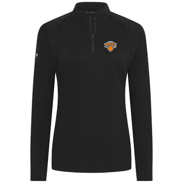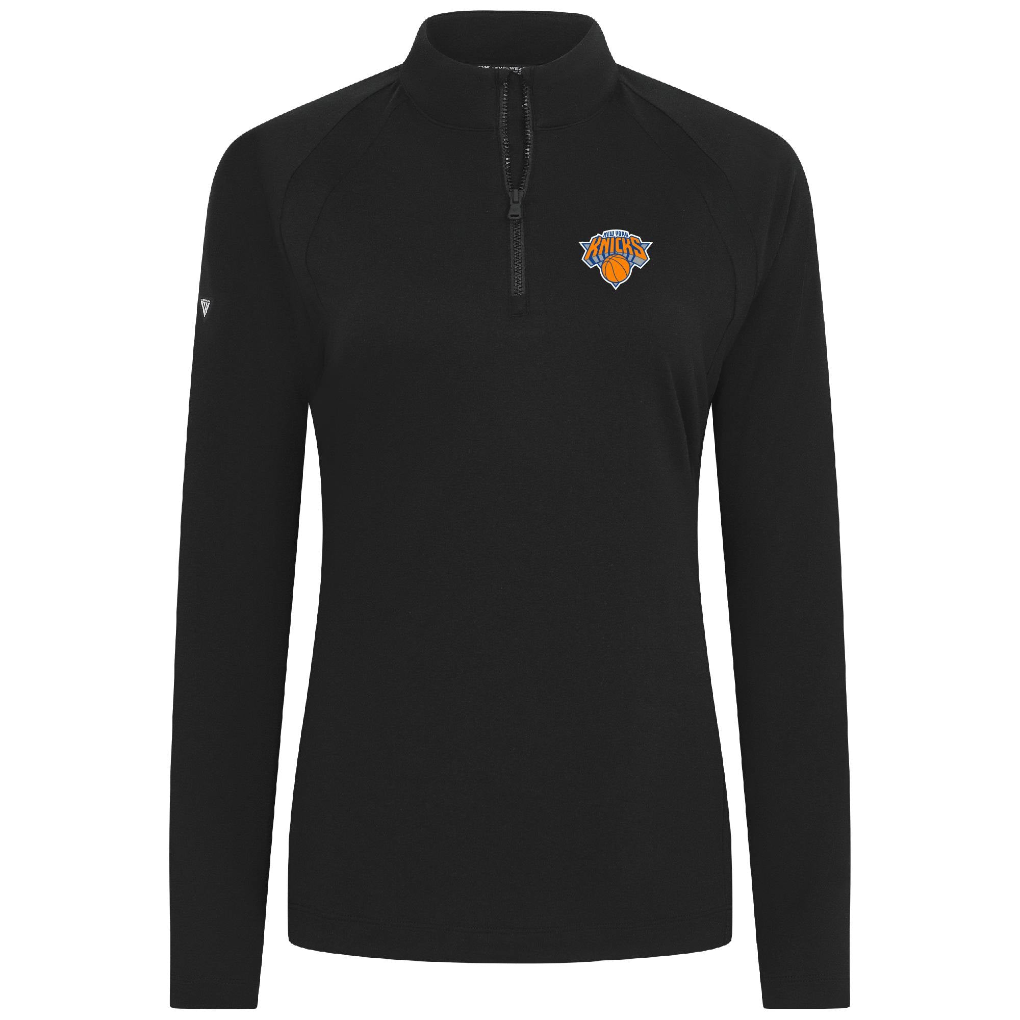 - Quarter-zip with contrast stand-up collar