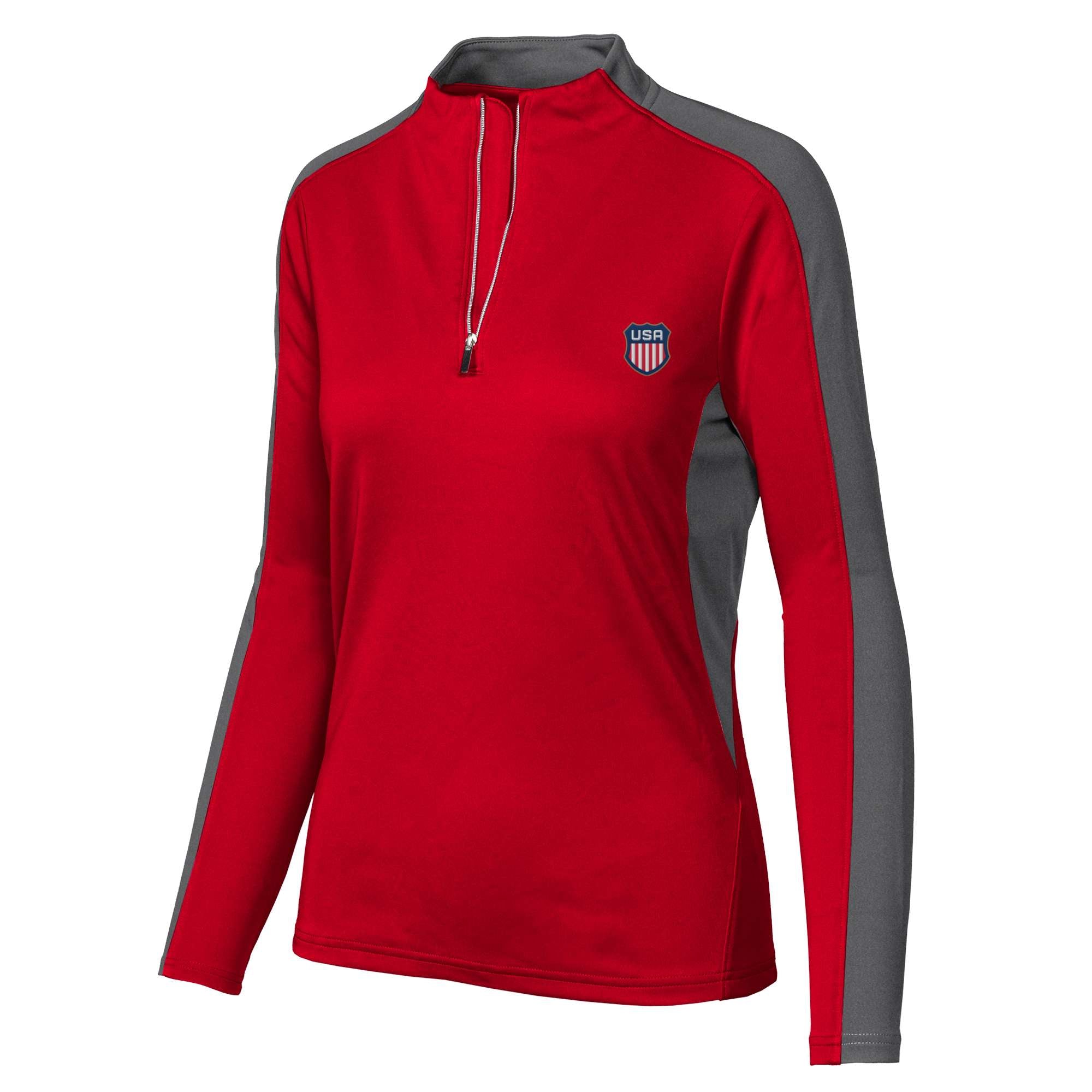 Enhance your golf and active lifestyle wardrobe with the Remi Pullover, designed for practicality and a fashionable look on the course and beyond. This 100% polyester pullover features moisture-wicking technology to ensure you stay dry and comfortable throughout your activities. The Remi boasts bold color blocking for a contemporary aesthetic and includes a metallic zipper for a sleek, refined touch. Its design incorporates forwarded side seams and elbow darts that improve the garment's fit, allowing for better movement and alignment with your body. Ideal for a day on the golf course or any outdoor activity, the Remi pullover is a stylish and functional choice for active wear.