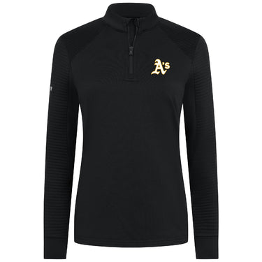 The women's Power midlayer is specifically designed to enhance your golf experience, ensuring you stay focused and unhindered throughout your game. This top is equipped with advanced moisture-wicking technology to efficiently remove sweat, keeping you dry as you play. Additionally, it features anti-static and anti-pilling properties to maintain its polished look over time. The quarter-zip with a stand-up collar allows for easy ventilation adjustment, while the contrast textured stripes on the shoulder panels and upper sleeve panels add a dynamic visual element. The high-low hem detail provides extra coverage in the back, perfect for maintaining discretion during your swings. Ideal for cooler days on the course, this midlayer merges subtle style upgrades with high-performance features to keep you at the top of your game.