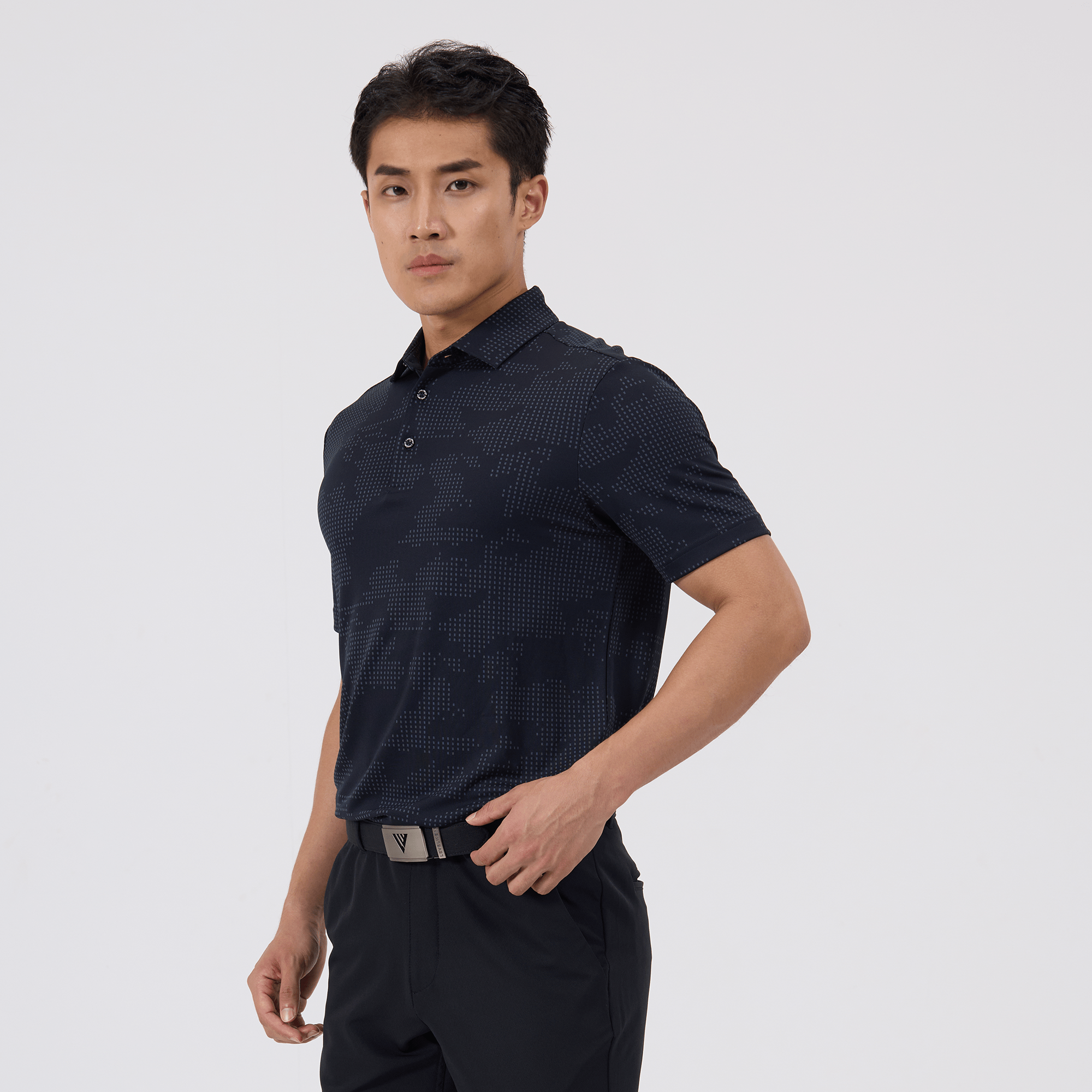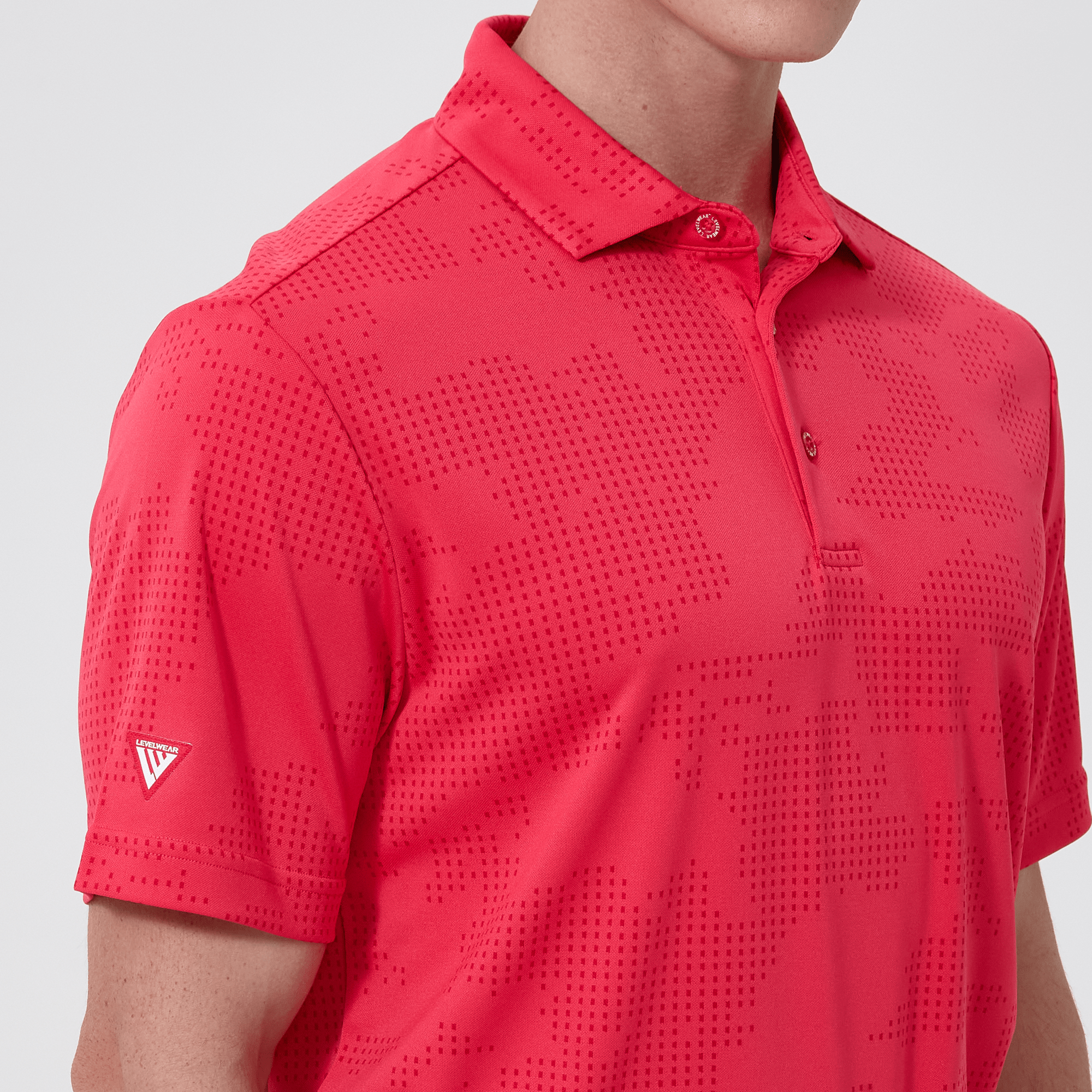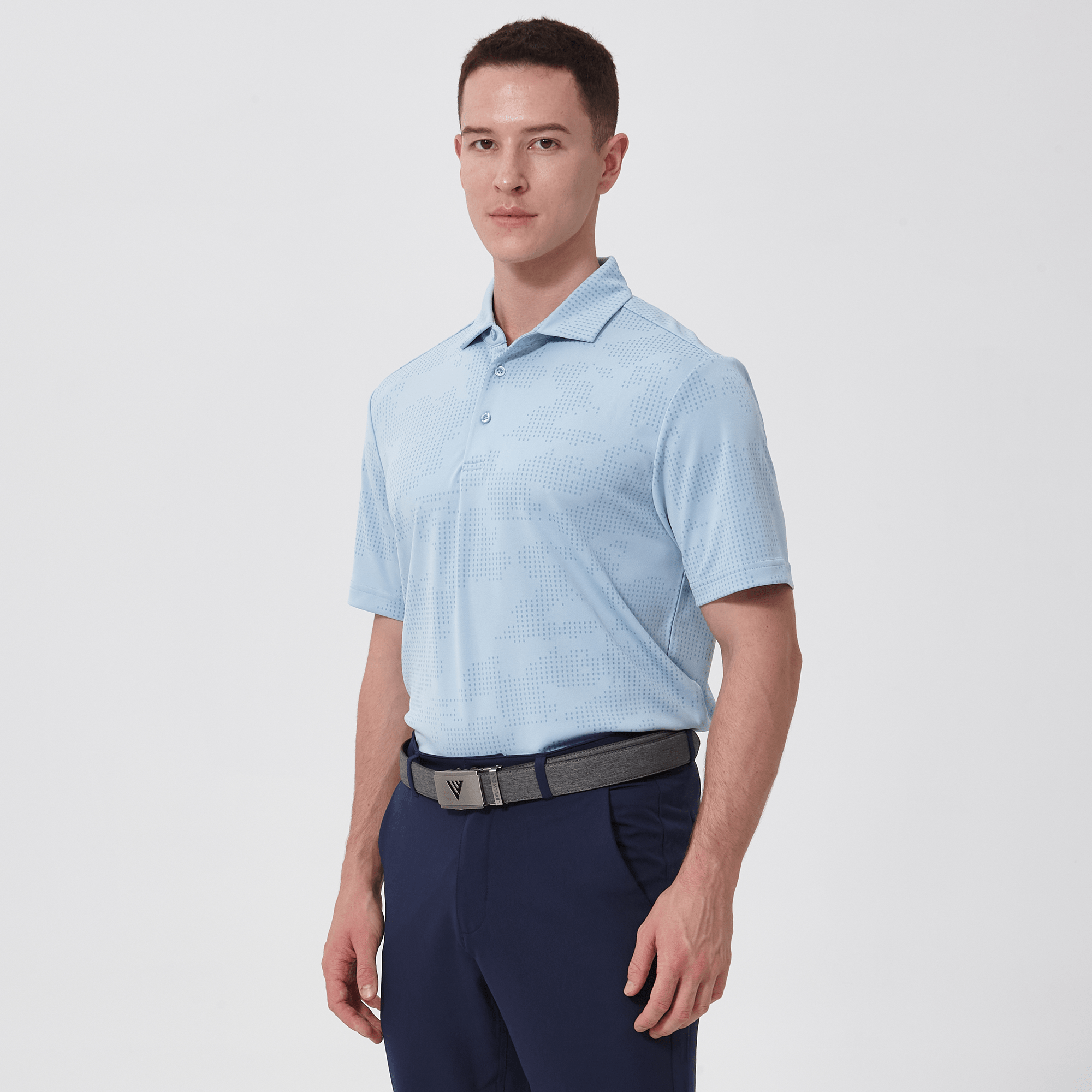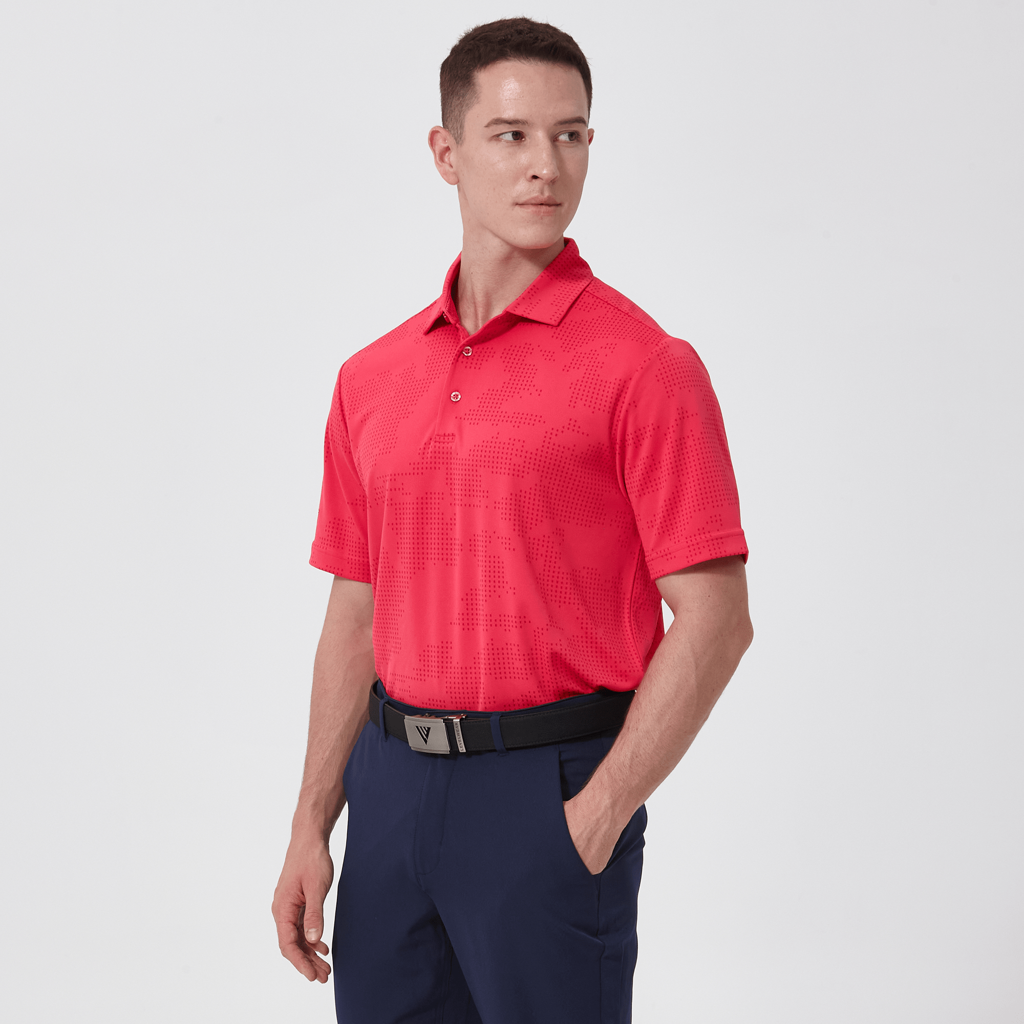 Step up your game with the men's Onyx polo, blending classic style with modern technology designed for the golf enthusiast. This polo, made from 100% polyester, is engineered to keep you cool and dry with advanced moisture-wicking properties that efficiently manage sweat during intense rounds. The self-fabric collar features a built-in collar stay to ensure a crisp, tailored look throughout the day. Its high-low hem detail with side slits enhances mobility and adds a contemporary edge to the traditional polo design. The digital jacquard all-over pattern infuses a touch of uniqueness, making the Onyx polo a subtle twist on a classic piece for any golfer looking to combine performance with sophisticated style on the course.