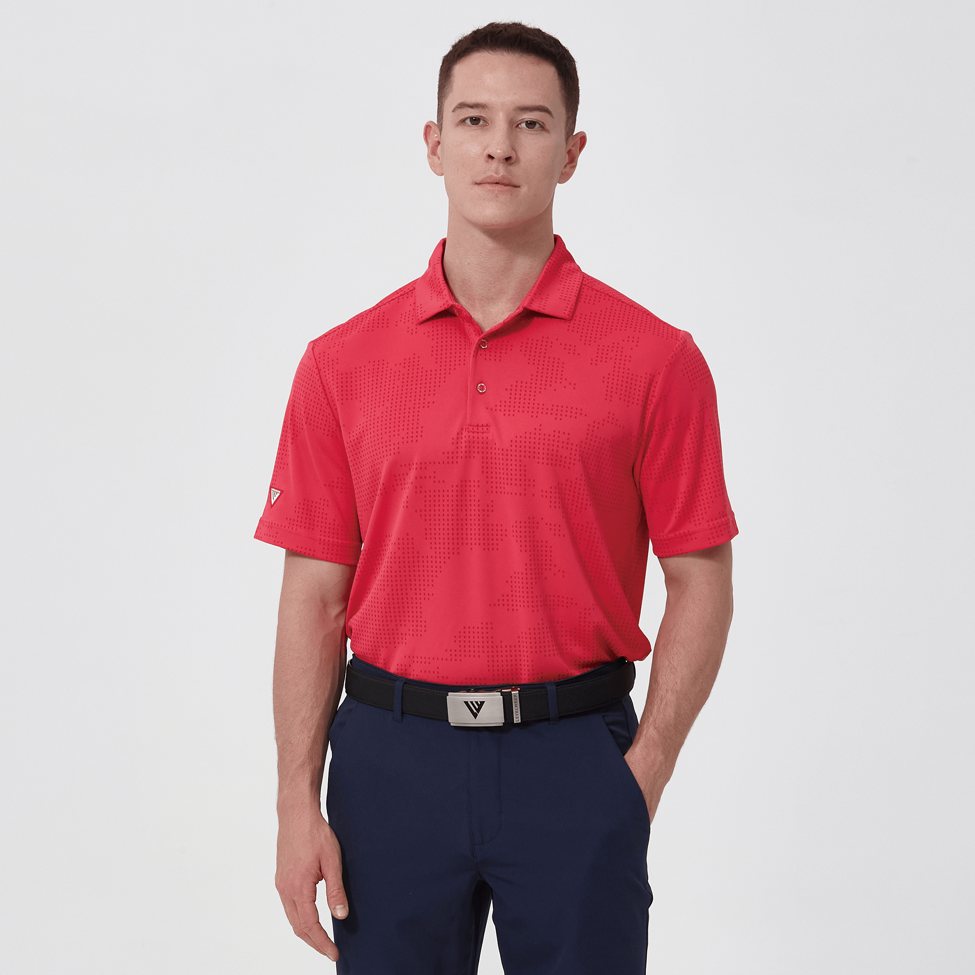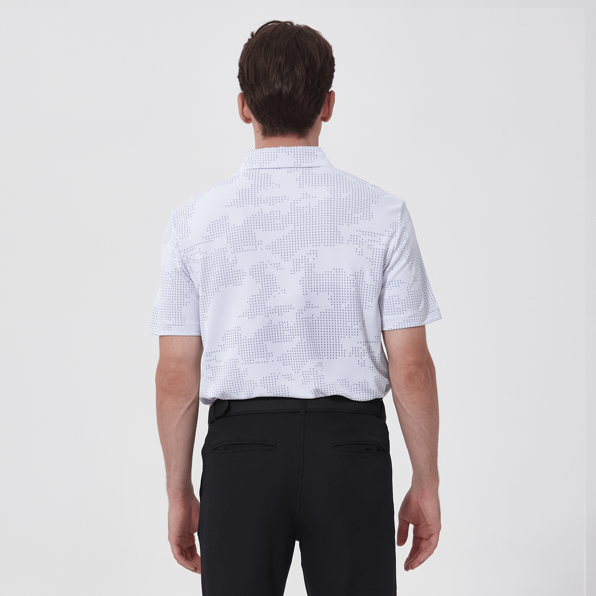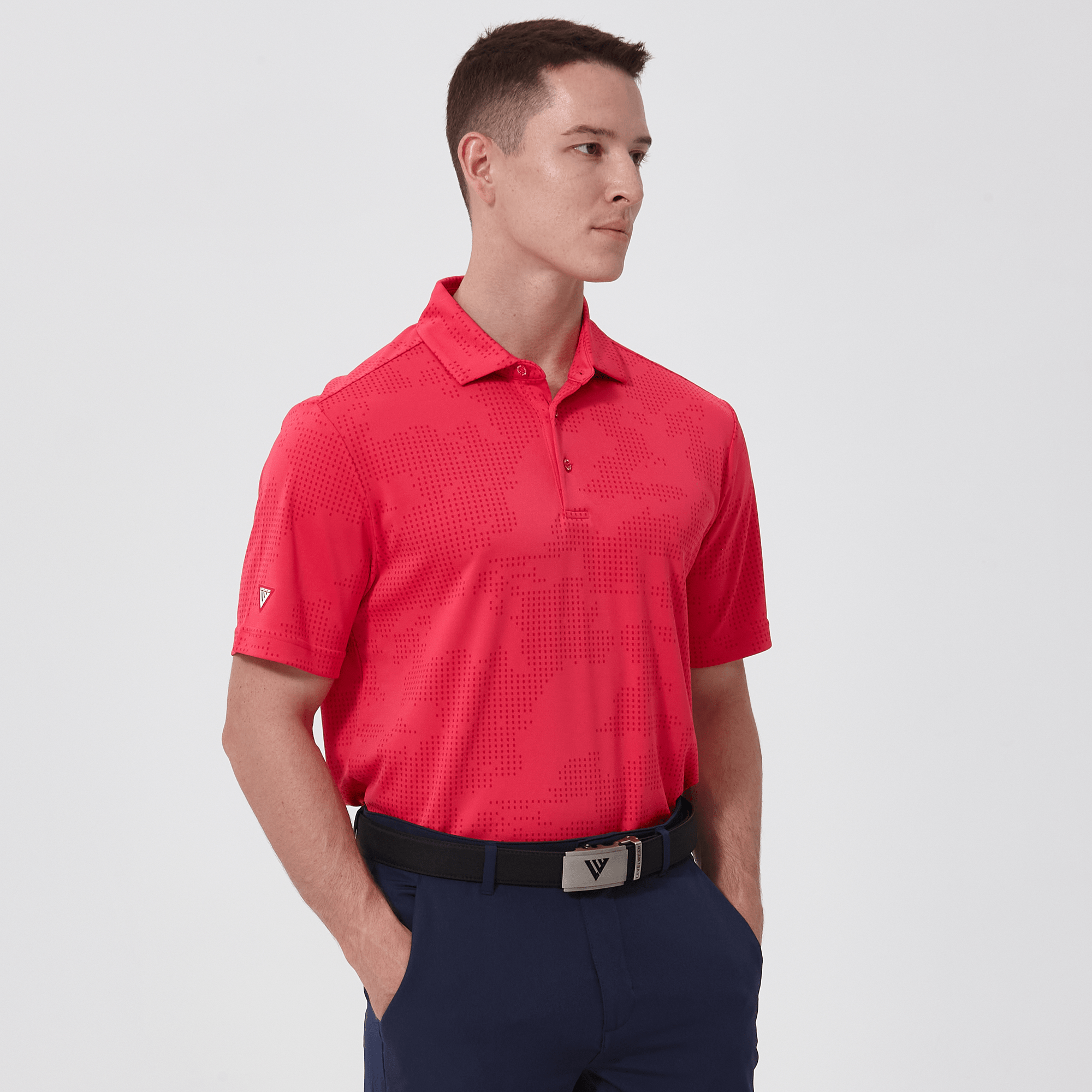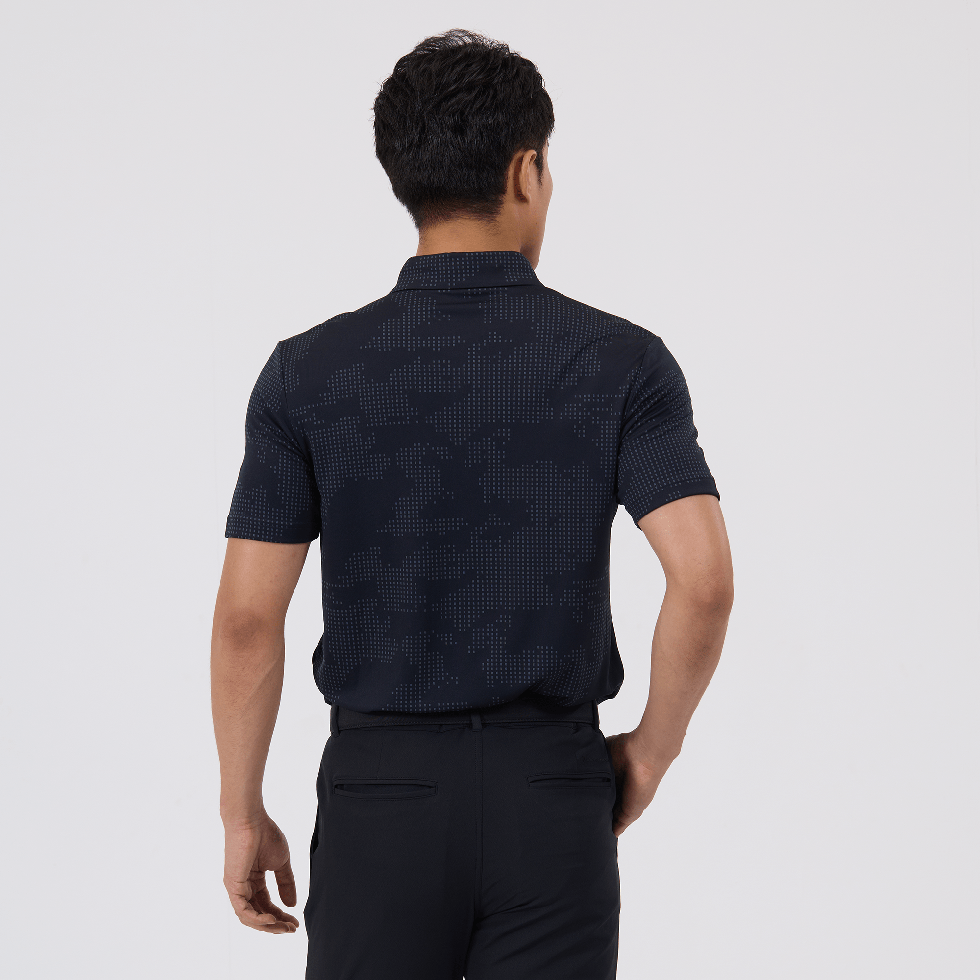 Step up your game with the men's Onyx polo, blending classic style with modern technology designed for the golf enthusiast. This polo, made from 100% polyester, is engineered to keep you cool and dry with advanced moisture-wicking properties that efficiently manage sweat during intense rounds. The self-fabric collar features a built-in collar stay to ensure a crisp, tailored look throughout the day. Its high-low hem detail with side slits enhances mobility and adds a contemporary edge to the traditional polo design. The digital jacquard all-over pattern infuses a touch of uniqueness, making the Onyx polo a subtle twist on a classic piece for any golfer looking to combine performance with sophisticated style on the course.