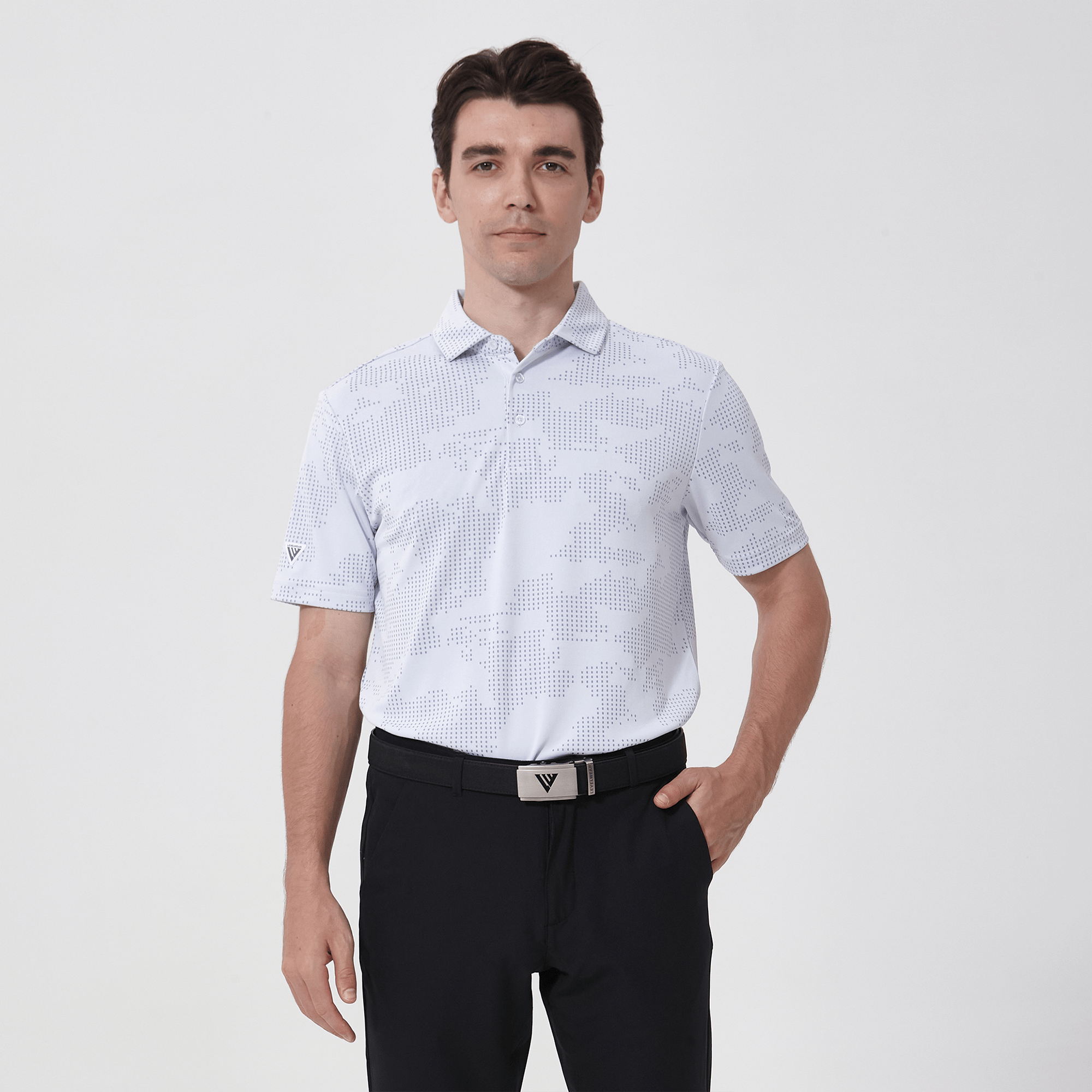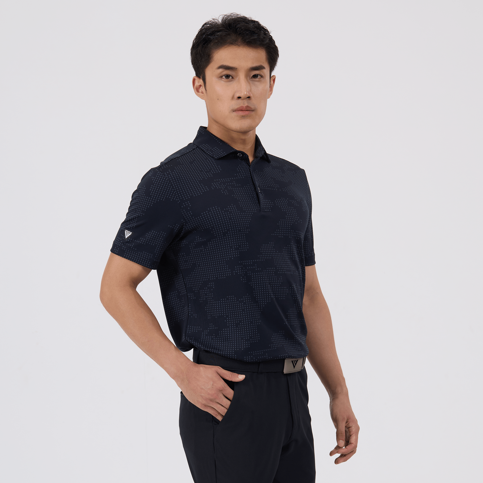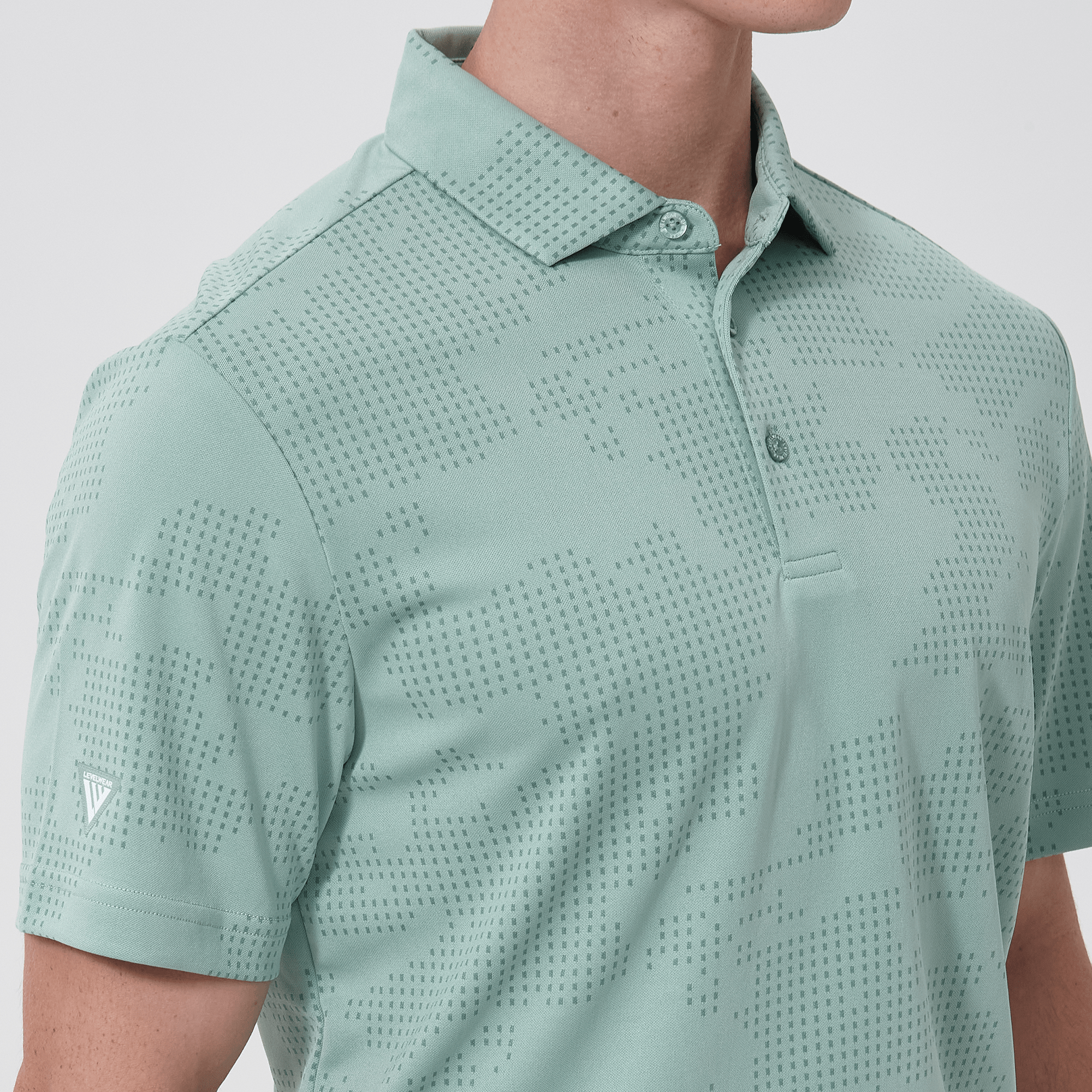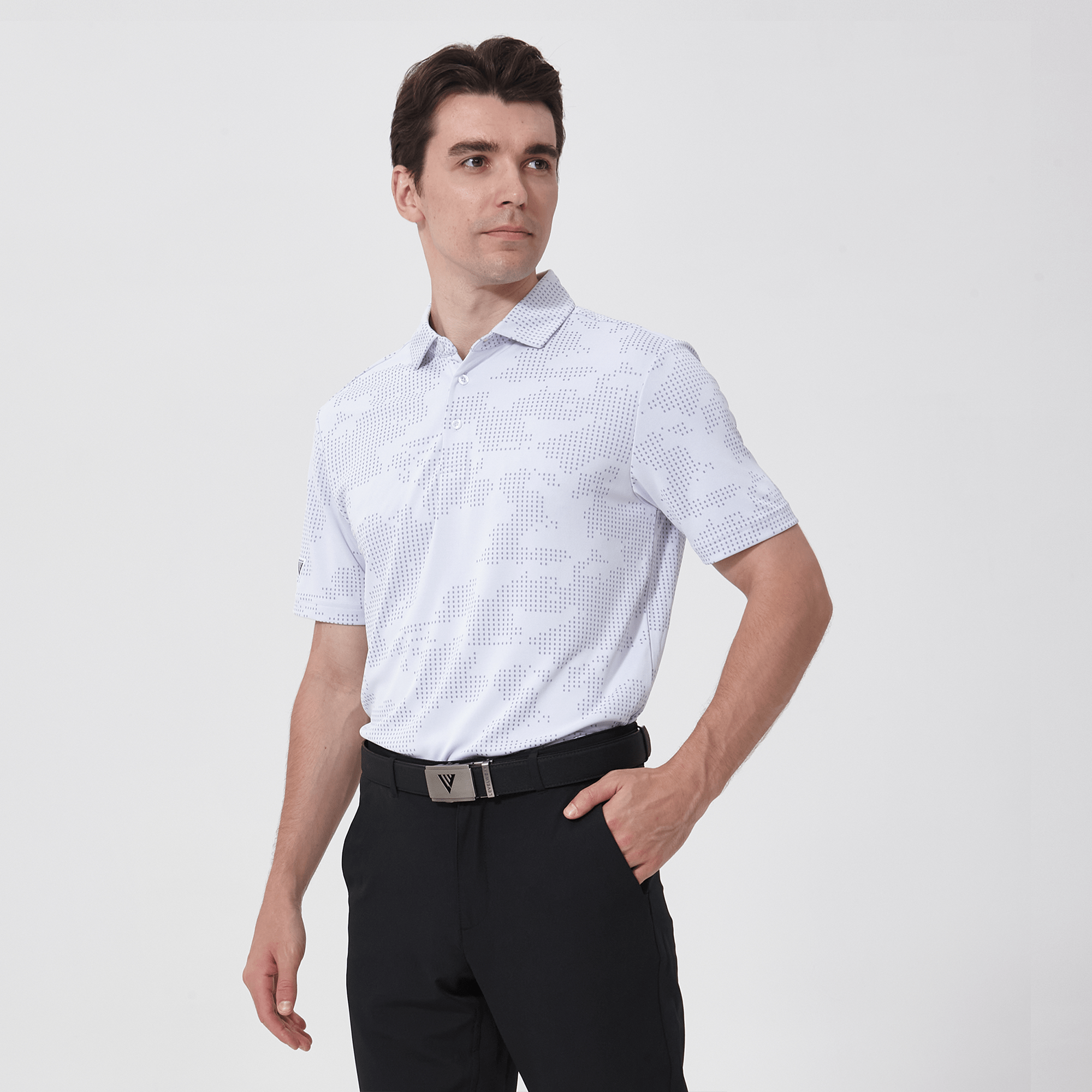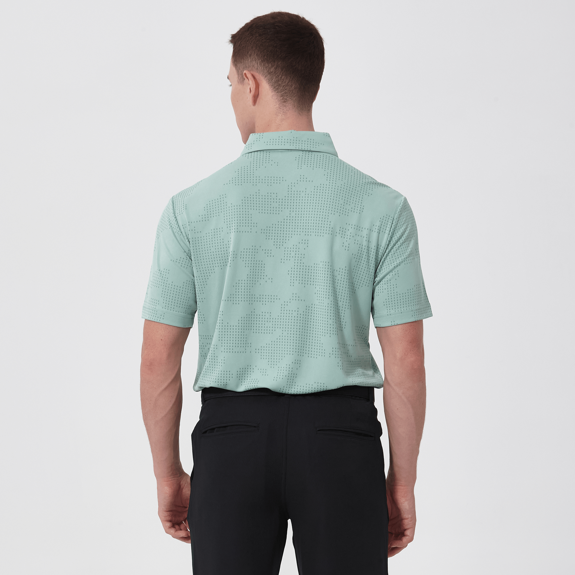 Step up your game with the men's Onyx polo, blending classic style with modern technology designed for the golf enthusiast. This polo, made from 100% polyester, is engineered to keep you cool and dry with advanced moisture-wicking properties that efficiently manage sweat during intense rounds. The self-fabric collar features a built-in collar stay to ensure a crisp, tailored look throughout the day. Its high-low hem detail with side slits enhances mobility and adds a contemporary edge to the traditional polo design. The digital jacquard all-over pattern infuses a touch of uniqueness, making the Onyx polo a subtle twist on a classic piece for any golfer looking to combine performance with sophisticated style on the course.