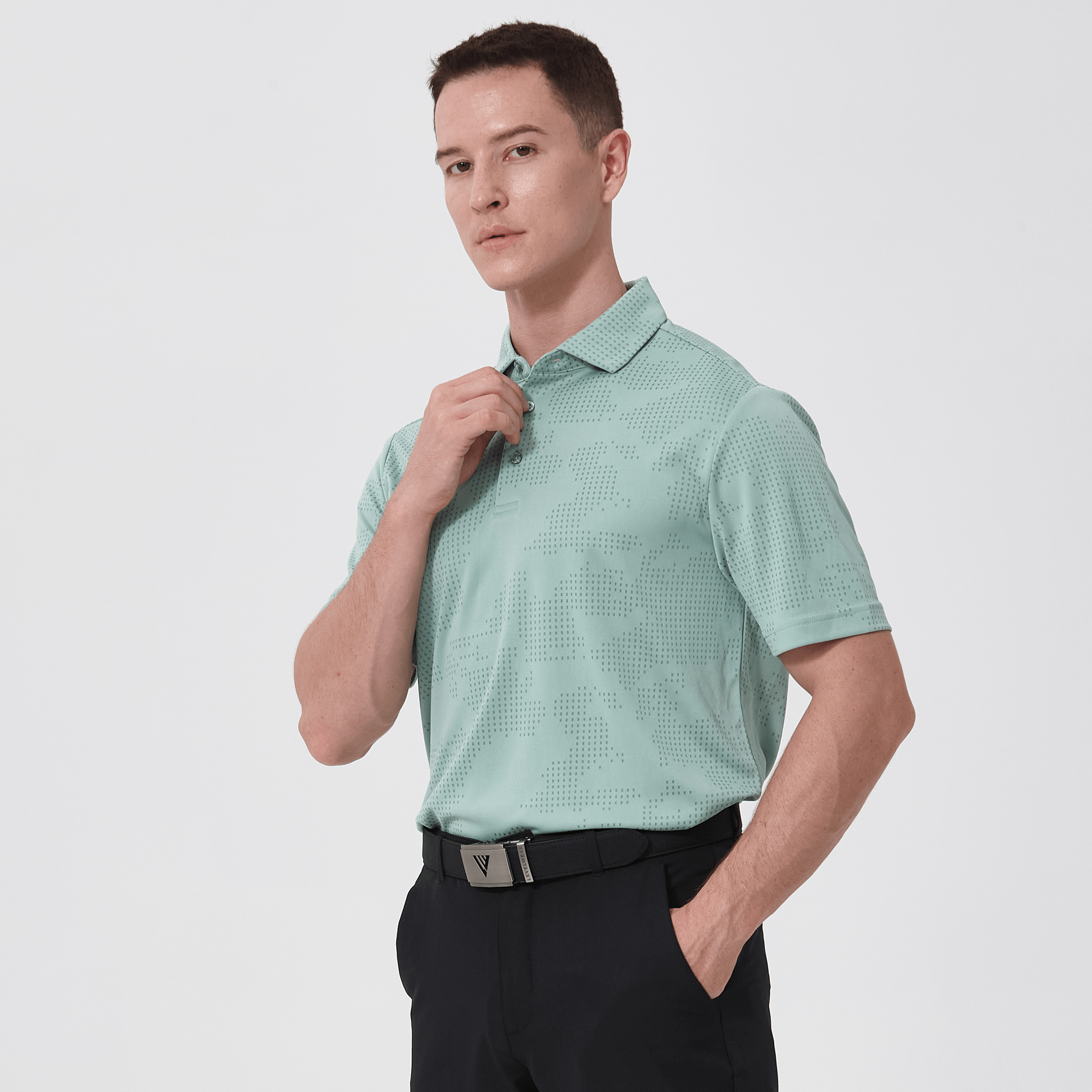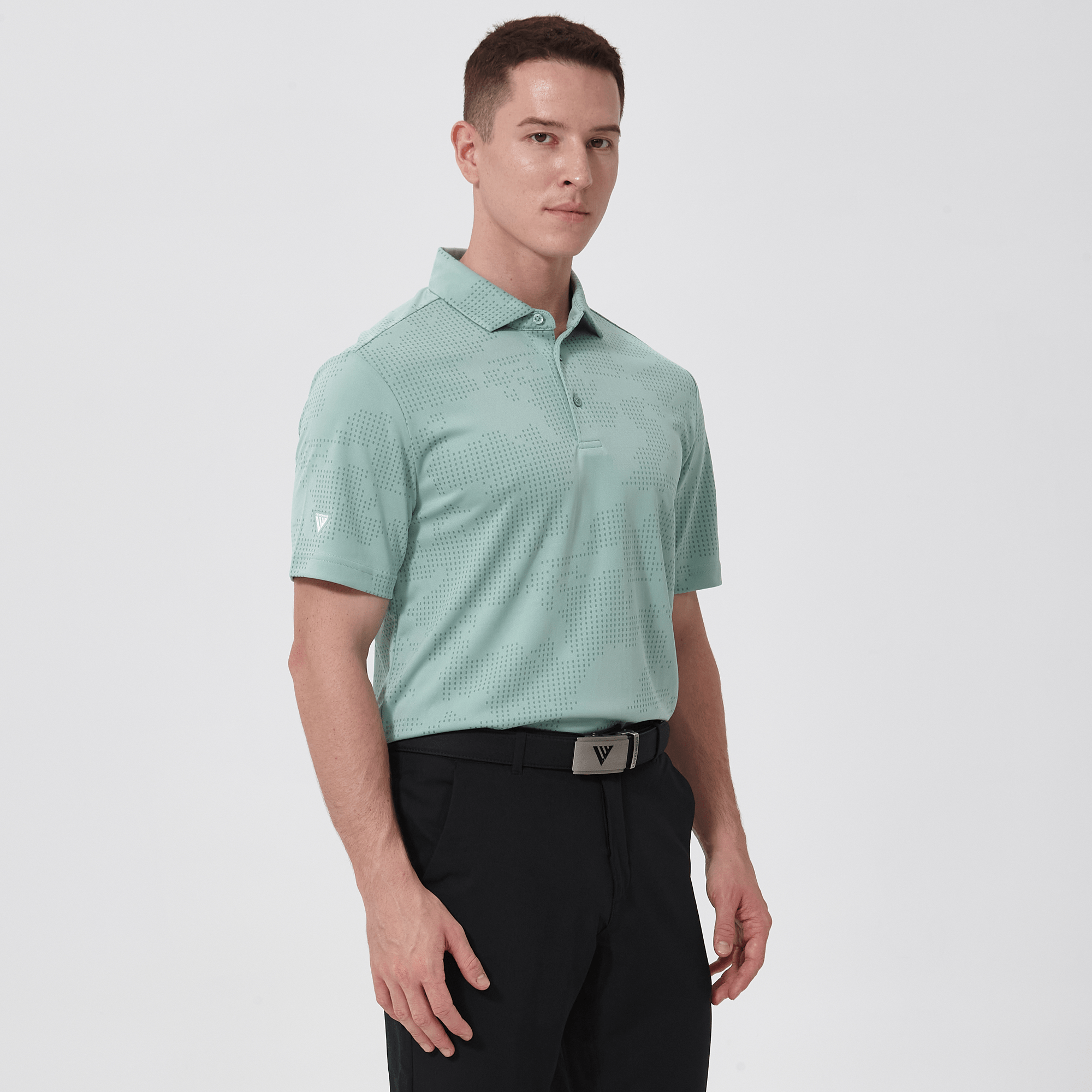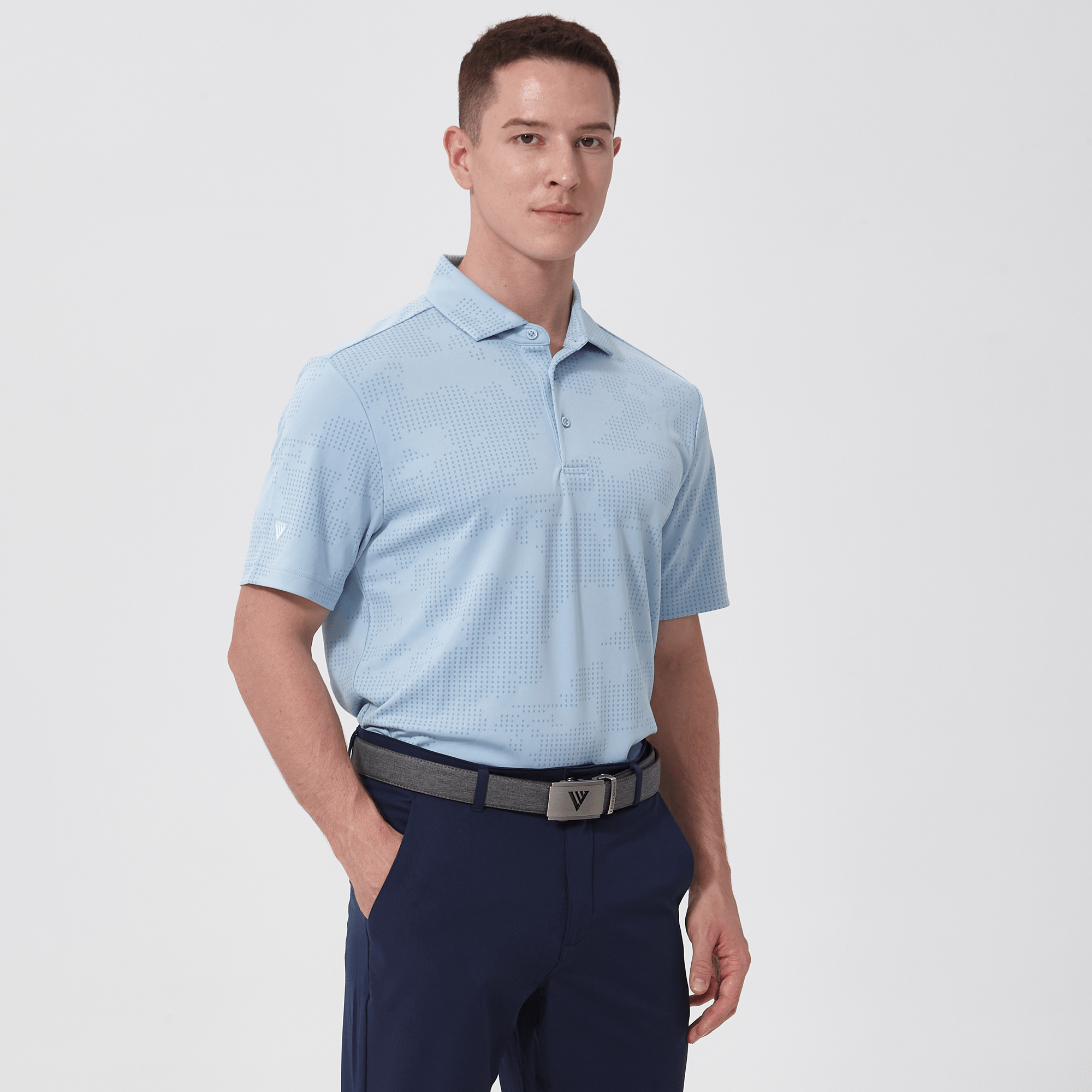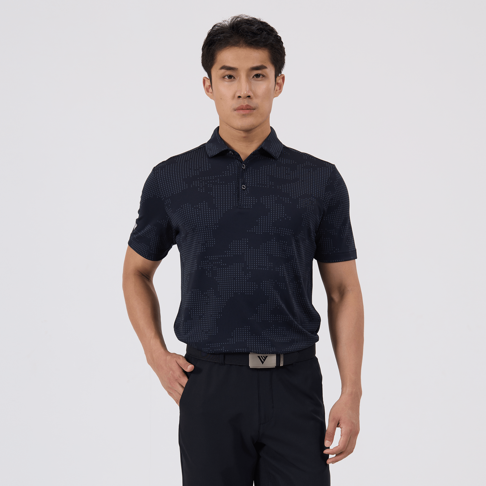 Step up your game with the men's Onyx polo, blending classic style with modern technology designed for the golf enthusiast. This polo, made from 100% polyester, is engineered to keep you cool and dry with advanced moisture-wicking properties that efficiently manage sweat during intense rounds. The self-fabric collar features a built-in collar stay to ensure a crisp, tailored look throughout the day. Its high-low hem detail with side slits enhances mobility and adds a contemporary edge to the traditional polo design. The digital jacquard all-over pattern infuses a touch of uniqueness, making the Onyx polo a subtle twist on a classic piece for any golfer looking to combine performance with sophisticated style on the course.