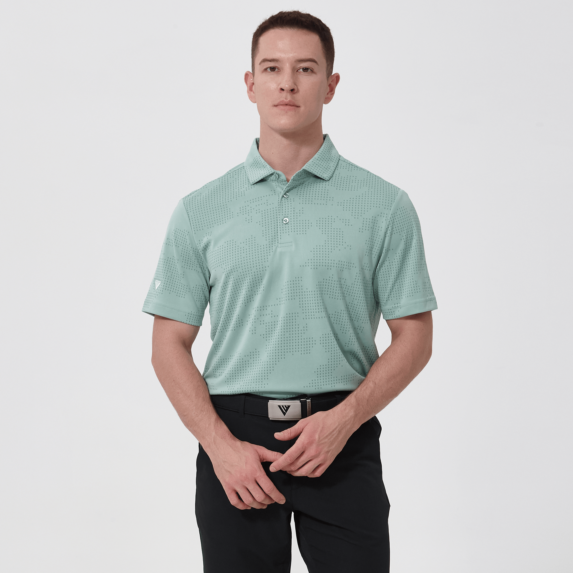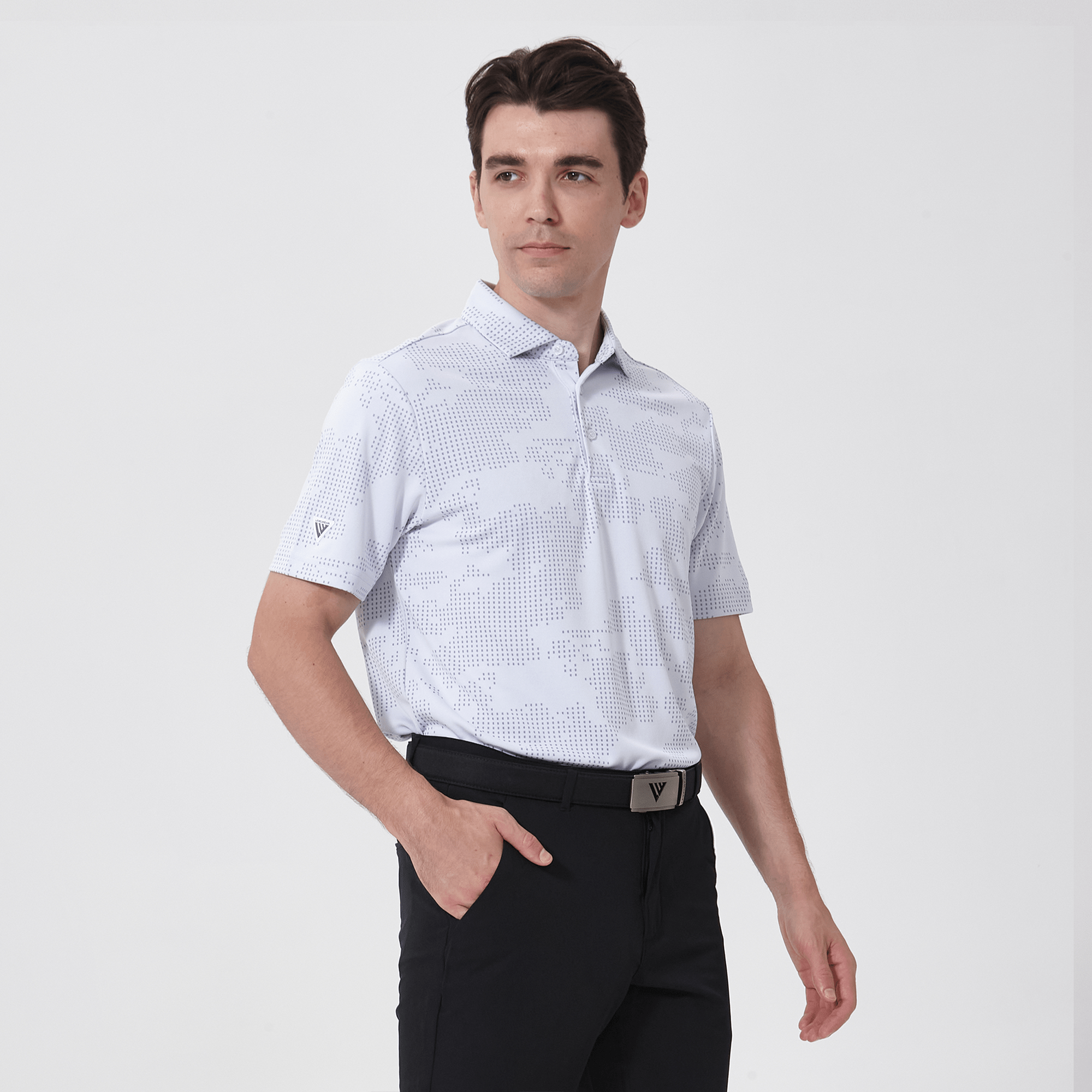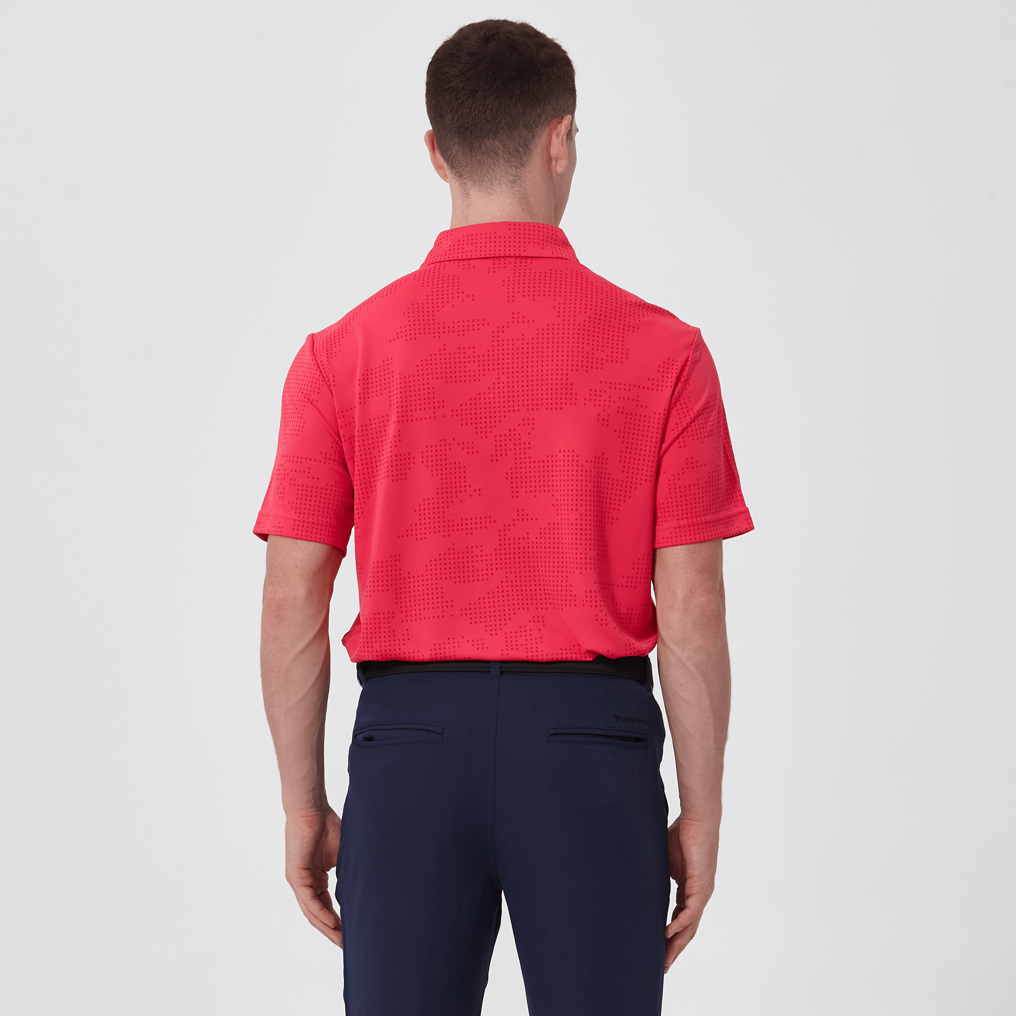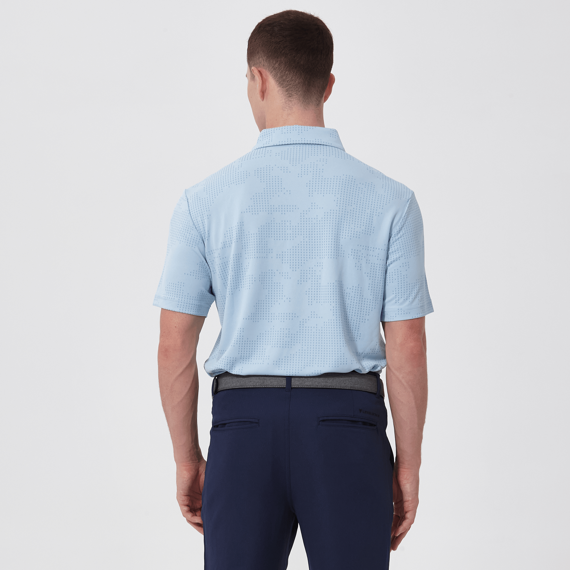Step up your game with the men's Onyx polo, blending classic style with modern technology designed for the golf enthusiast. This polo, made from 100% polyester, is engineered to keep you cool and dry with advanced moisture-wicking properties that efficiently manage sweat during intense rounds. The self-fabric collar features a built-in collar stay to ensure a crisp, tailored look throughout the day. Its high-low hem detail with side slits enhances mobility and adds a contemporary edge to the traditional polo design. The digital jacquard all-over pattern infuses a touch of uniqueness, making the Onyx polo a subtle twist on a classic piece for any golfer looking to combine performance with sophisticated style on the course.