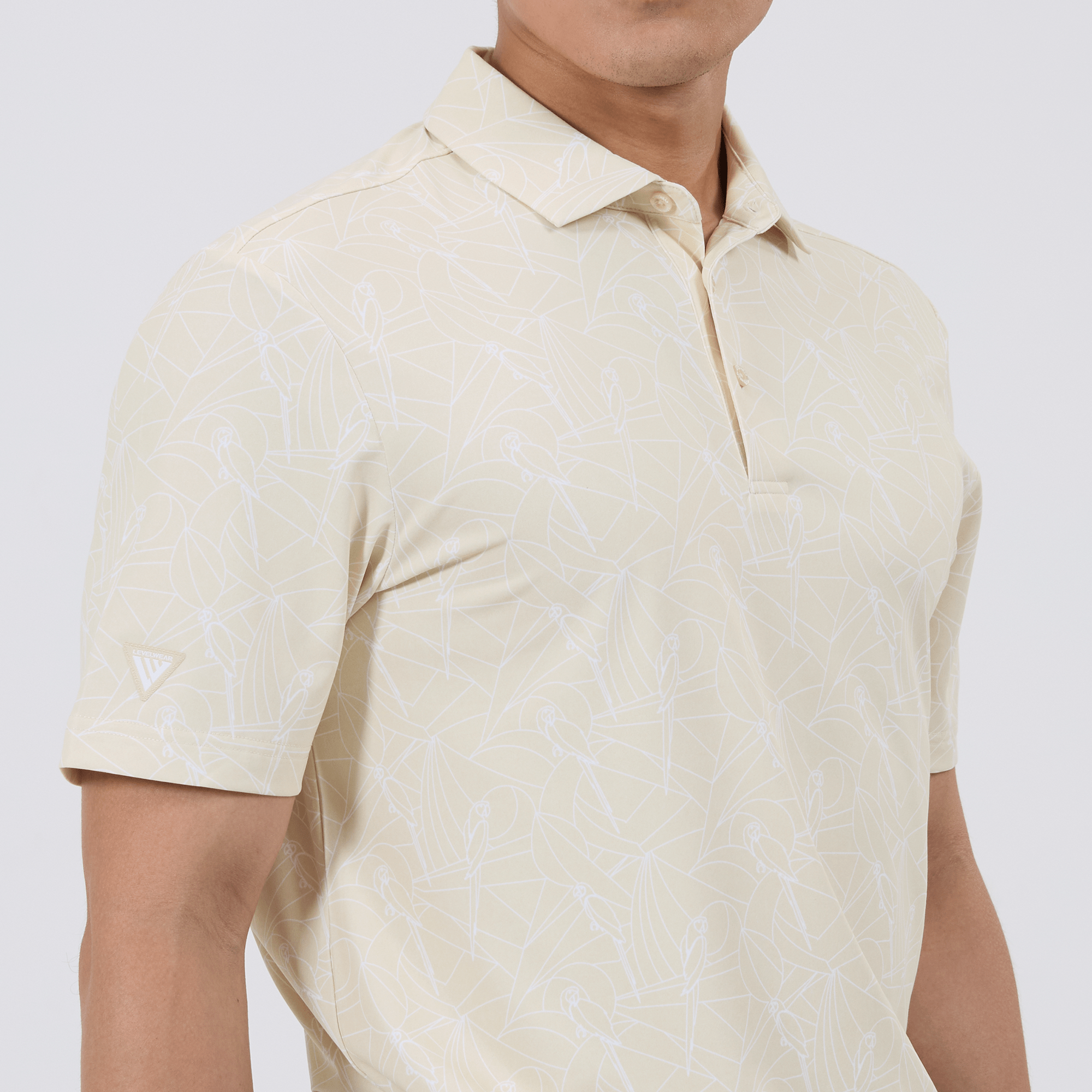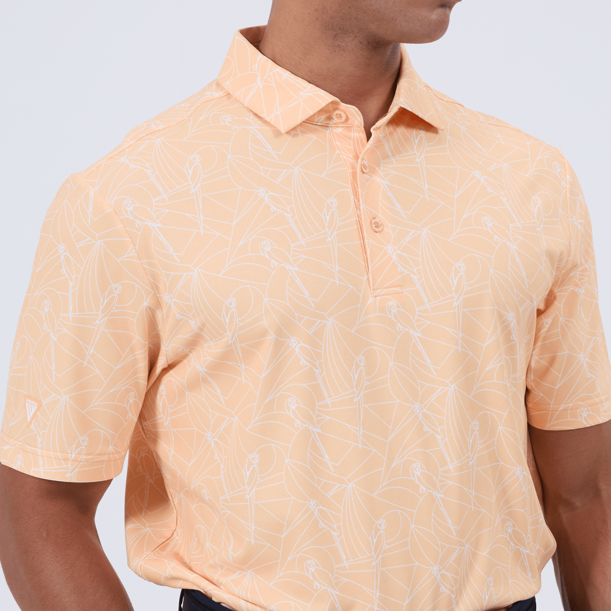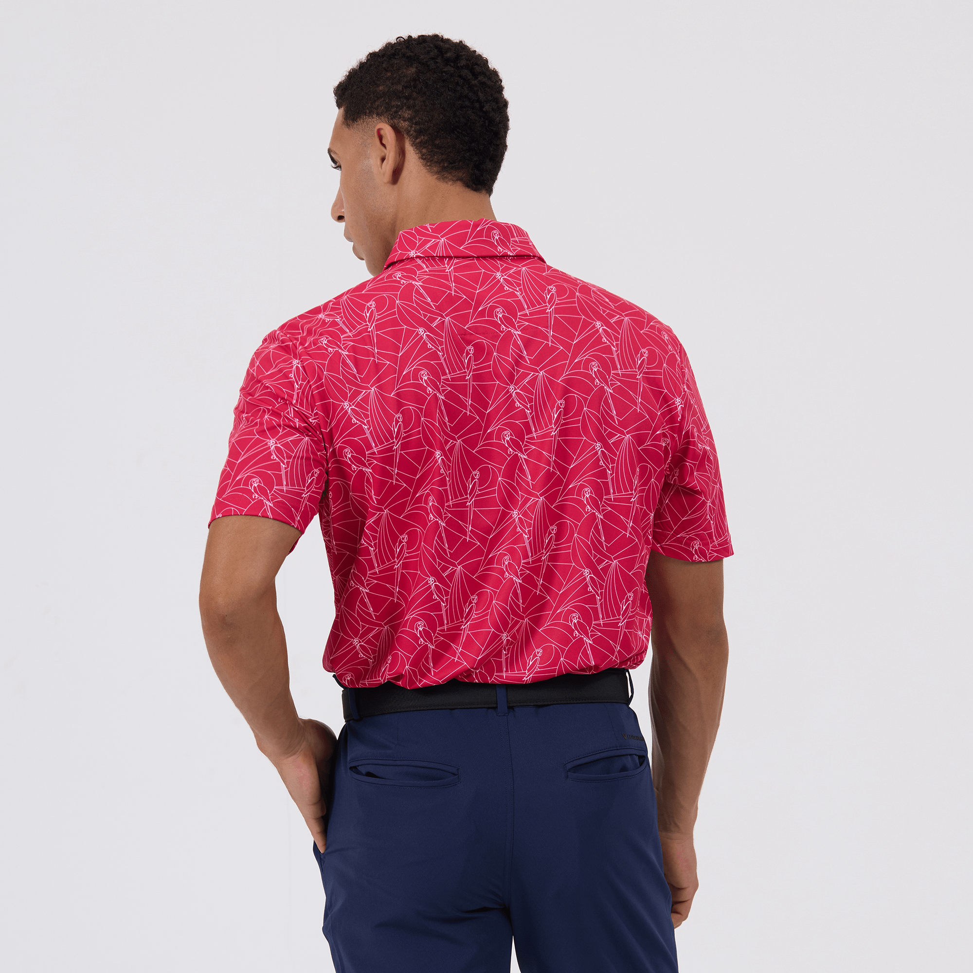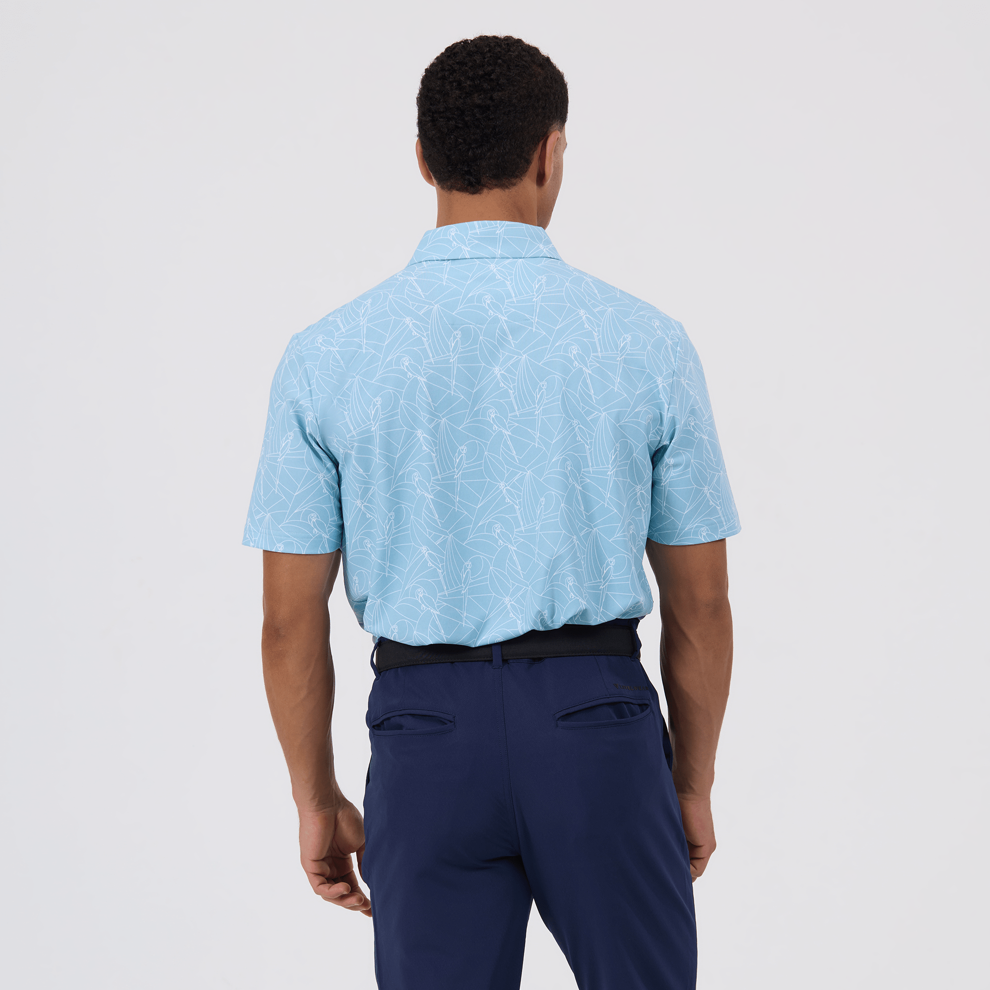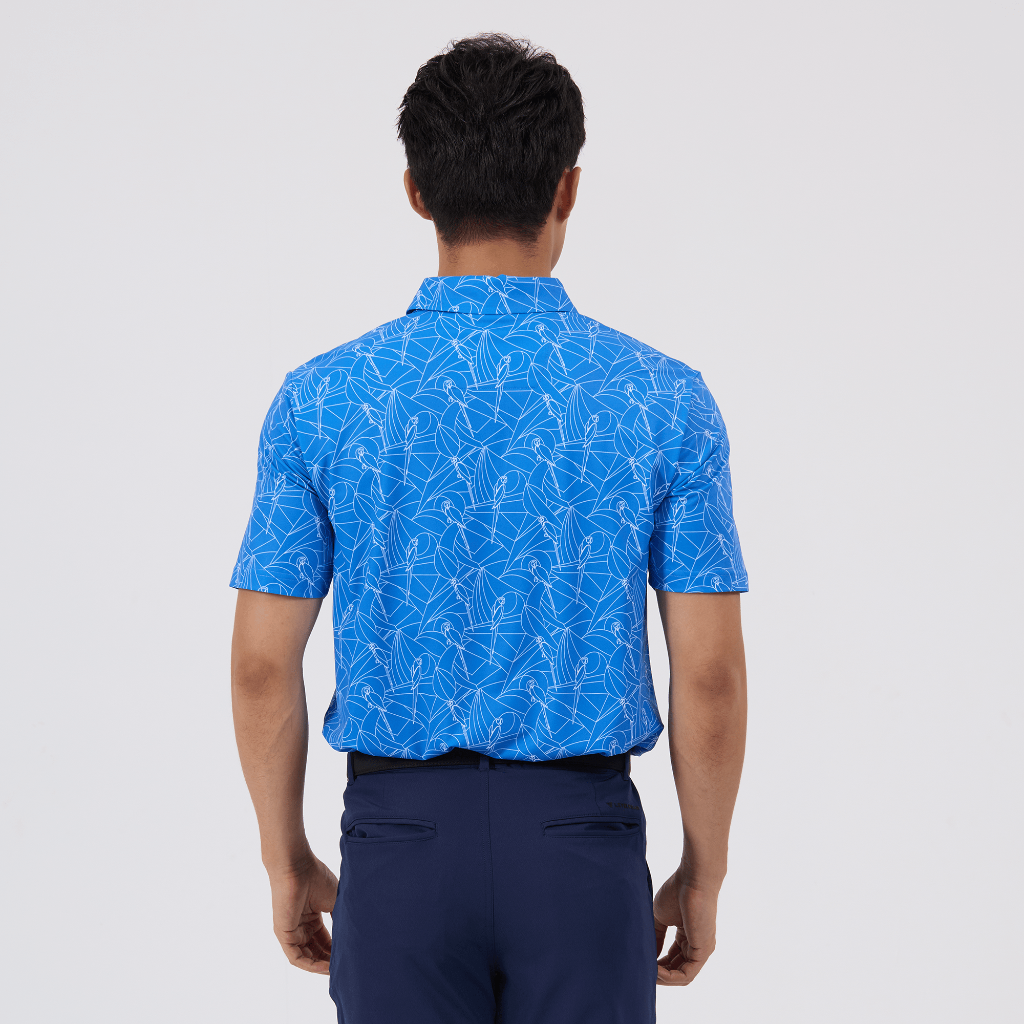 Hit the links with flair in the men's Paradise golf polo, featuring a fun and eye-catching all-over parrot print that's sure to turn heads. This polo is crafted from a blend of 93% polyester and 7% spandex, combining comfort with stretch for unrestricted movement on the golf course. It's equipped with UPF 50+ to protect you from the sun's rays and moisture-wicking technology to keep you dry and cool as you play. The self-fabric collar with built-in collar stay ensures your look remains crisp, while the high-low hem with side slits provides enhanced mobility and a modern fit. Ideal for golfers who want to stand out while staying protected and comfortable, this polo is a stylish addition to your golfing wardrobe.
