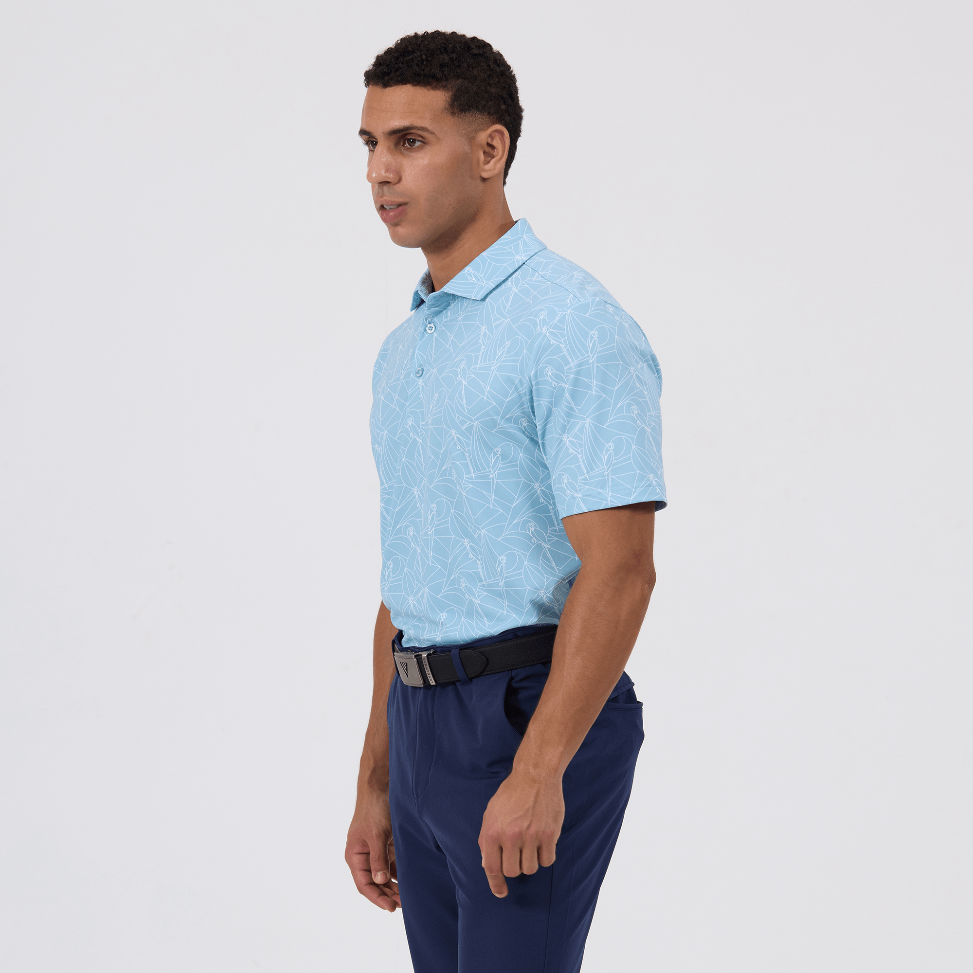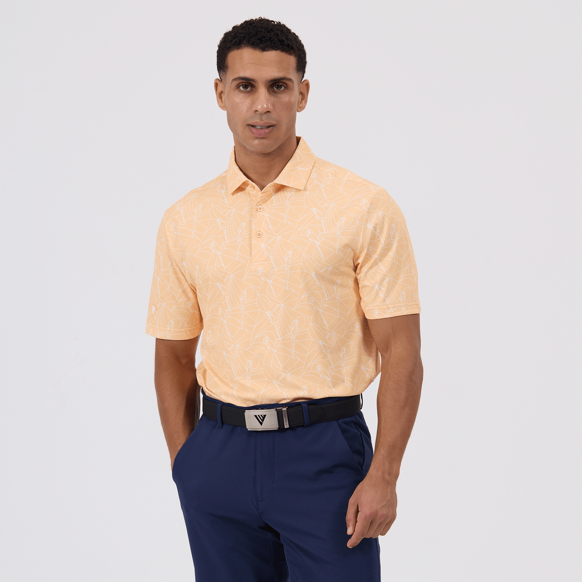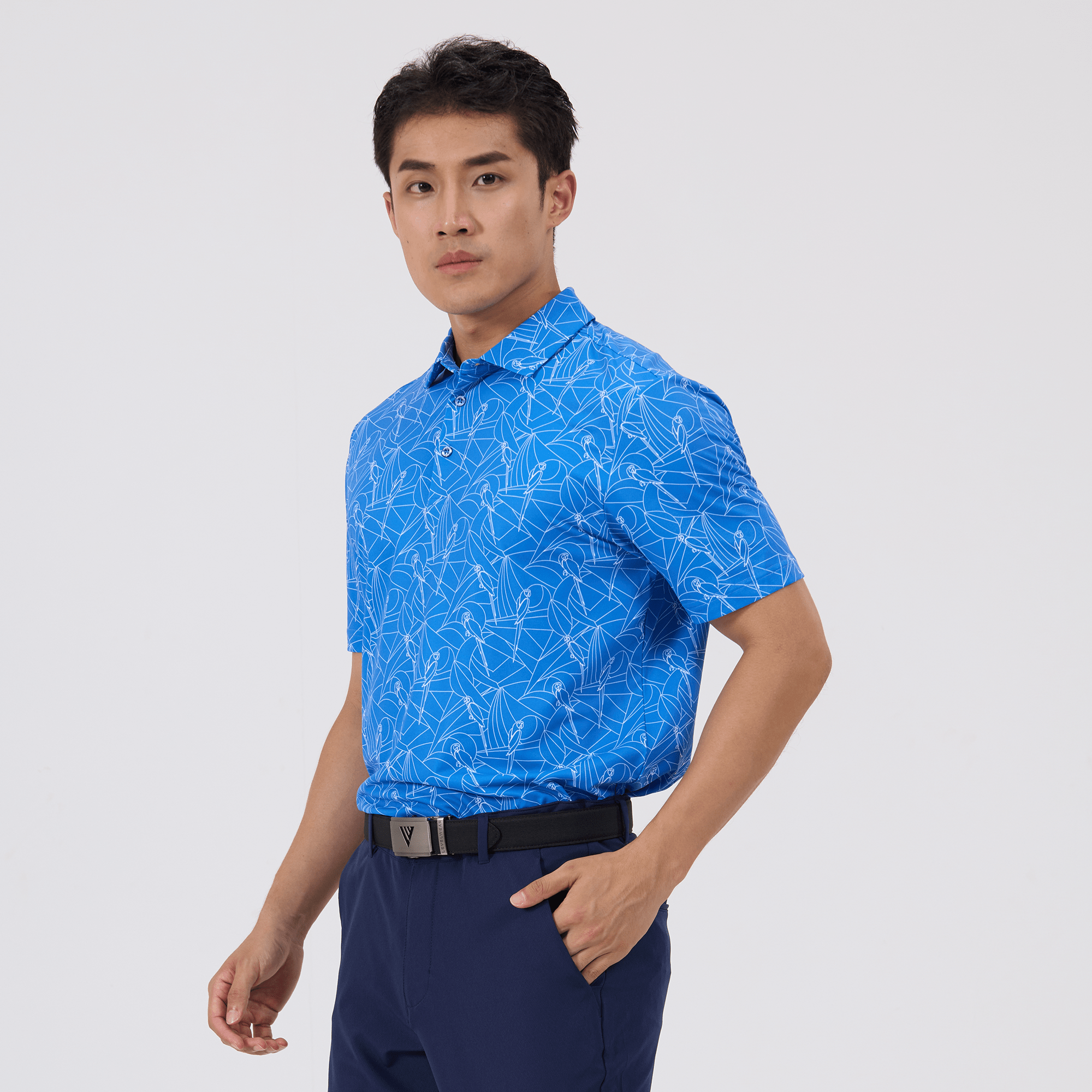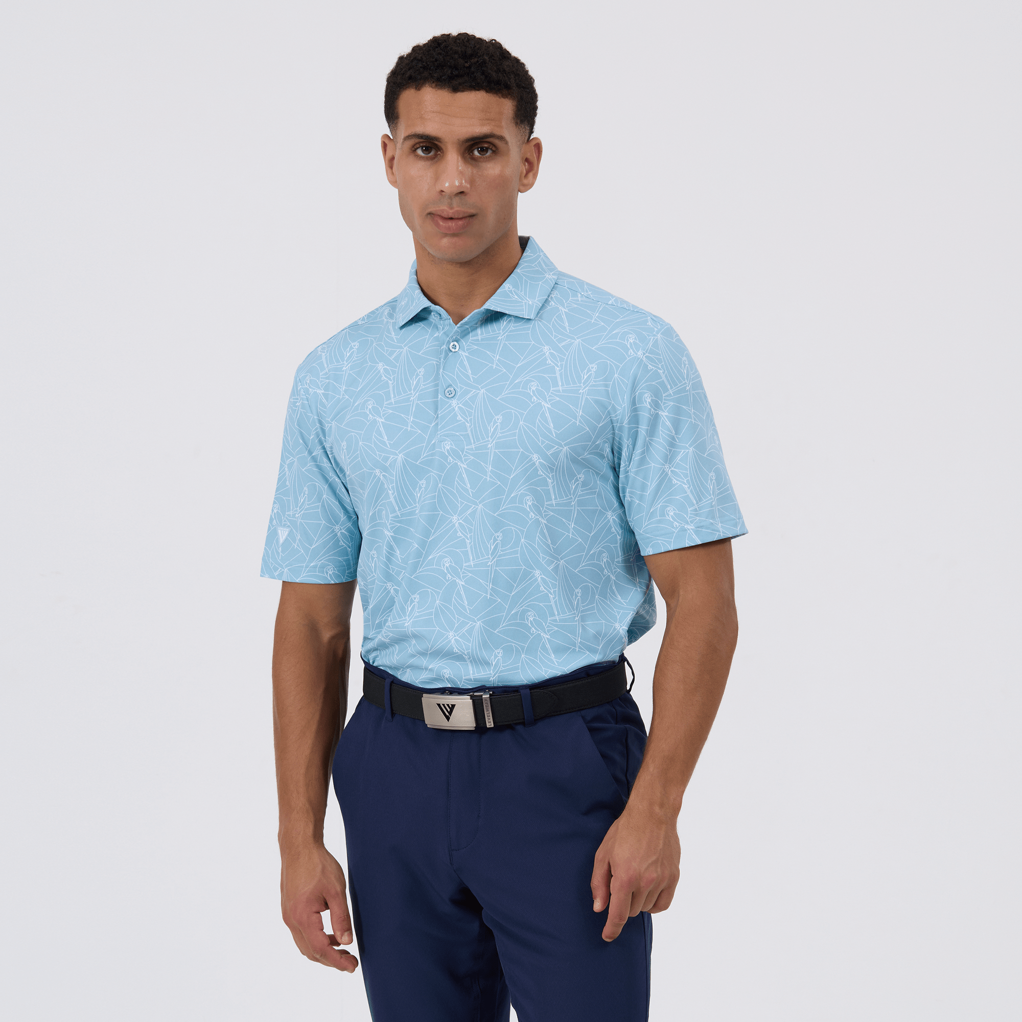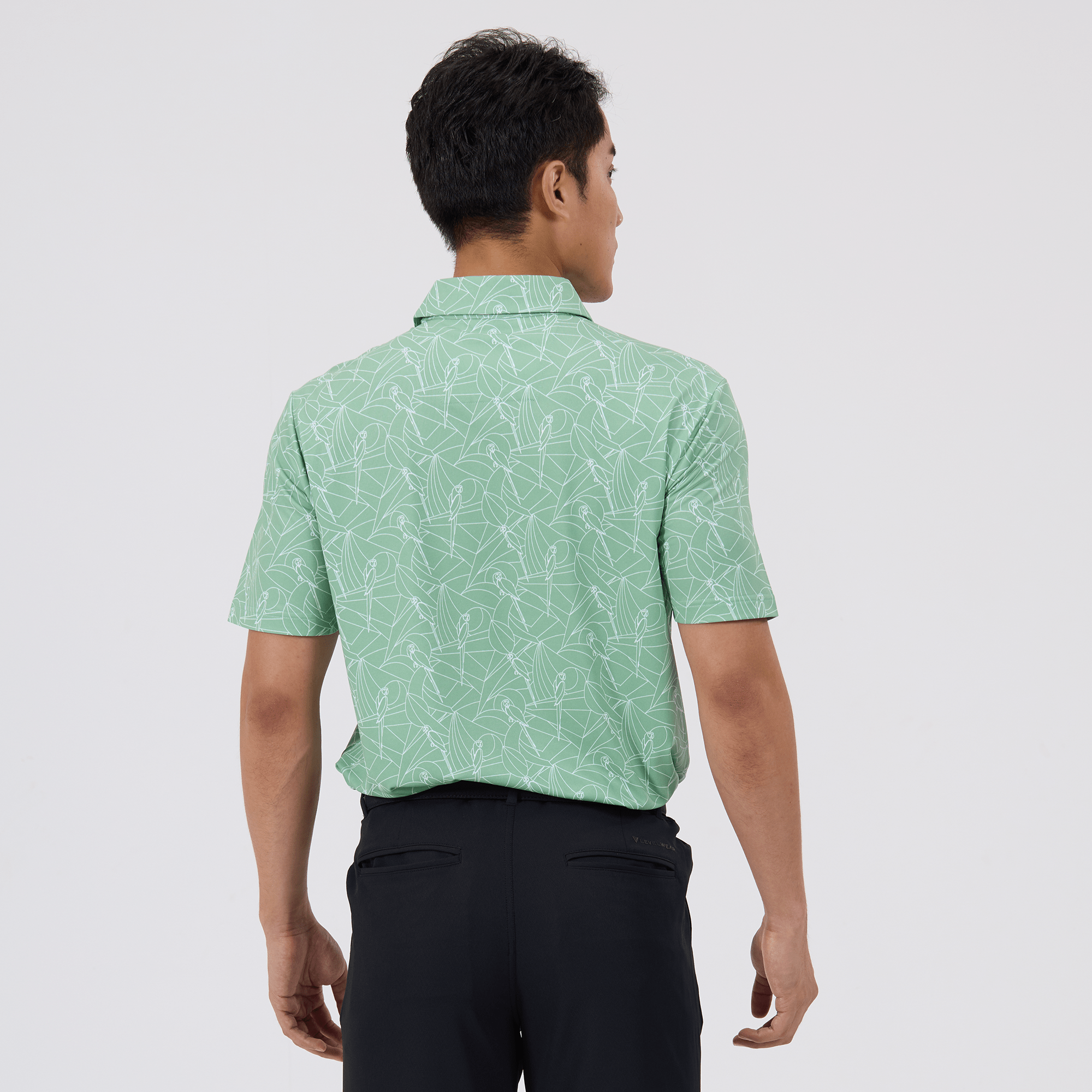 Hit the links with flair in the men's Paradise golf polo, featuring a fun and eye-catching all-over parrot print that's sure to turn heads. This polo is crafted from a blend of 93% polyester and 7% spandex, combining comfort with stretch for unrestricted movement on the golf course. It's equipped with UPF 50+ to protect you from the sun's rays and moisture-wicking technology to keep you dry and cool as you play. The self-fabric collar with built-in collar stay ensures your look remains crisp, while the high-low hem with side slits provides enhanced mobility and a modern fit. Ideal for golfers who want to stand out while staying protected and comfortable, this polo is a stylish addition to your golfing wardrobe.
