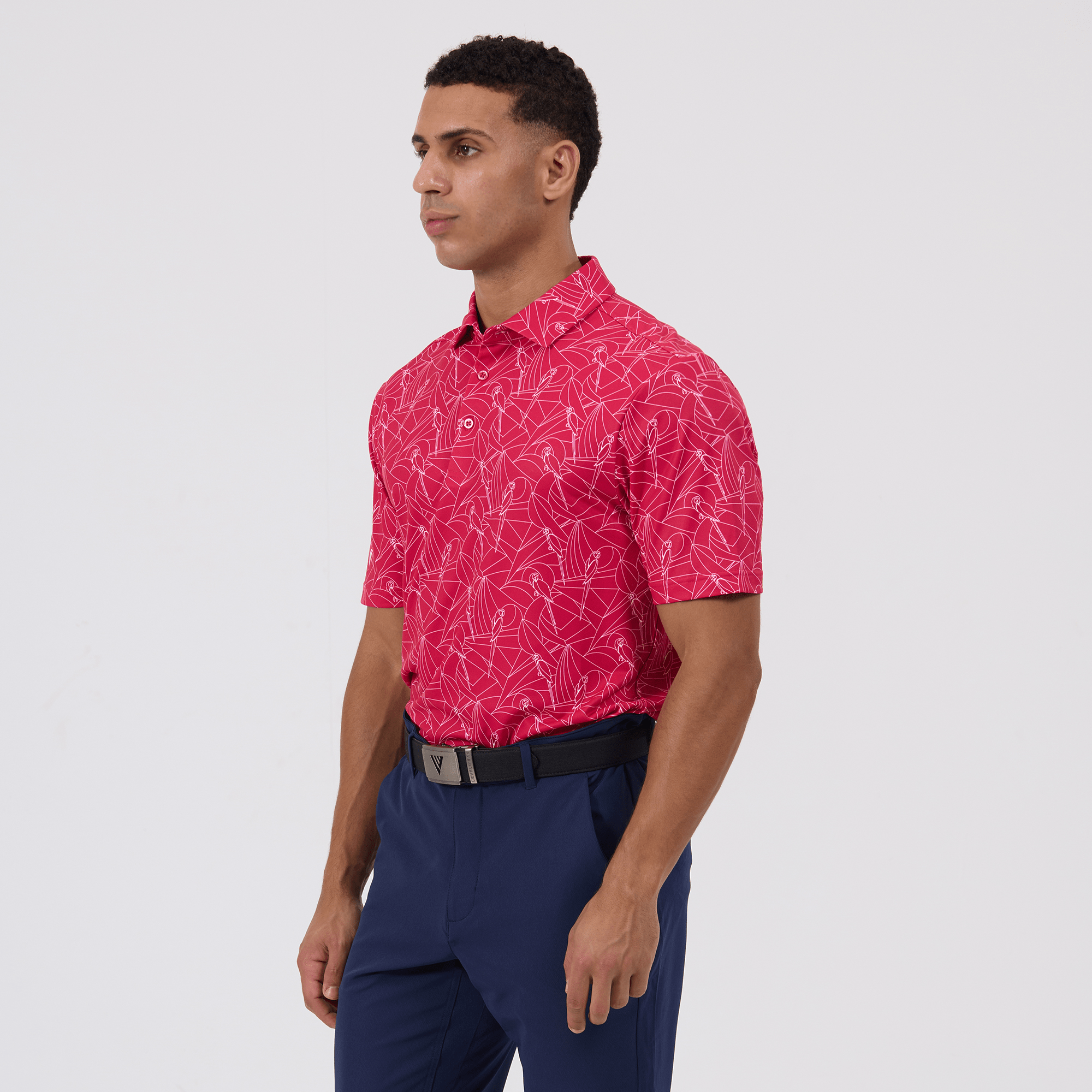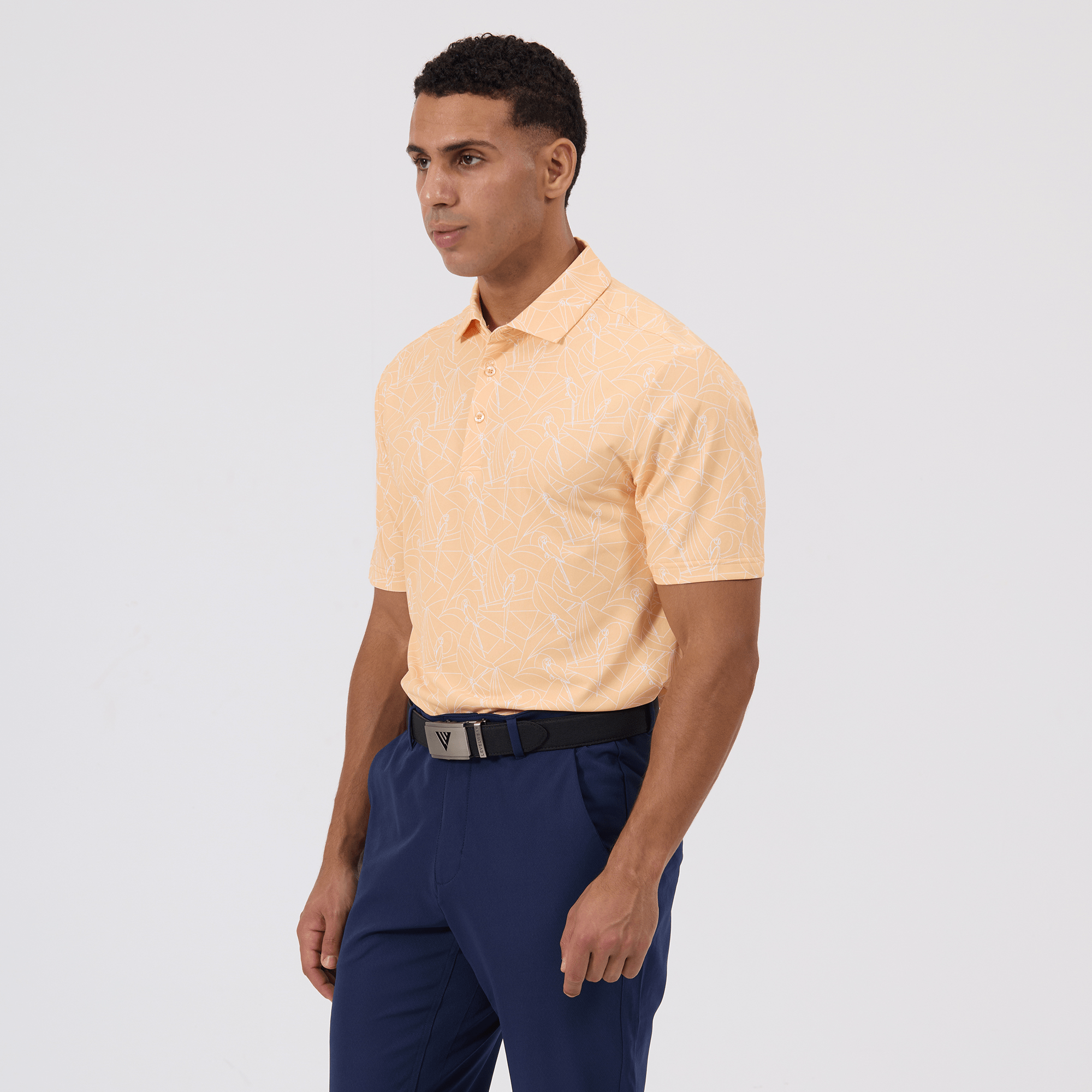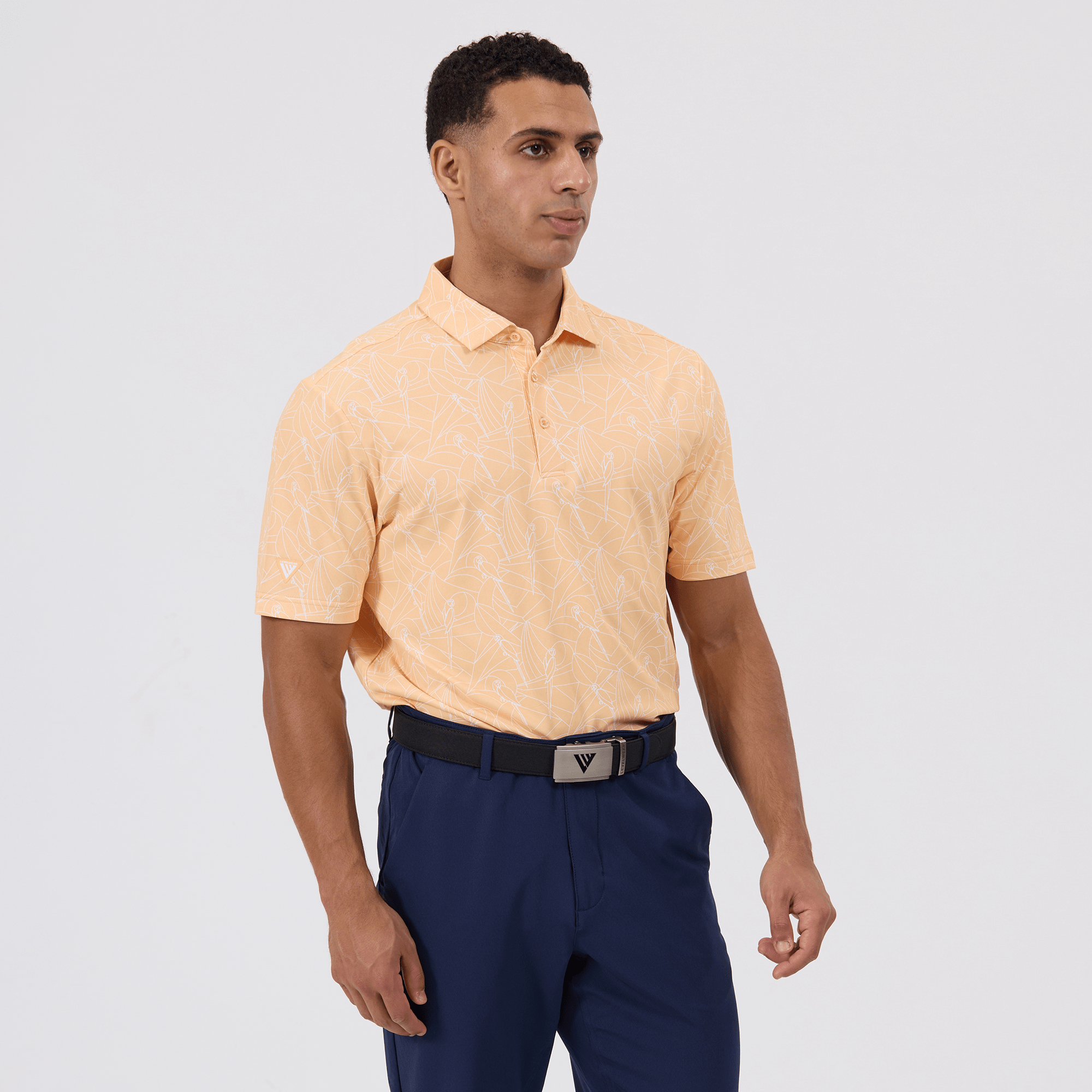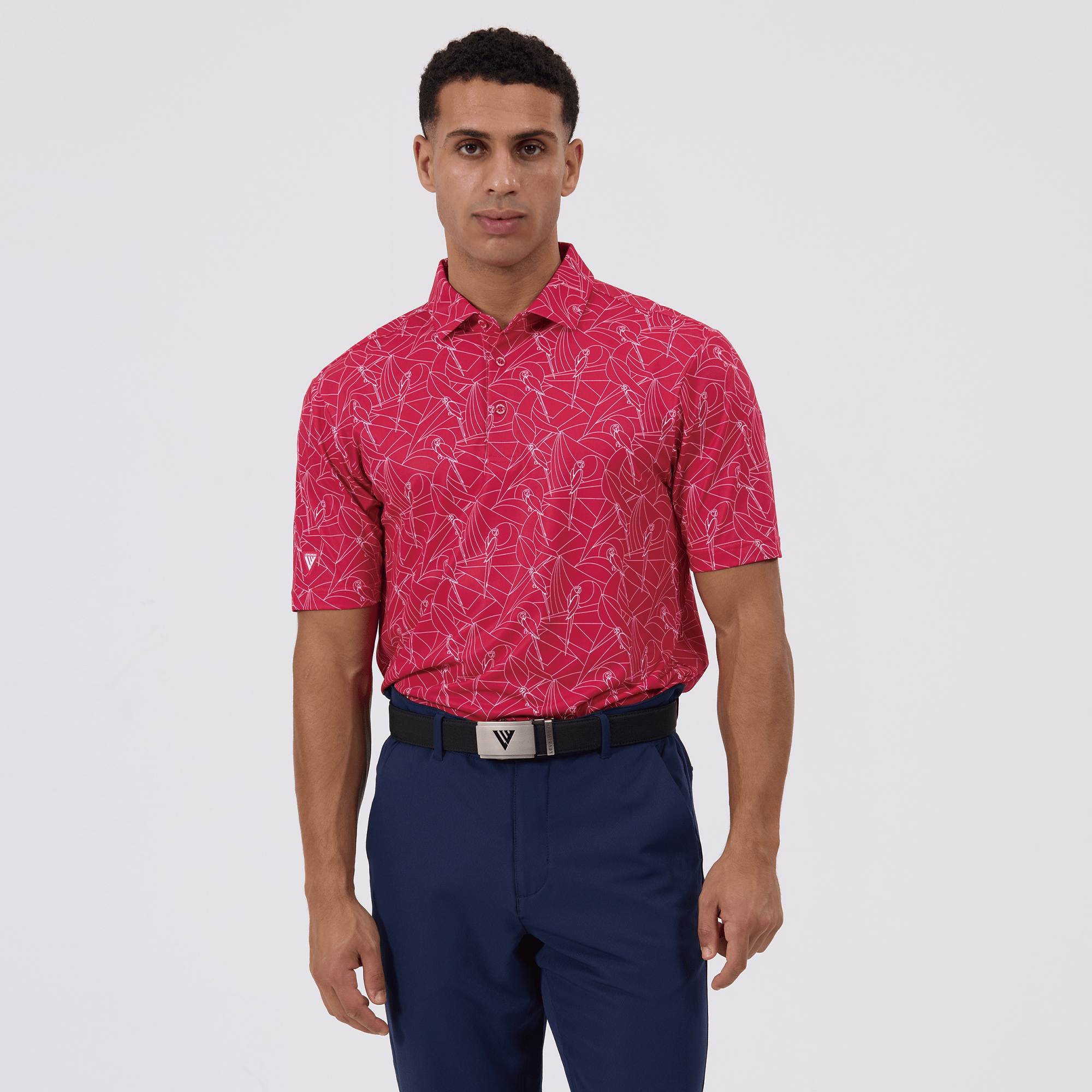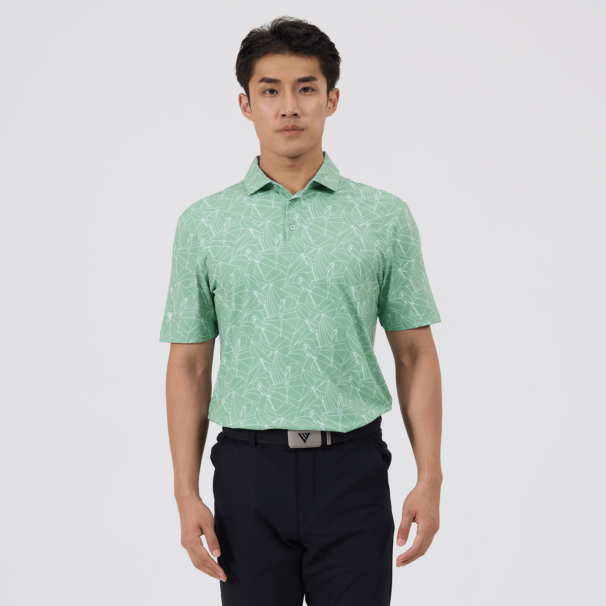 Hit the links with flair in the men's Paradise golf polo, featuring a fun and eye-catching all-over parrot print that's sure to turn heads. This polo is crafted from a blend of 93% polyester and 7% spandex, combining comfort with stretch for unrestricted movement on the golf course. It's equipped with UPF 50+ to protect you from the sun's rays and moisture-wicking technology to keep you dry and cool as you play. The self-fabric collar with built-in collar stay ensures your look remains crisp, while the high-low hem with side slits provides enhanced mobility and a modern fit. Ideal for golfers who want to stand out while staying protected and comfortable, this polo is a stylish addition to your golfing wardrobe.