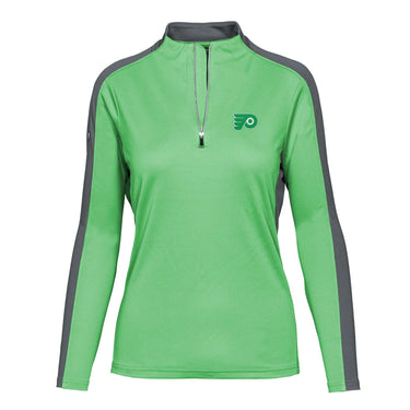 Enhance your golf and active lifestyle wardrobe with the Remi Pullover, designed for practicality and a fashionable look on the course and beyond. This 100% polyester pullover features moisture-wicking technology to ensure you stay dry and comfortable throughout your activities. The Remi boasts bold color blocking for a contemporary aesthetic and includes a metallic zipper for a sleek, refined touch. Its design incorporates forwarded side seams and elbow darts that improve the garment's fit, allowing for better movement and alignment with your body. Ideal for a day on the golf course or any outdoor activity, the Remi pullover is a stylish and functional choice for active wear.