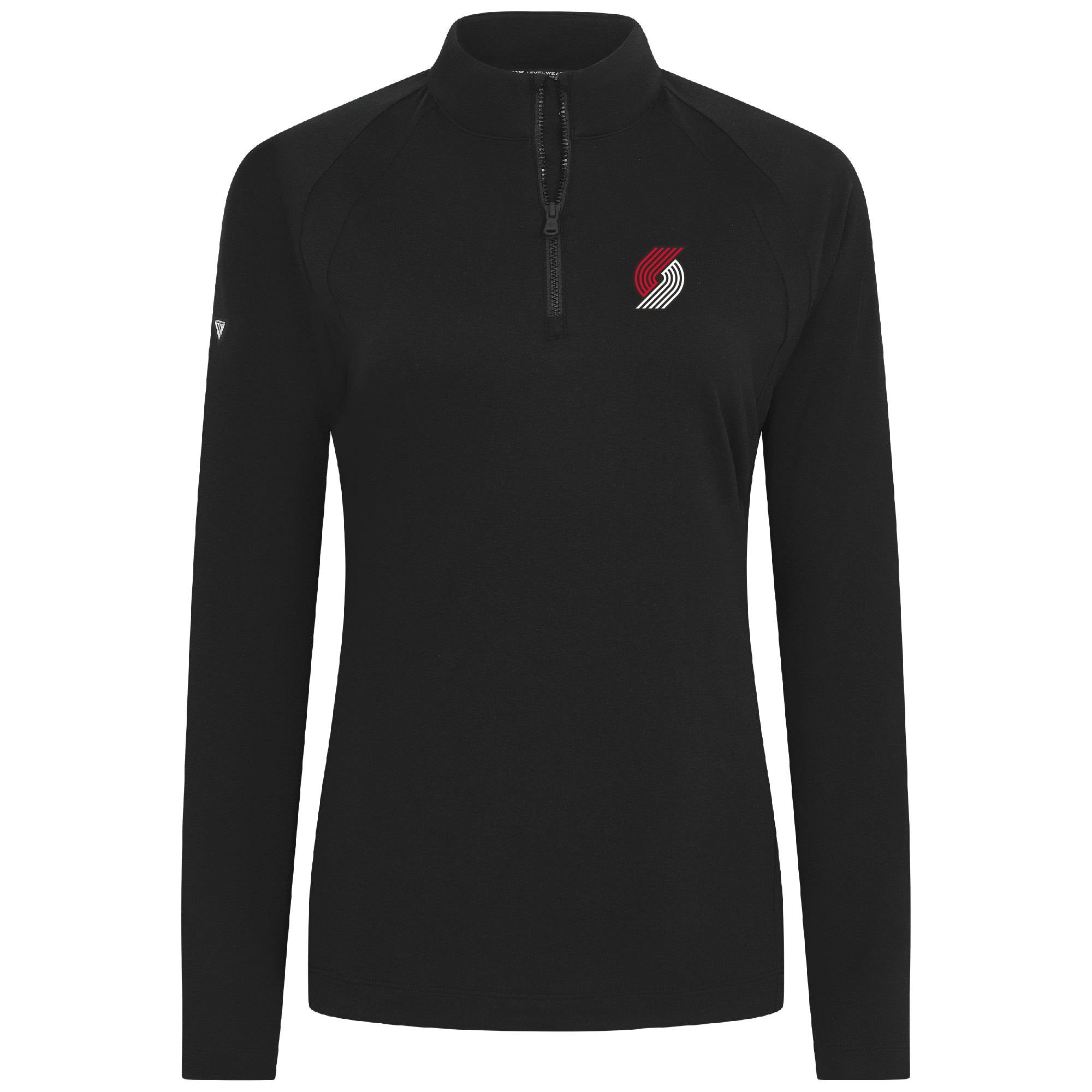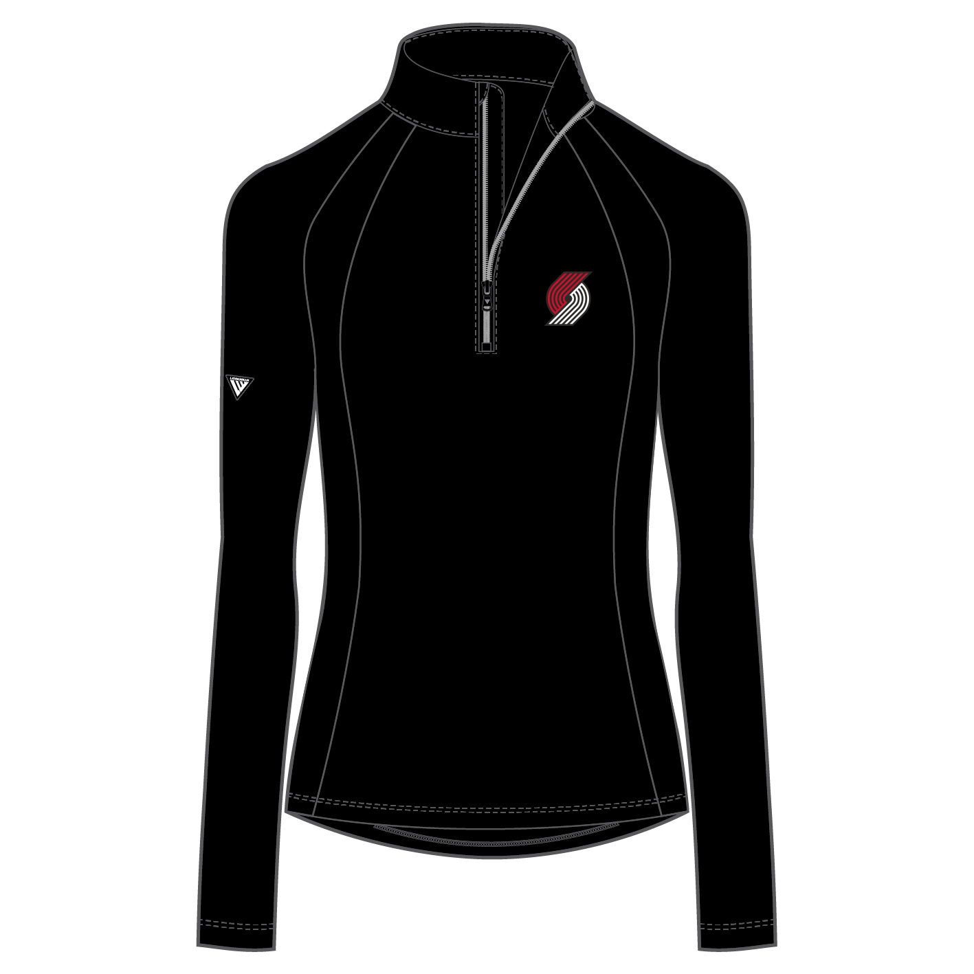- Quarter-zip with contrast stand-up collar