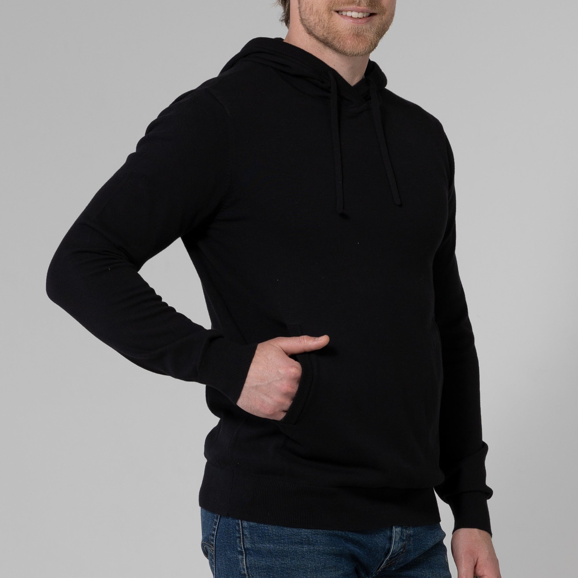 The Road Trip Sweater is the perfect companion for your casual outings or cozy evenings at home. This sweater is crafted from a luxurious blend of 55% cotton, 30% viscose, and 15% nylon, providing a soft, comfortable feel with enough stretch for easy movement. It features a classic sweater knit that is stylish yet durable, complete with a fully fashioned mark armhole stitch for a refined look. The adjustable hood offers practicality and warmth, making it versatile for changing weather conditions. Side pockets add a functional element, ideal for keeping hands warm or storing small essentials. Finished with a ribbed bottom hem and cuffs, the Road Trip Sweater ensures a snug fit that stays in place. Whether you're setting out on a spontaneous adventure or relaxing at home, this sweater combines comfort, style, and utility to meet all your needs.